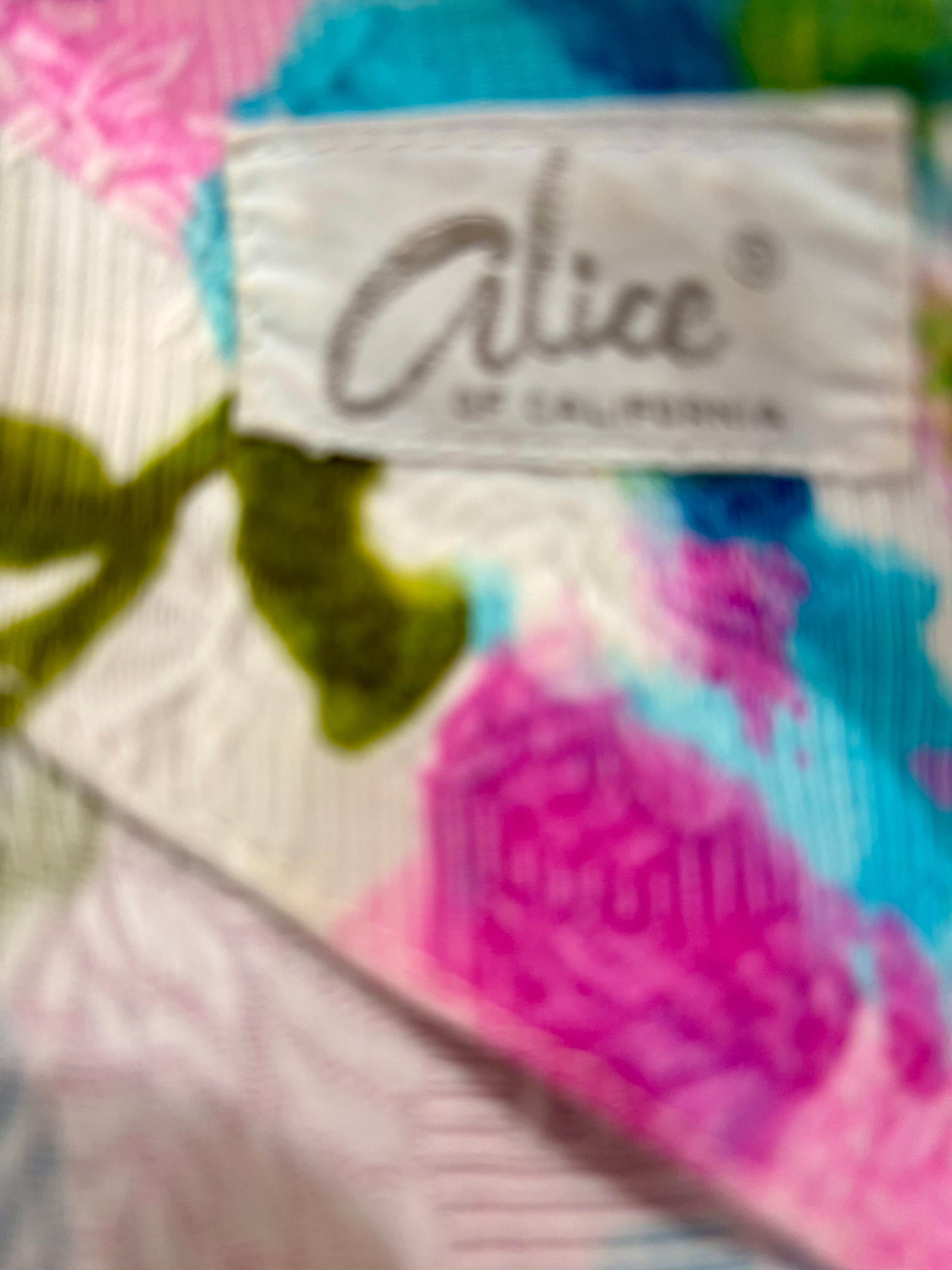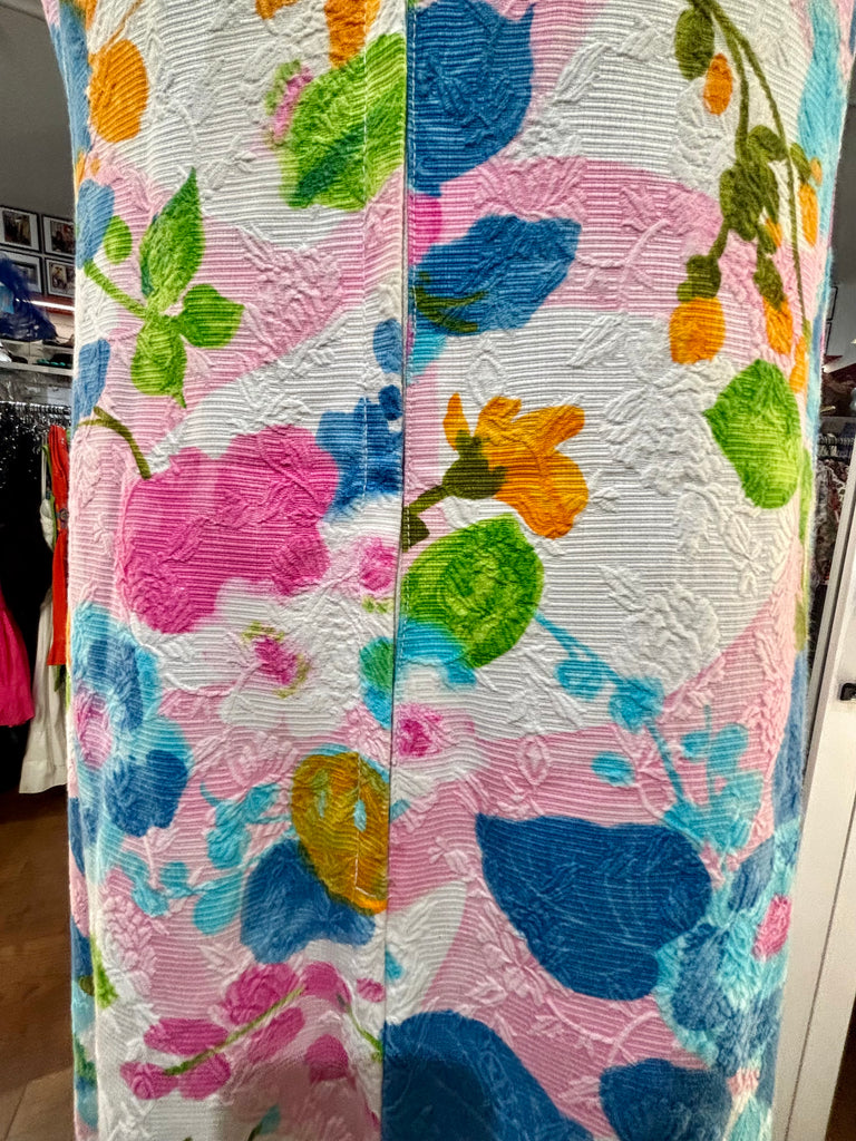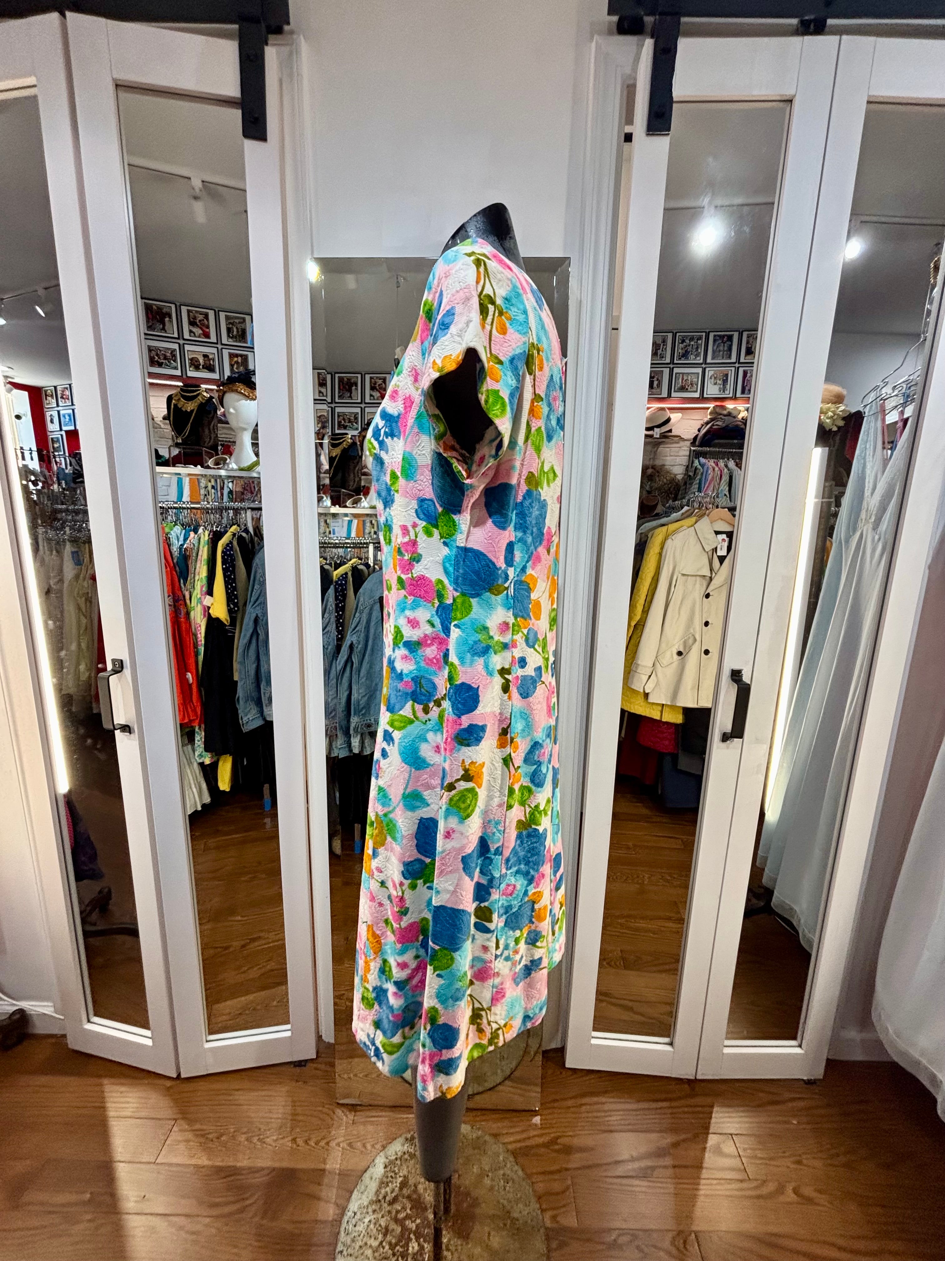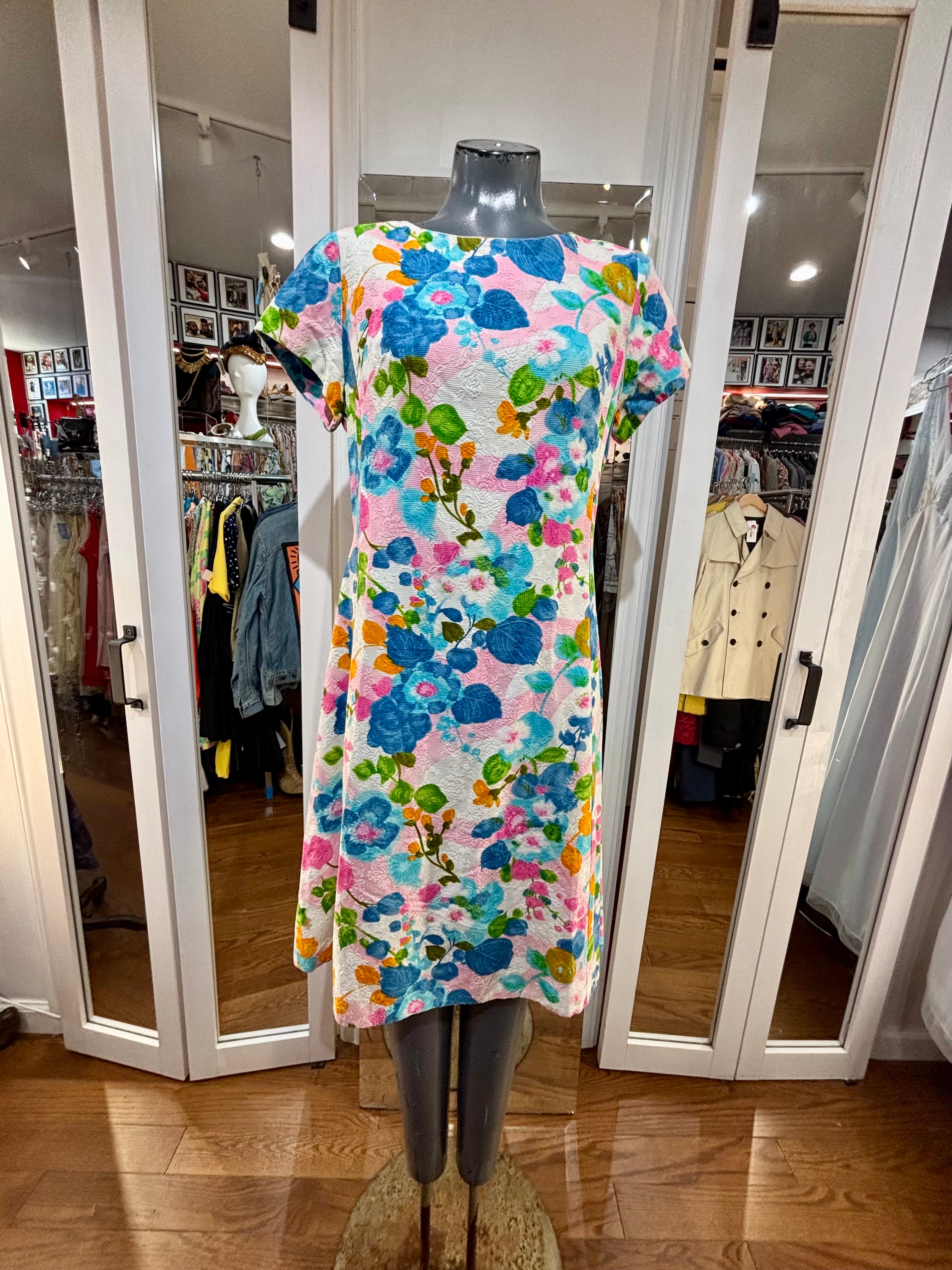 60’s Pink Multicolor Flower Print Cap Sleeve Dress By Alice Of California