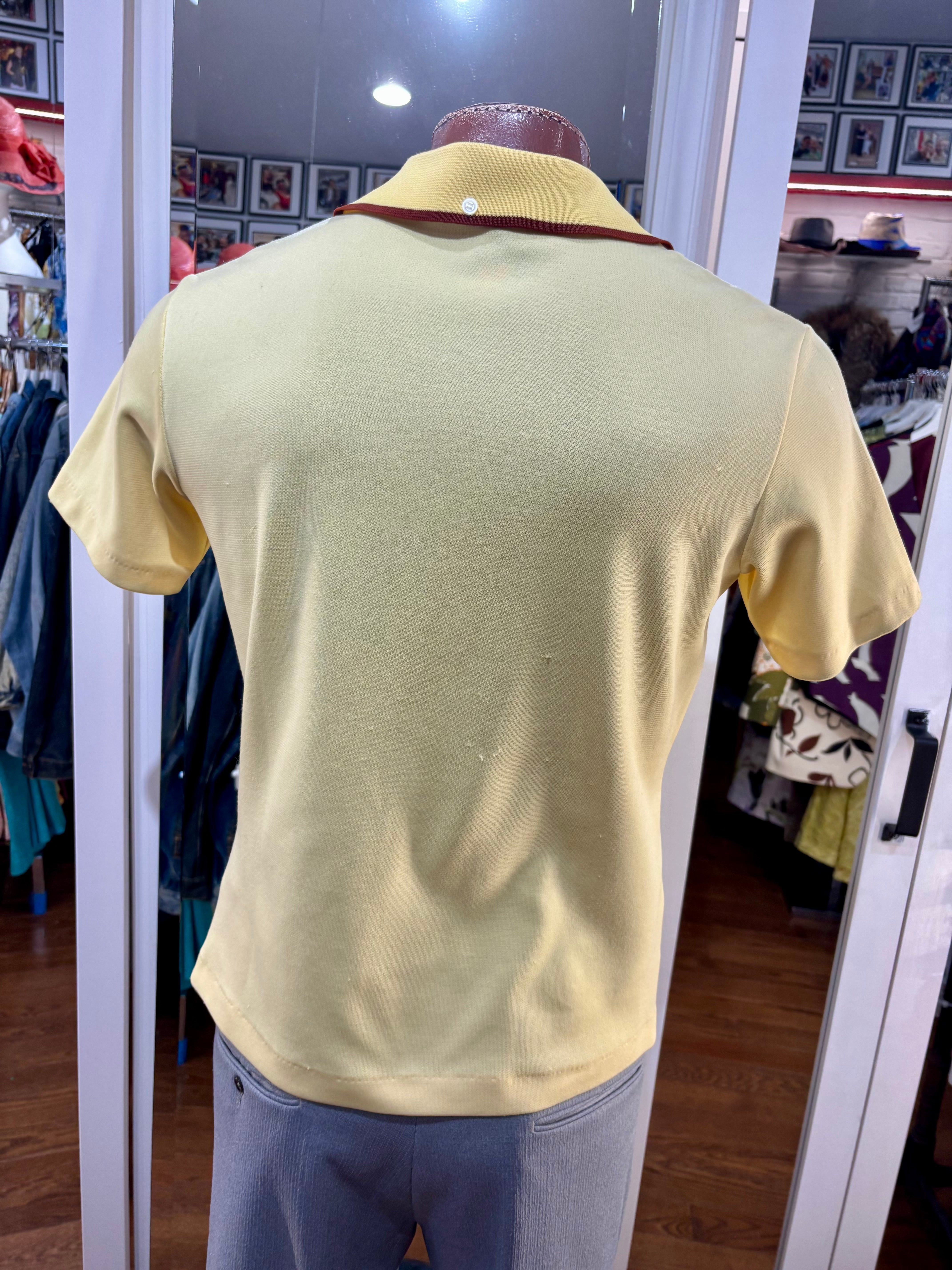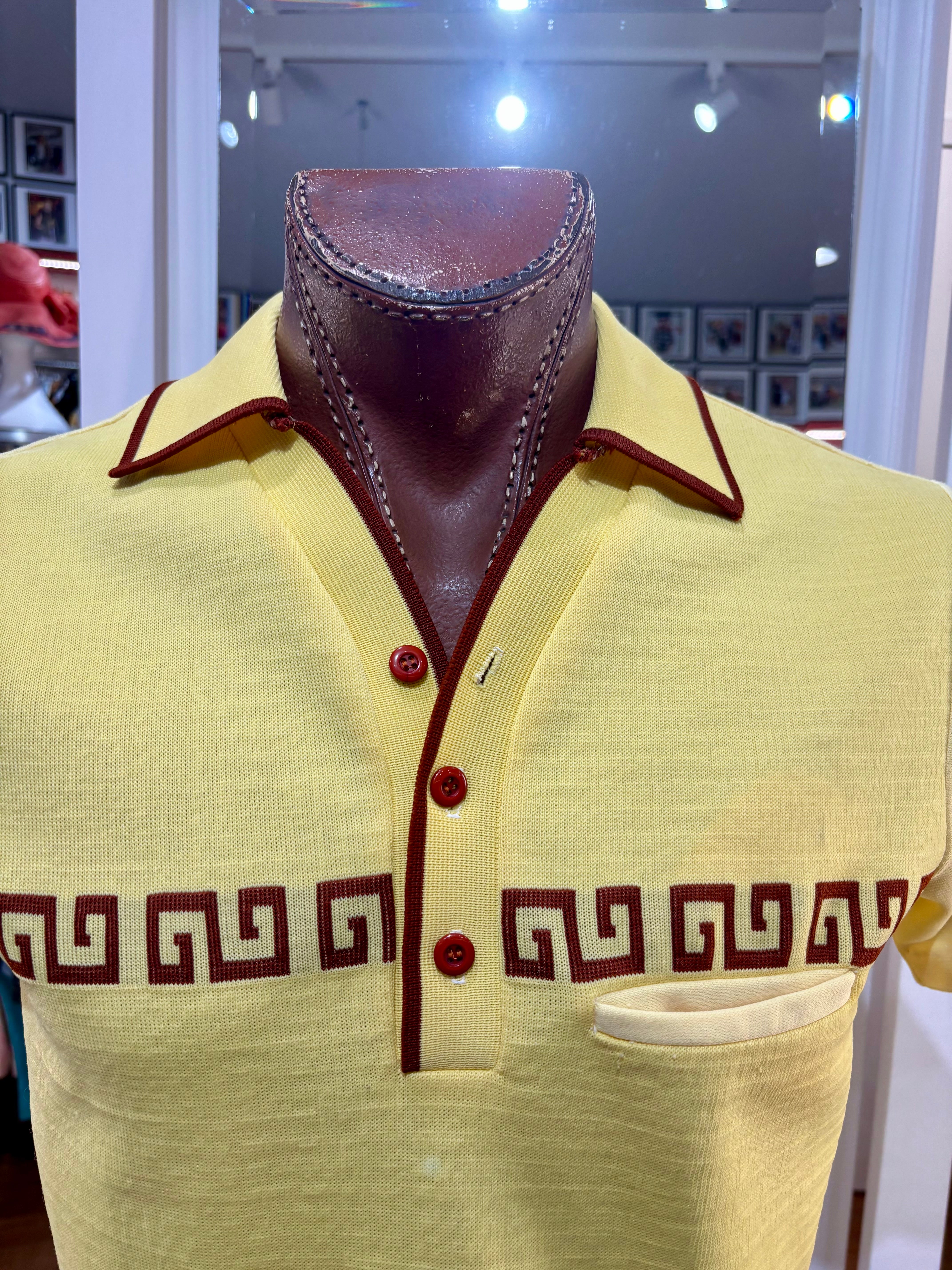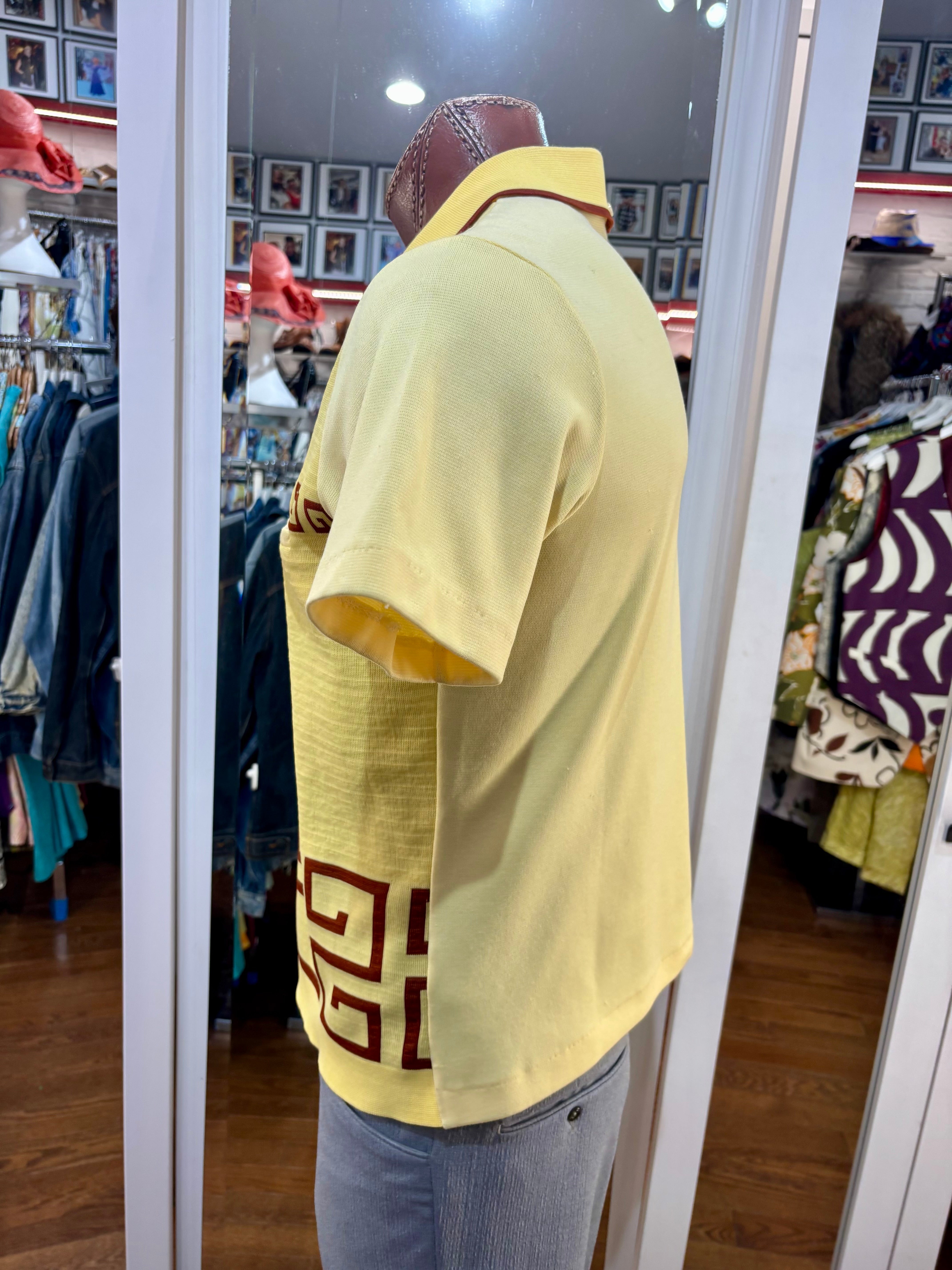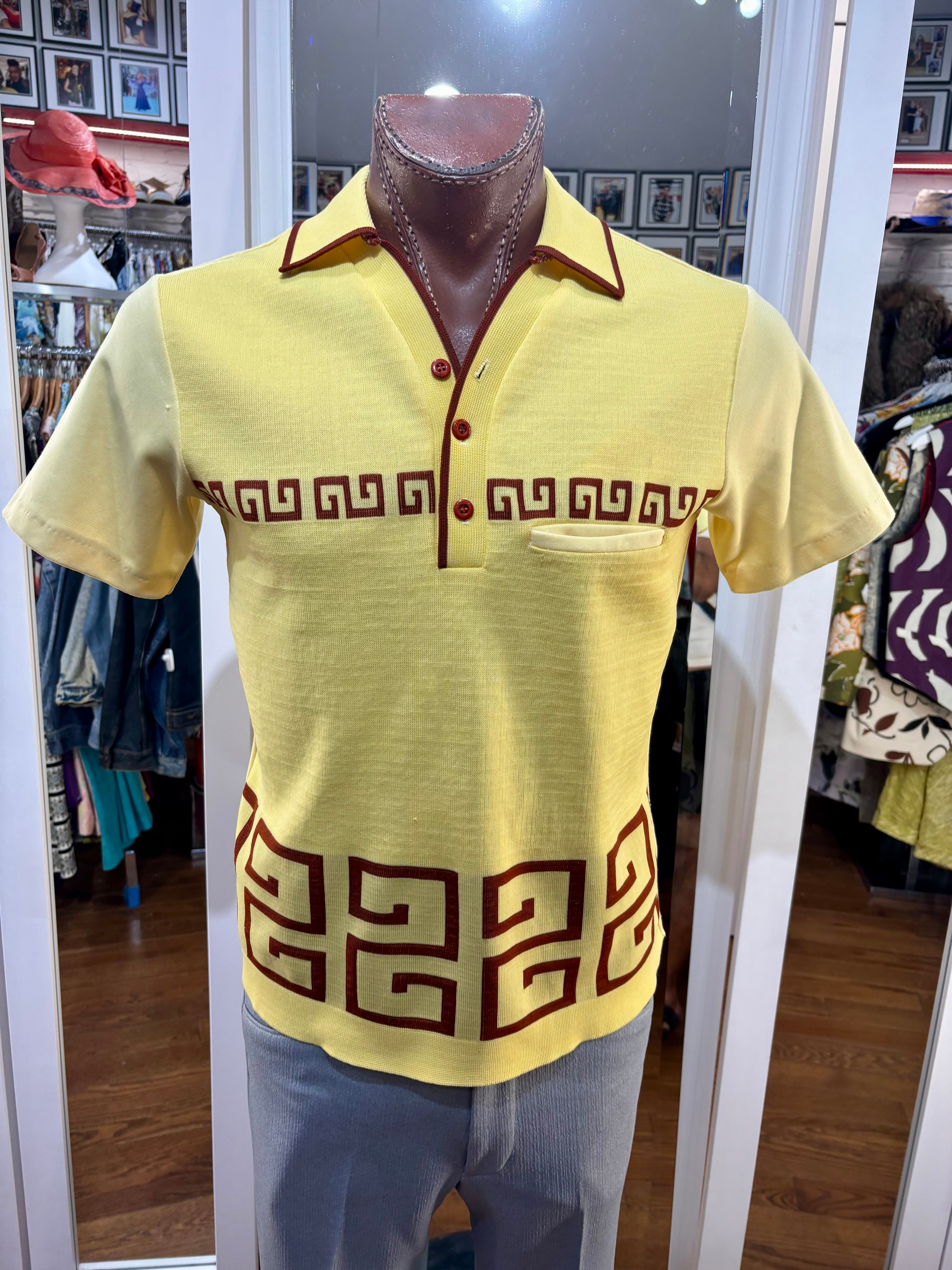 60’s Pale Yellow With Geometric Signs Print Collared Knit Polo Shirt