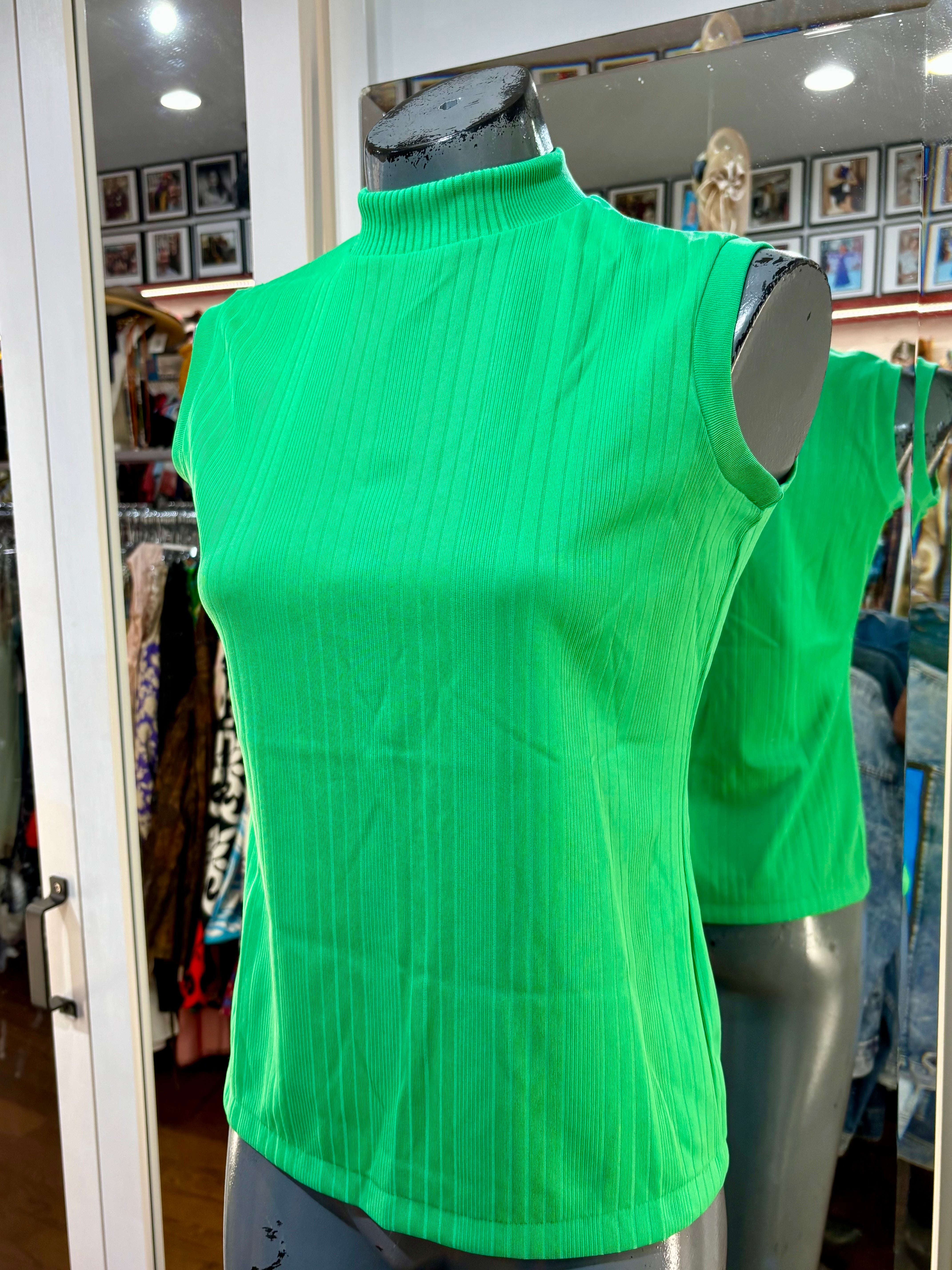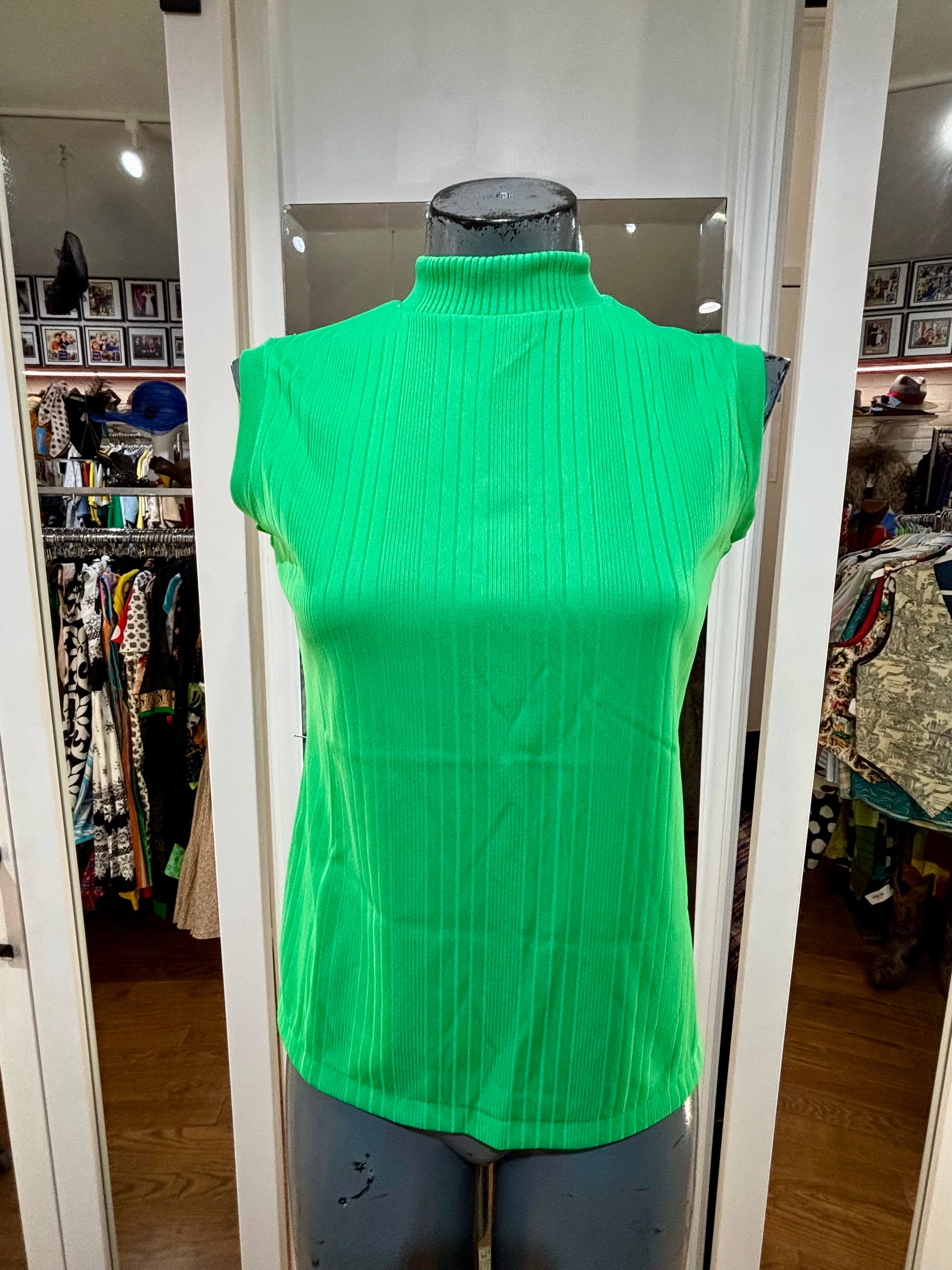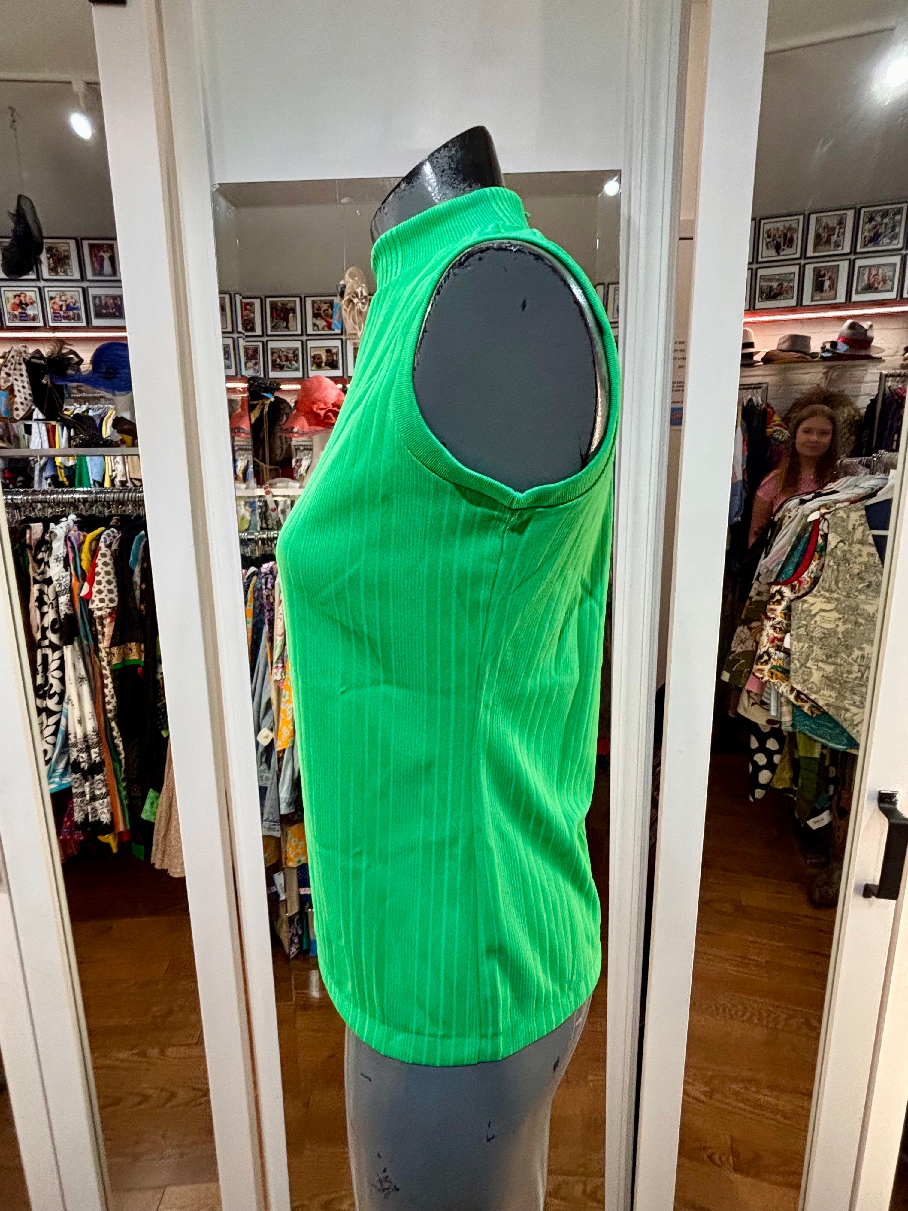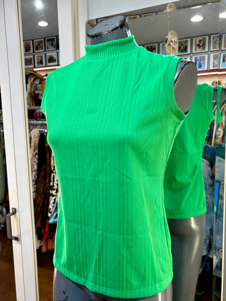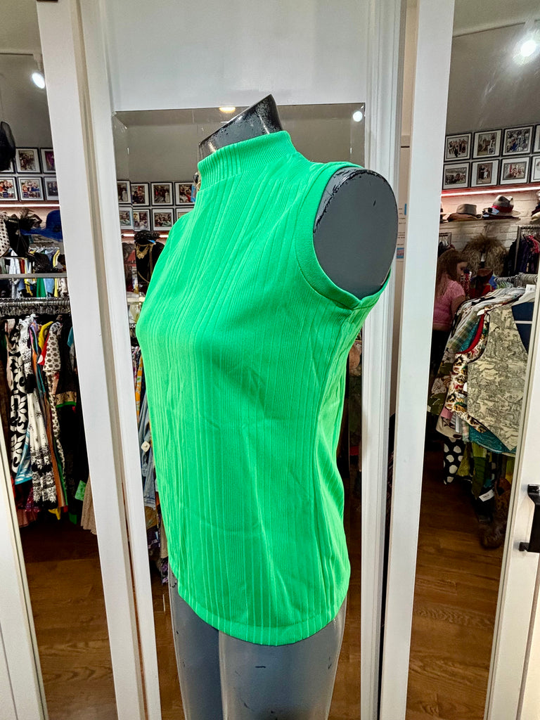 60’s Kelly Green Monk Neck Sleeveless Top