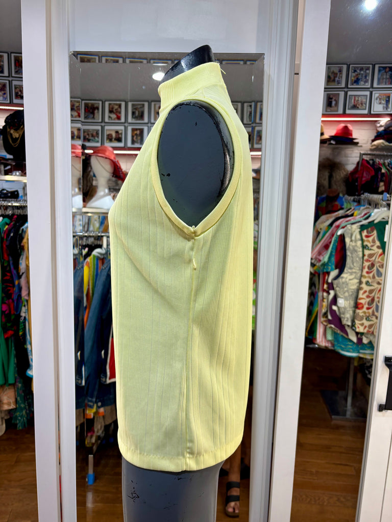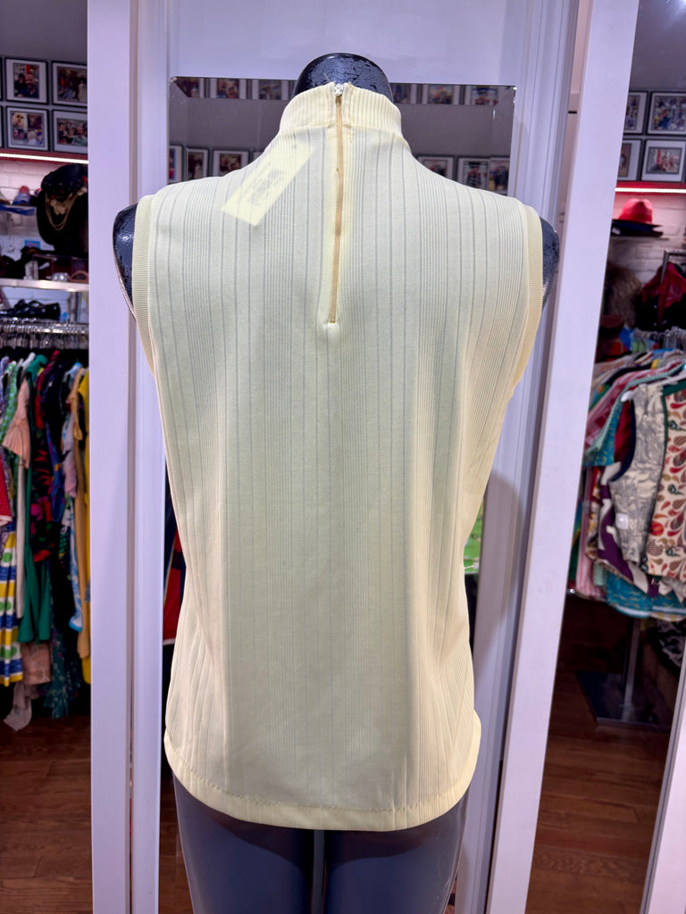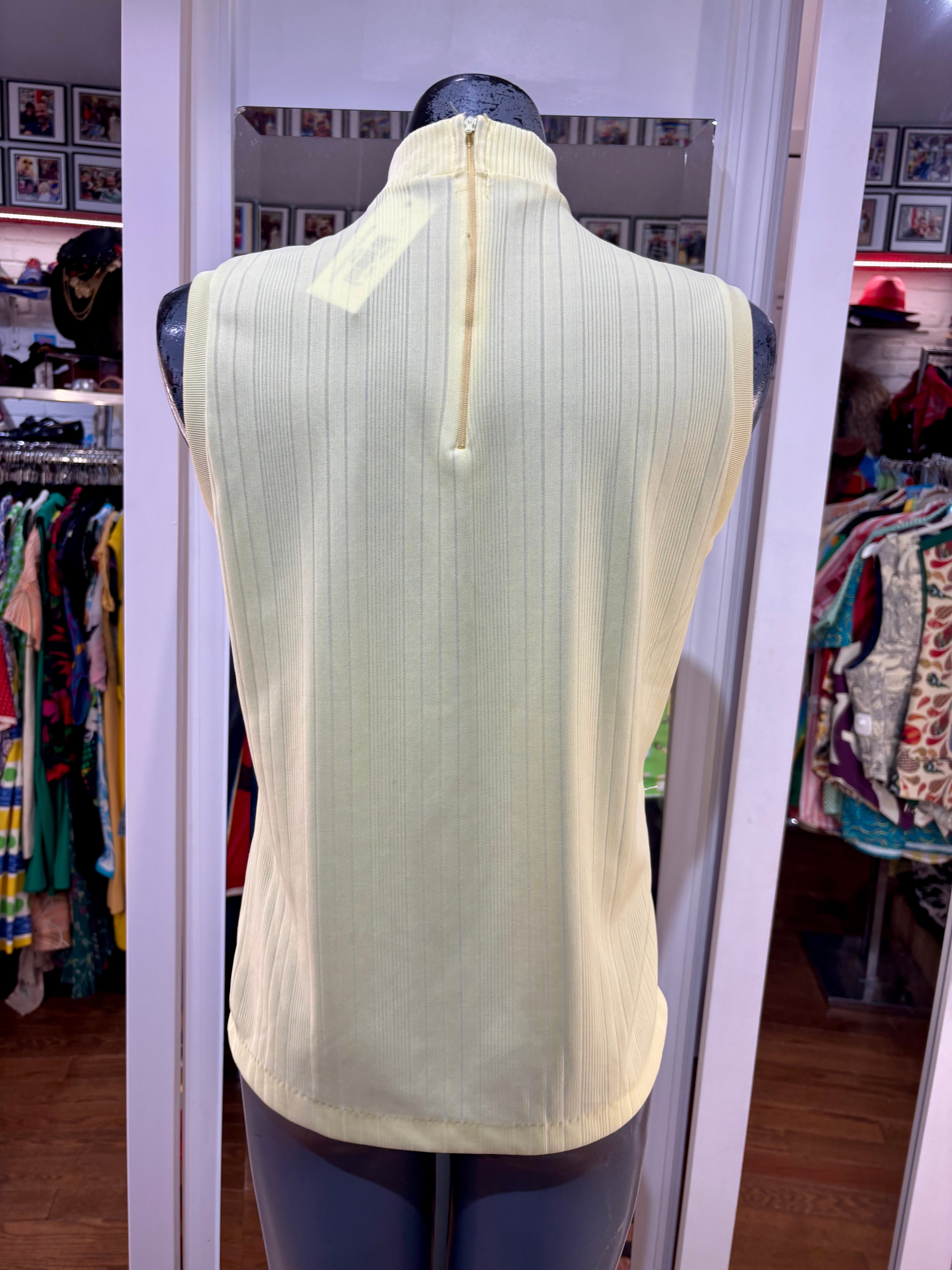 60’s Pale Yellow Monk Neck Sleeveless Top