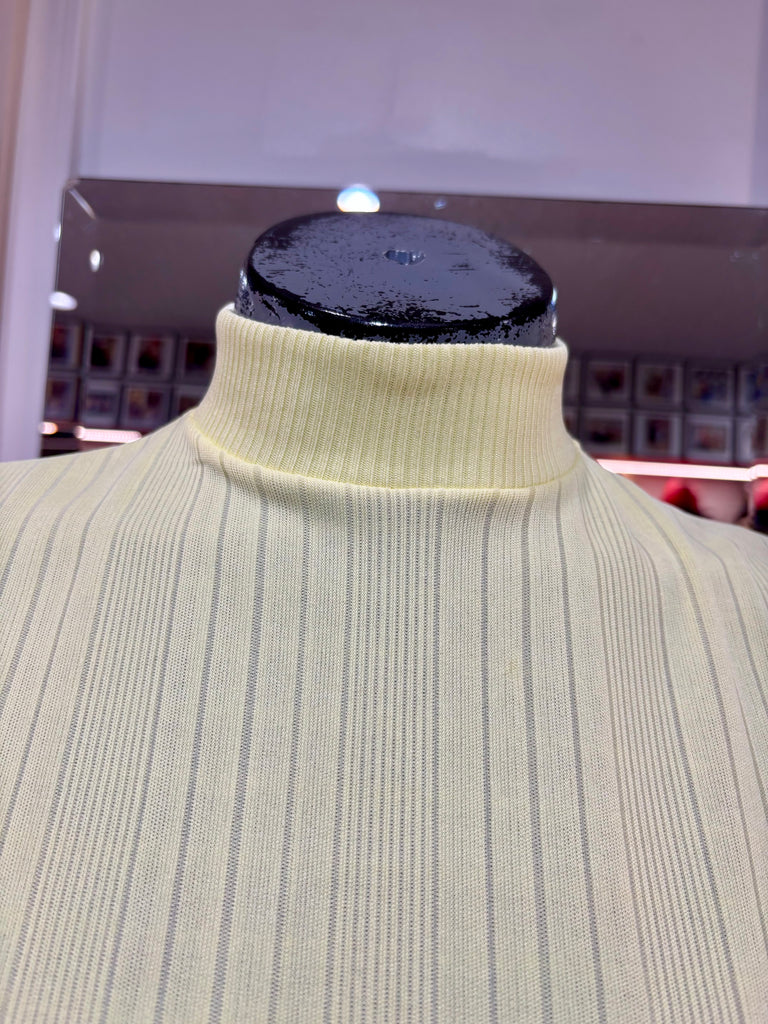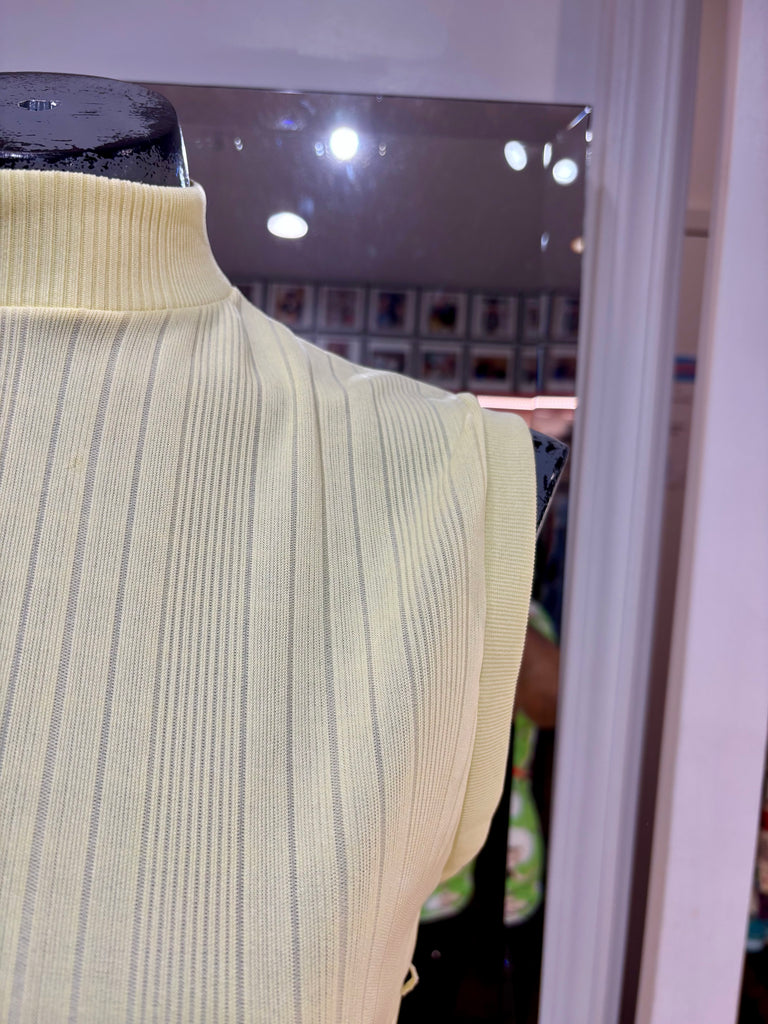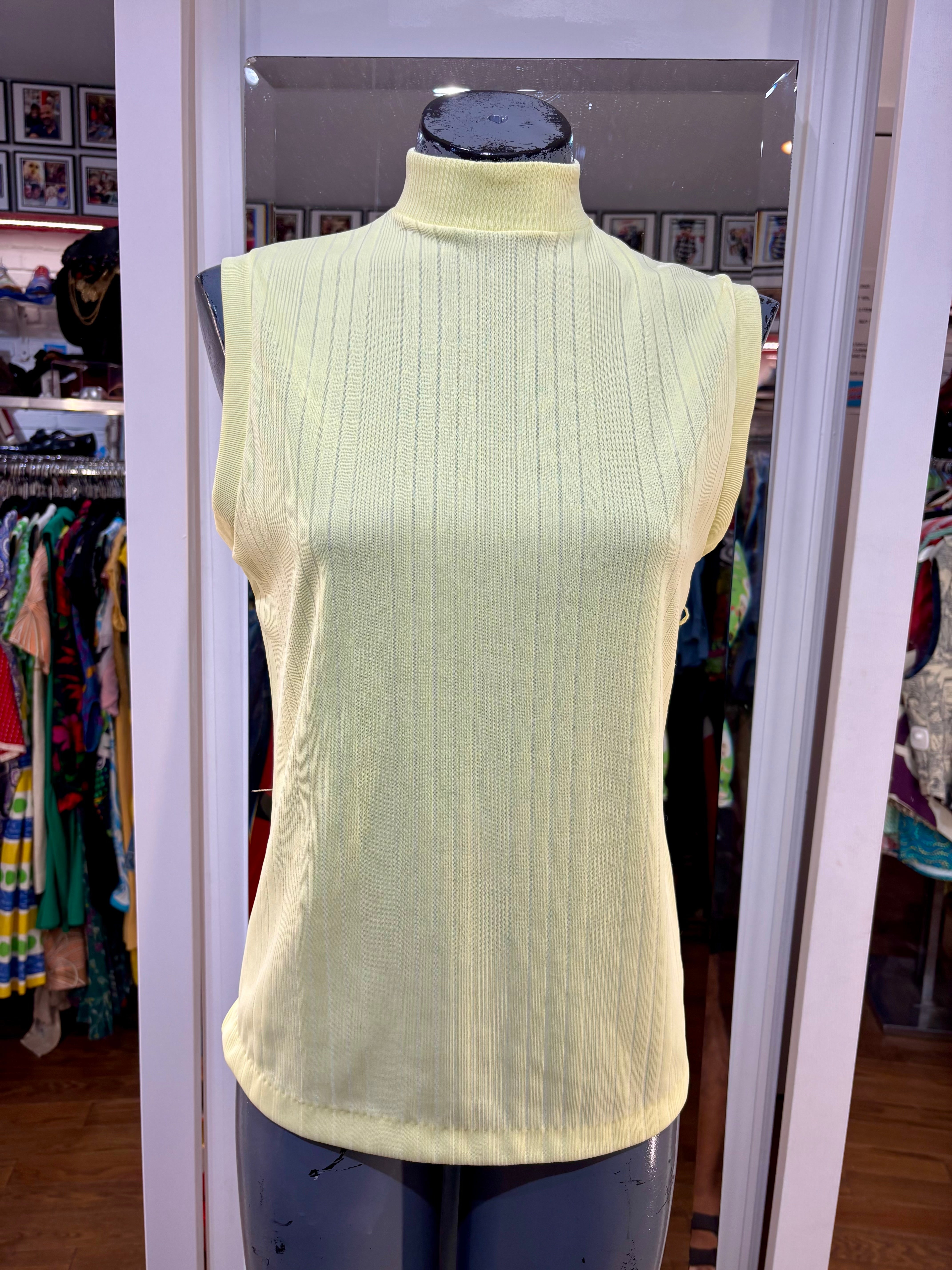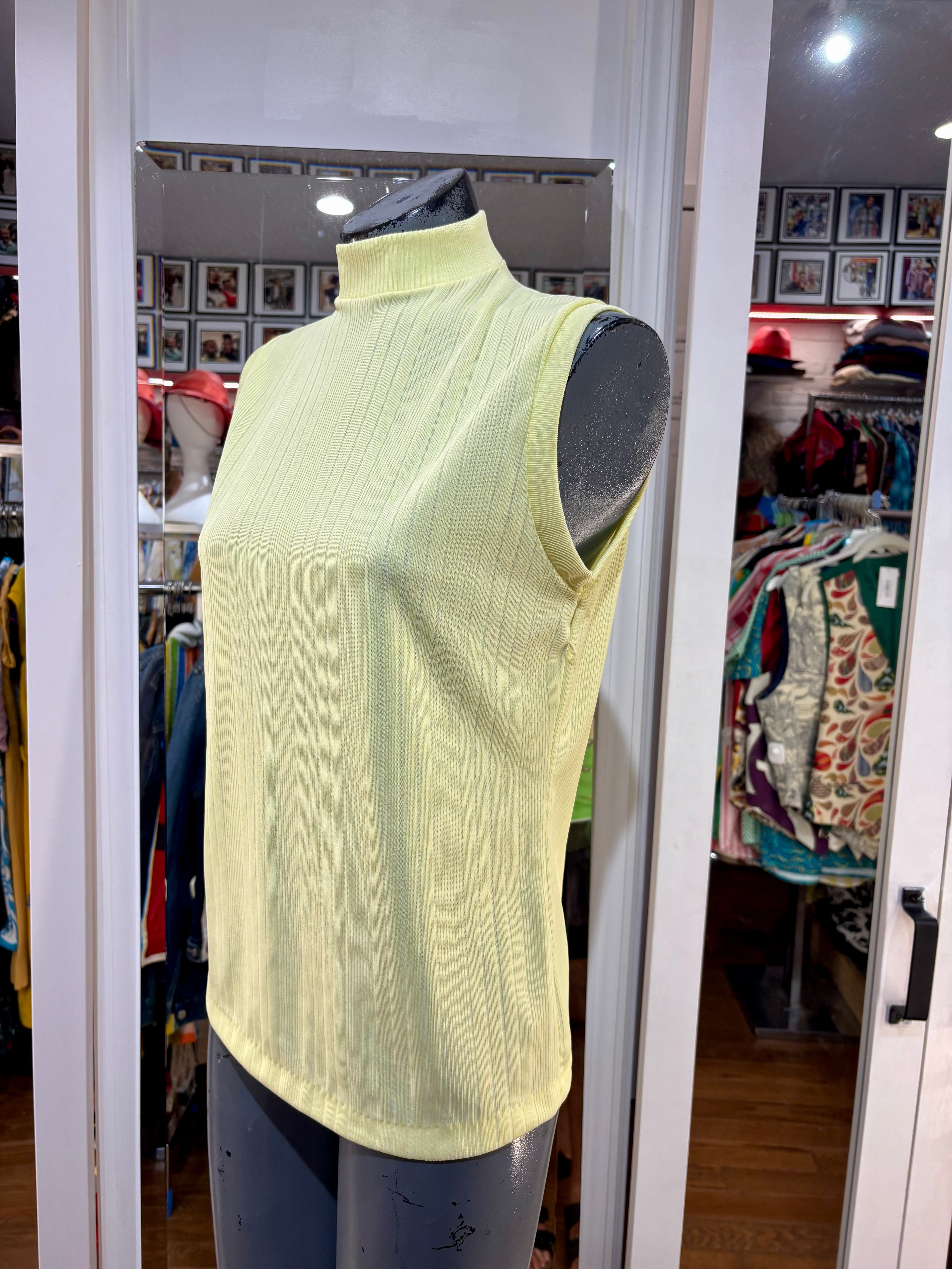 60’s Pale Yellow Monk Neck Sleeveless Top