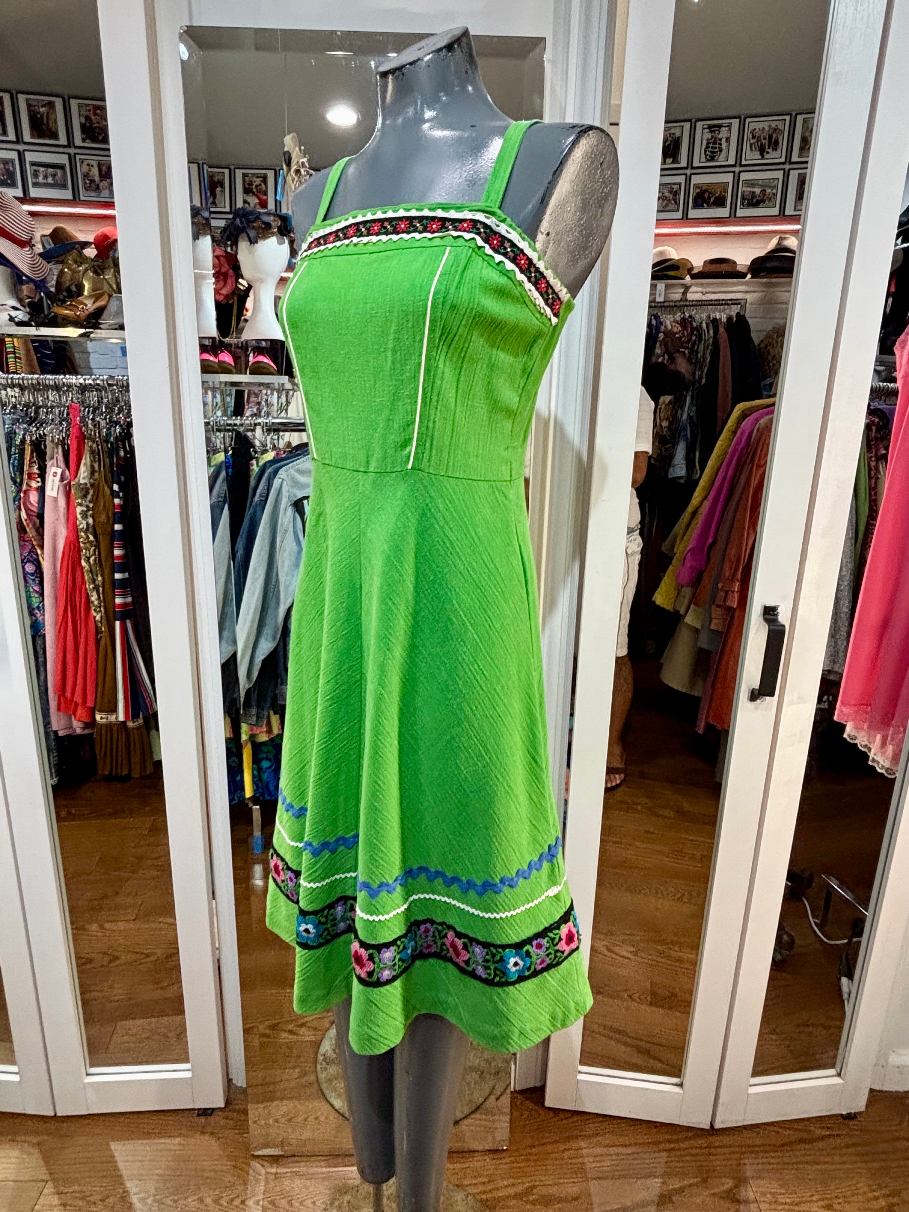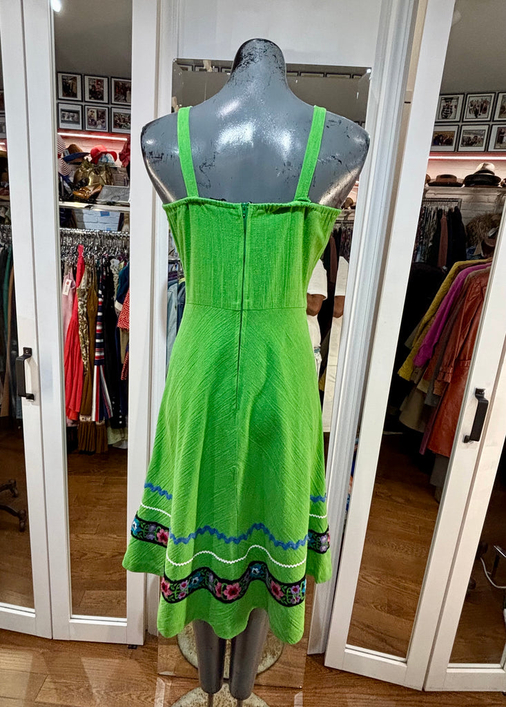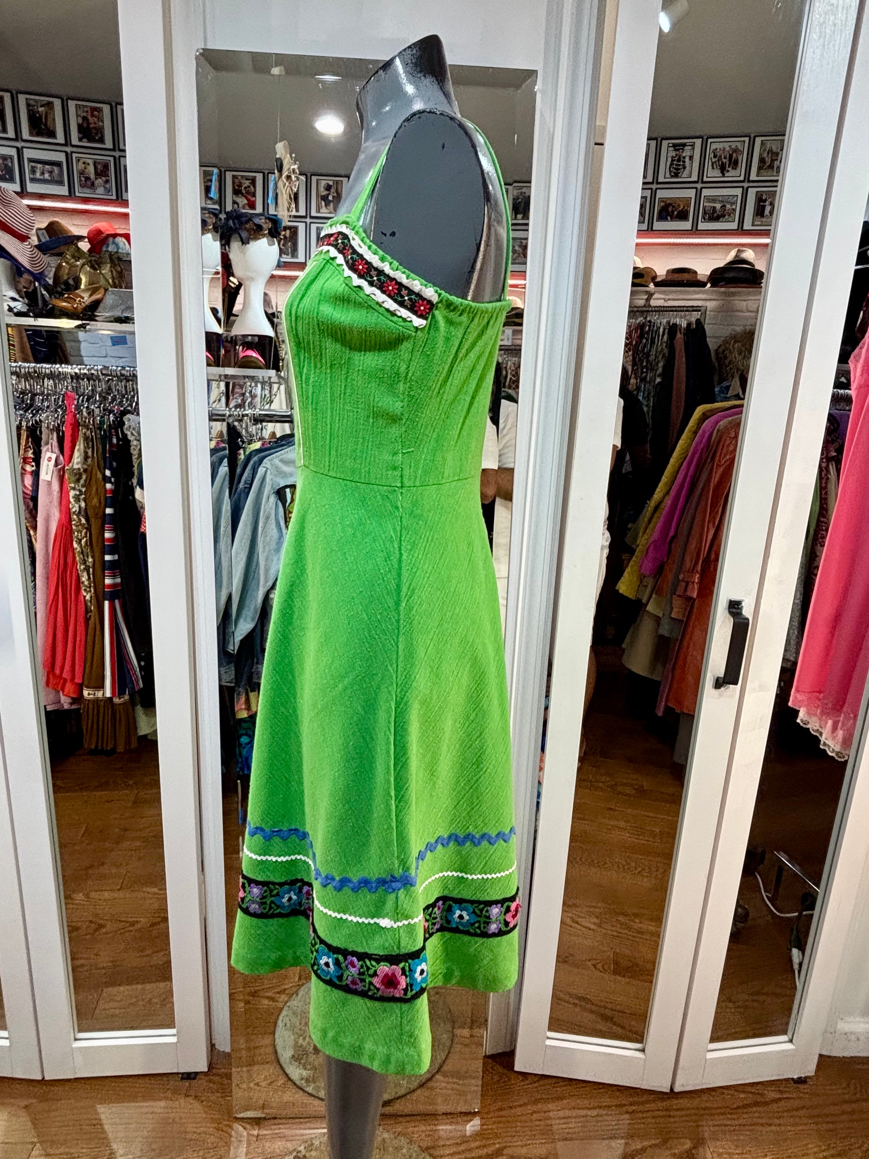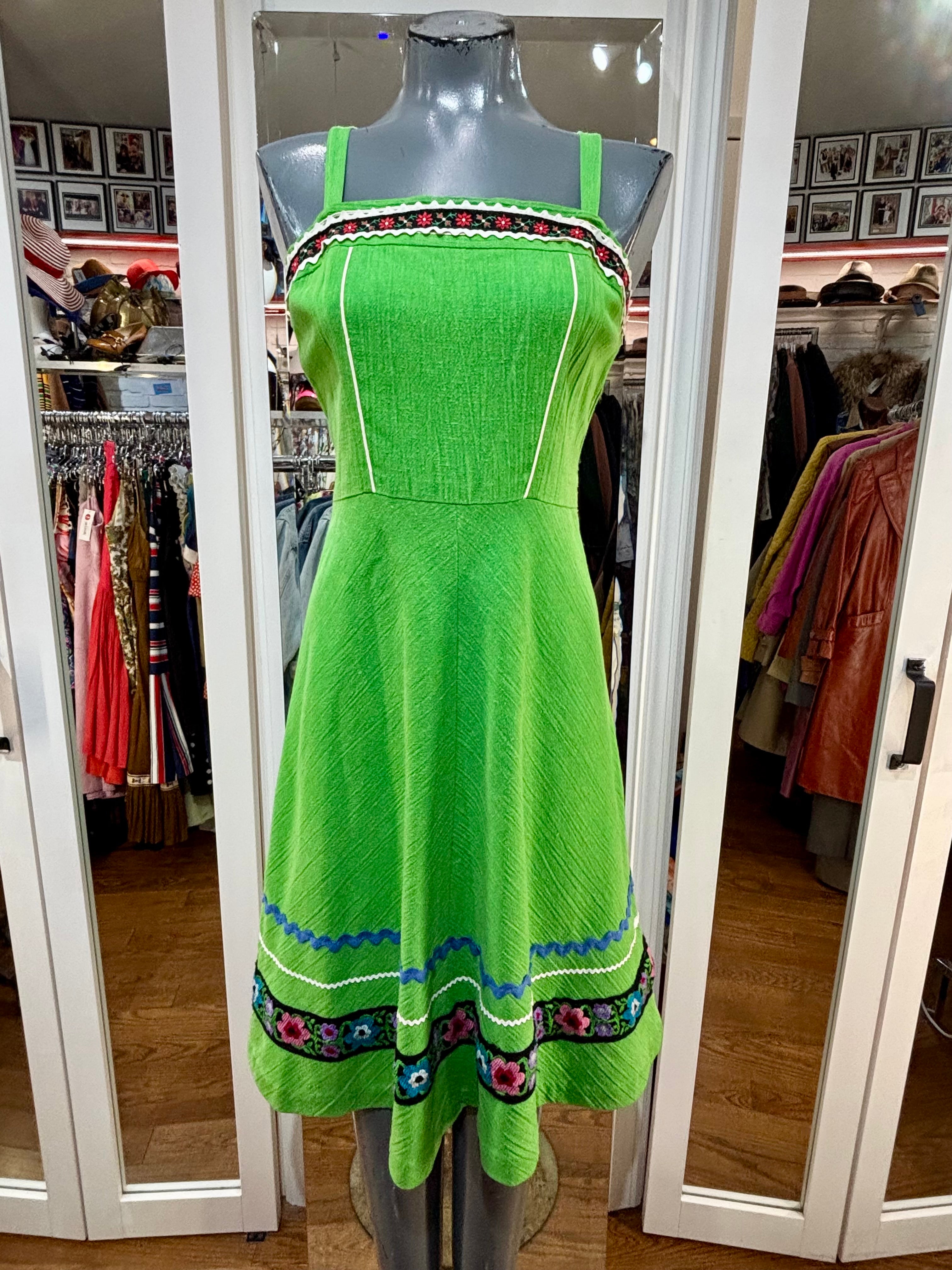 70’s Green With Multicolored Trim Fit & flare Dress By Byer California