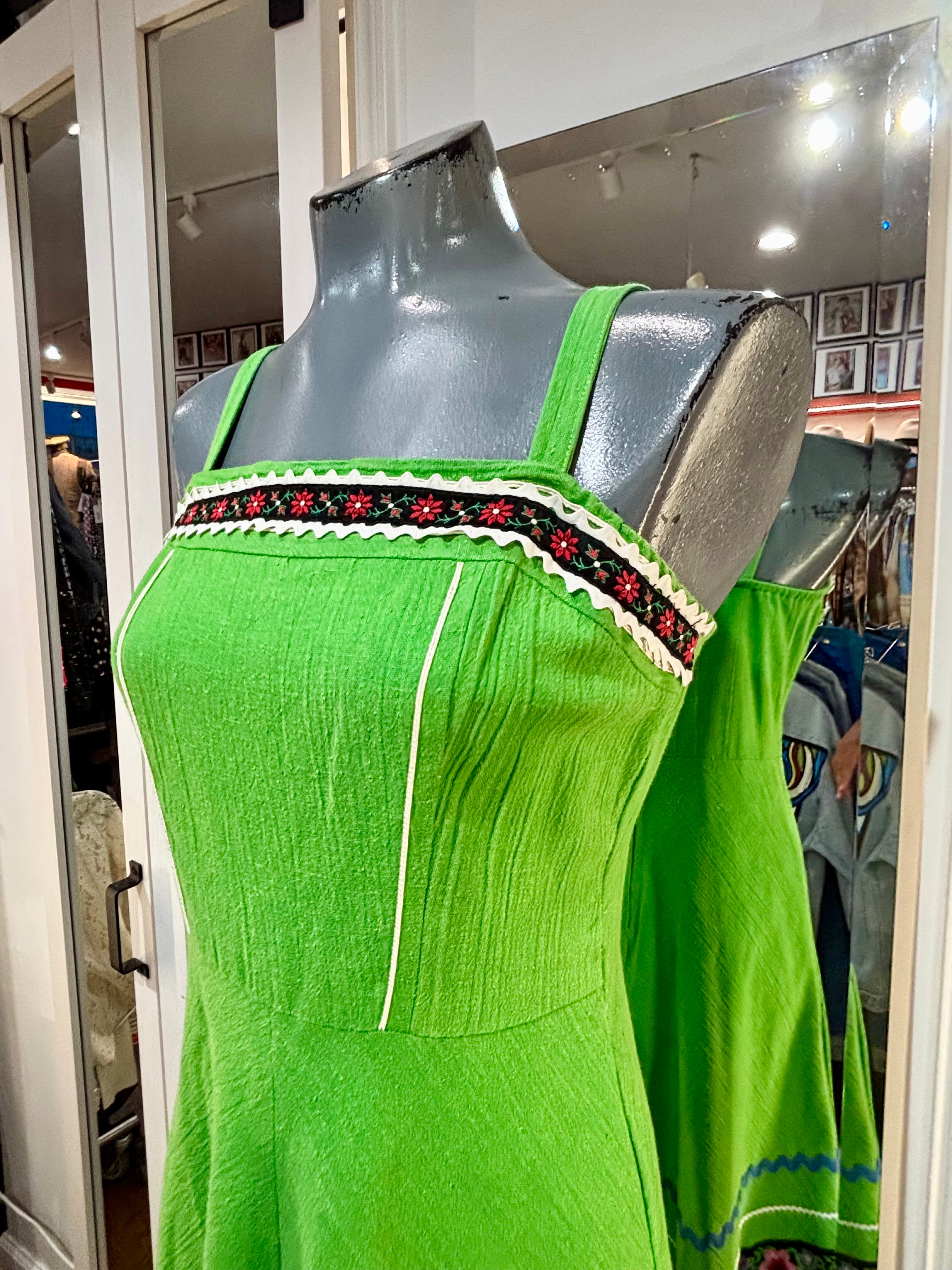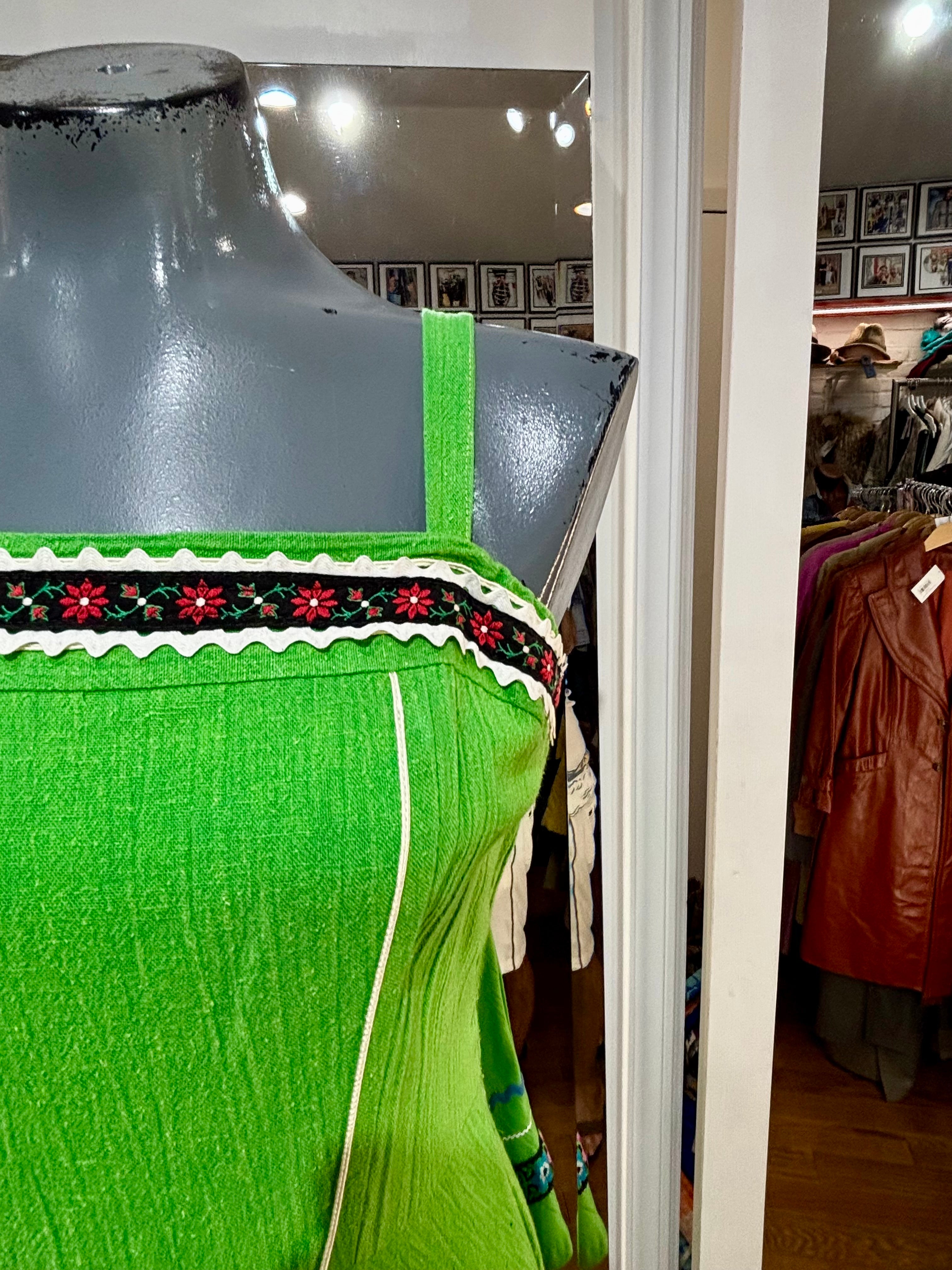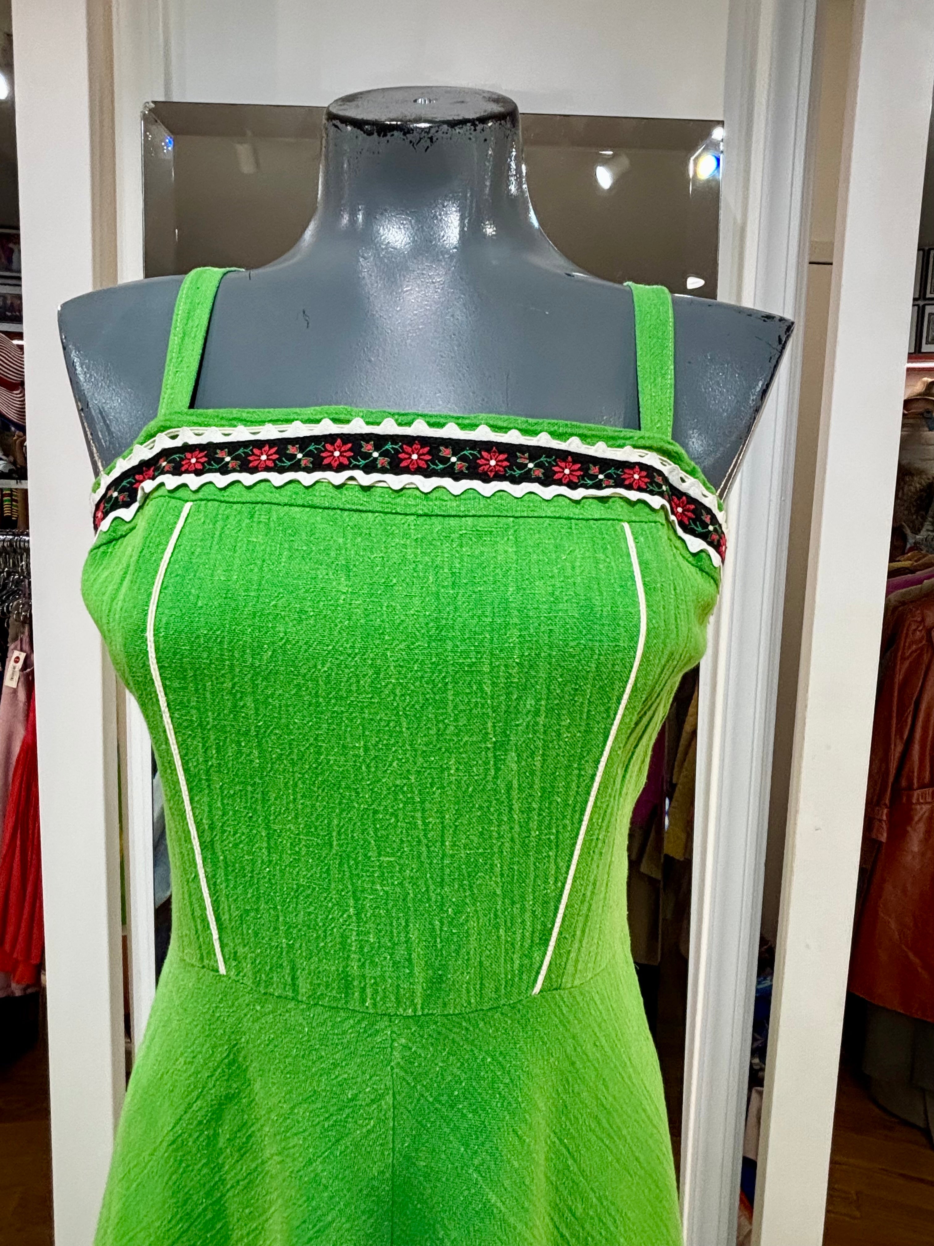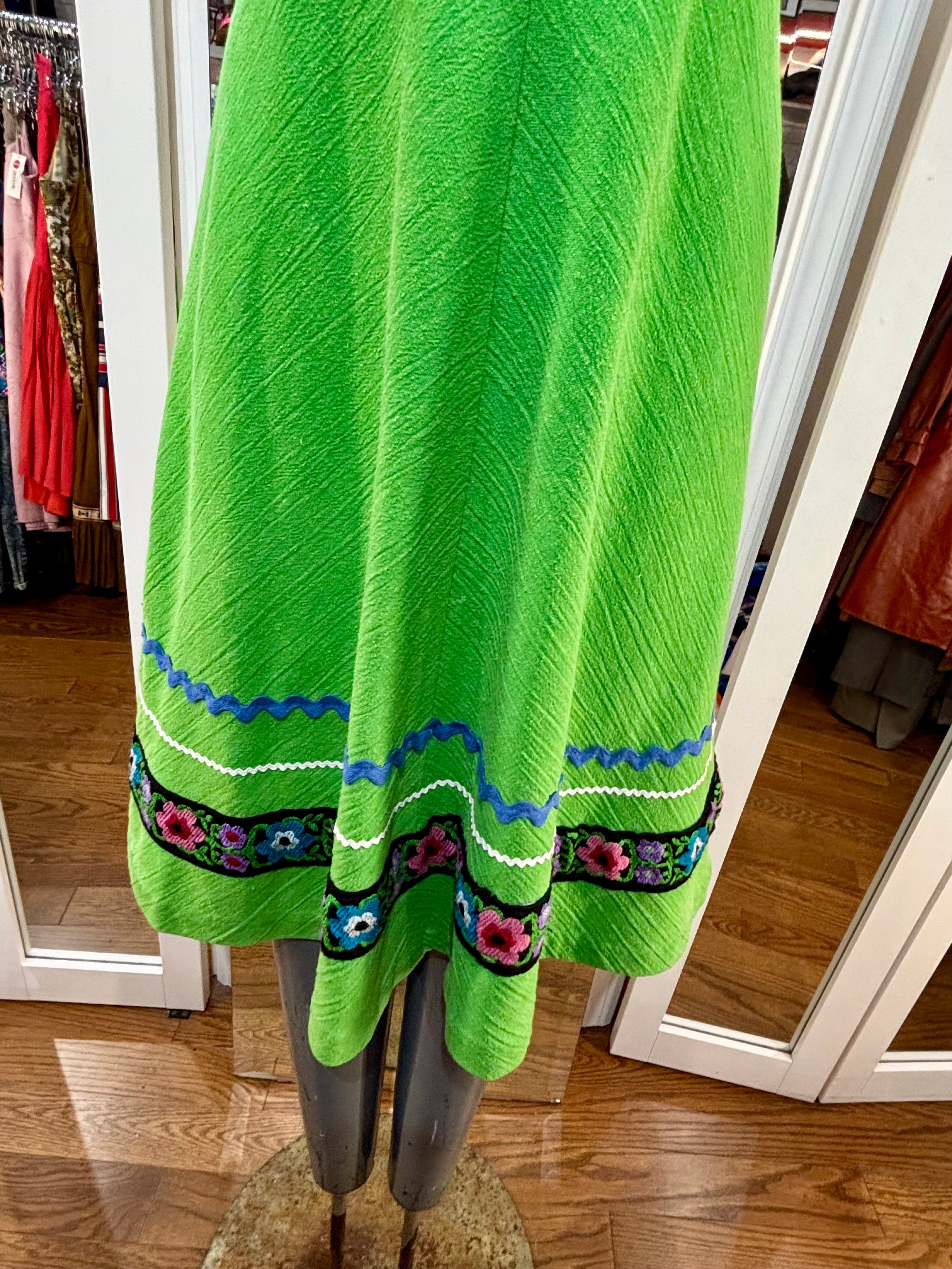 70’s Green With Multicolored Trim Fit & flare Dress By Byer California
