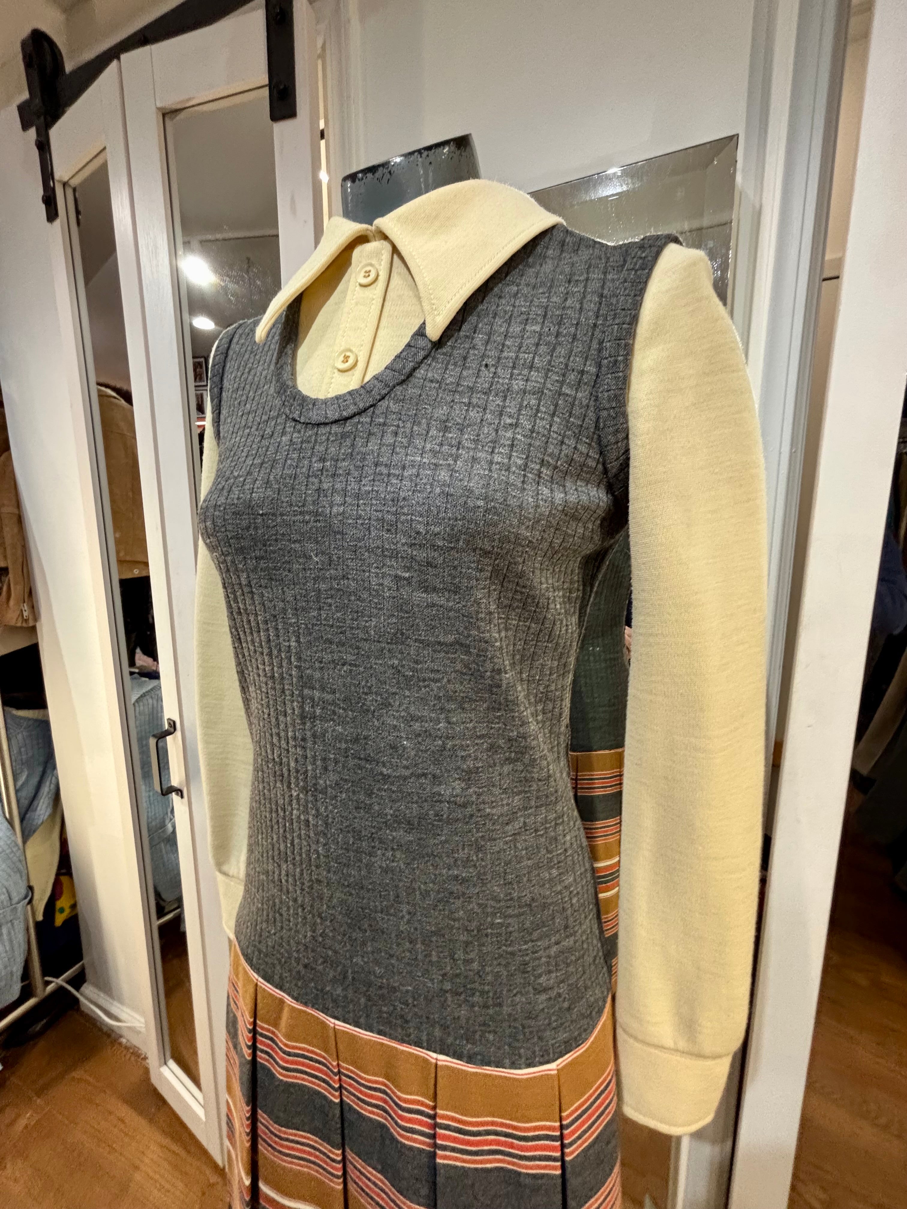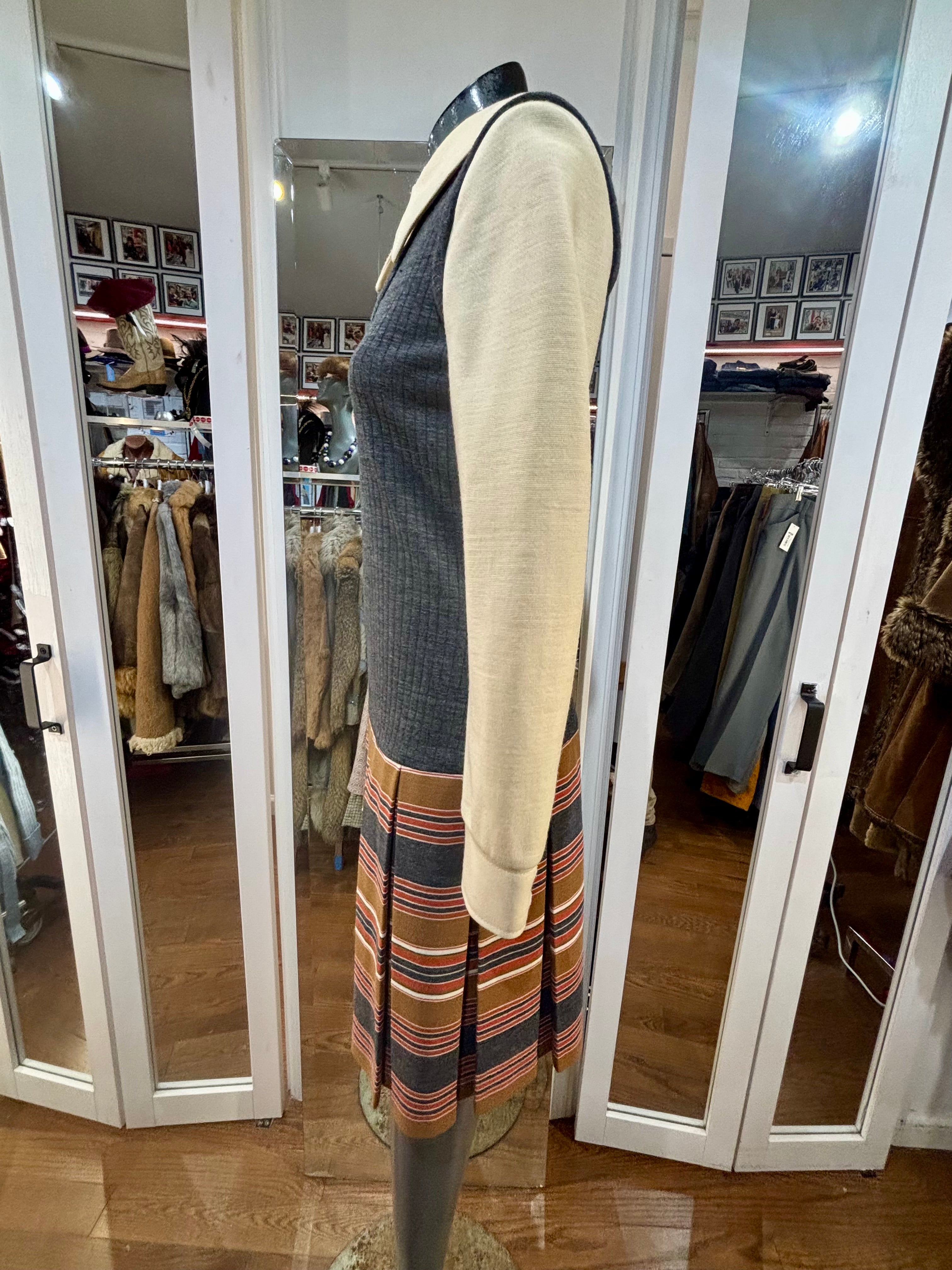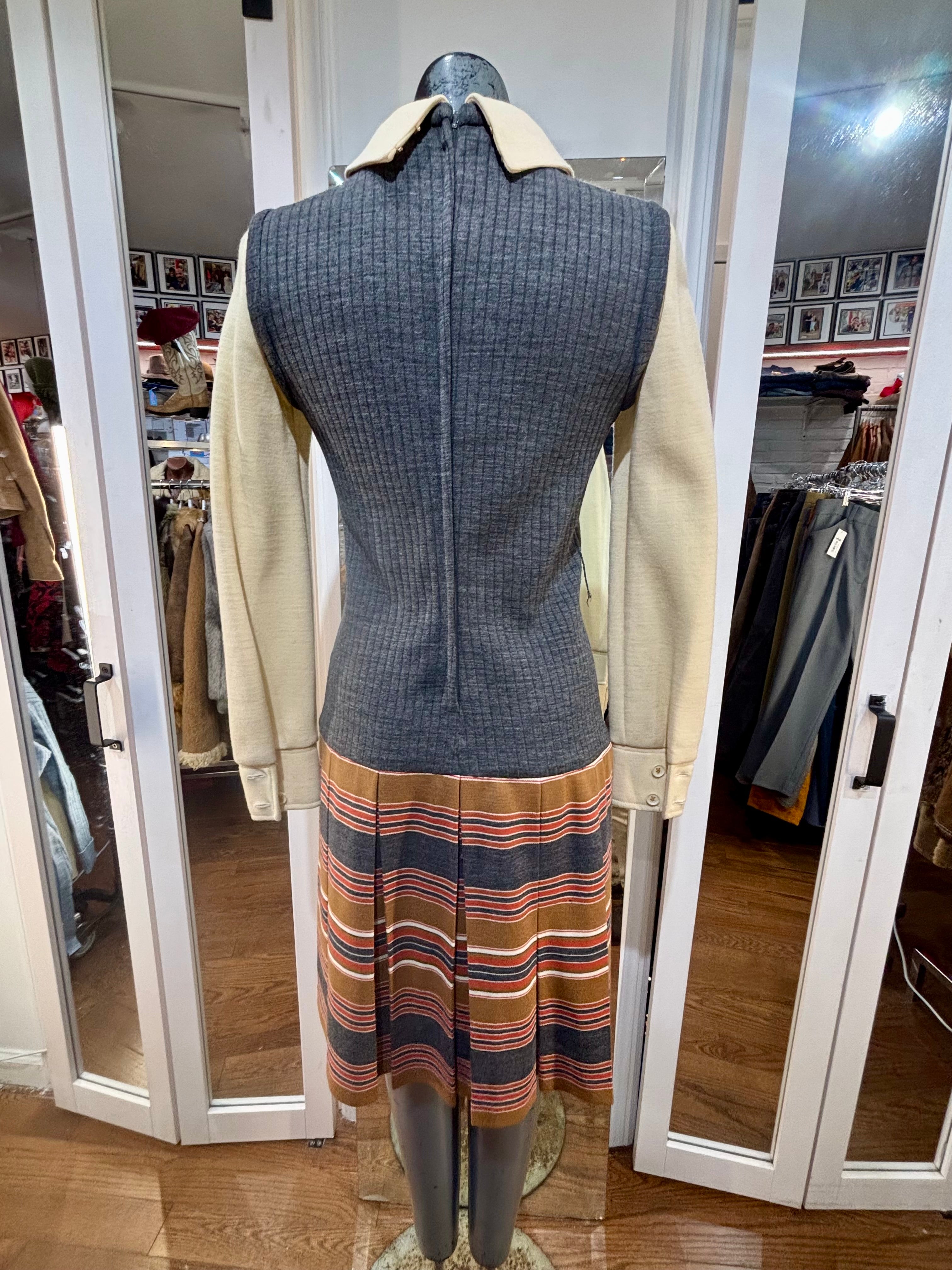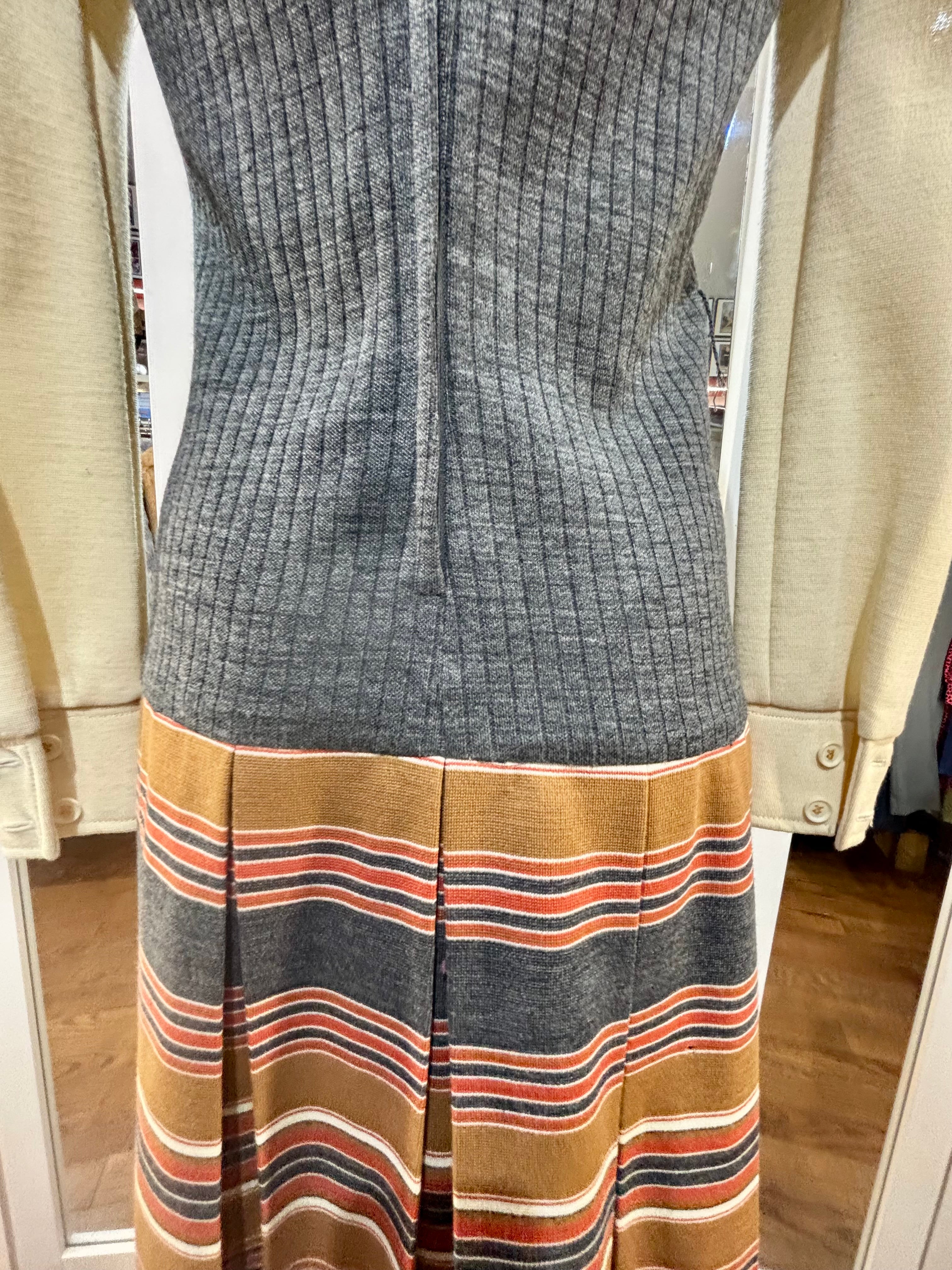 70’s Grey Multicolor Stripes Dress With under Shirt Illusion By Butte Knit
