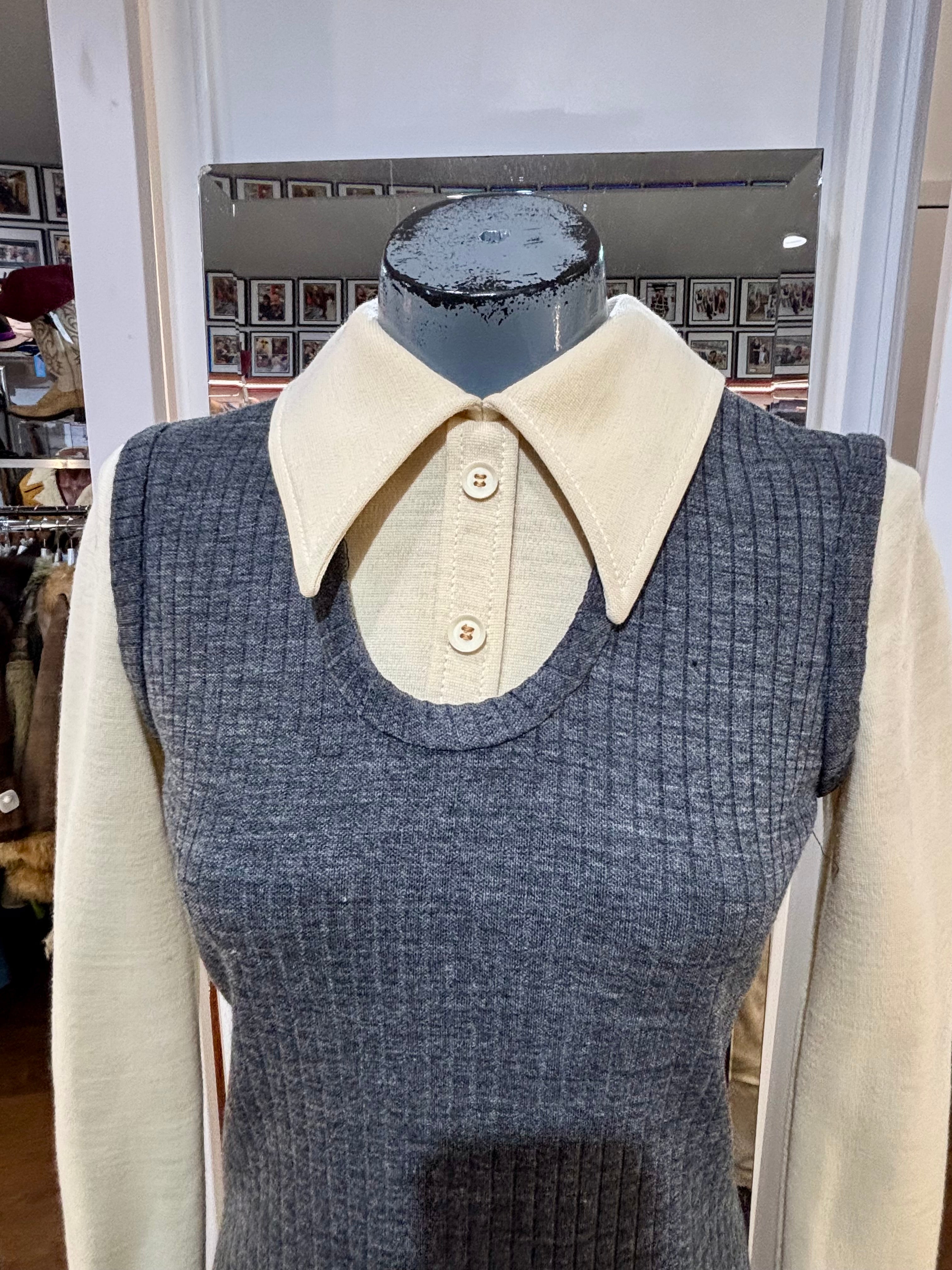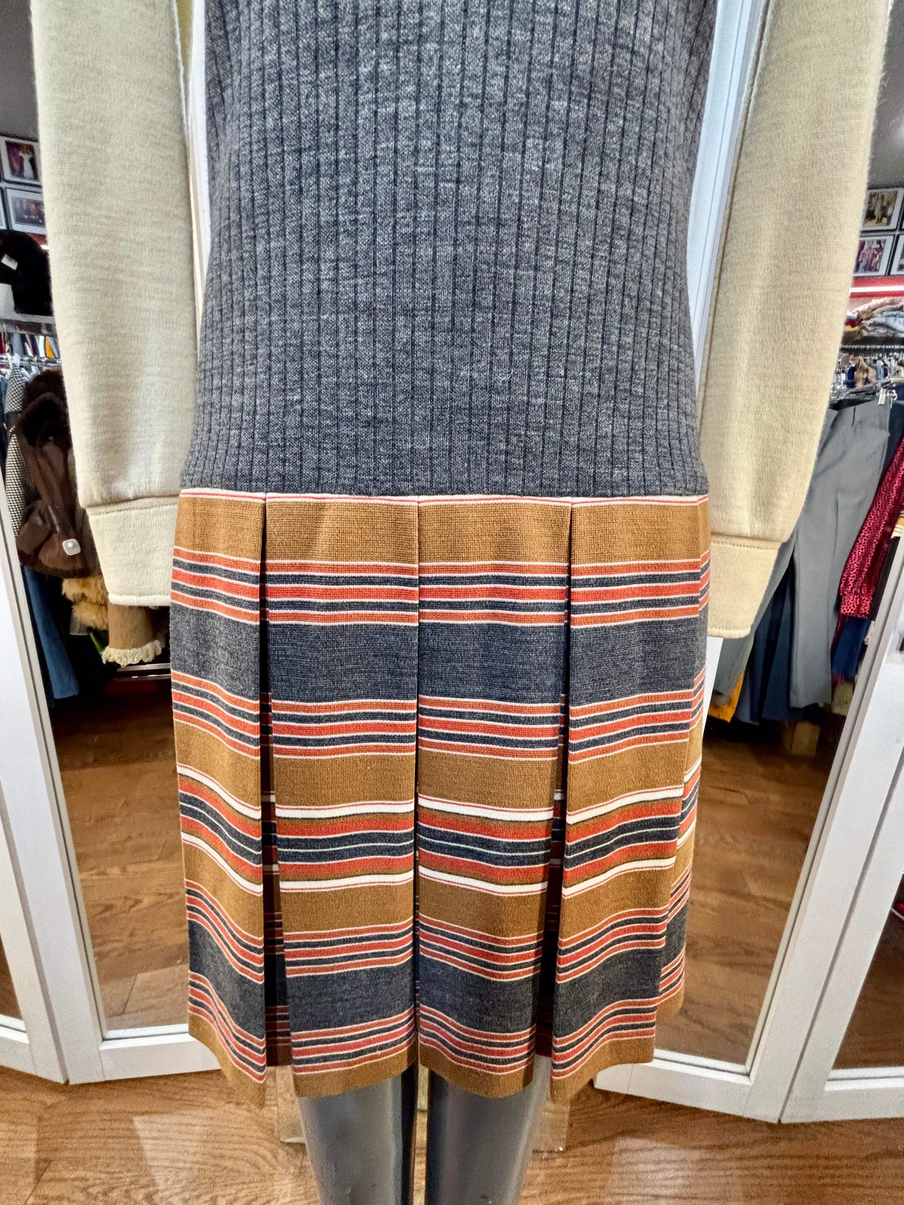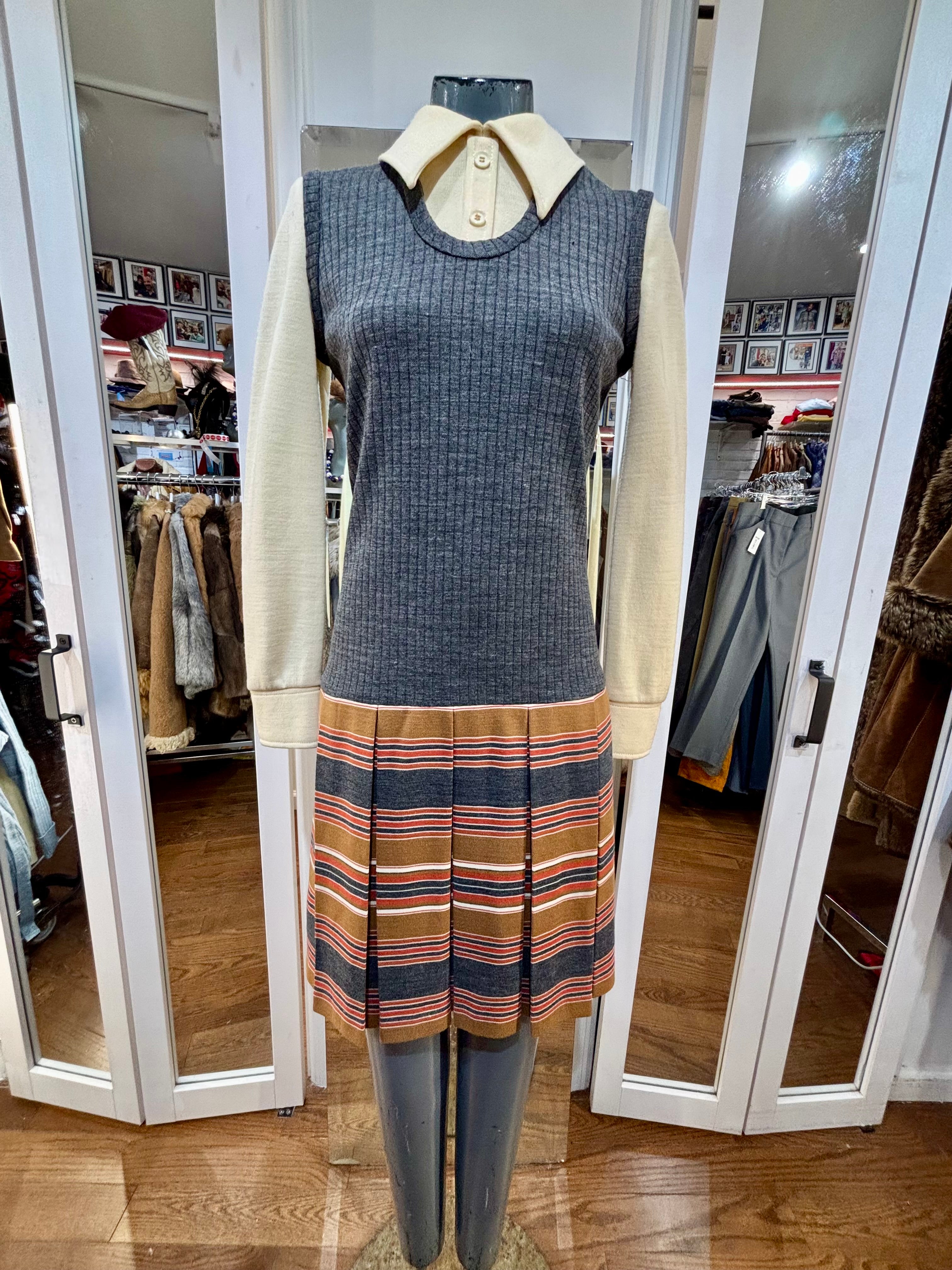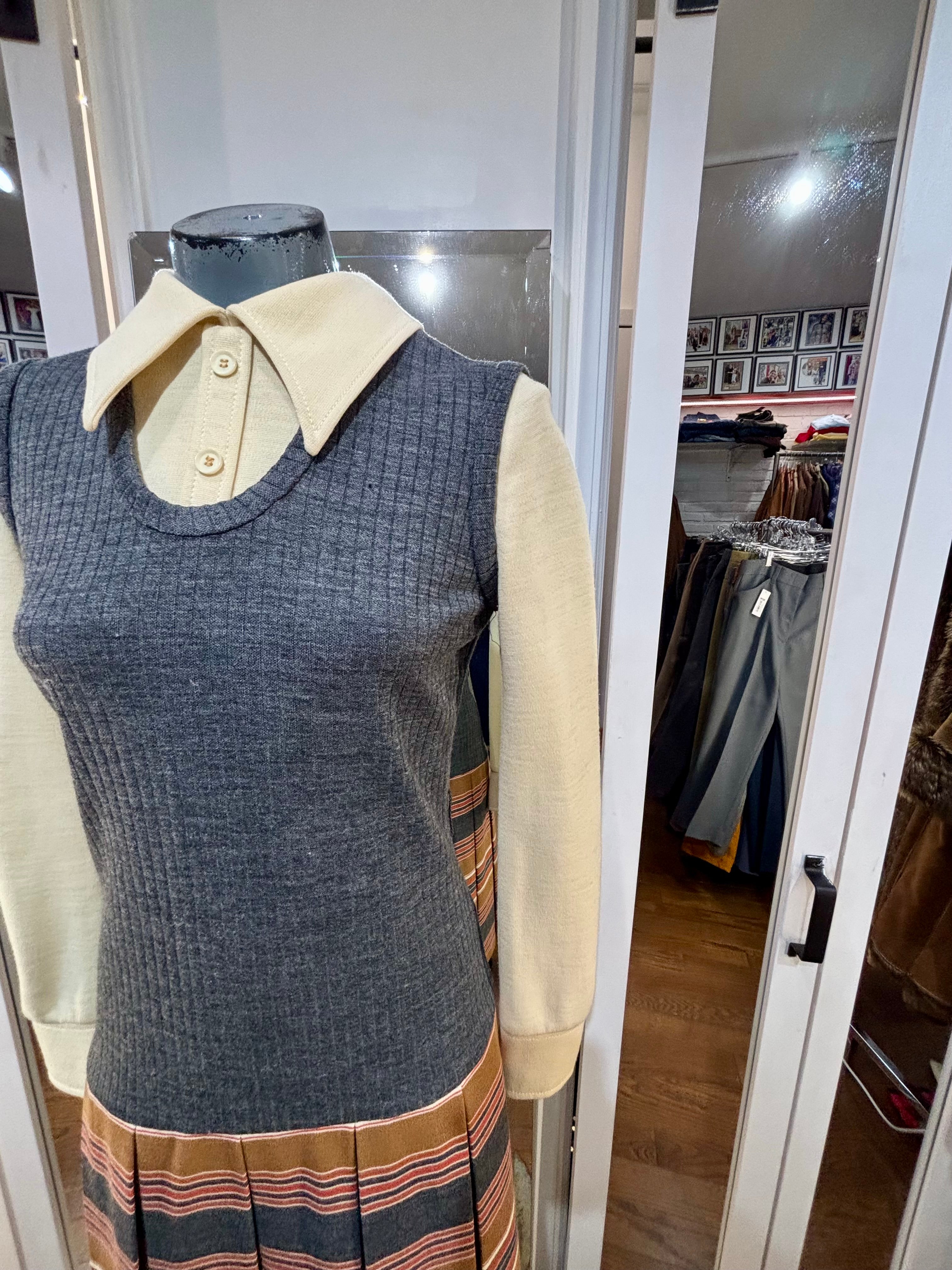 70’s Grey Multicolor Stripes Dress With under Shirt Illusion By Butte Knit
