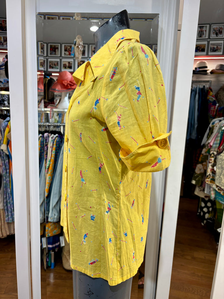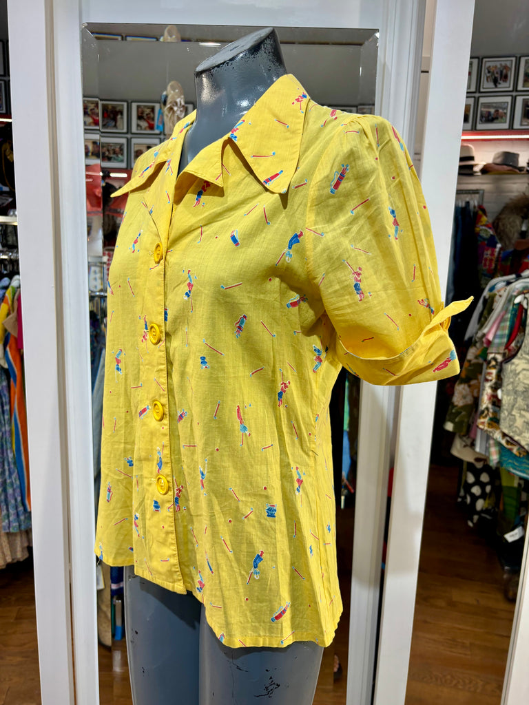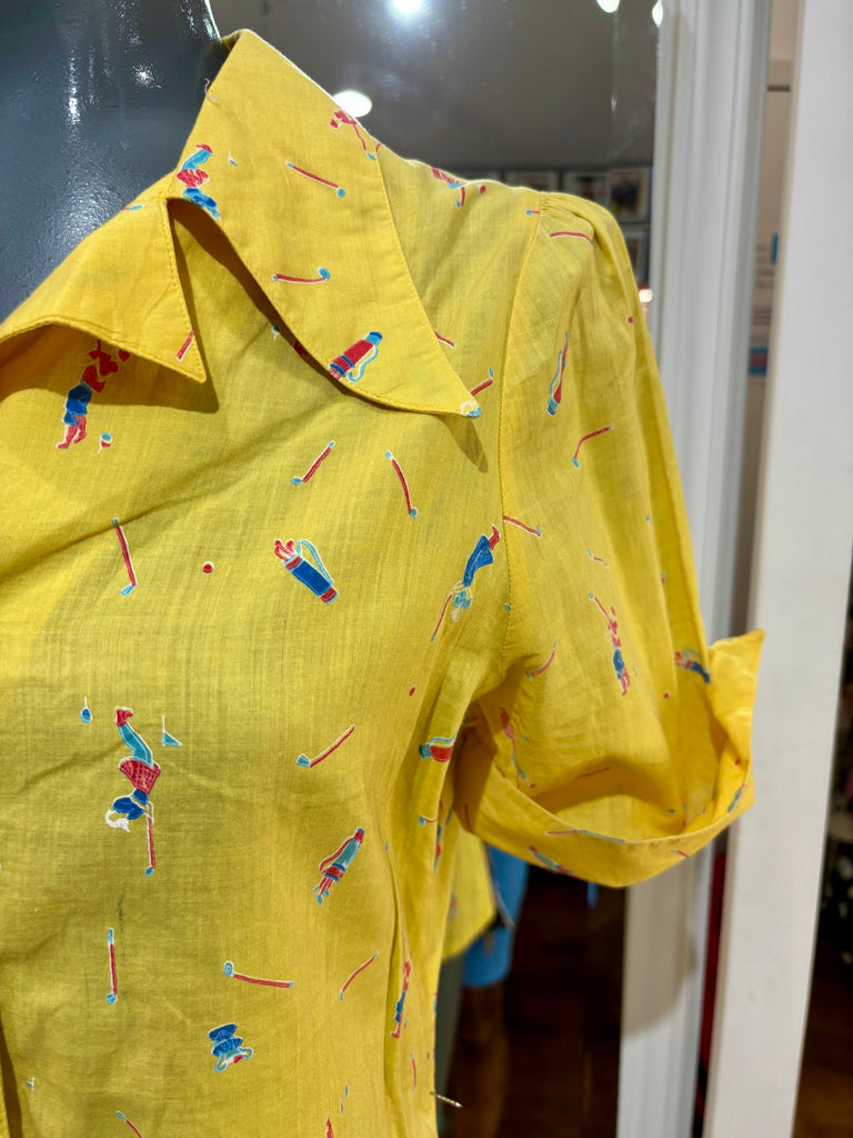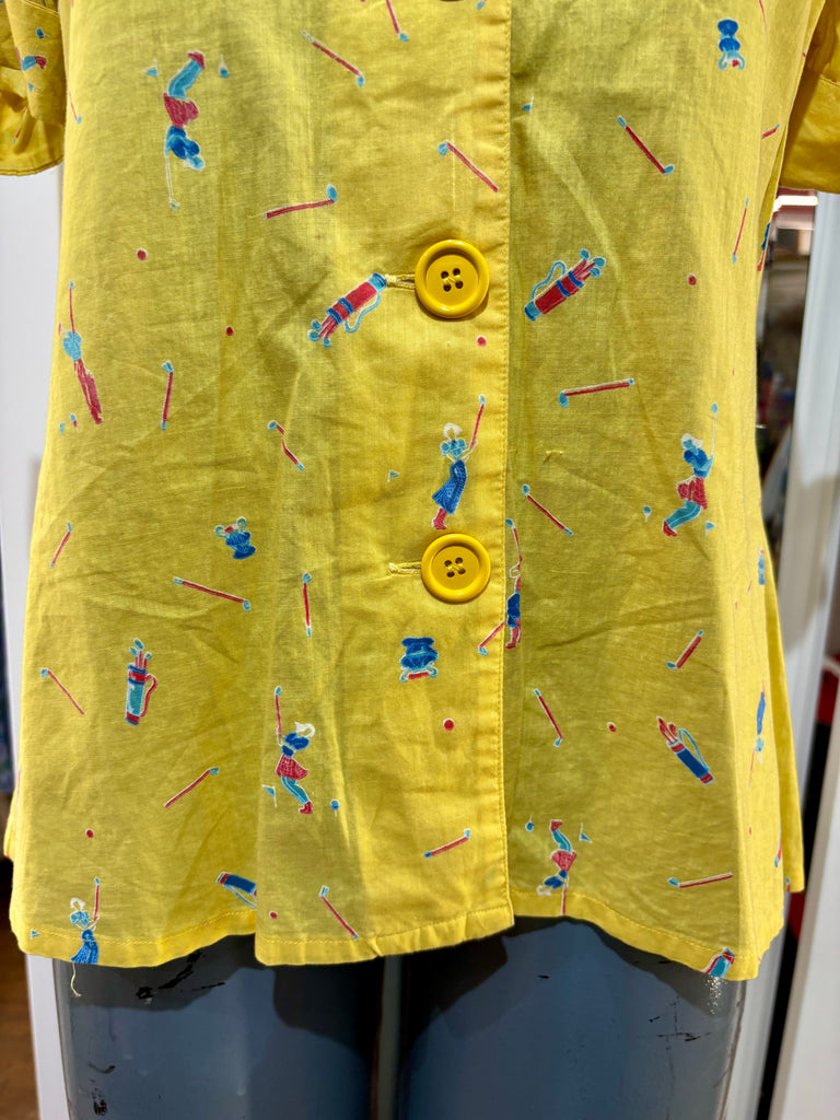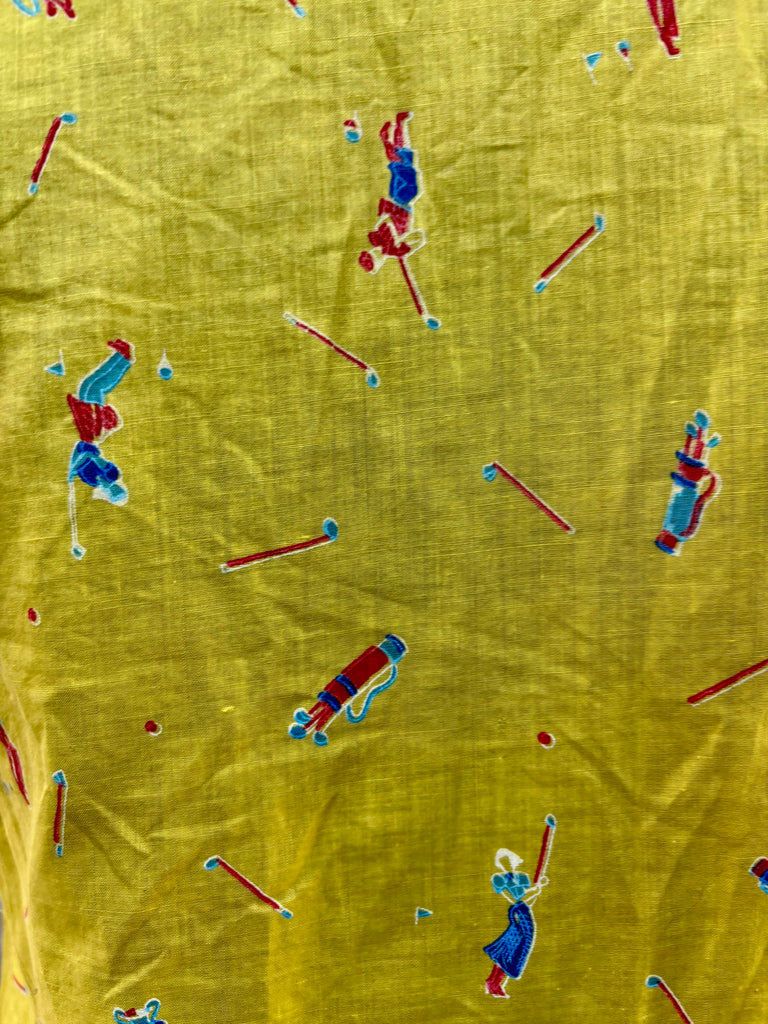 70’s pale Yellow Multicolor Golf Scenery Short Sleeve Shirt