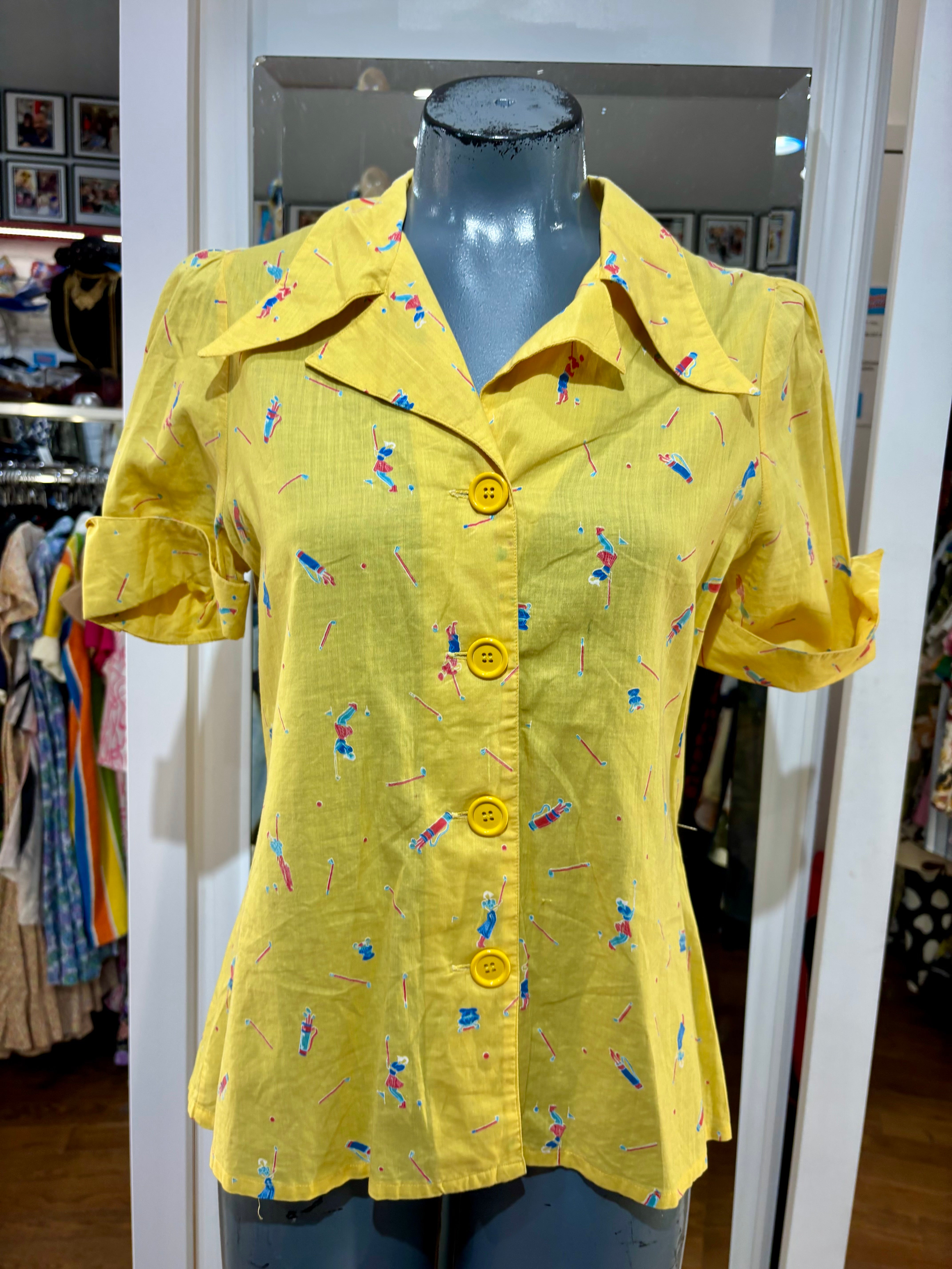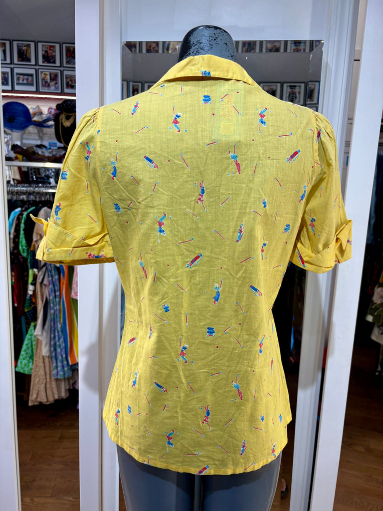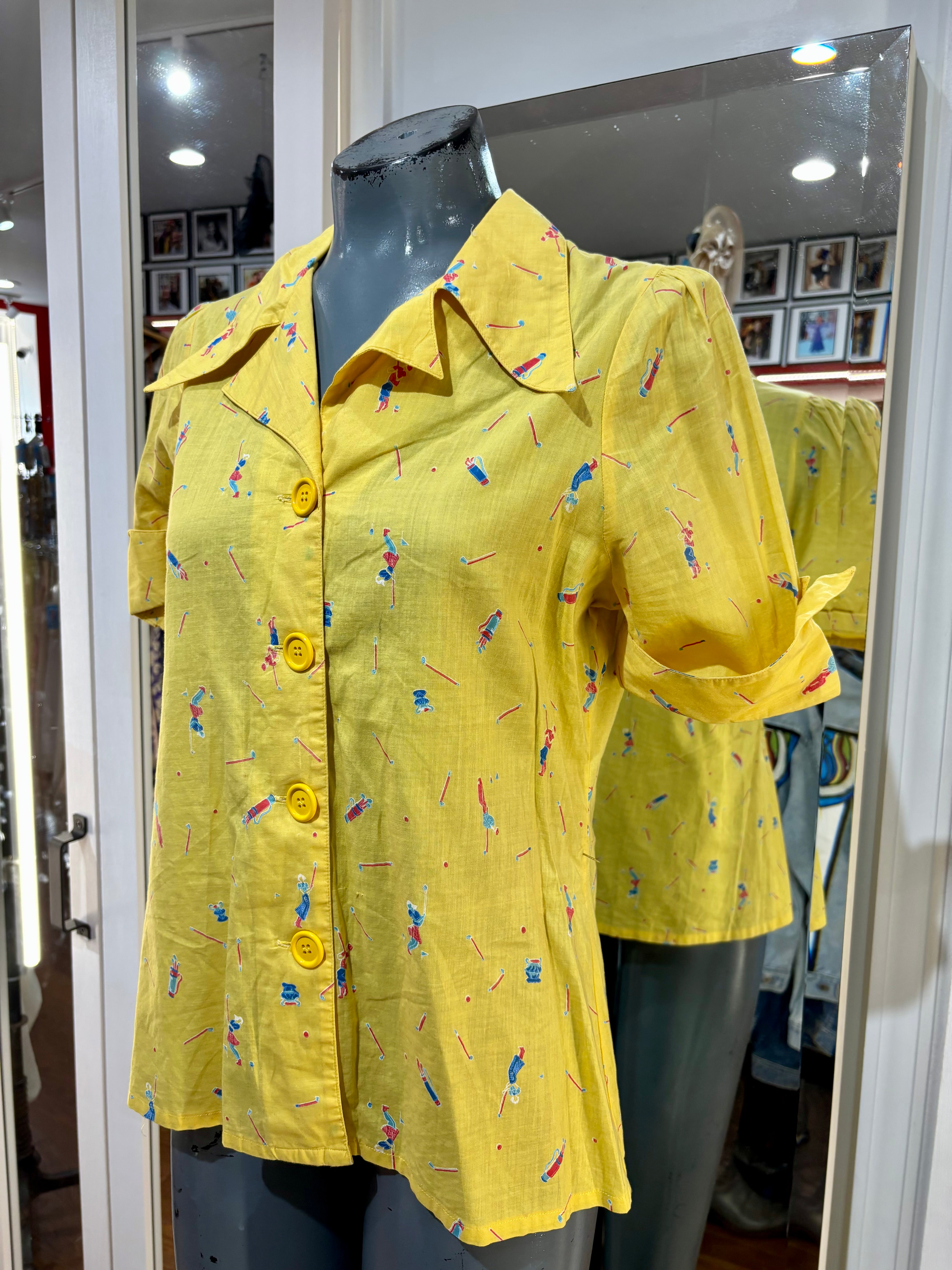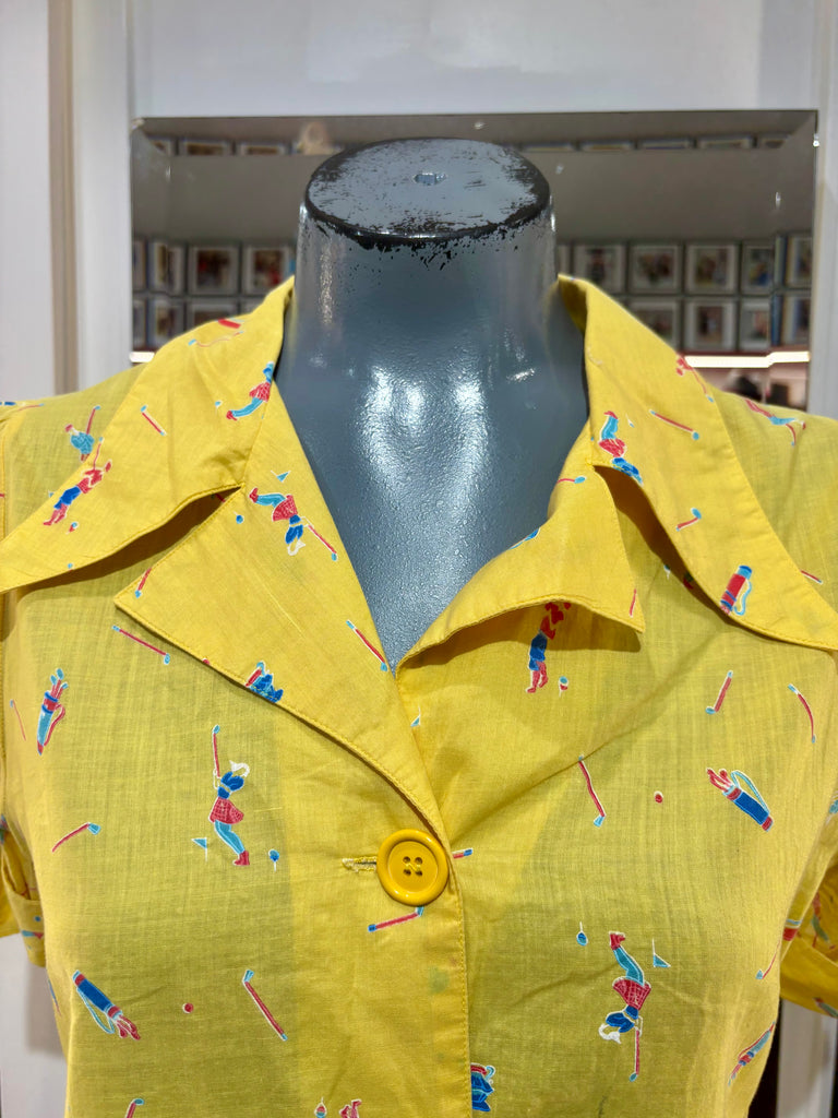 70’s pale Yellow Multicolor Golf Scenery Short Sleeve Shirt