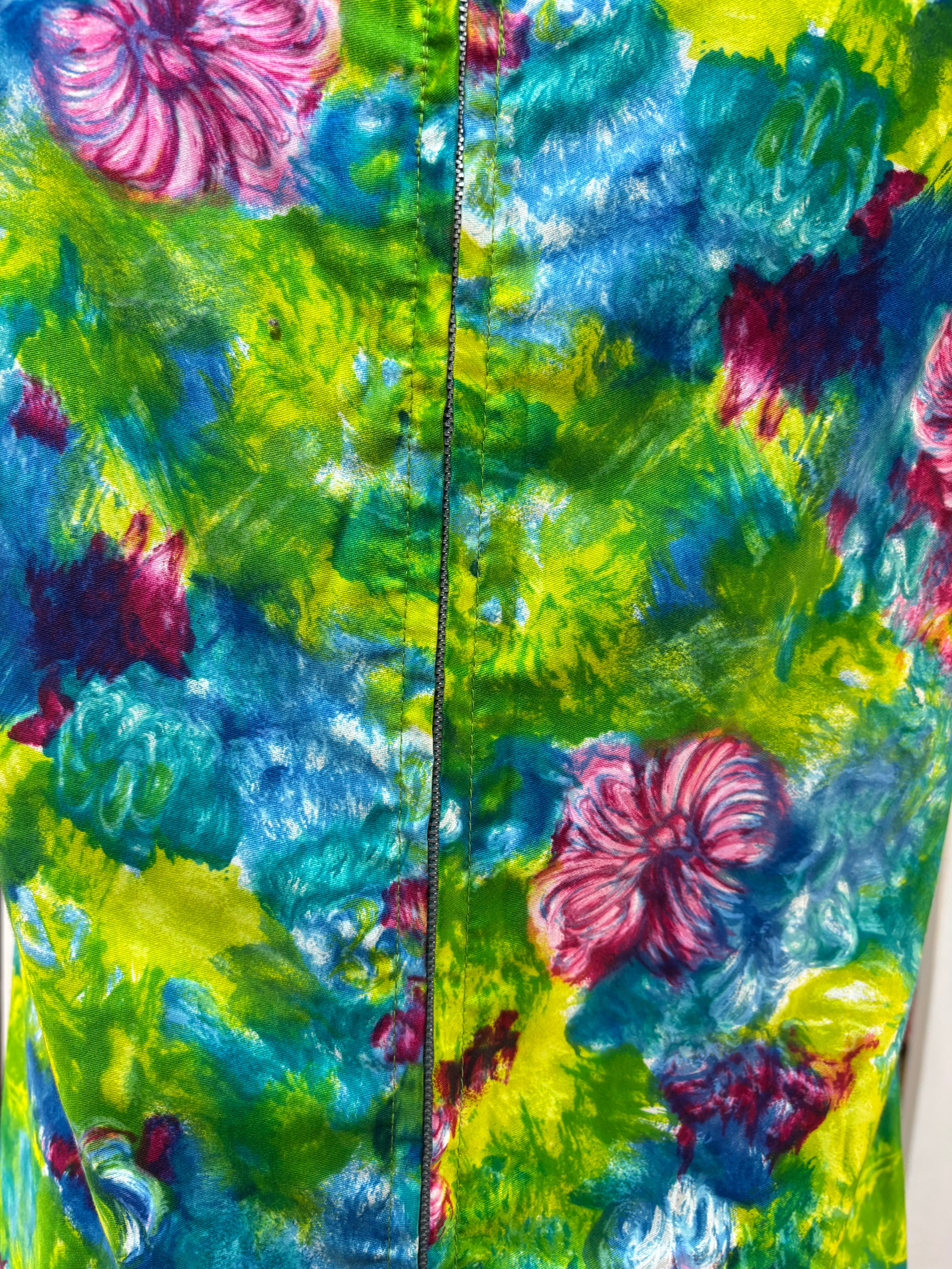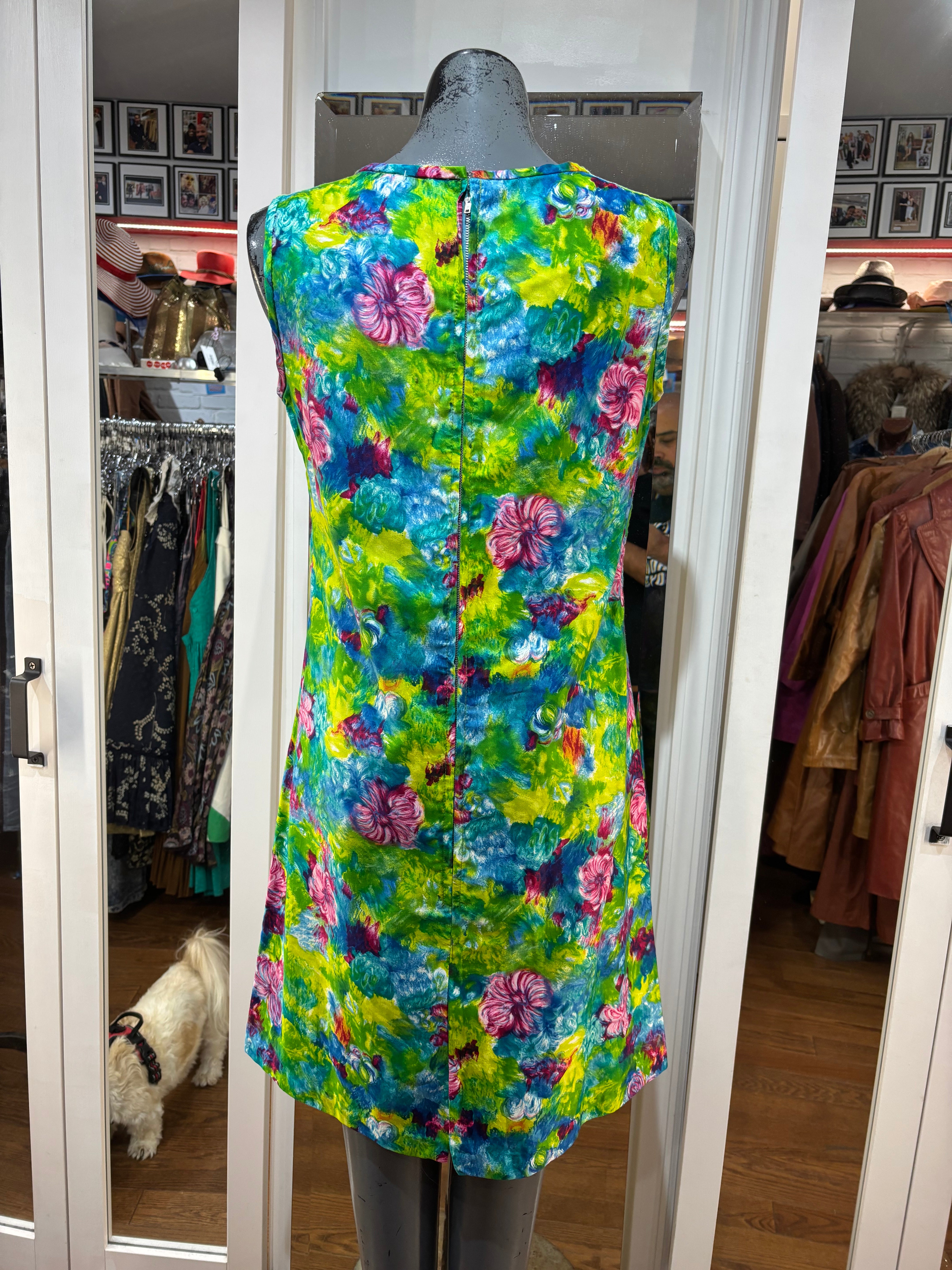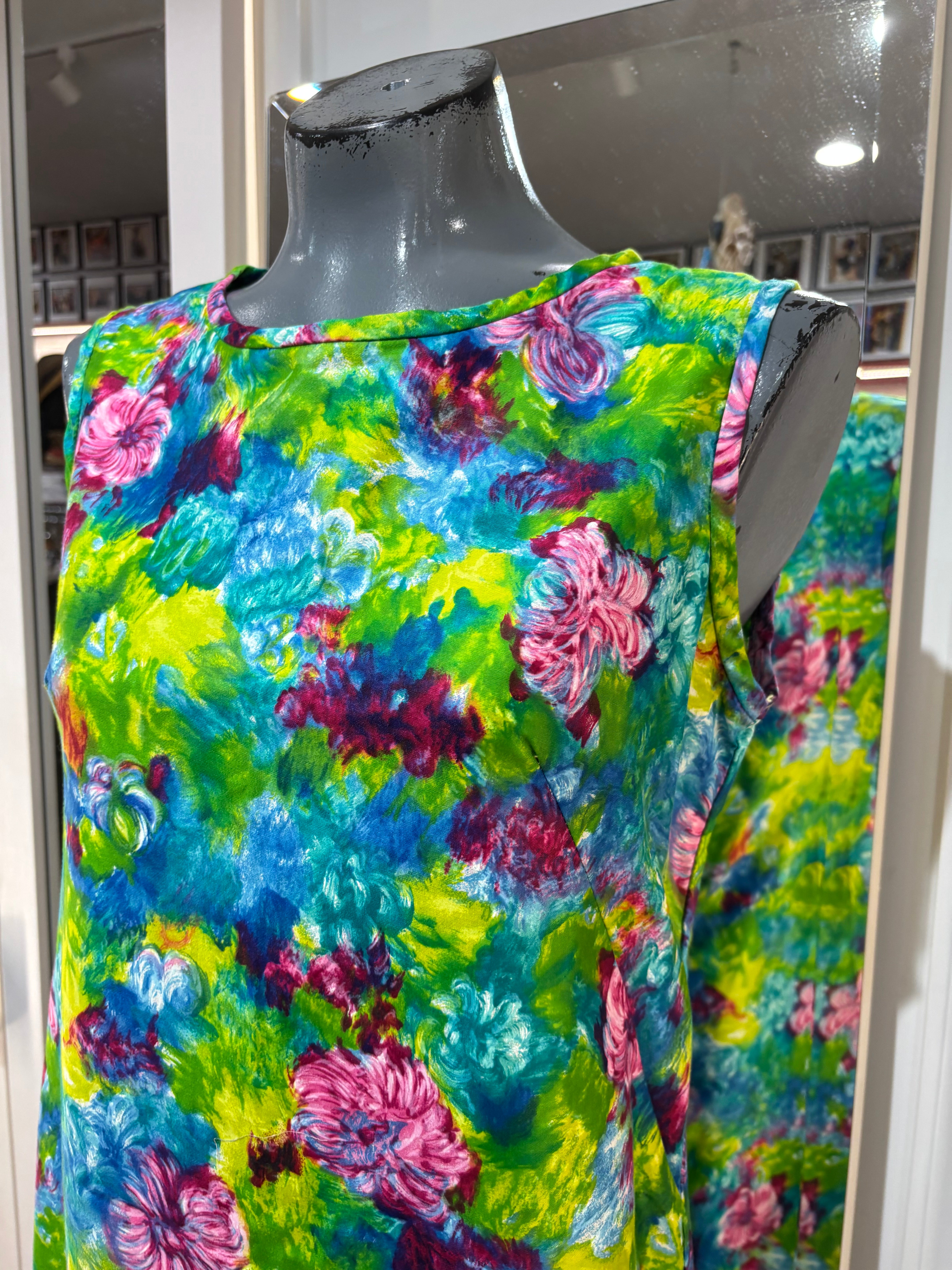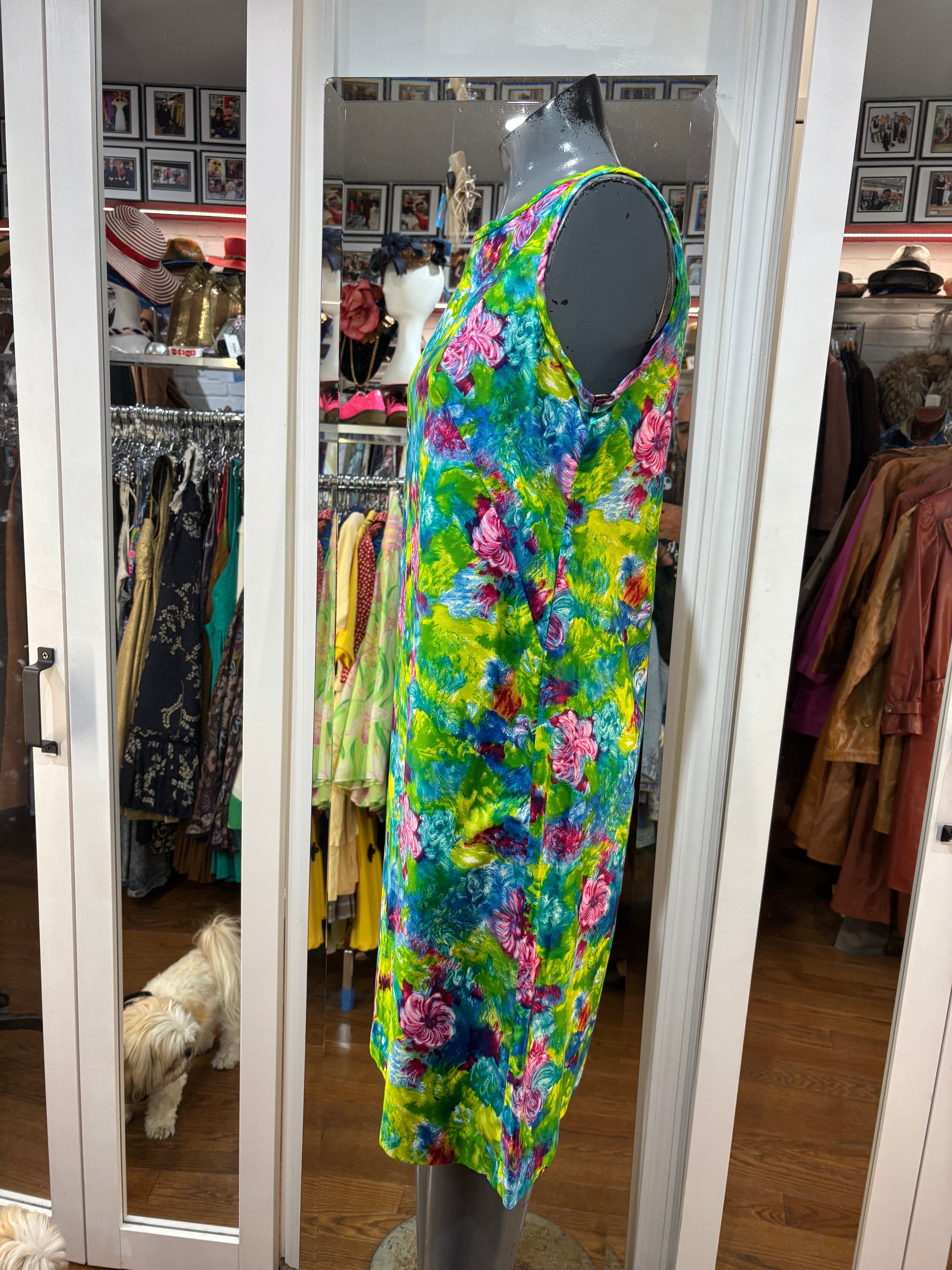 70’s Green Mulicolored Hawaii Print Non Sleeve Knee Dress