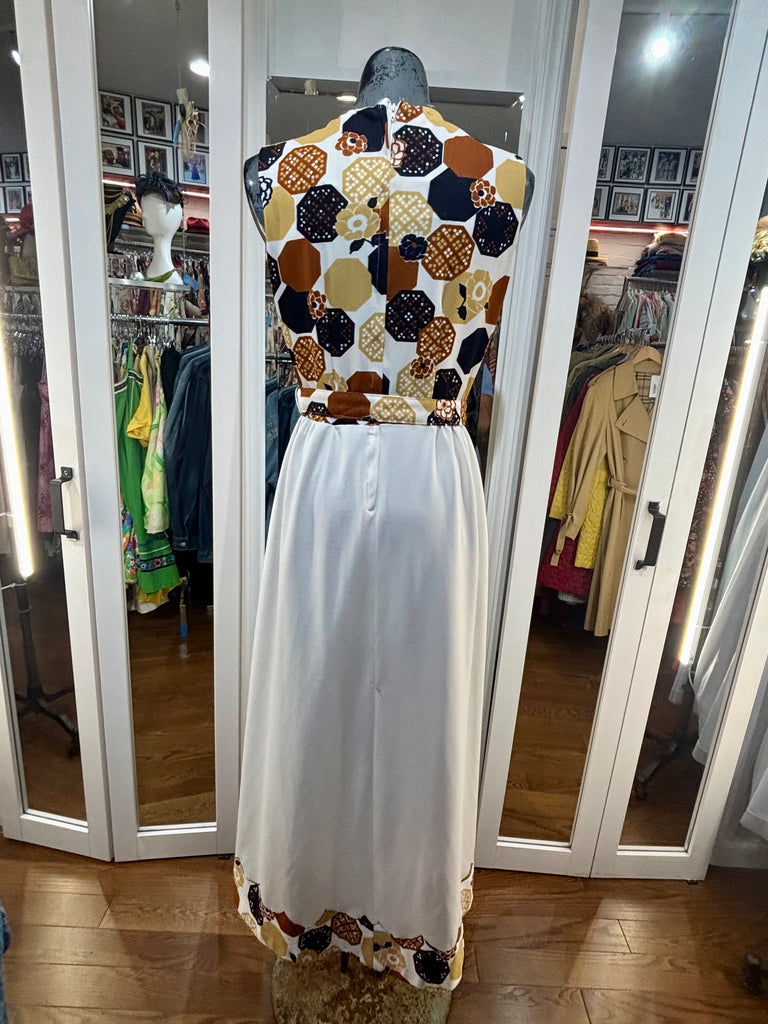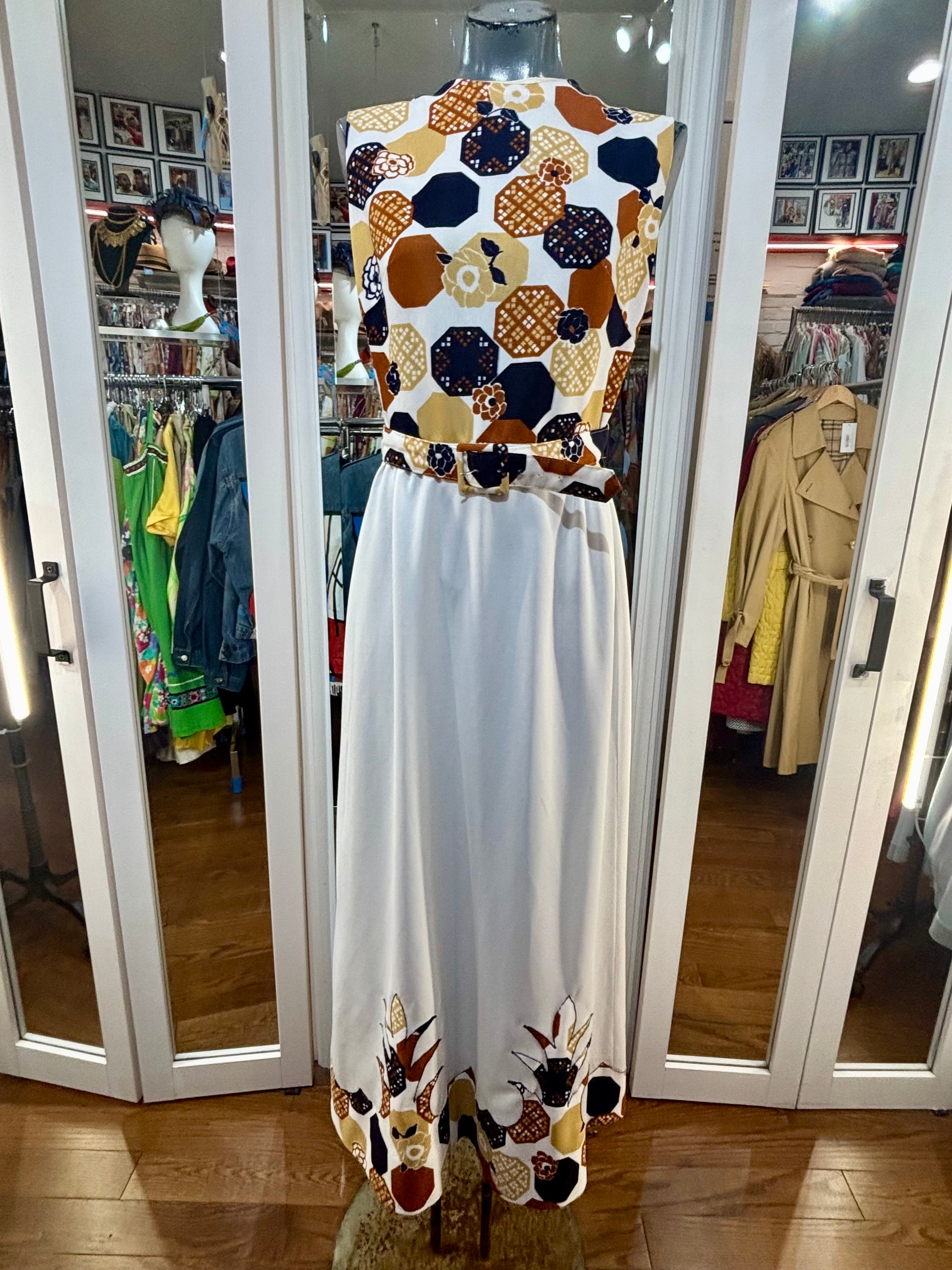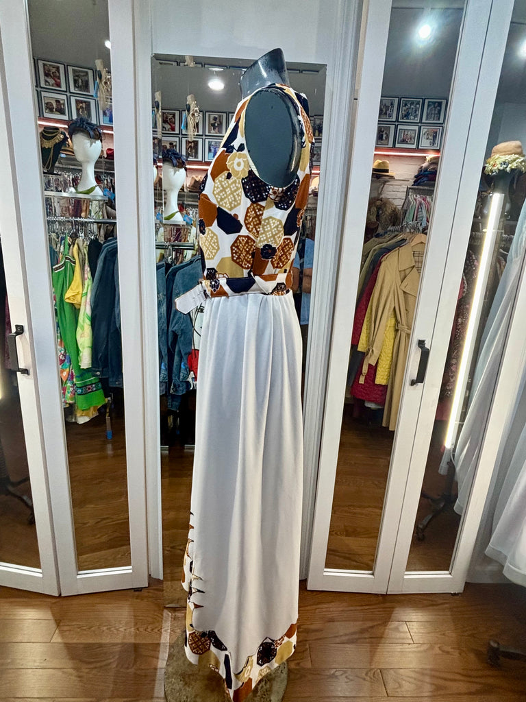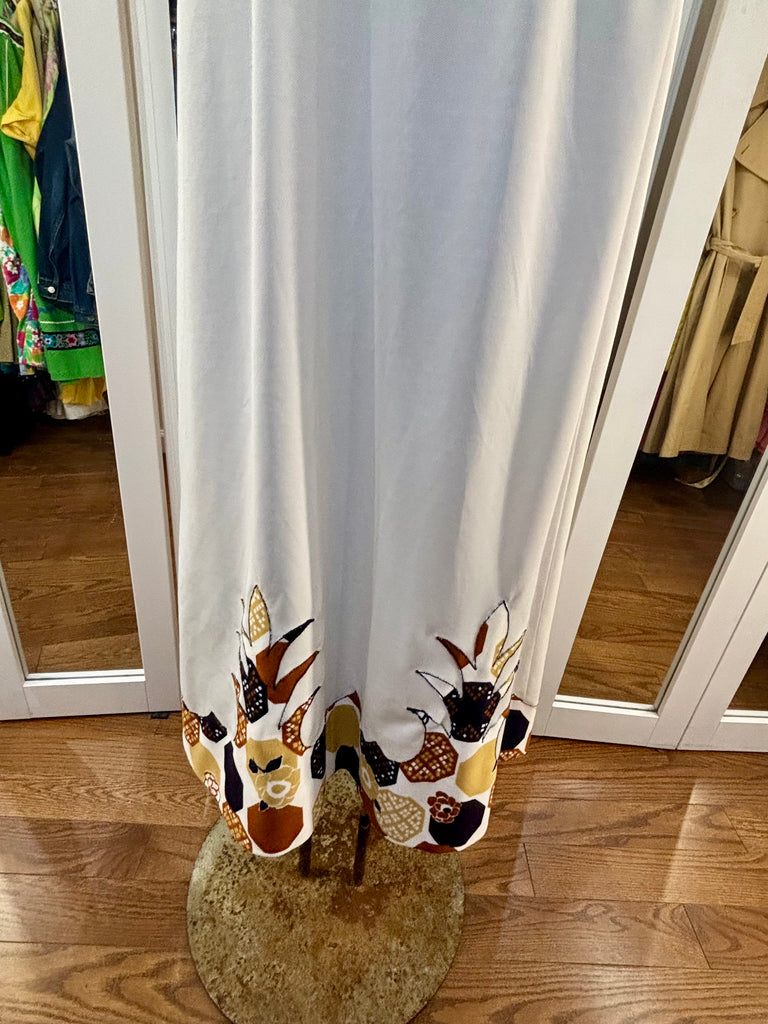 70’s Beige & Brown Multicolored Flower Print Non Sleeve Maxi Dress By Windsor