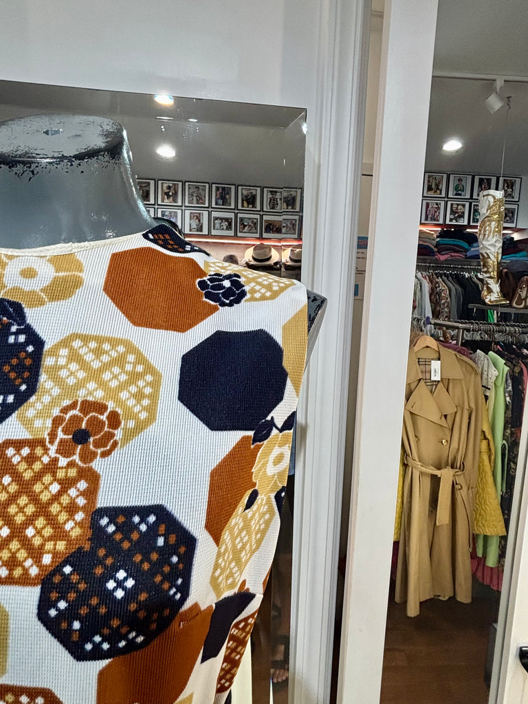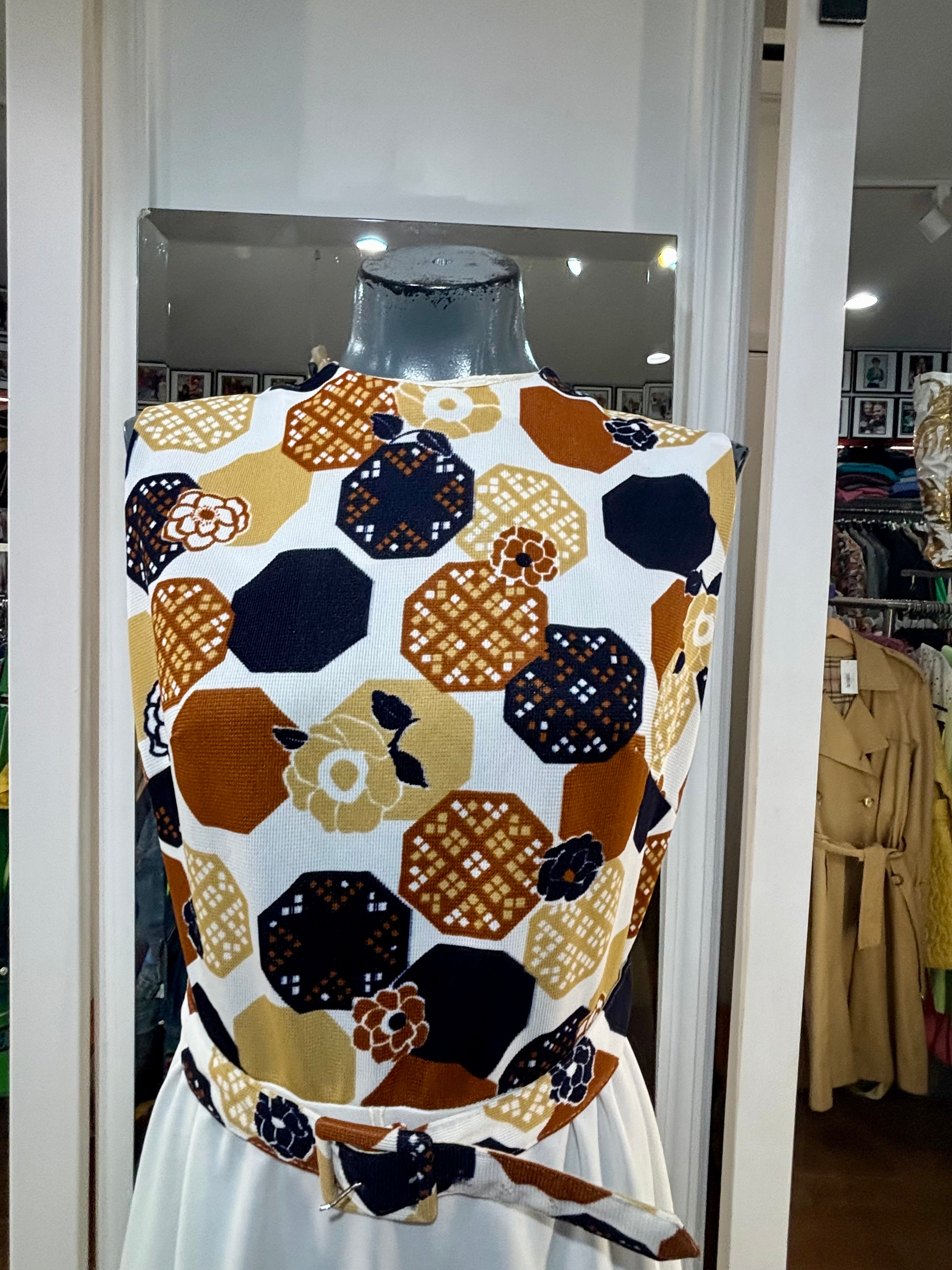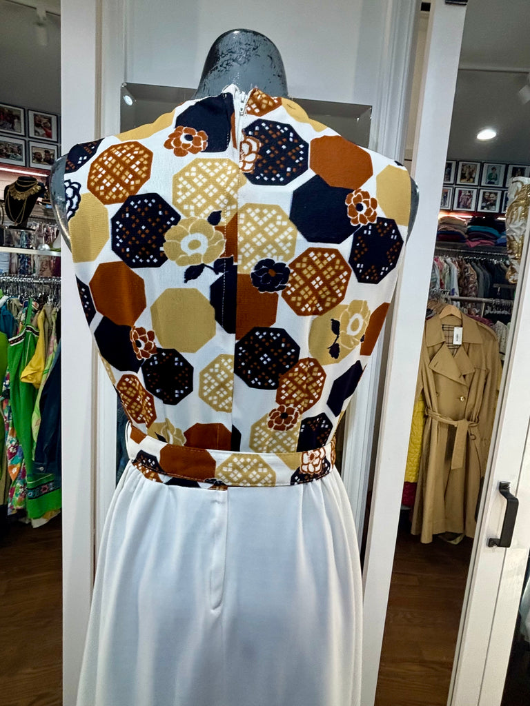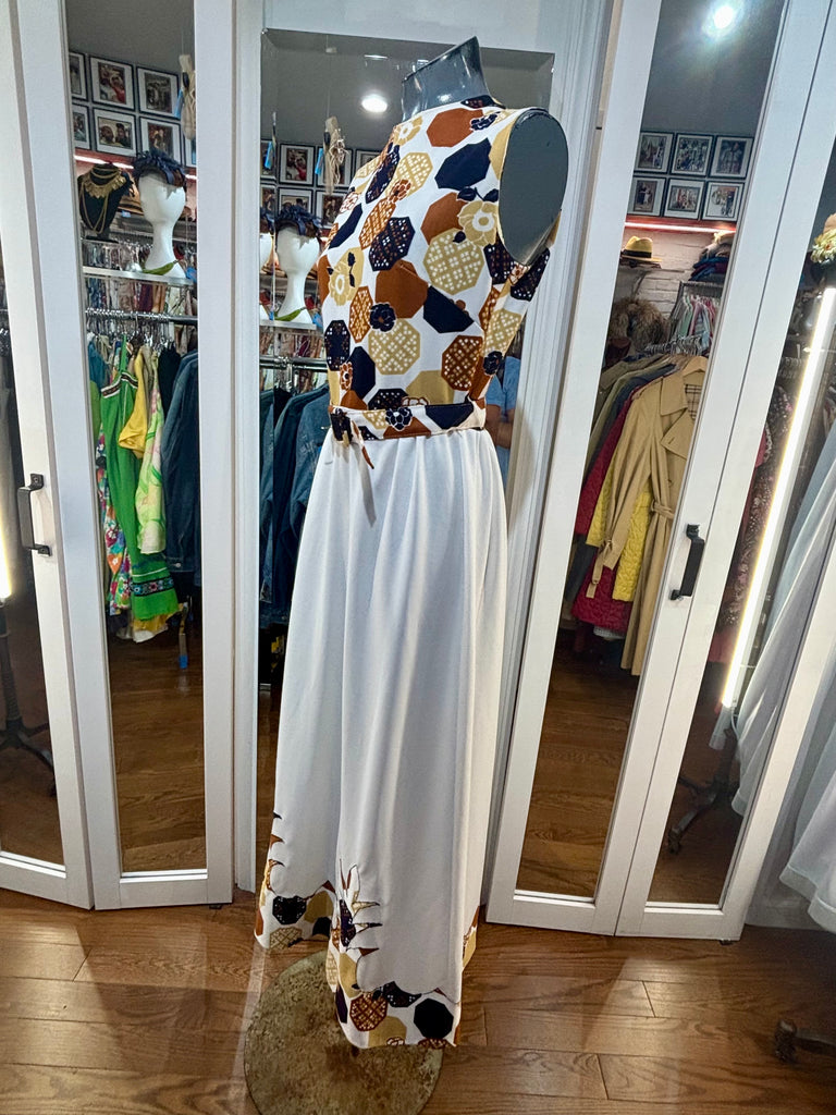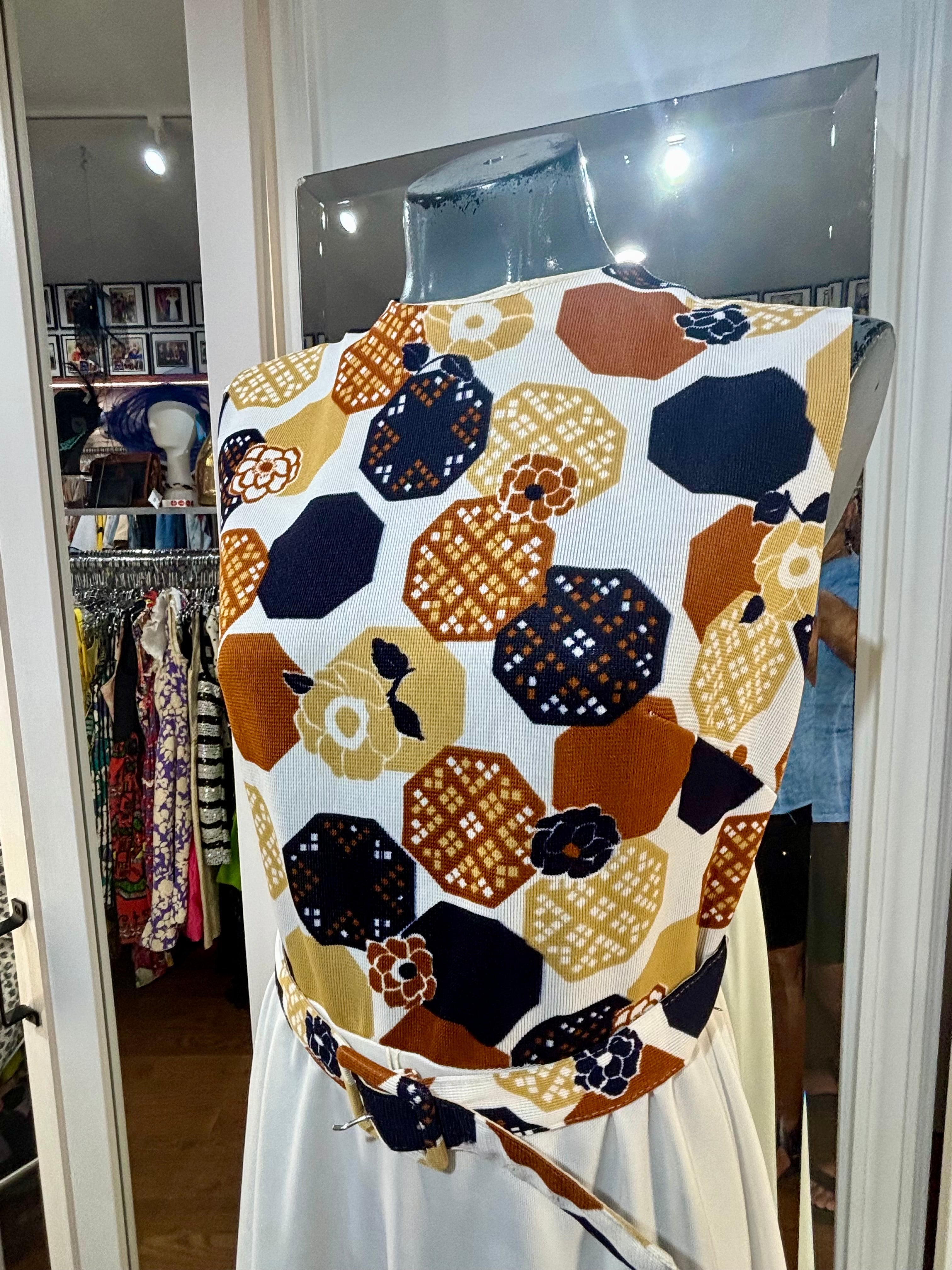 70’s Beige & Brown Multicolored Flower Print Non Sleeve Maxi Dress By Windsor