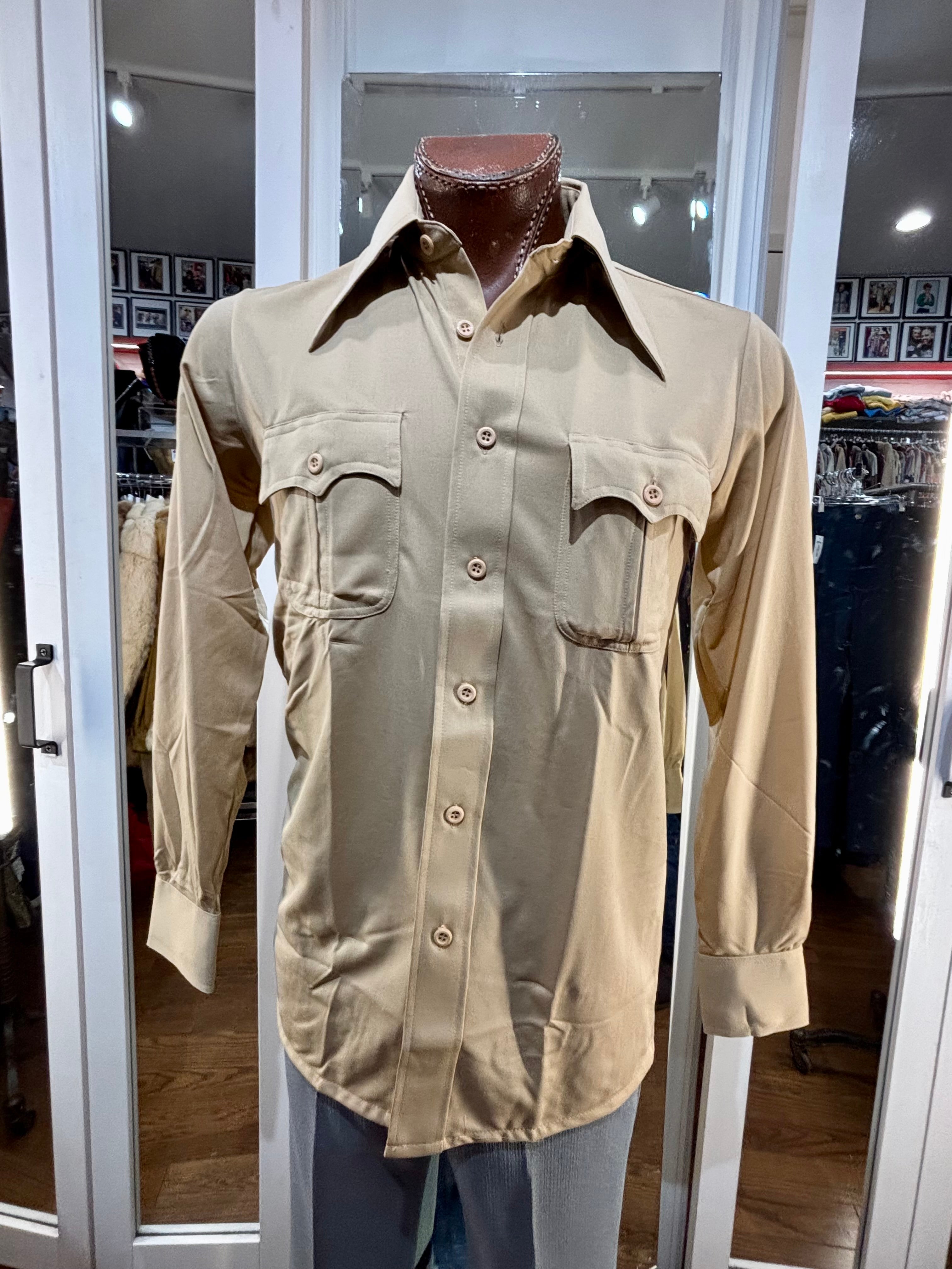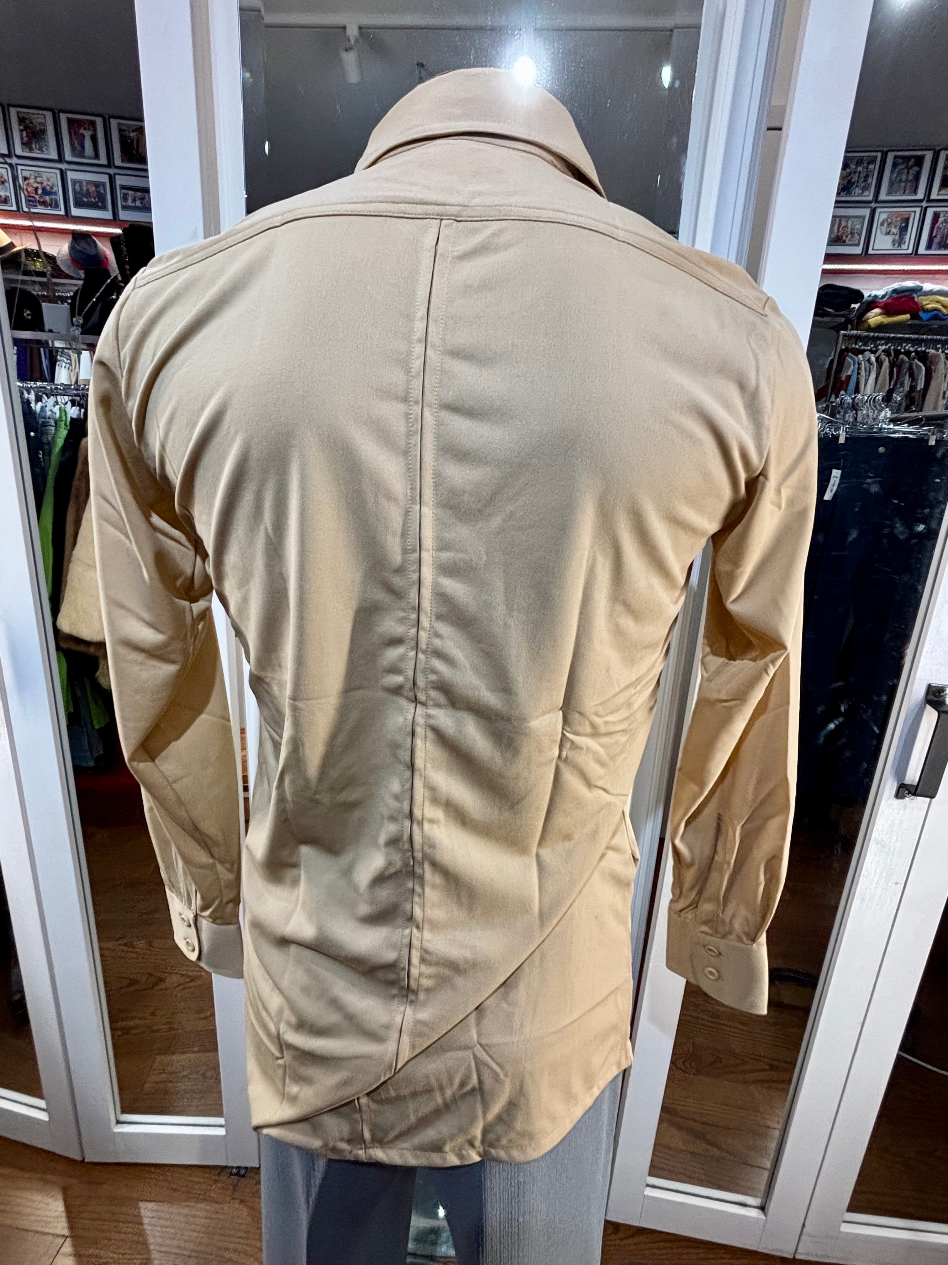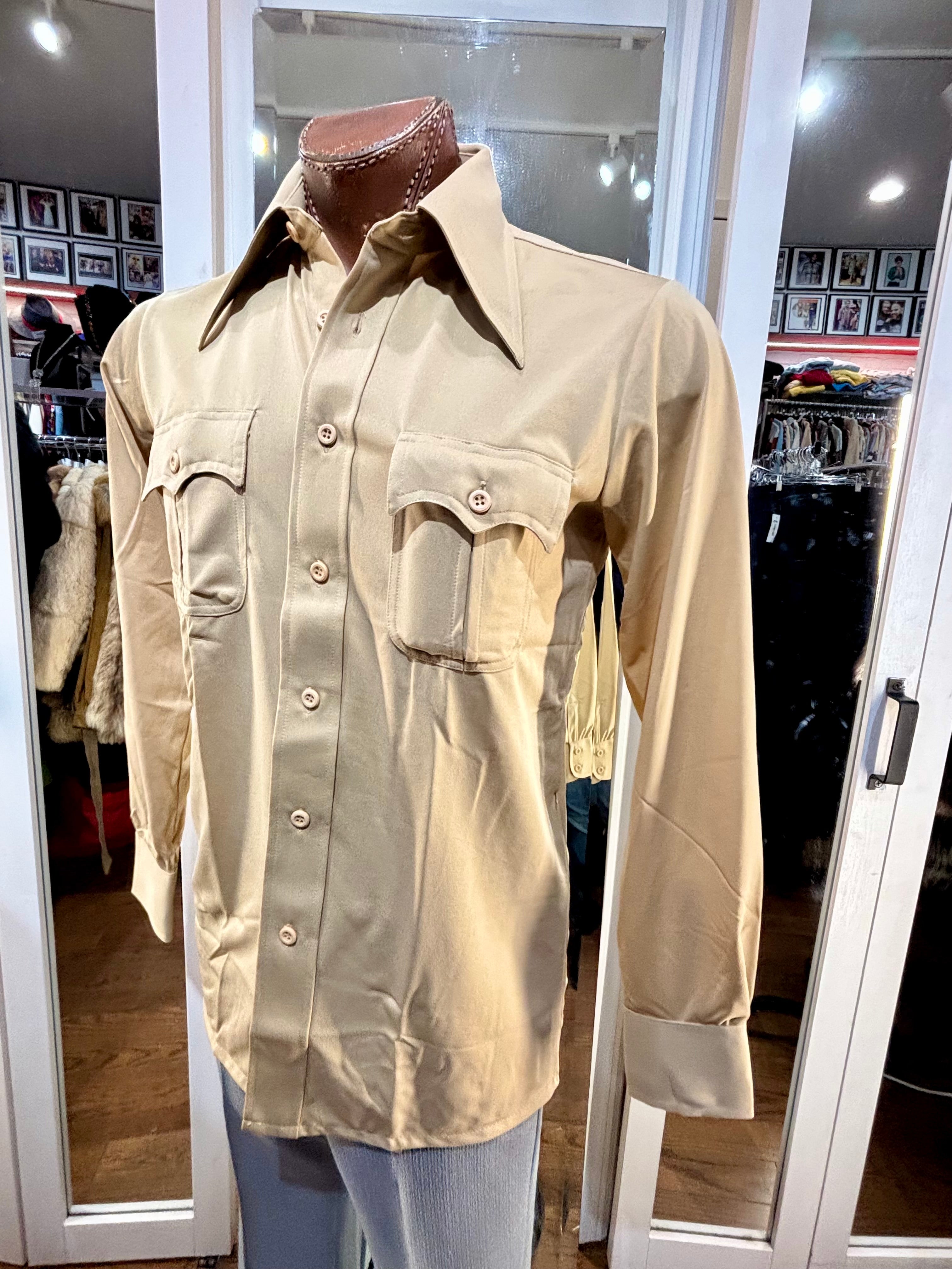 70’s Beige Casual Solid Disco Shirt By Top Notch Sportswear