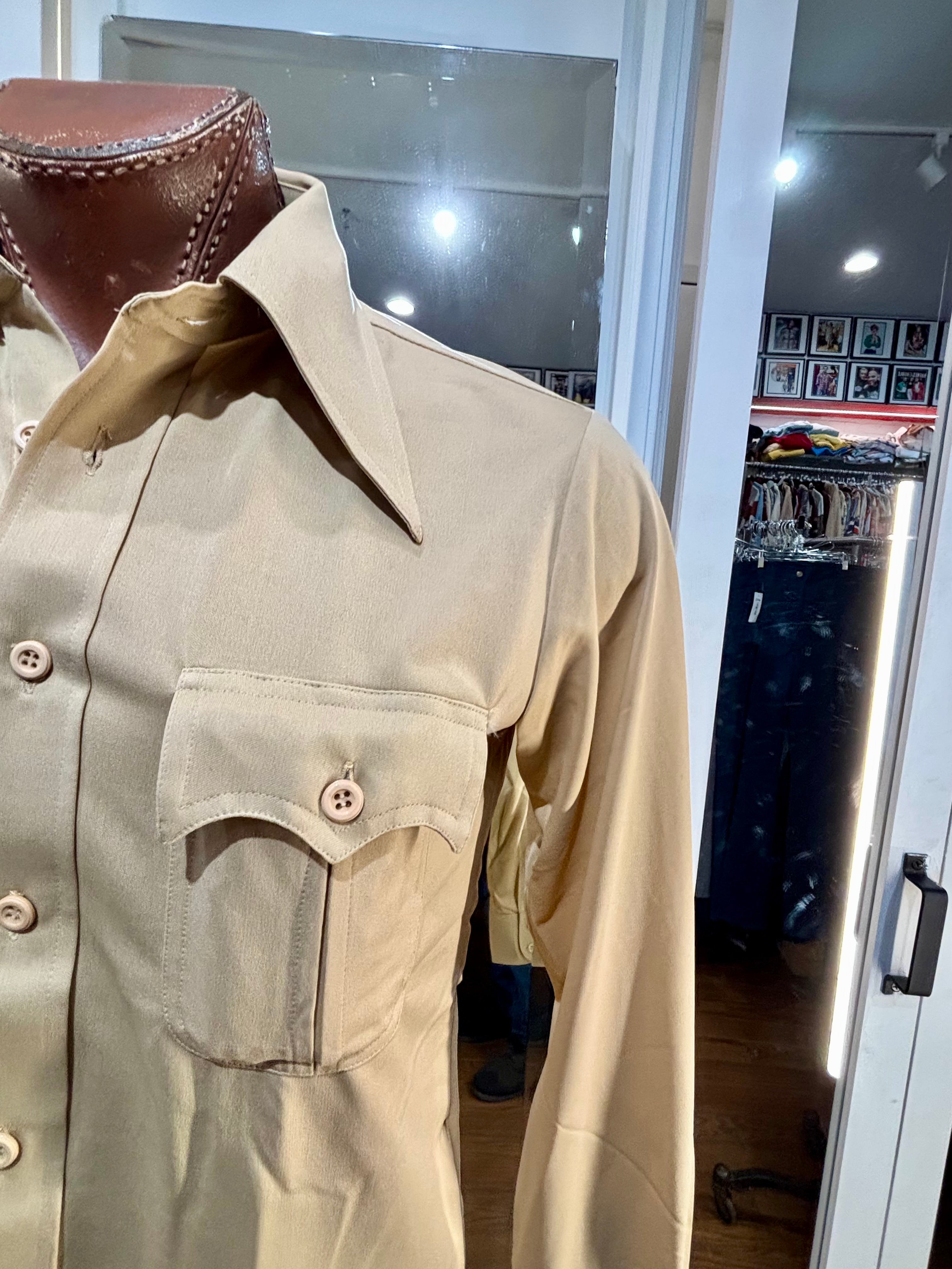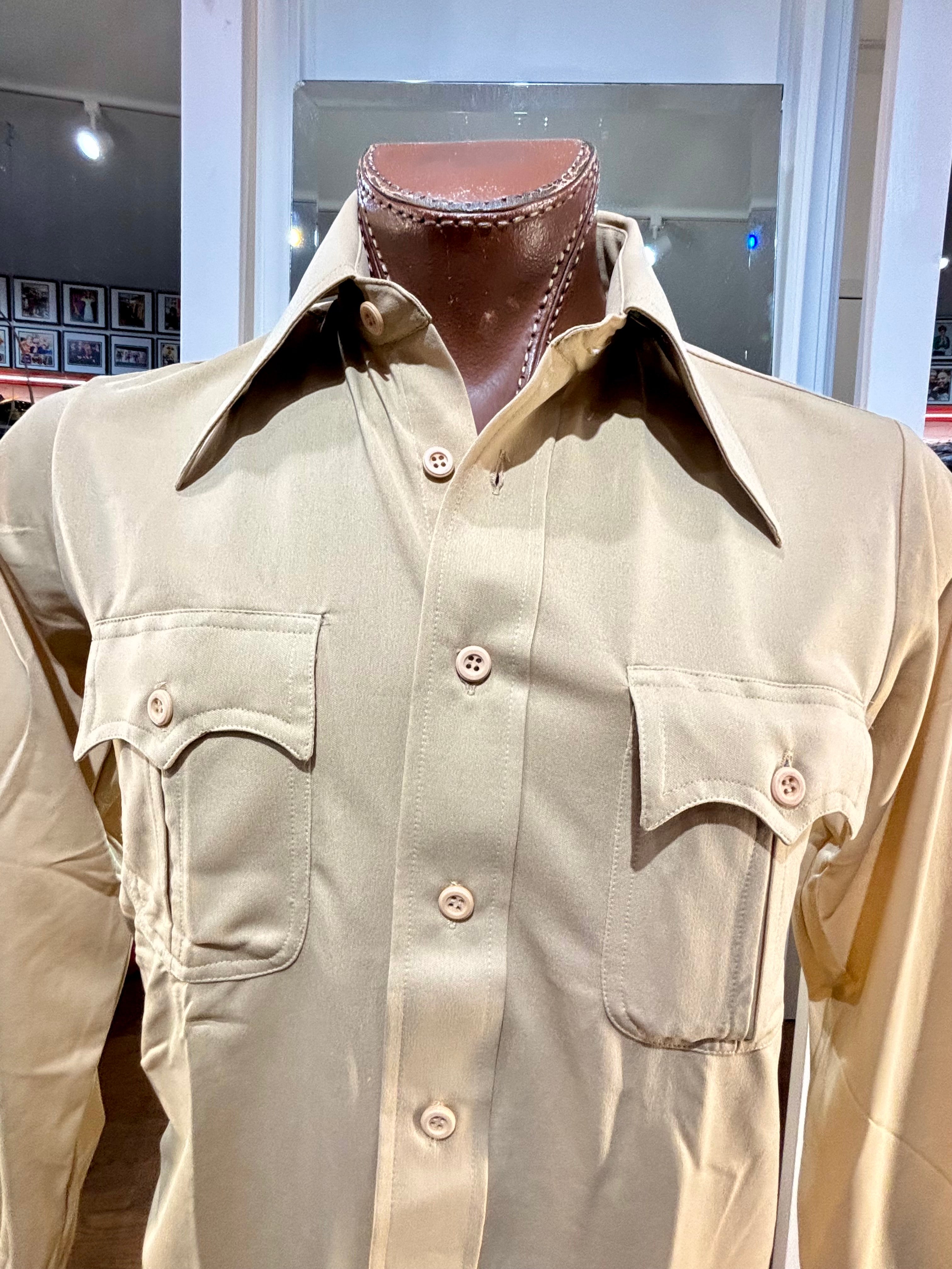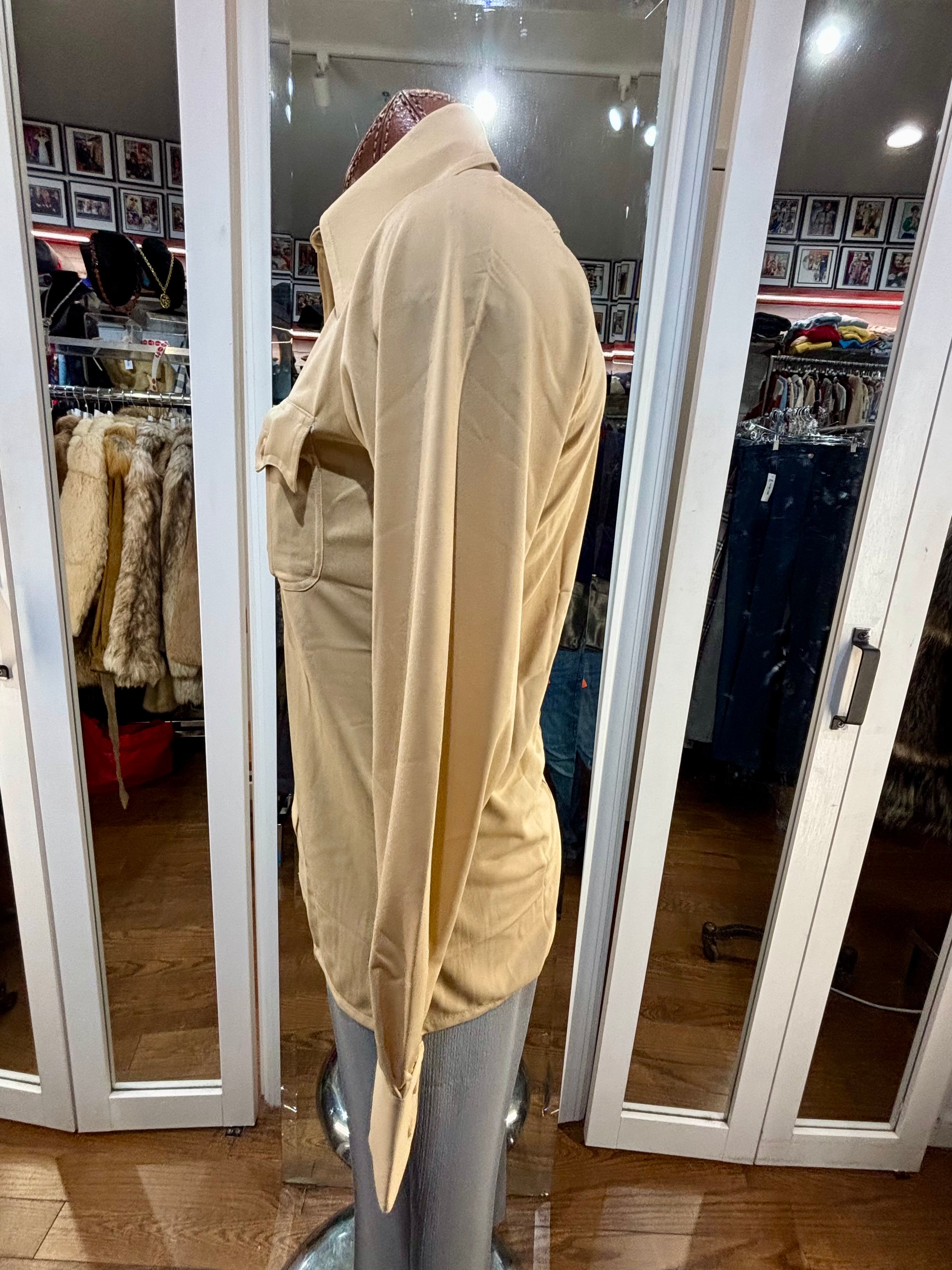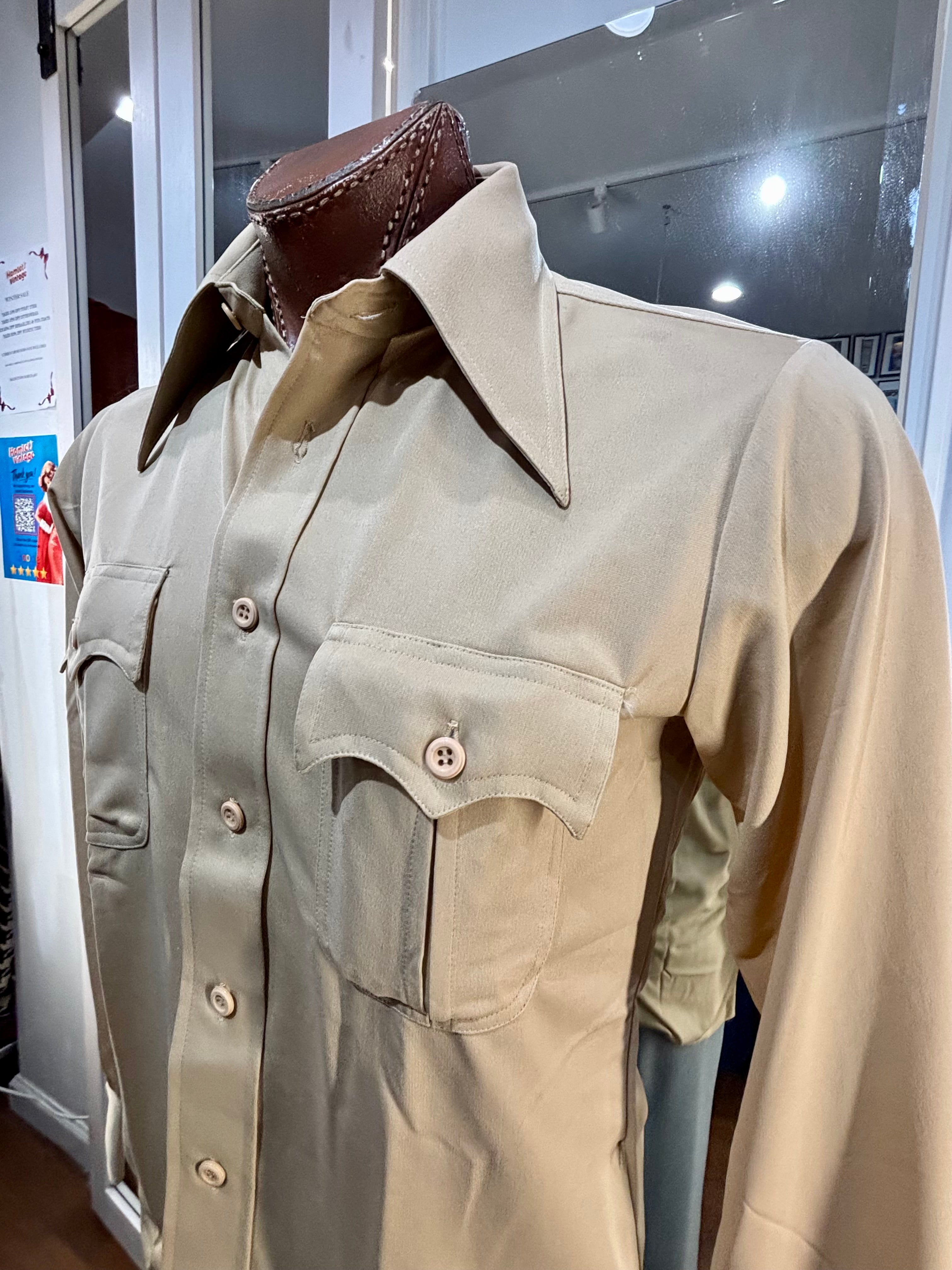 70’s Beige Casual Solid Disco Shirt By Top Notch Sportswear