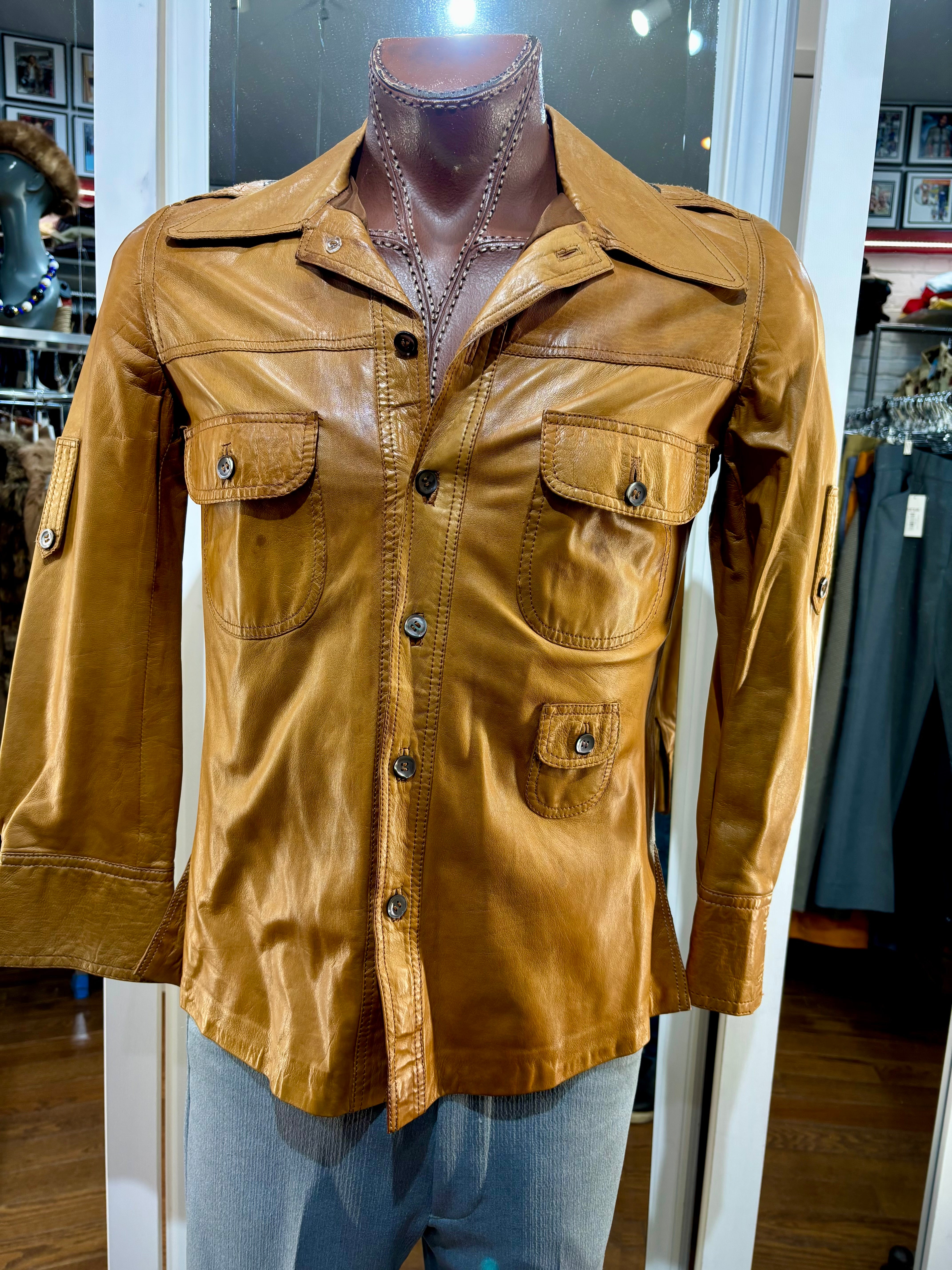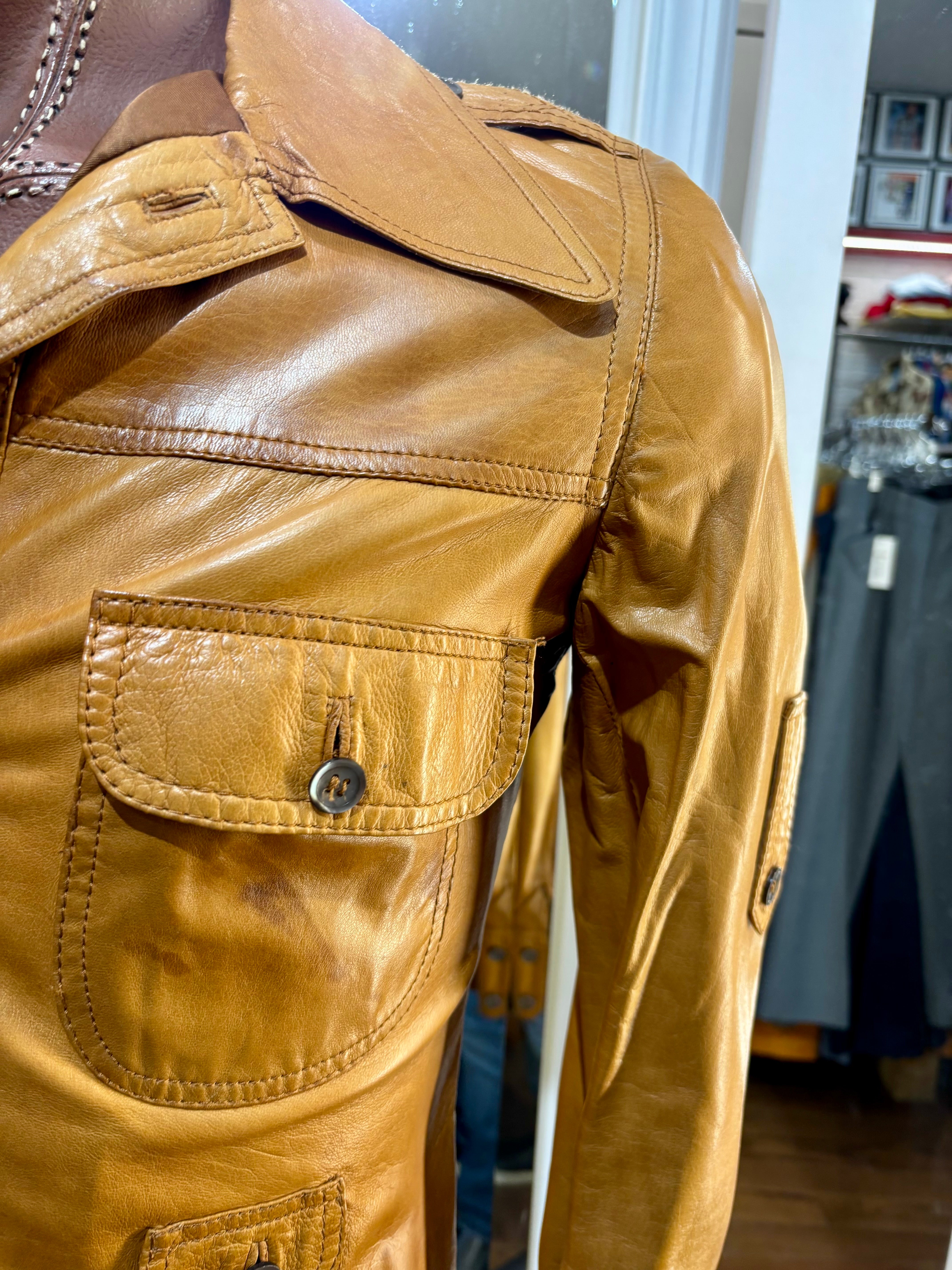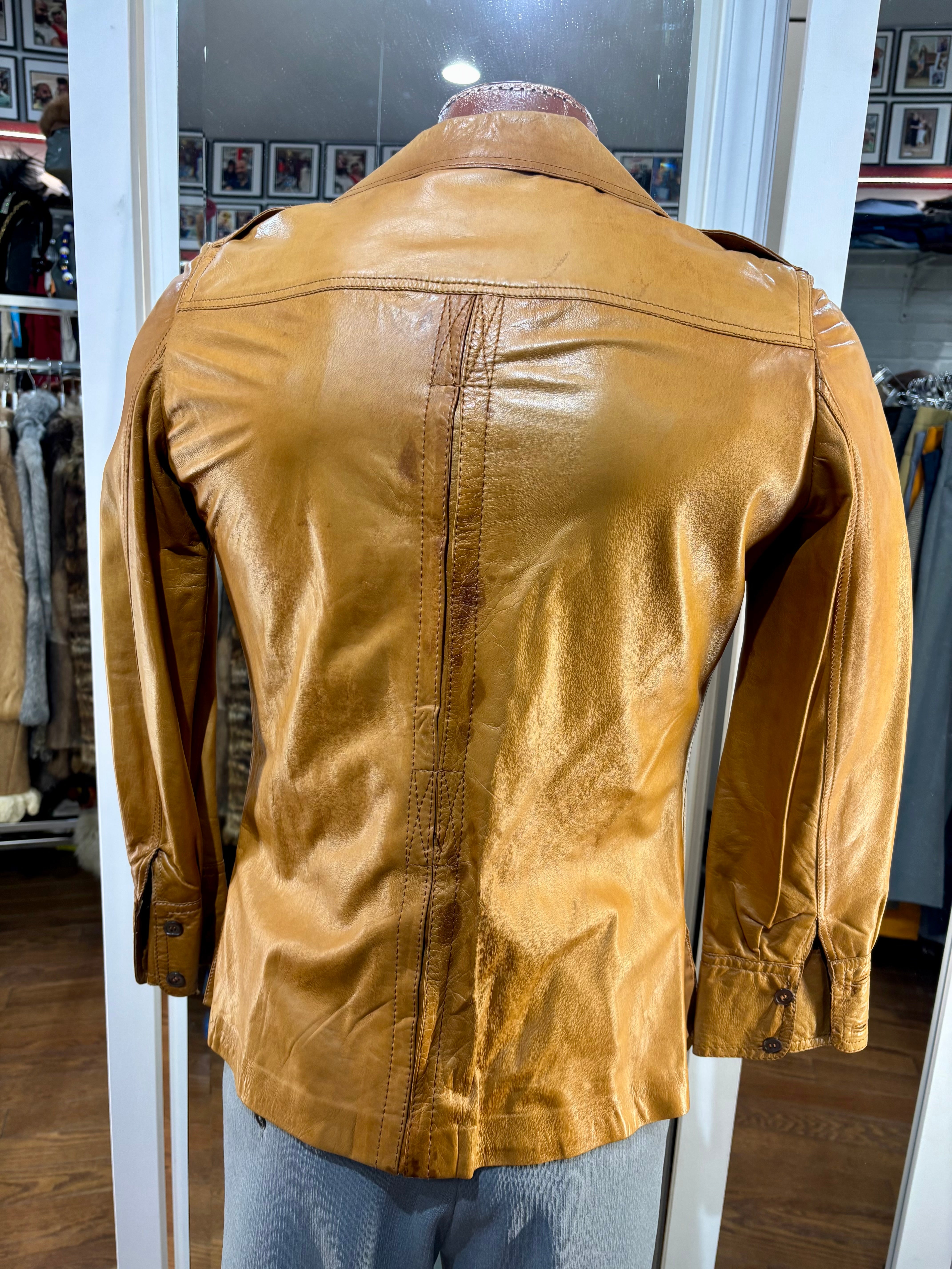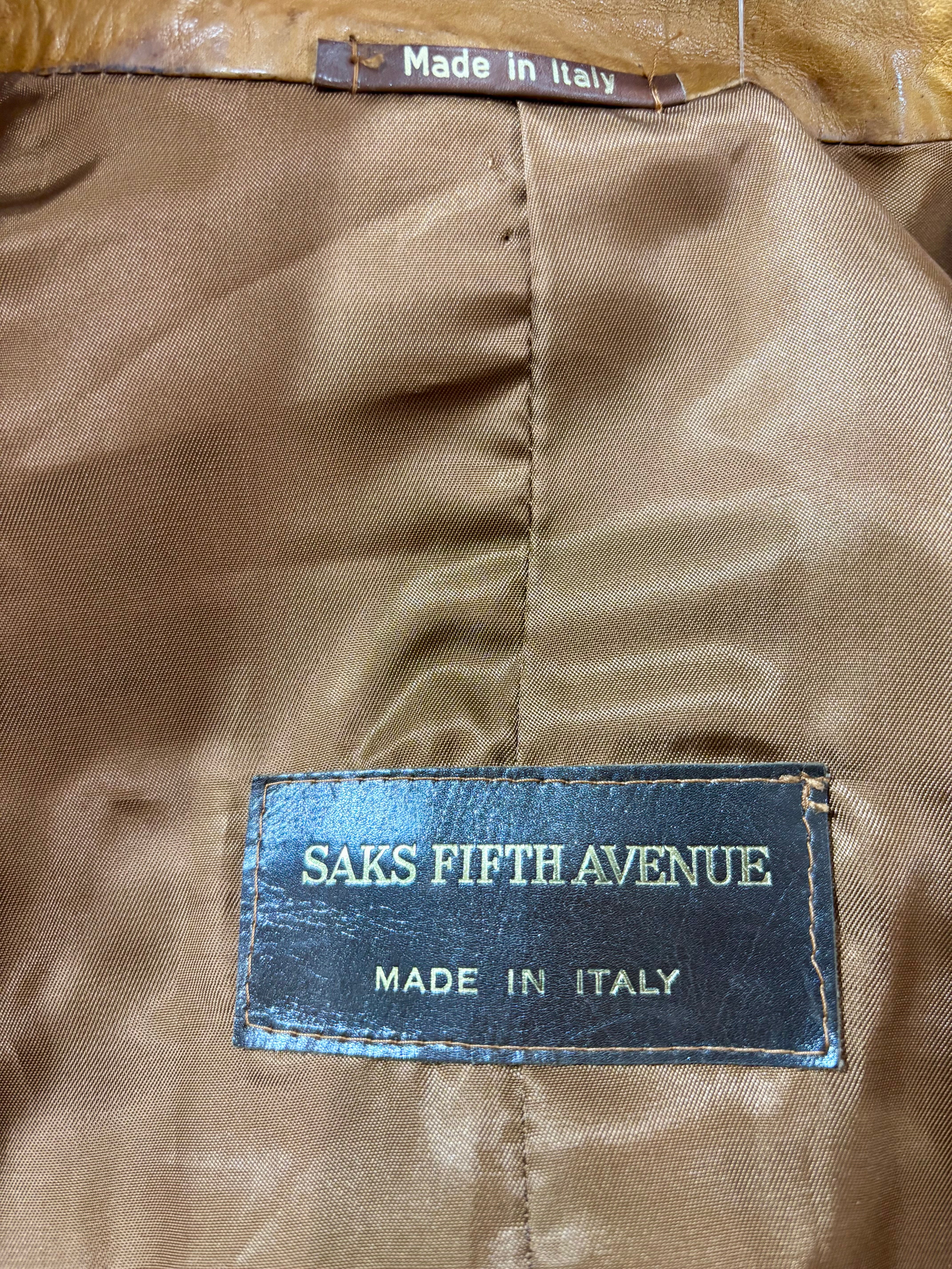 70’s Caramel Brown Leather Jacket By Saks Fifth Avenue