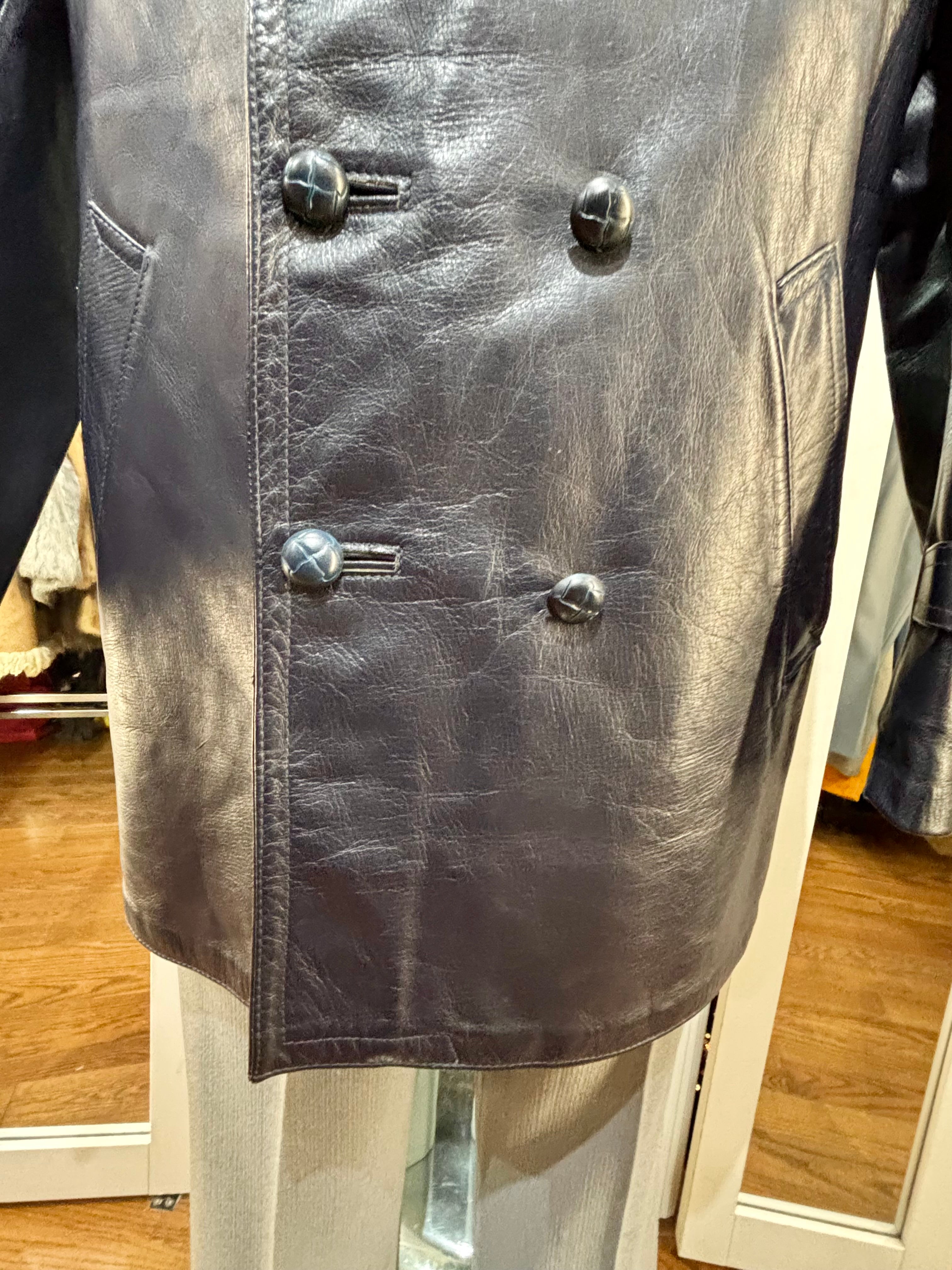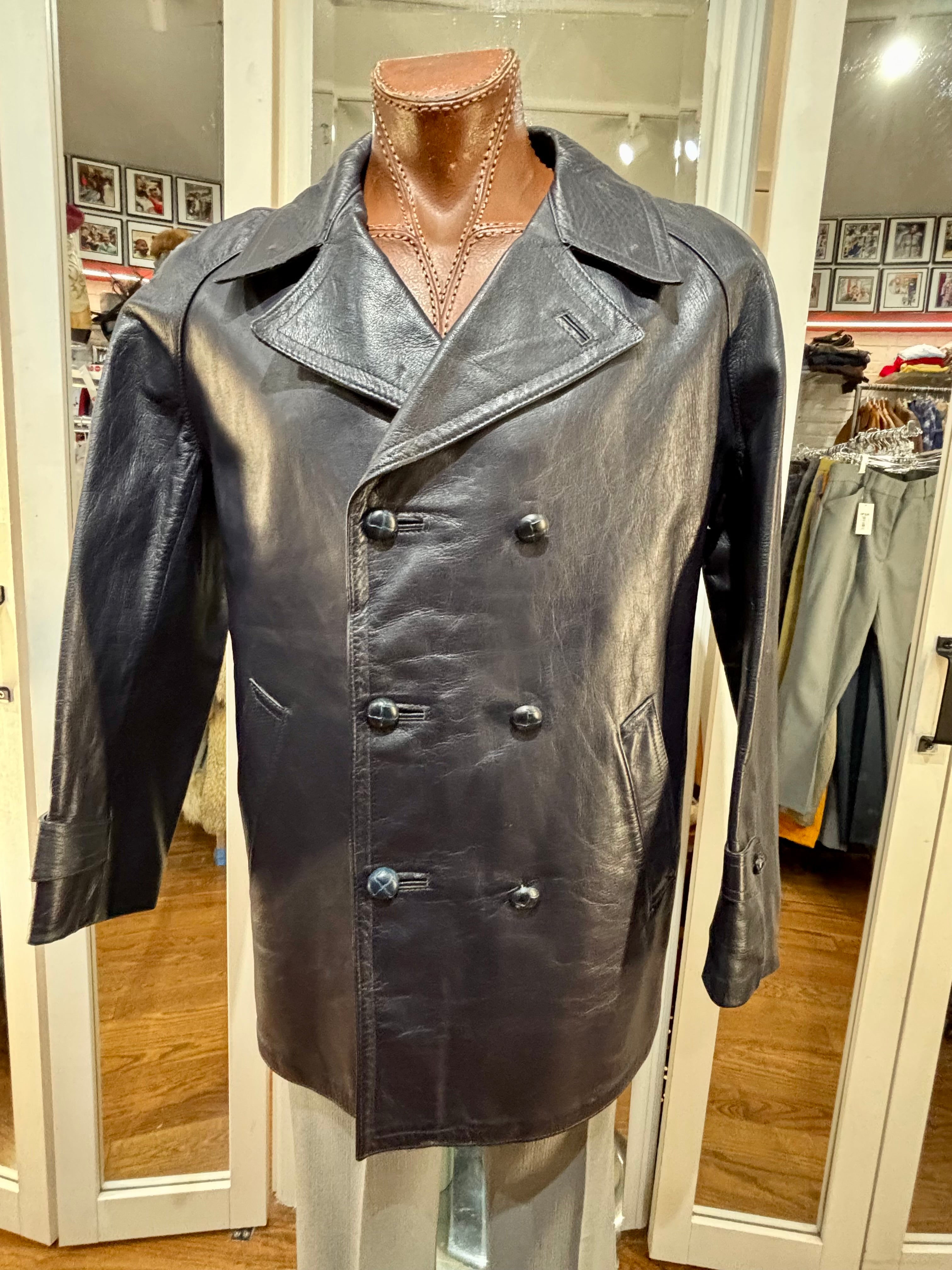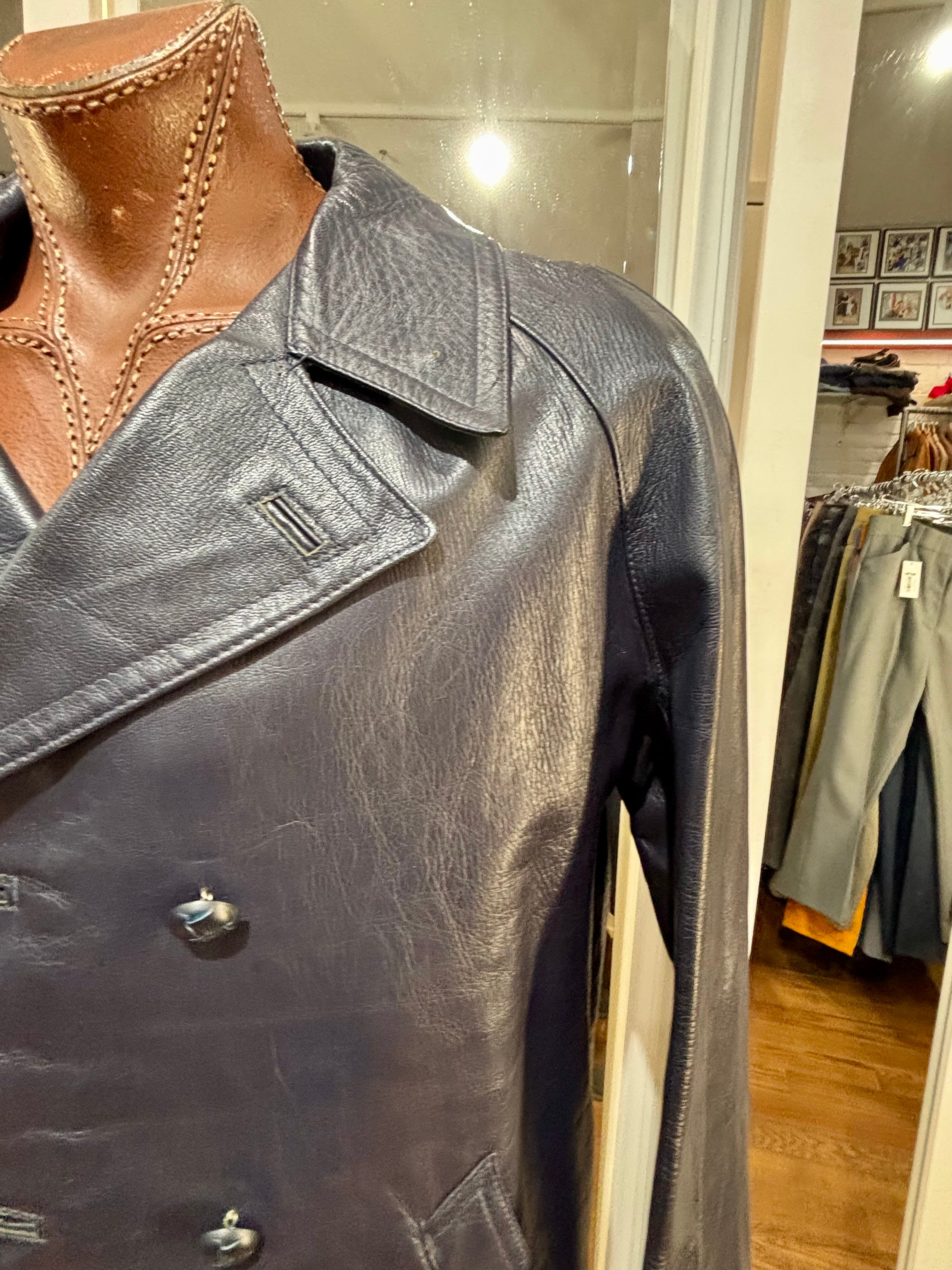 70’s Navy Double Breasted Style Leather Peacoat