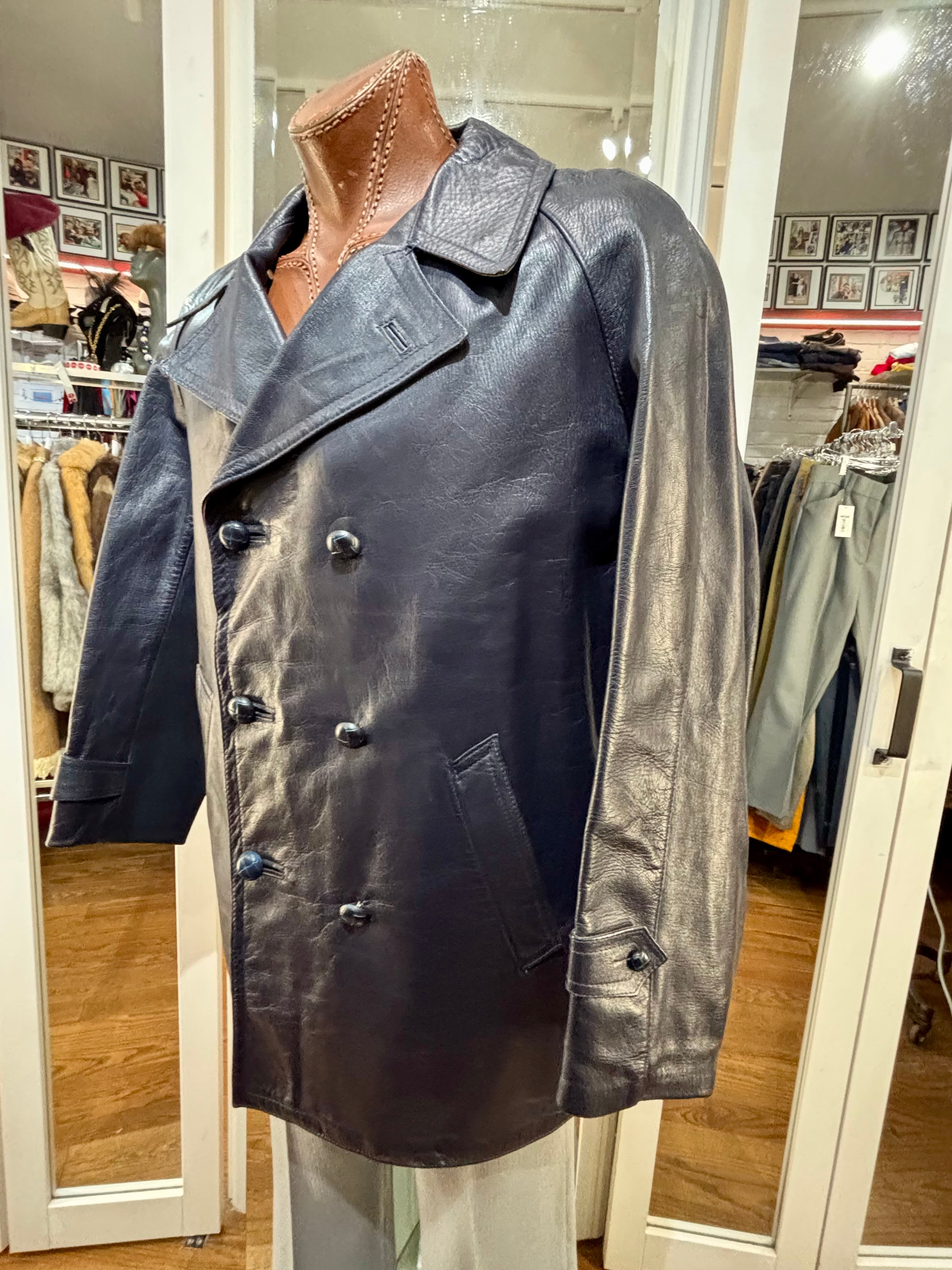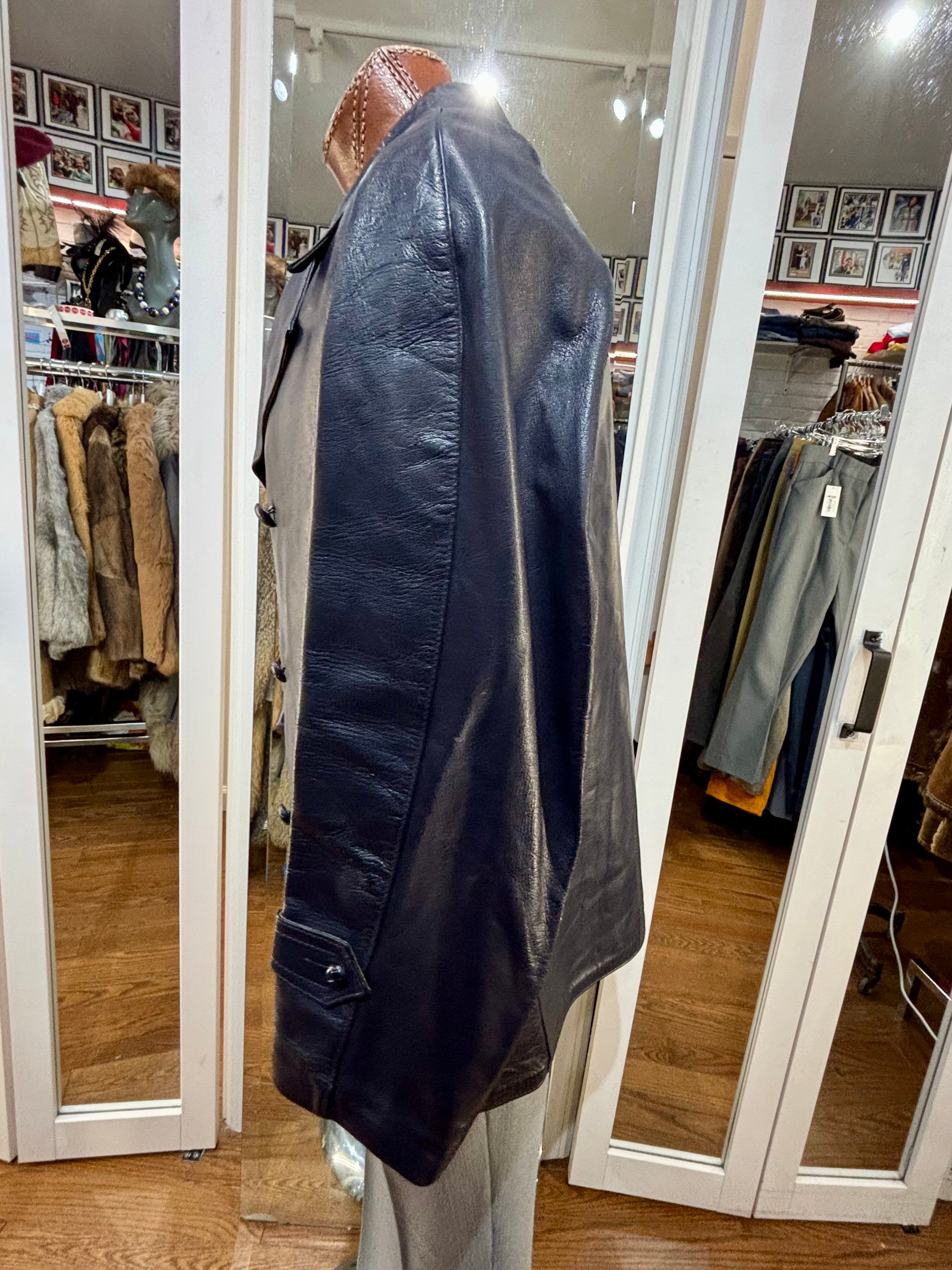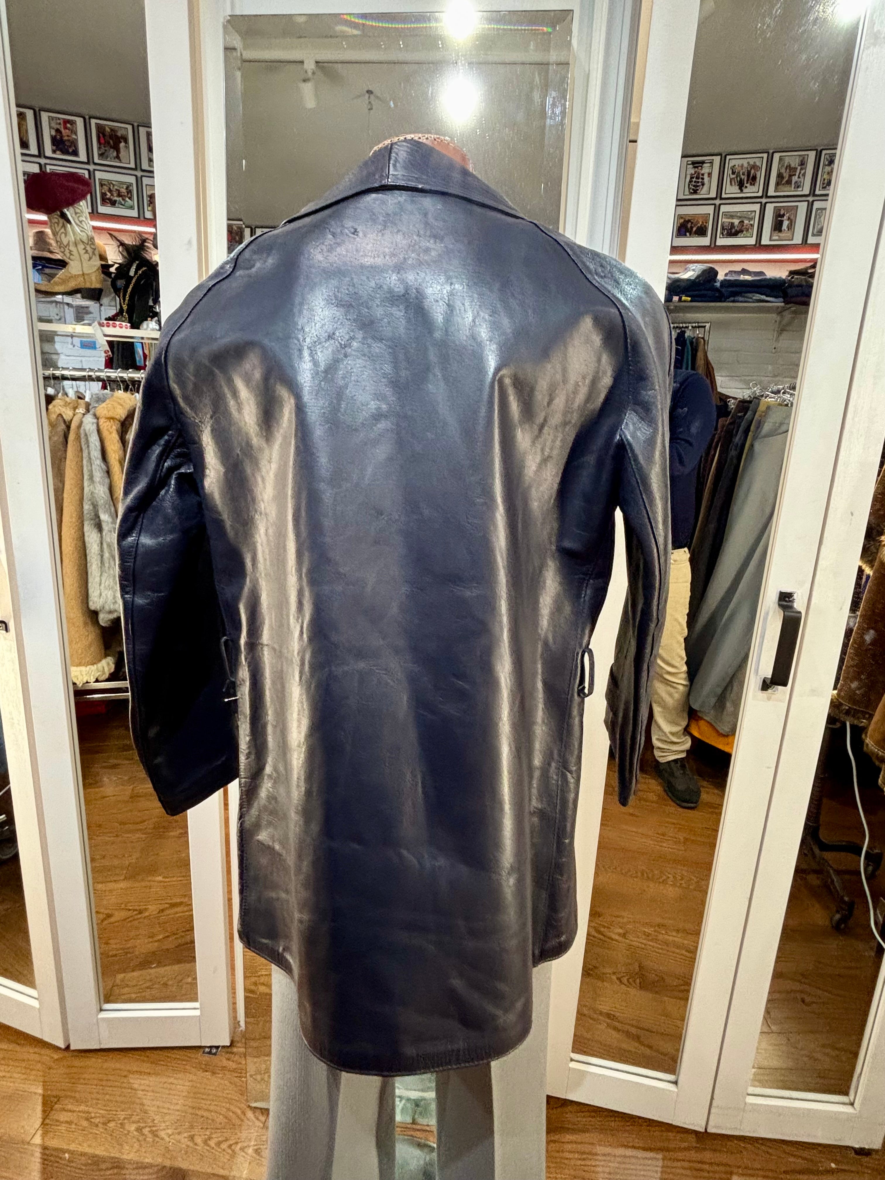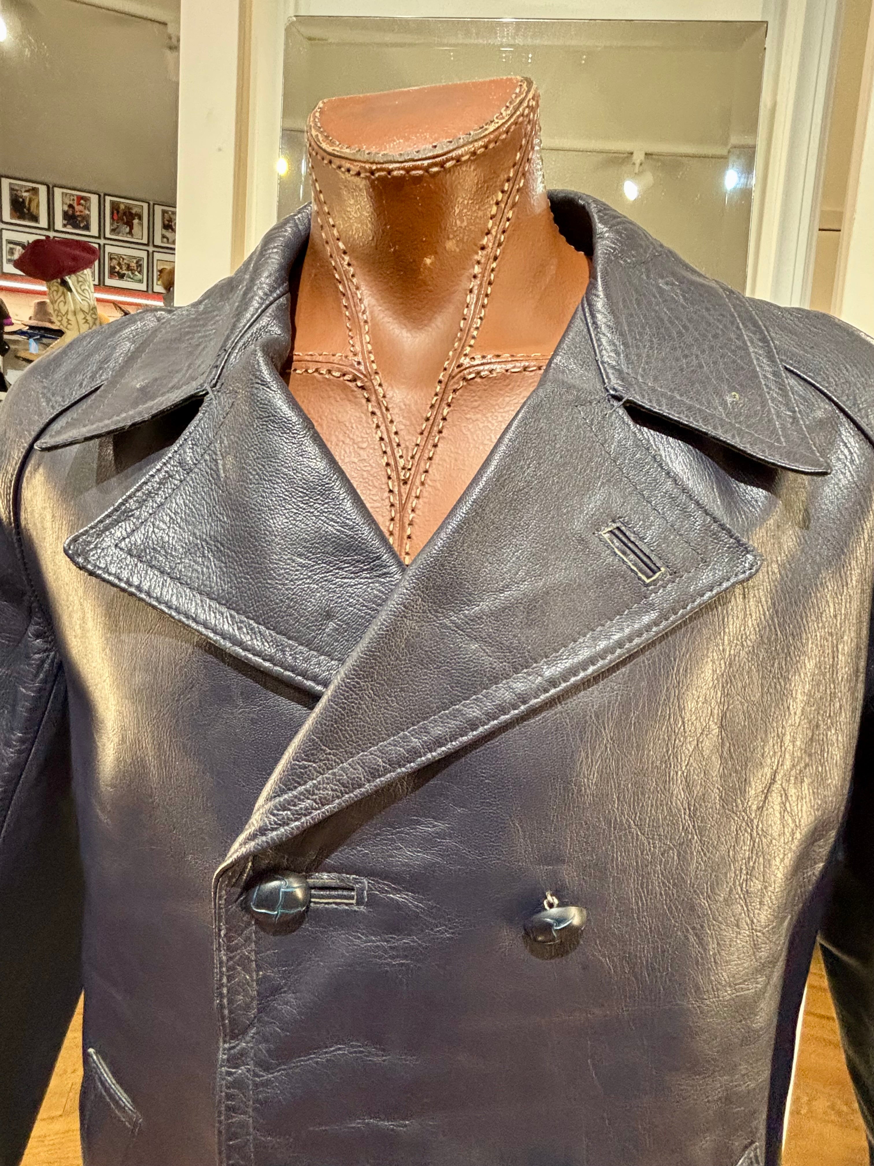 70’s Navy Double Breasted Style Leather Peacoat