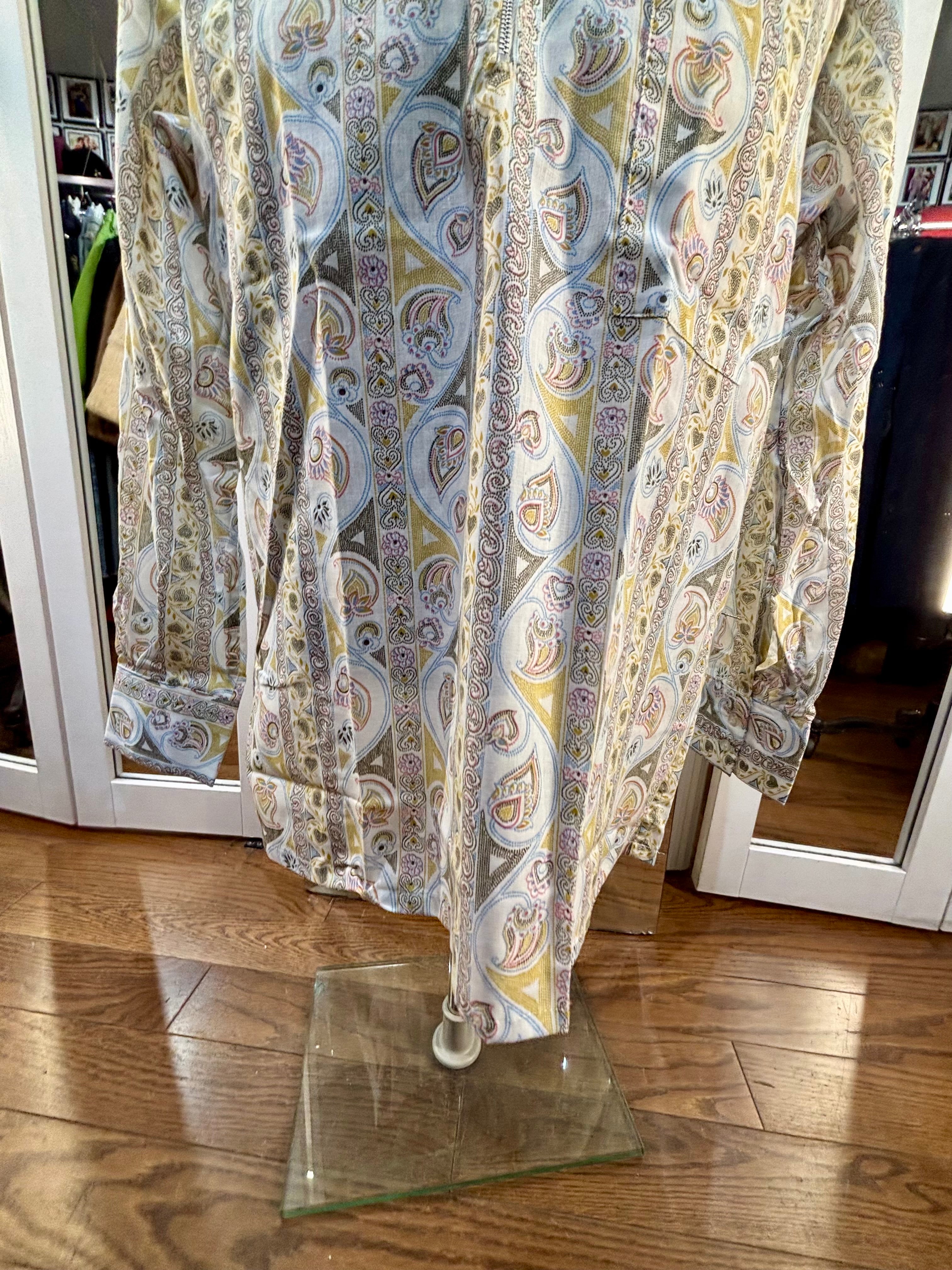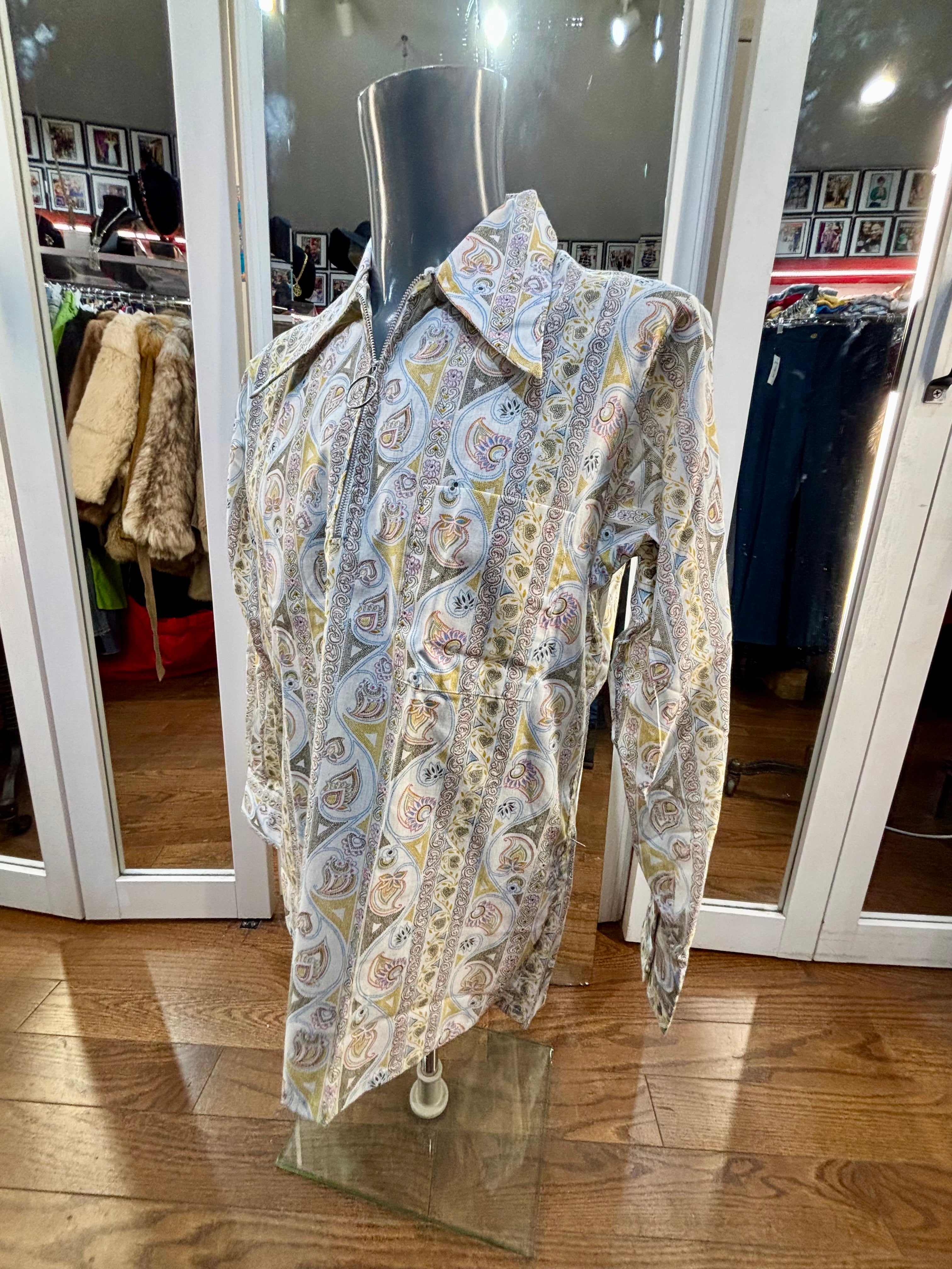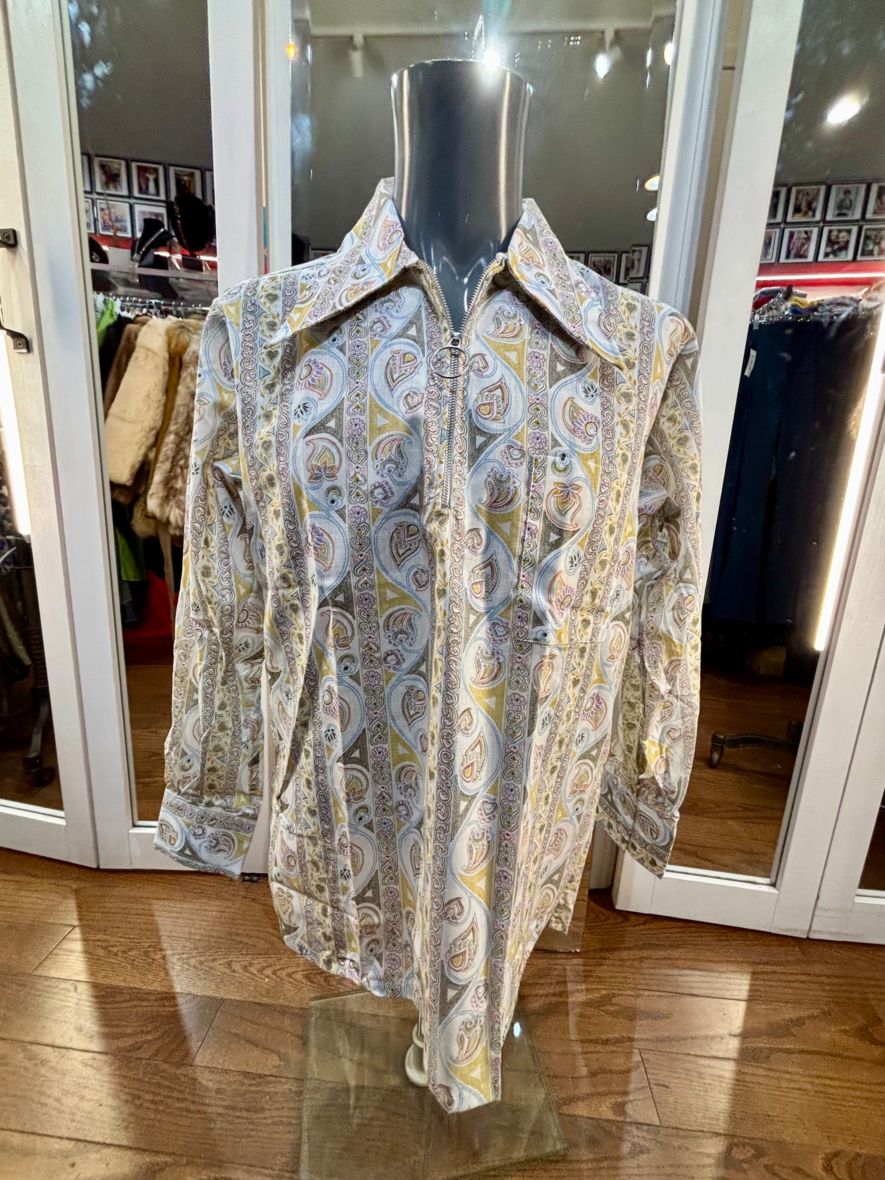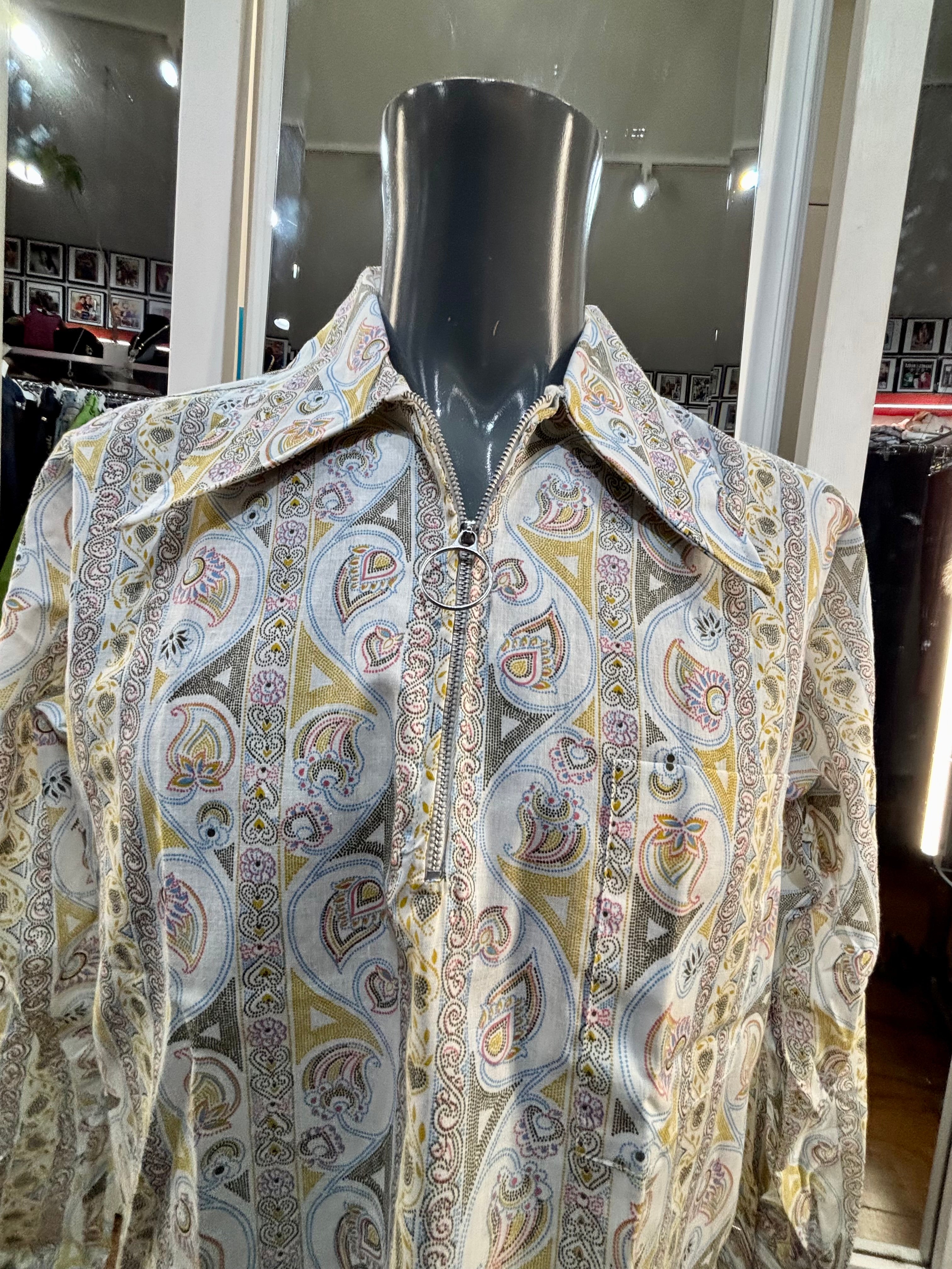 70’s Off White Zip Collar Multicolor Paisley Disco Print Shirt By Today’s Man
