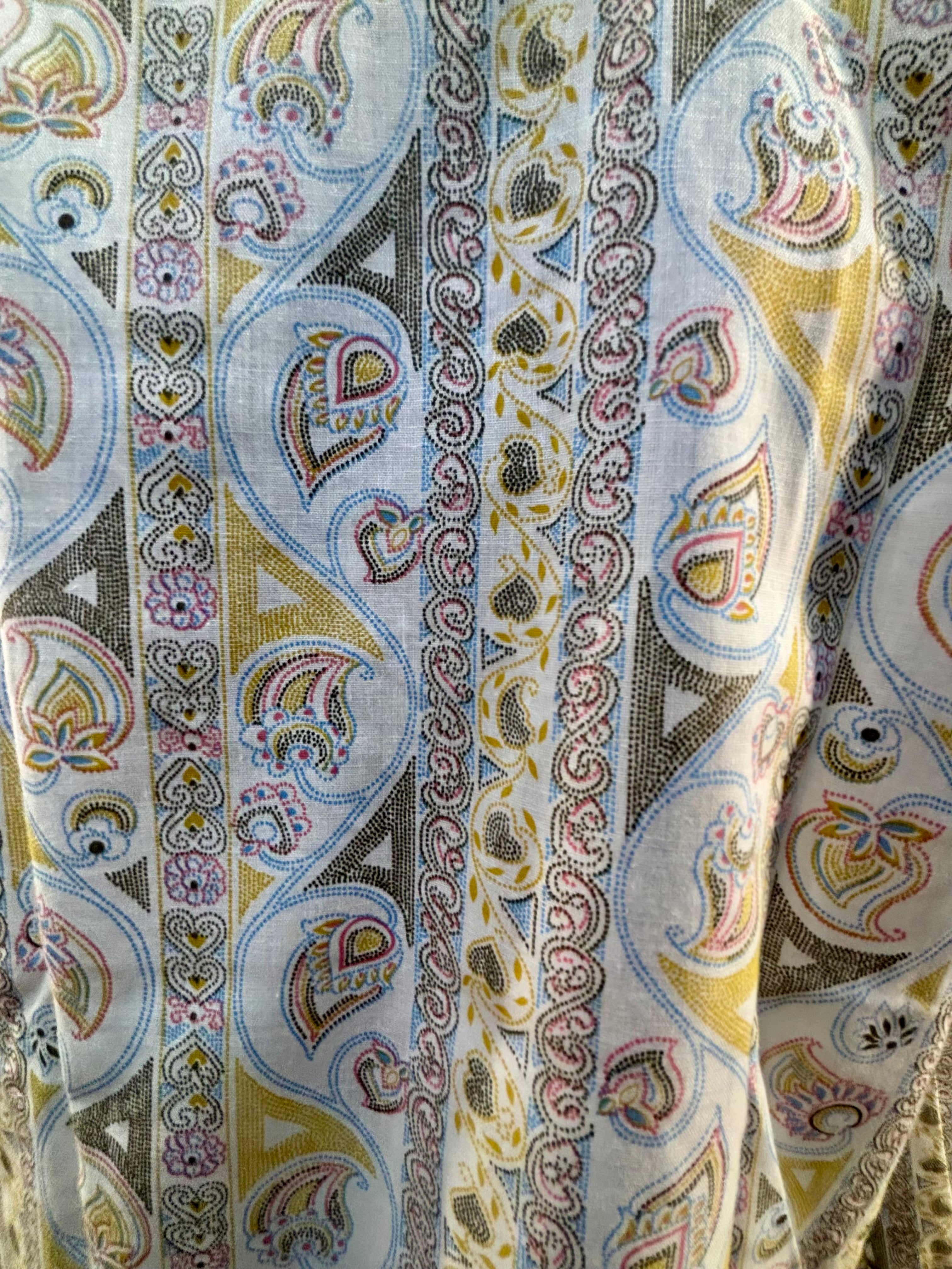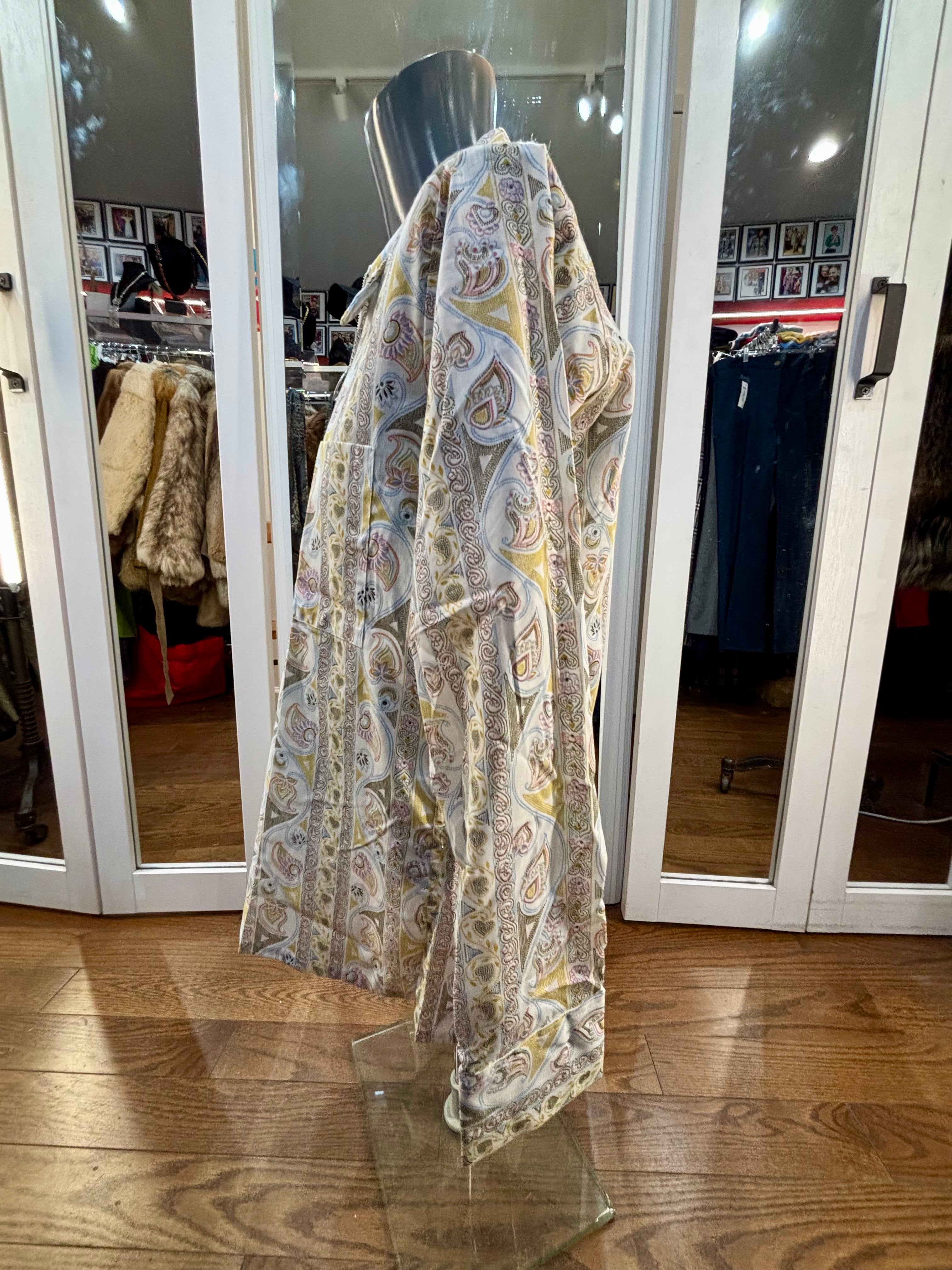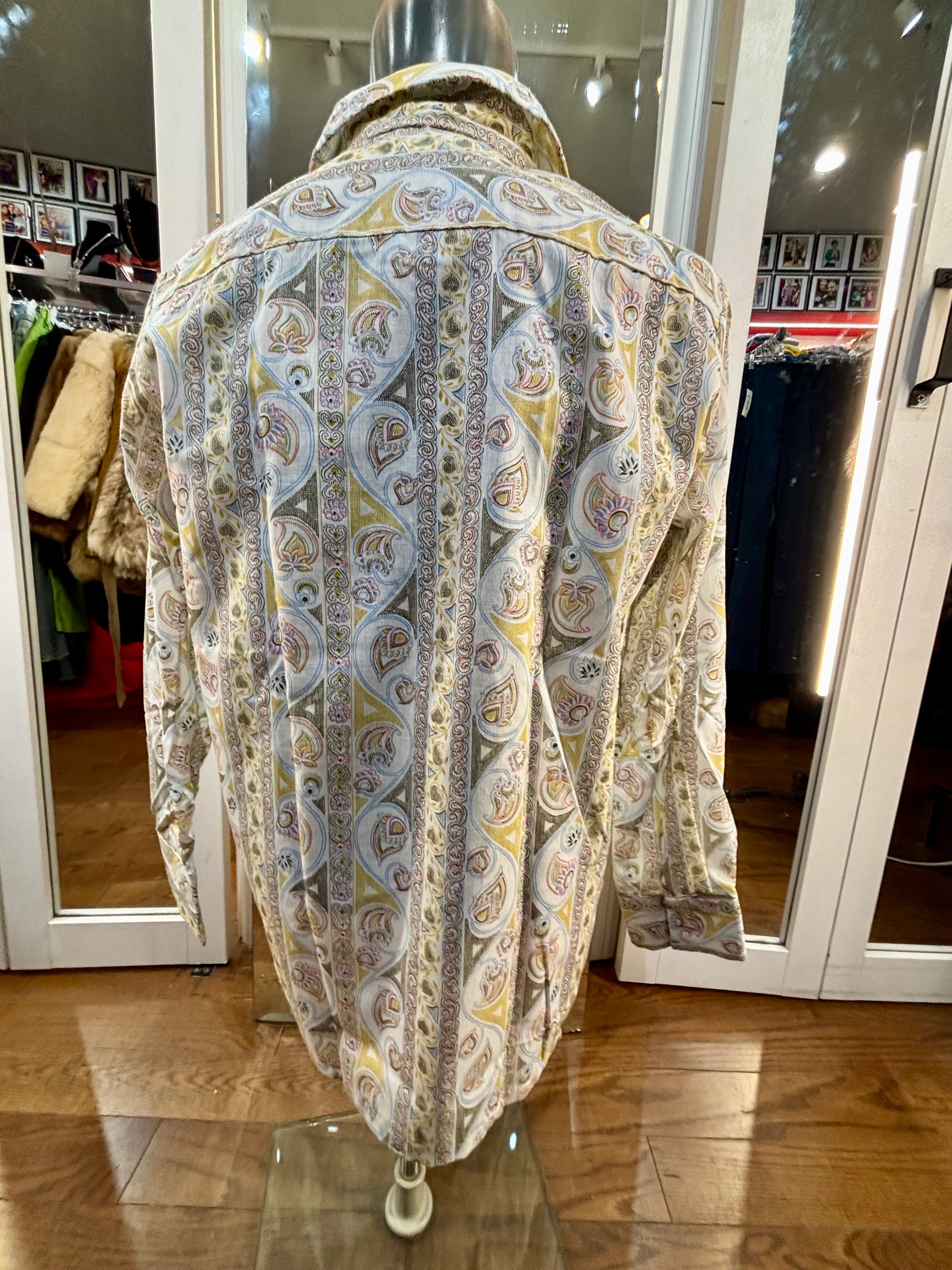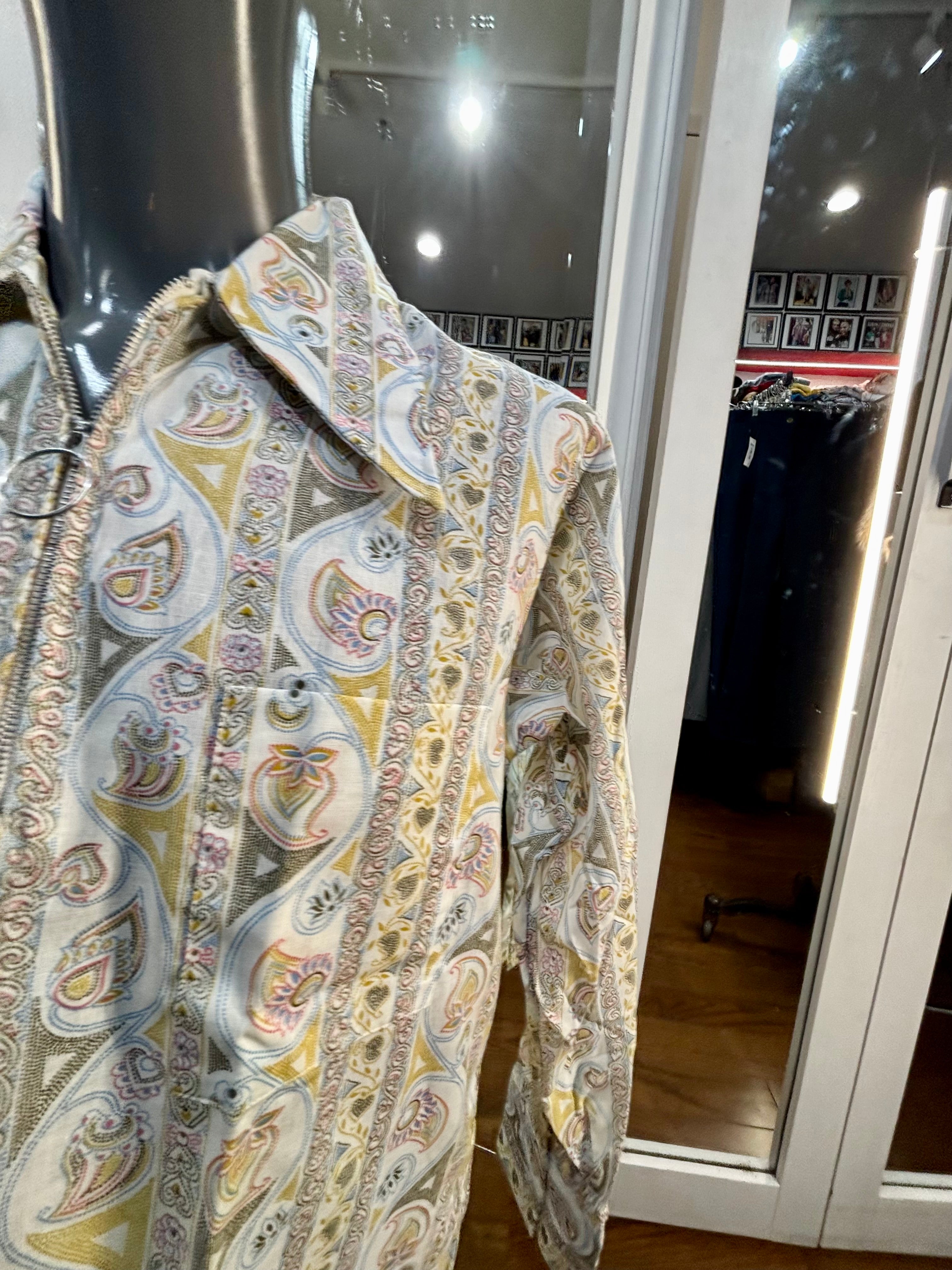 70’s Off White Zip Collar Multicolor Paisley Disco Print Shirt By Today’s Man