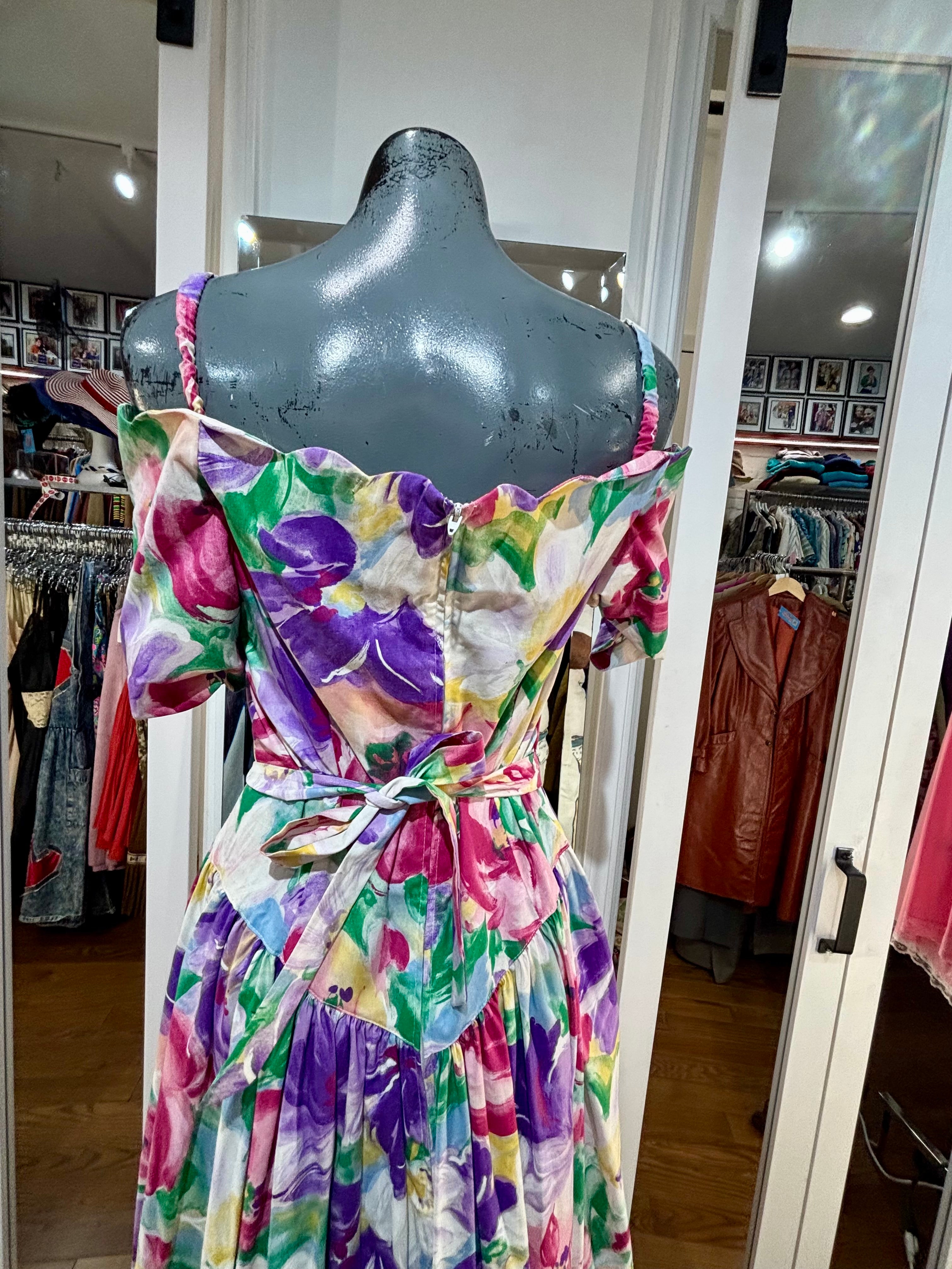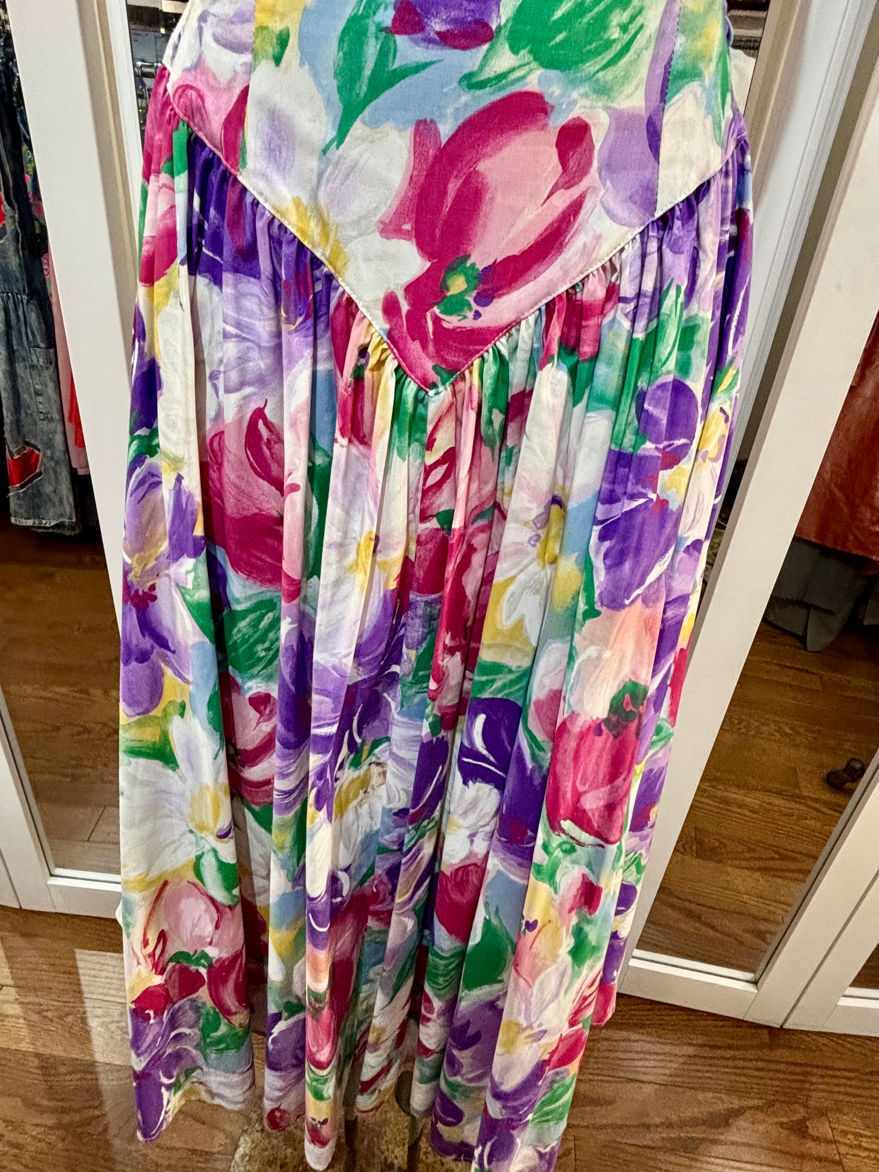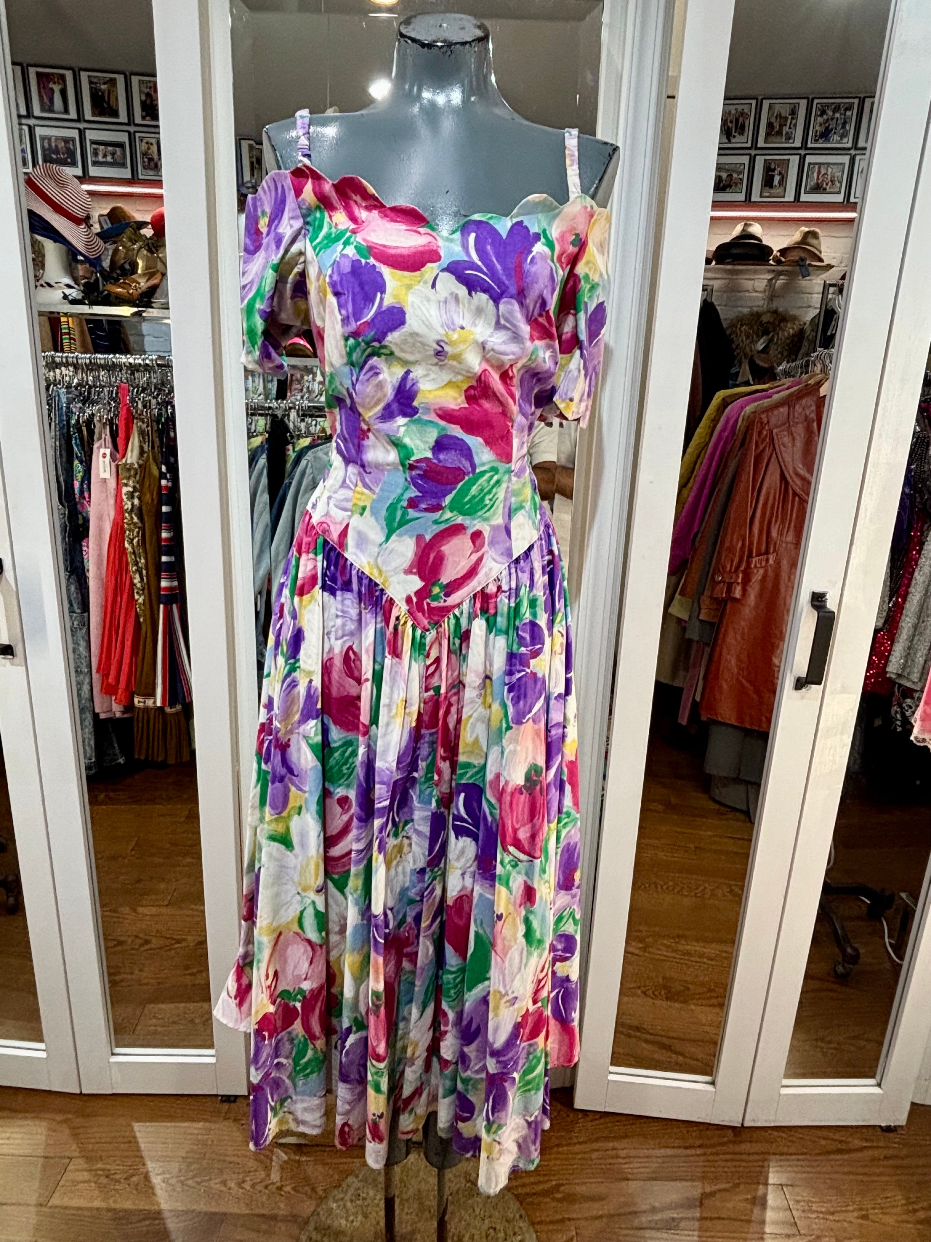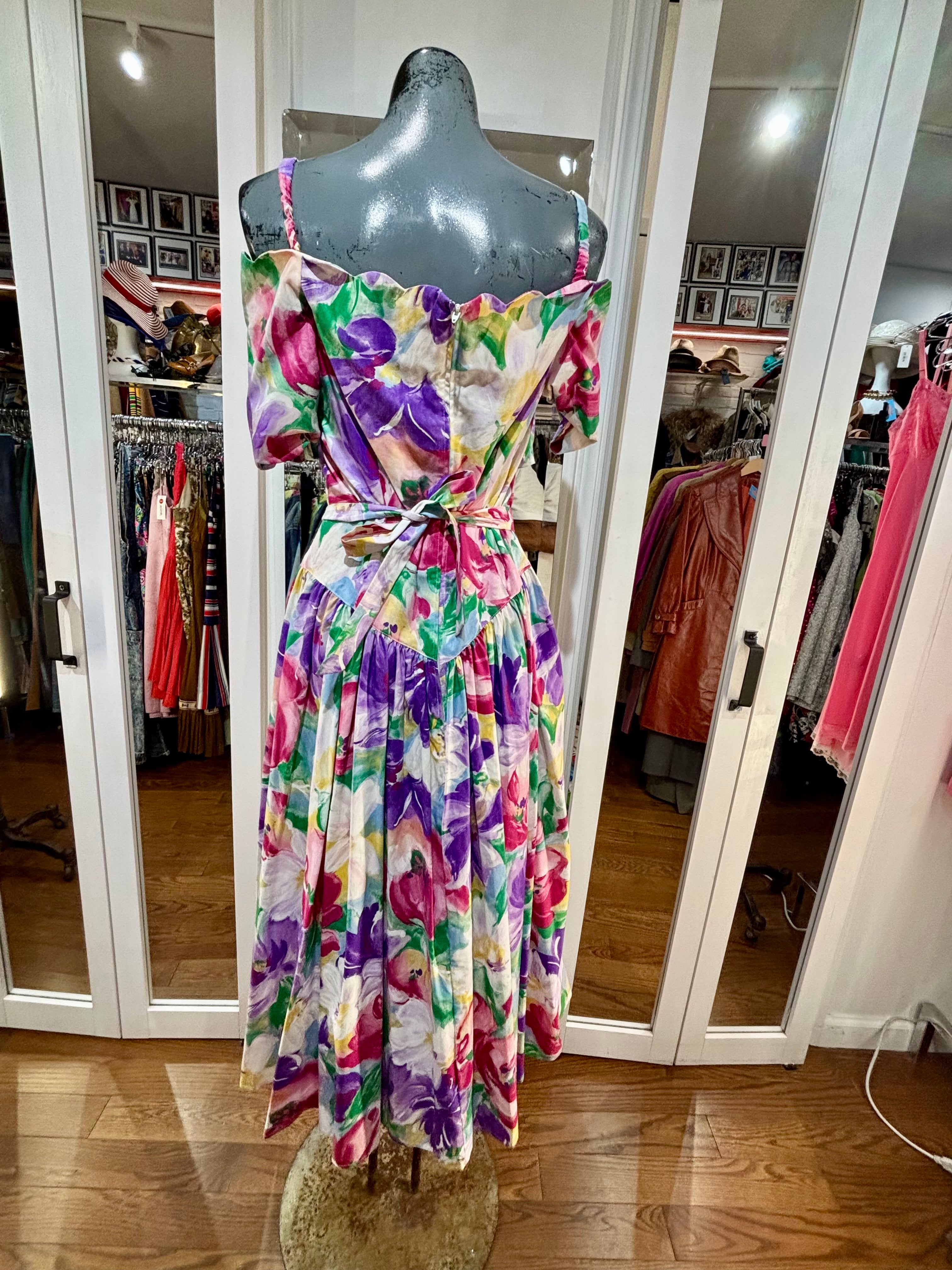 80’s Multicolor Flower Garden Print Dress By Robbie Bee