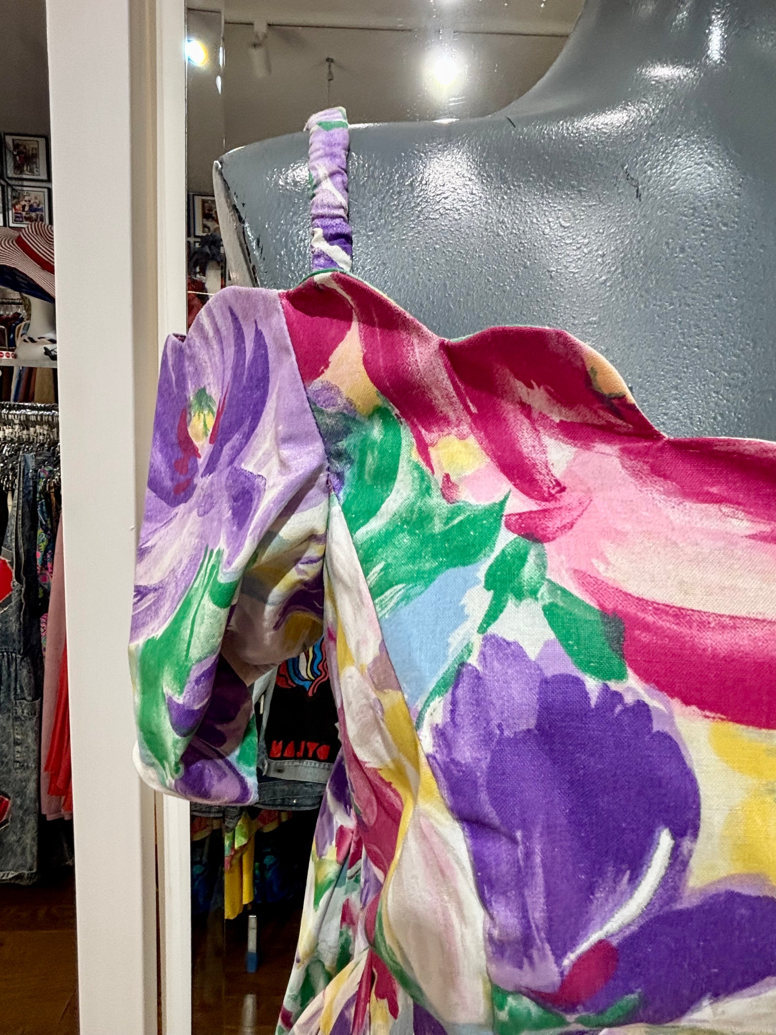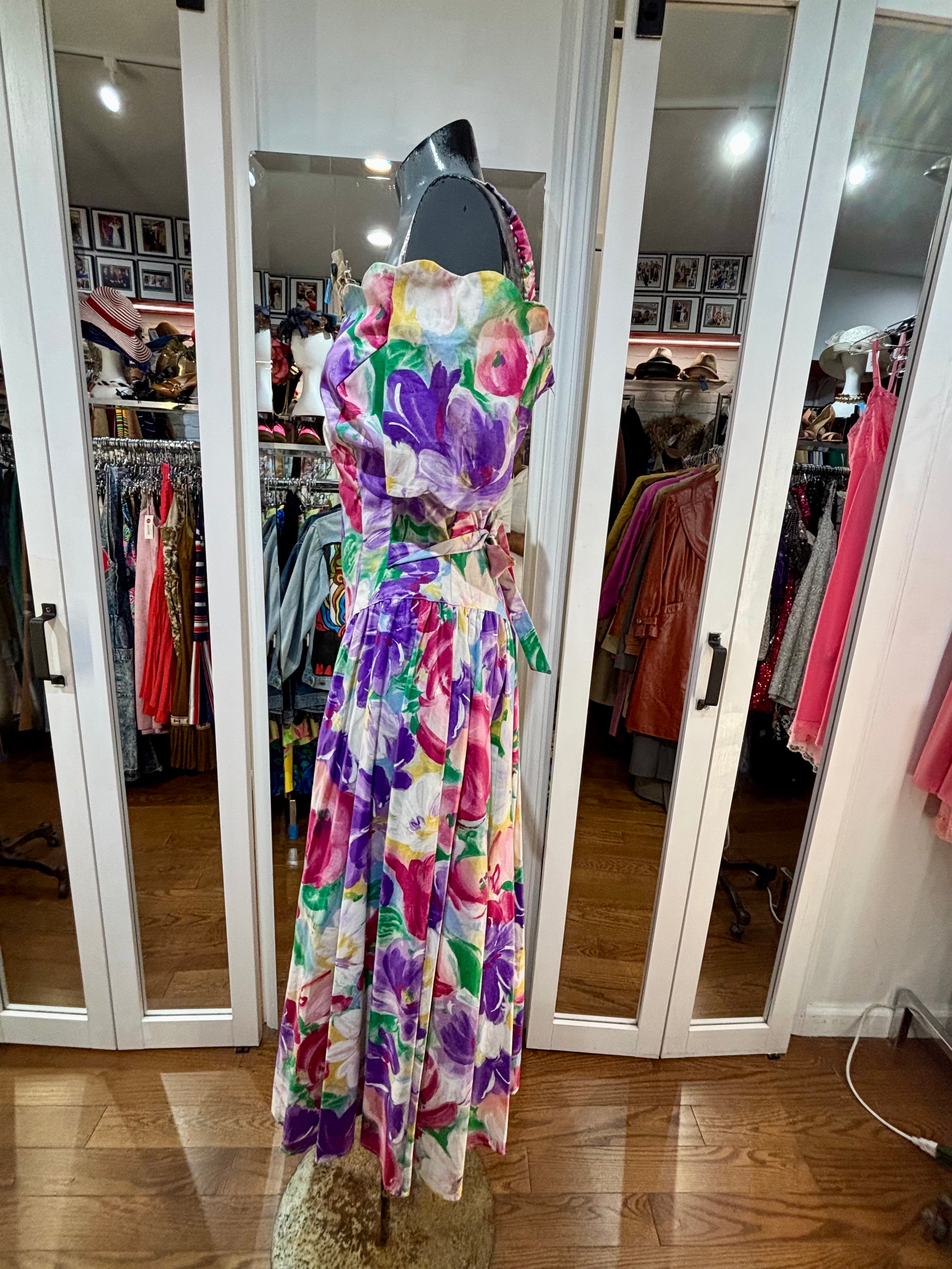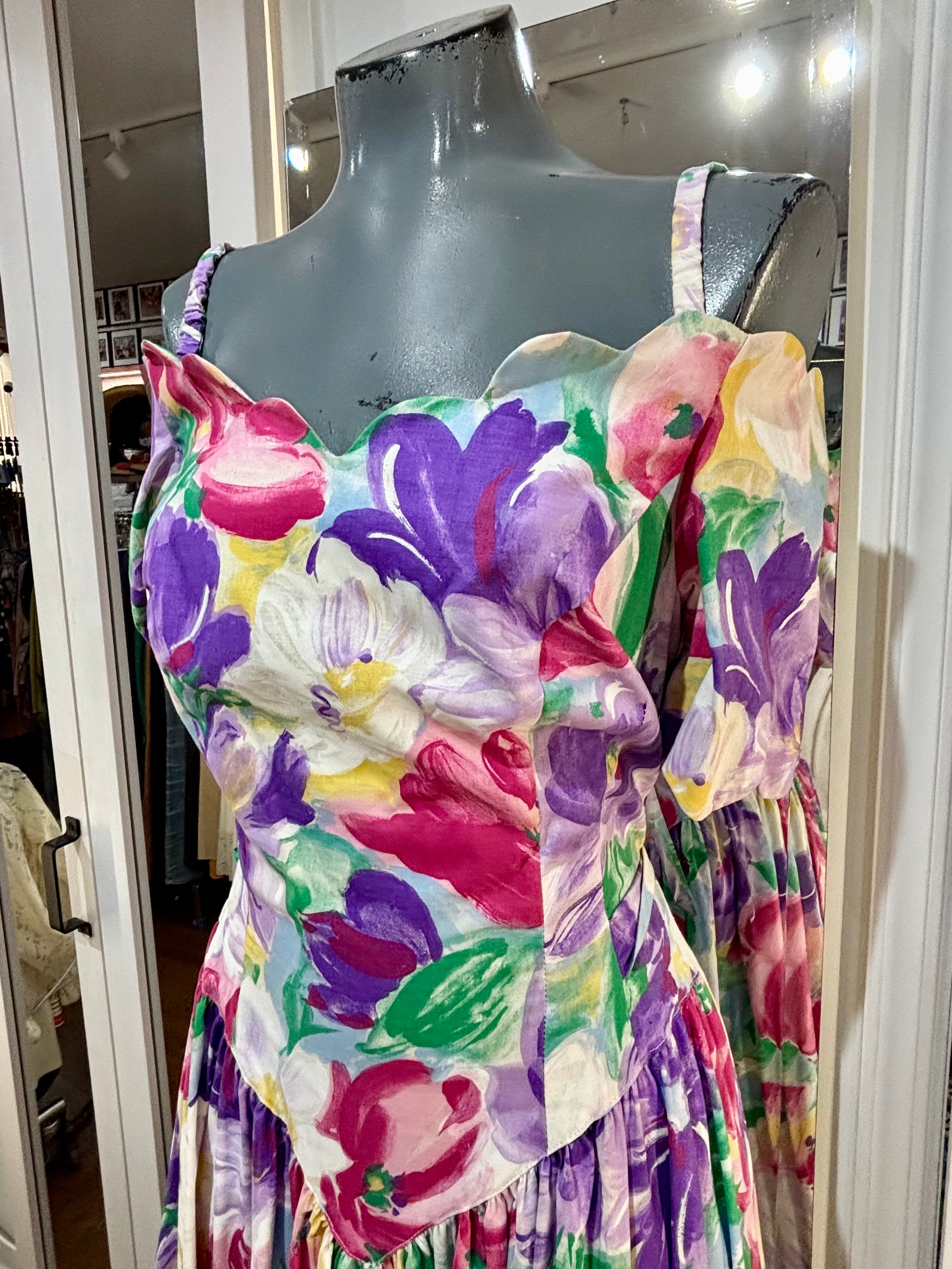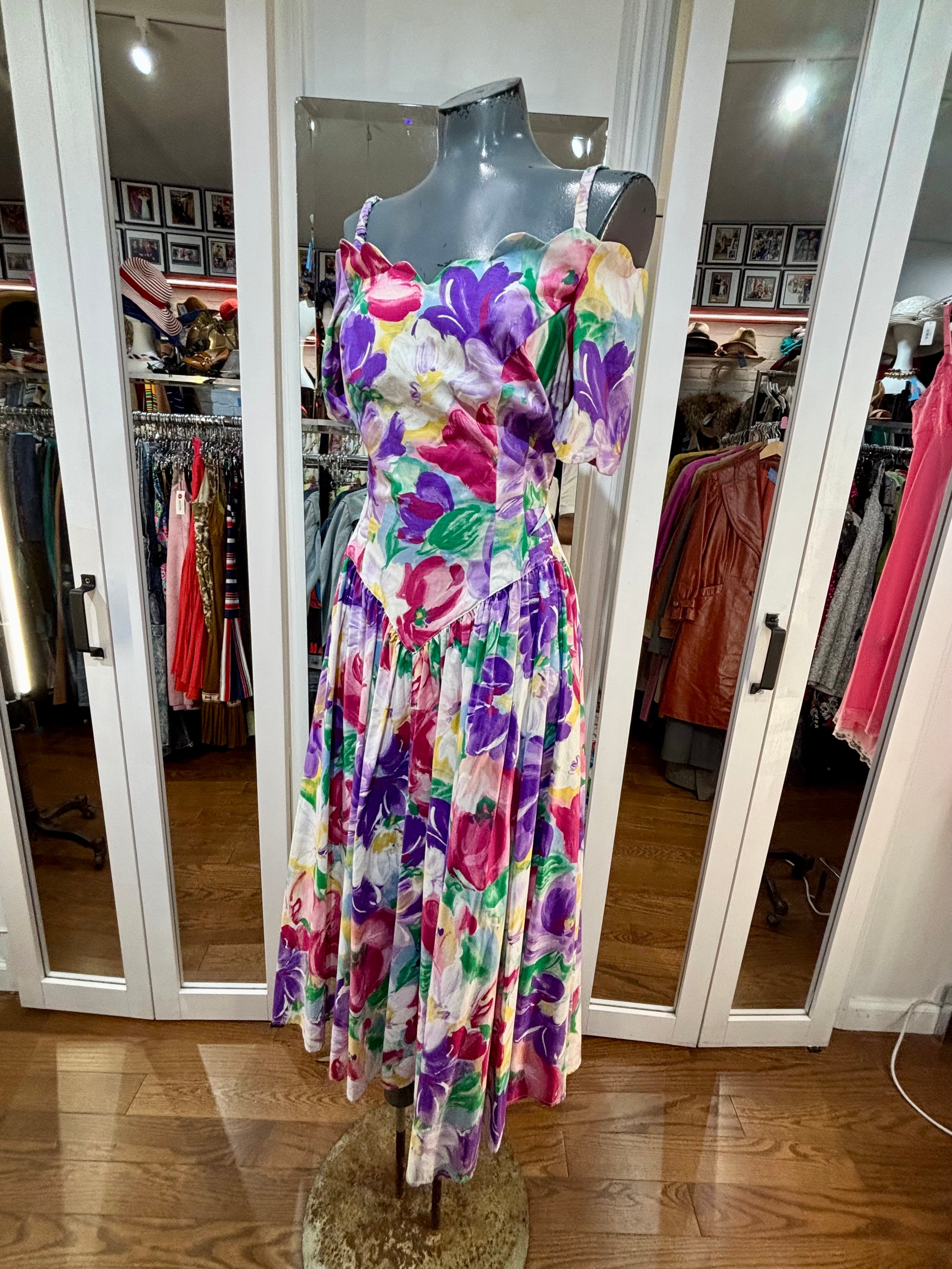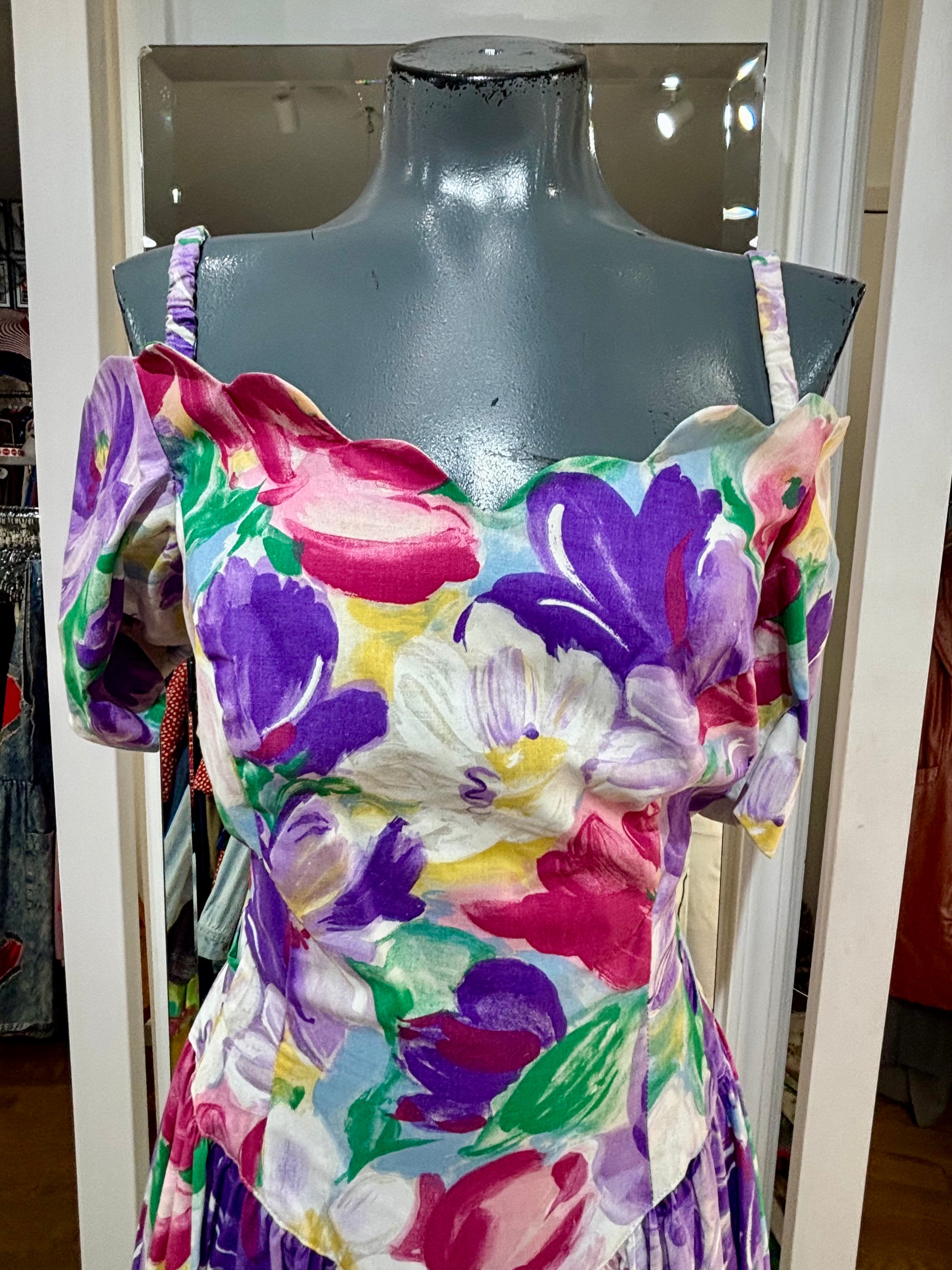 80’s Multicolor Flower Garden Print Dress By Robbie Bee
