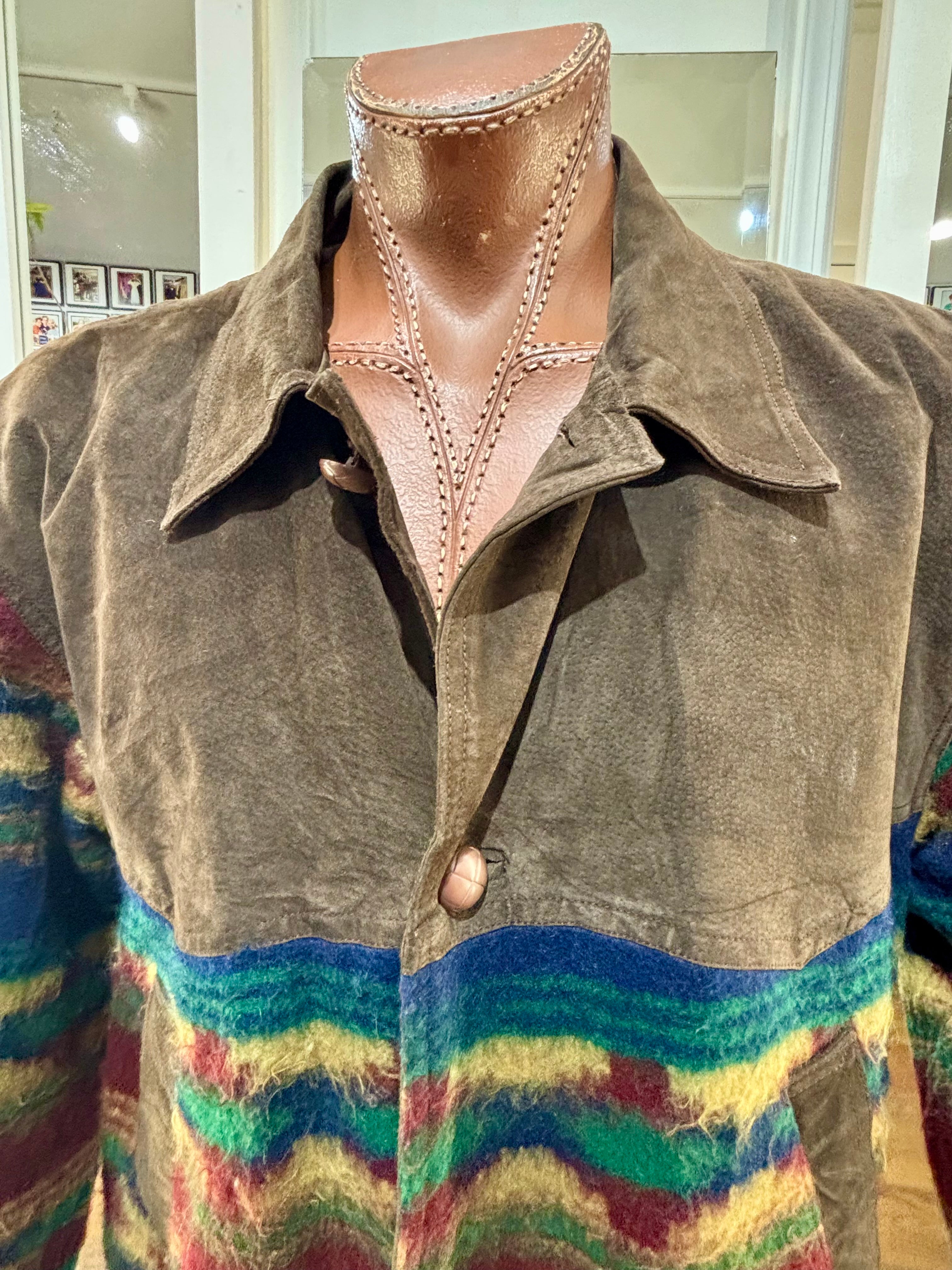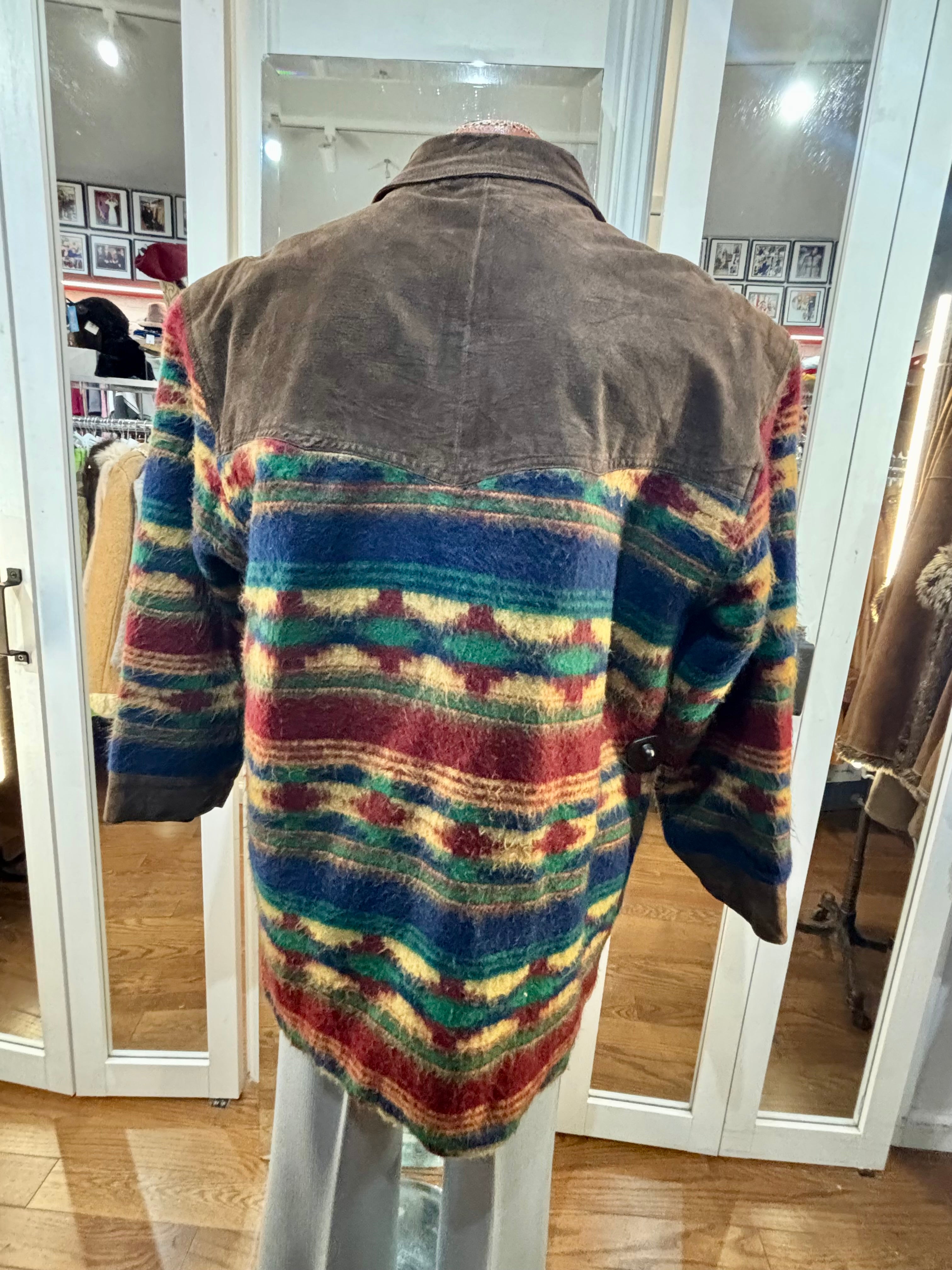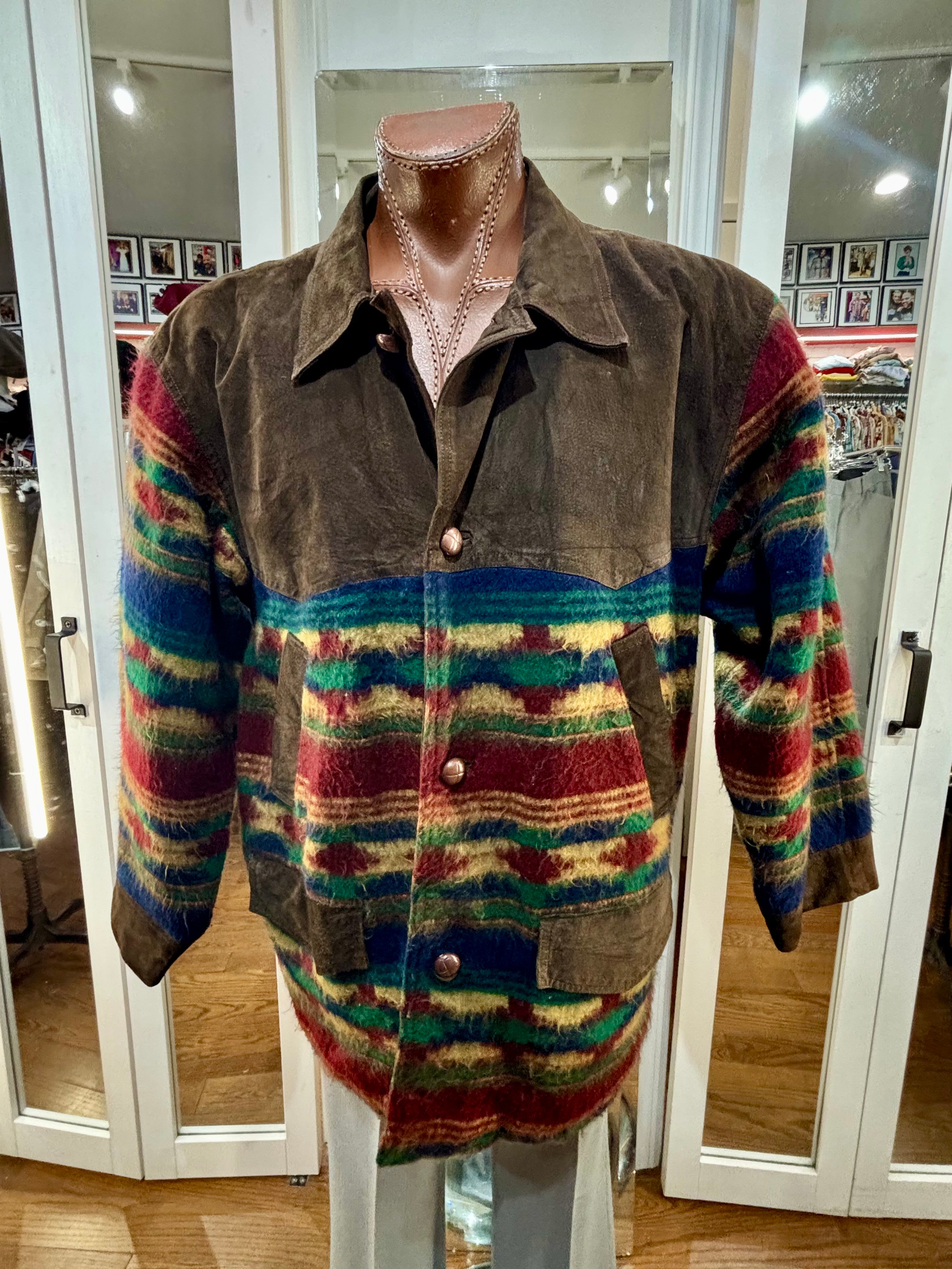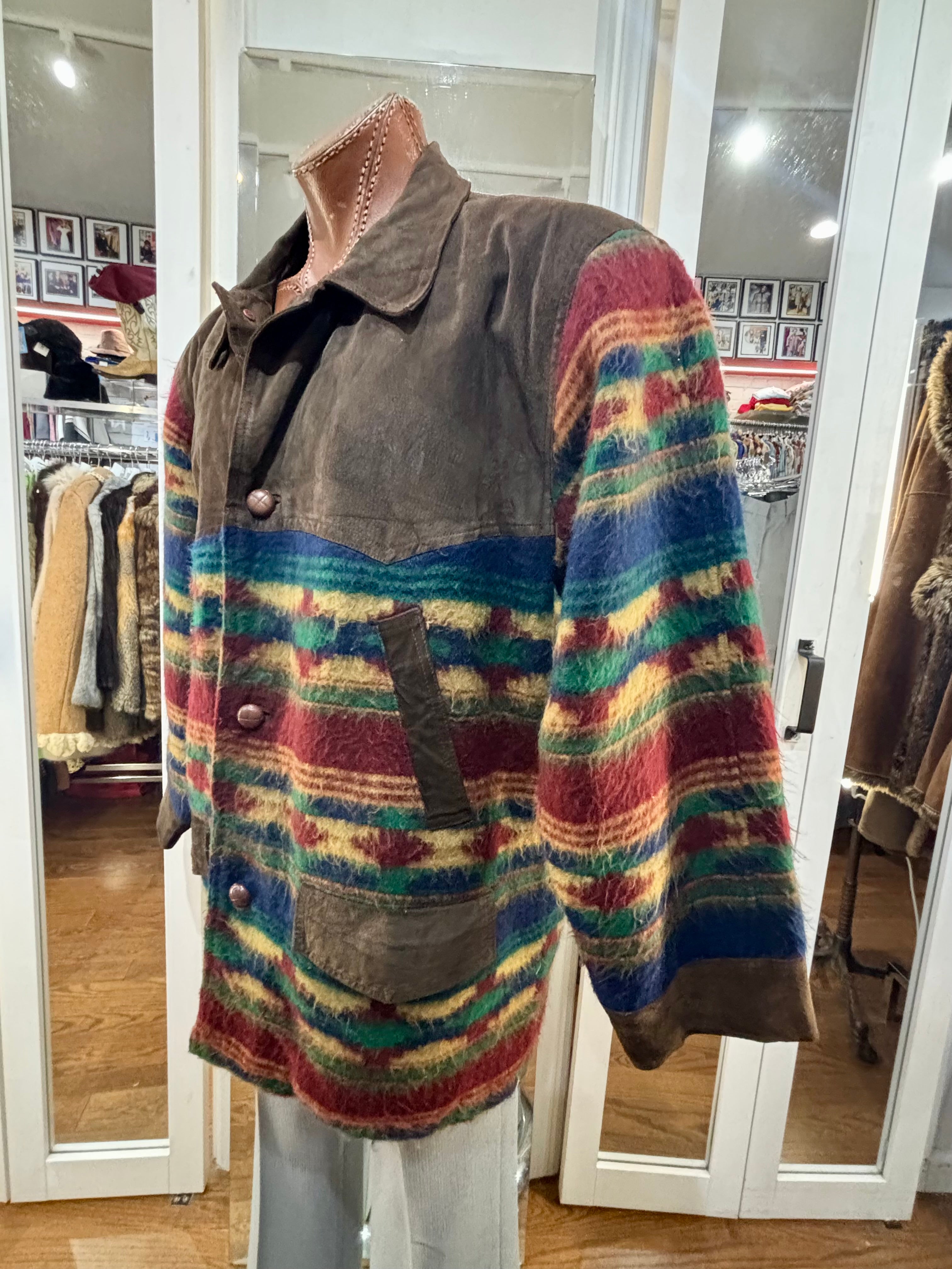 80’s Brown Suede And Native American Multicolor Knit Jacket By Classic Men’s Clothing