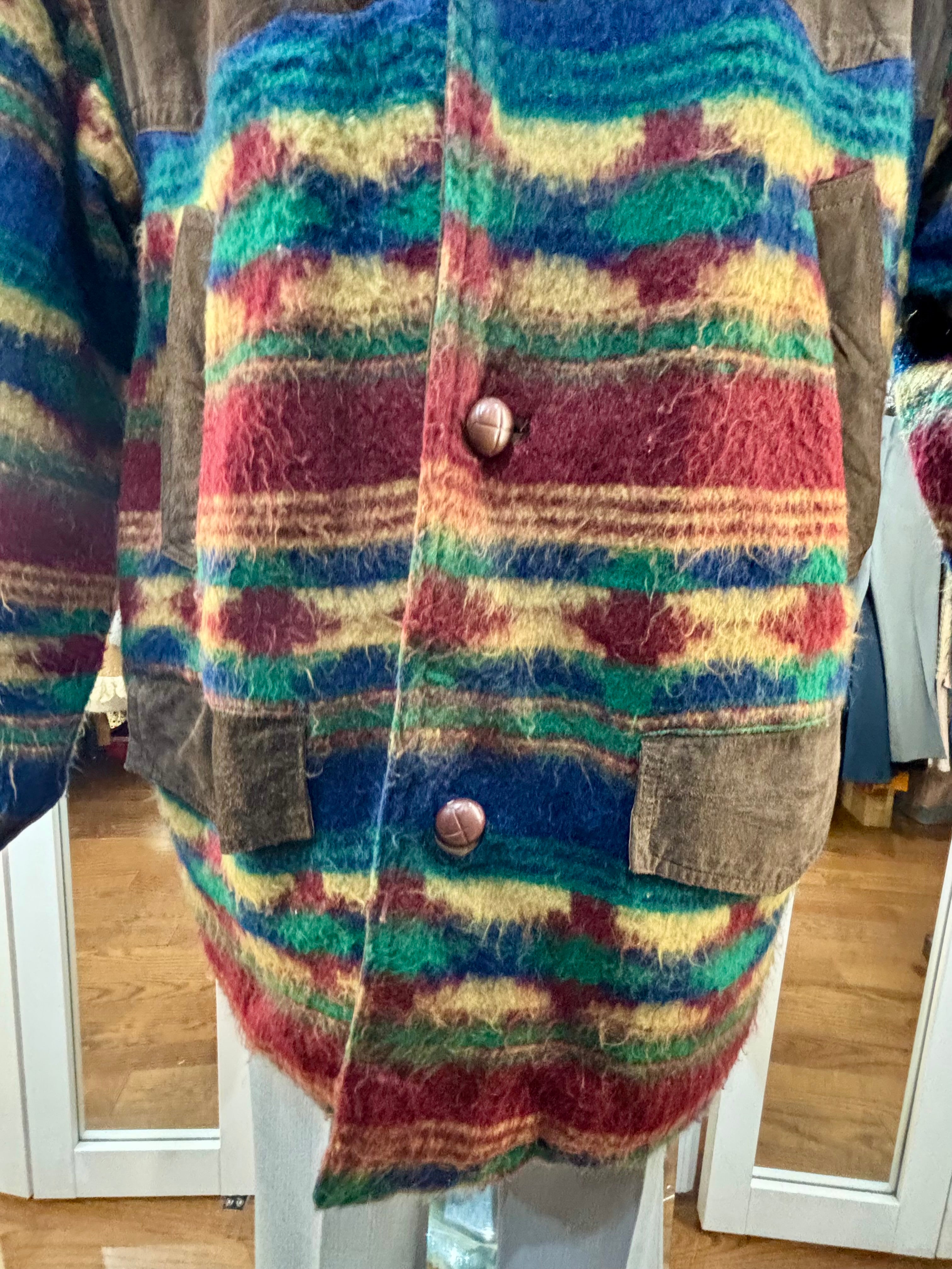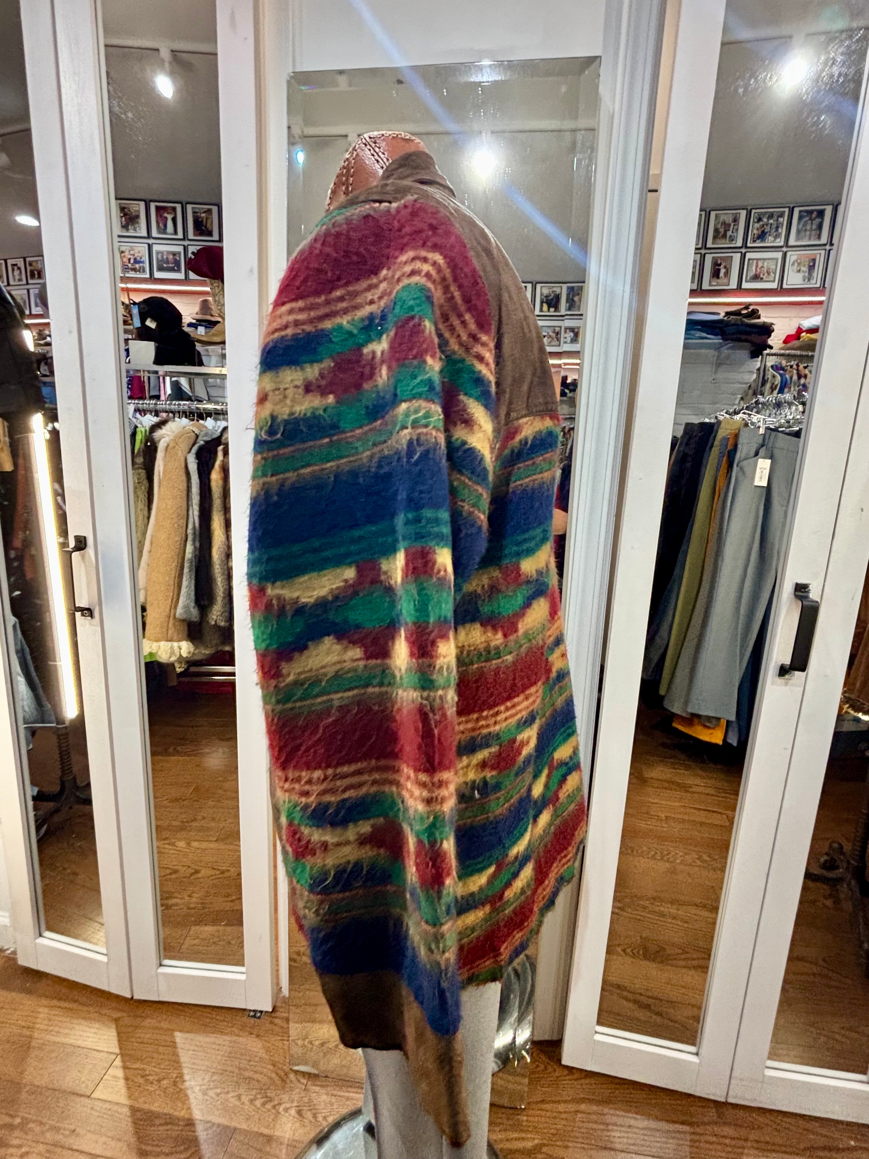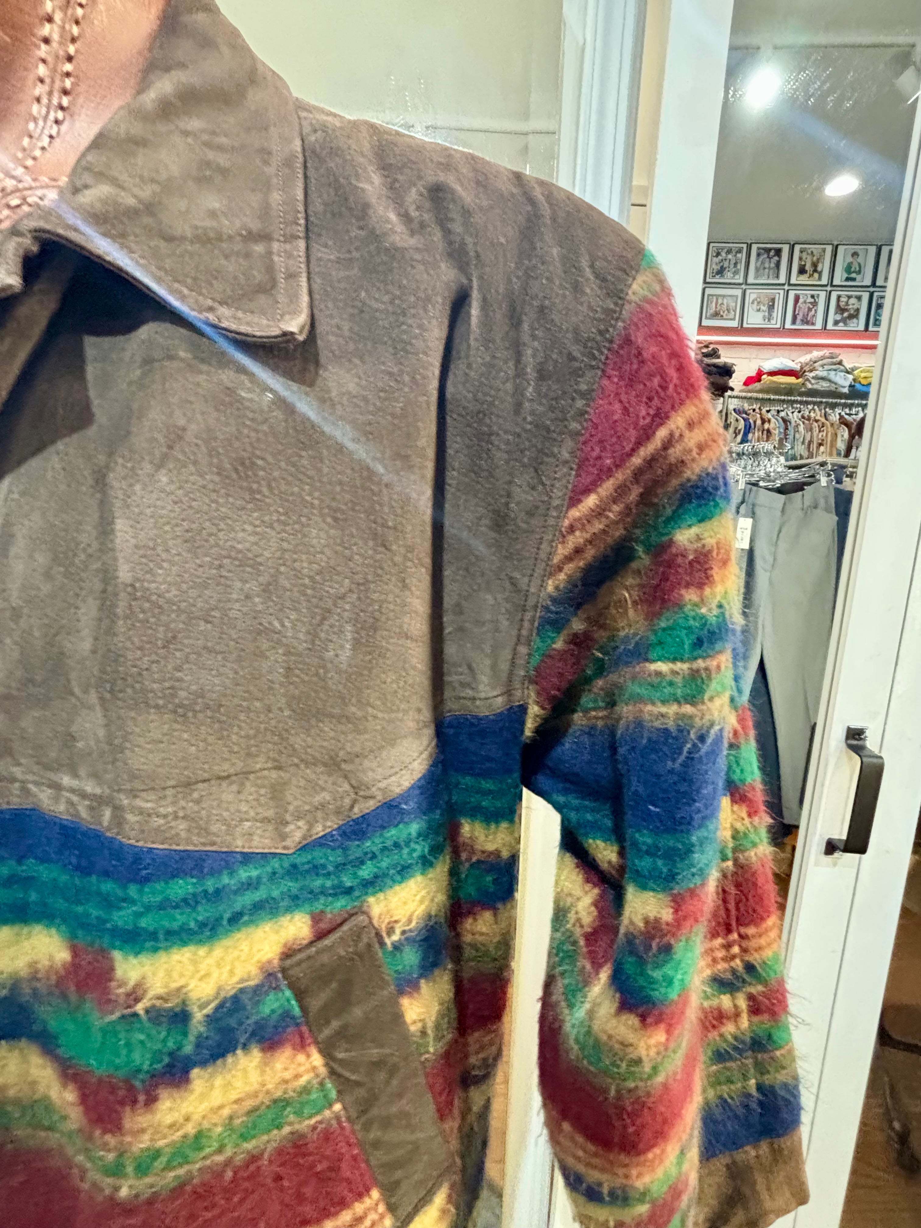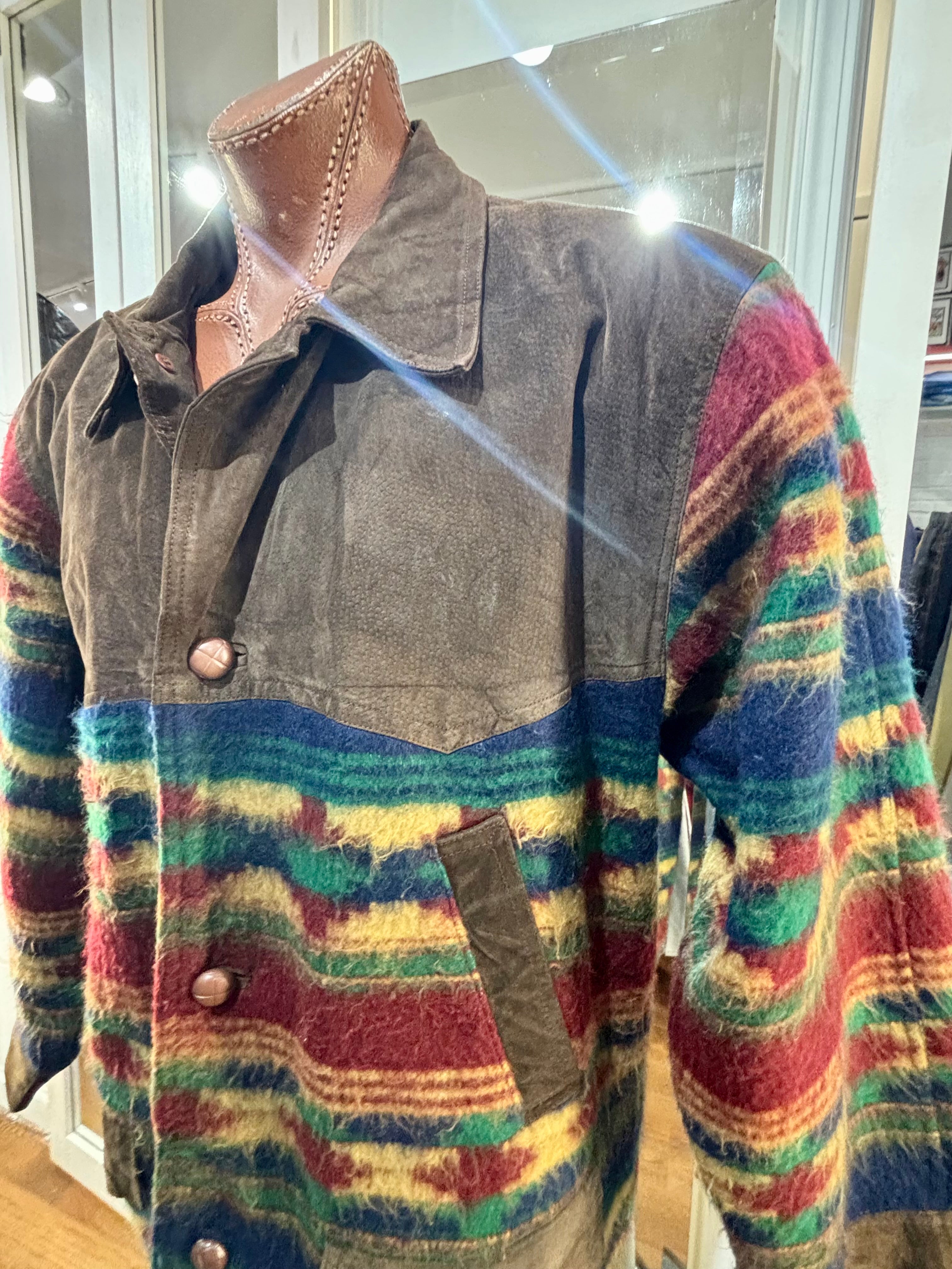 80’s Brown Suede And Native American Multicolor Knit Jacket By Classic Men’s Clothing