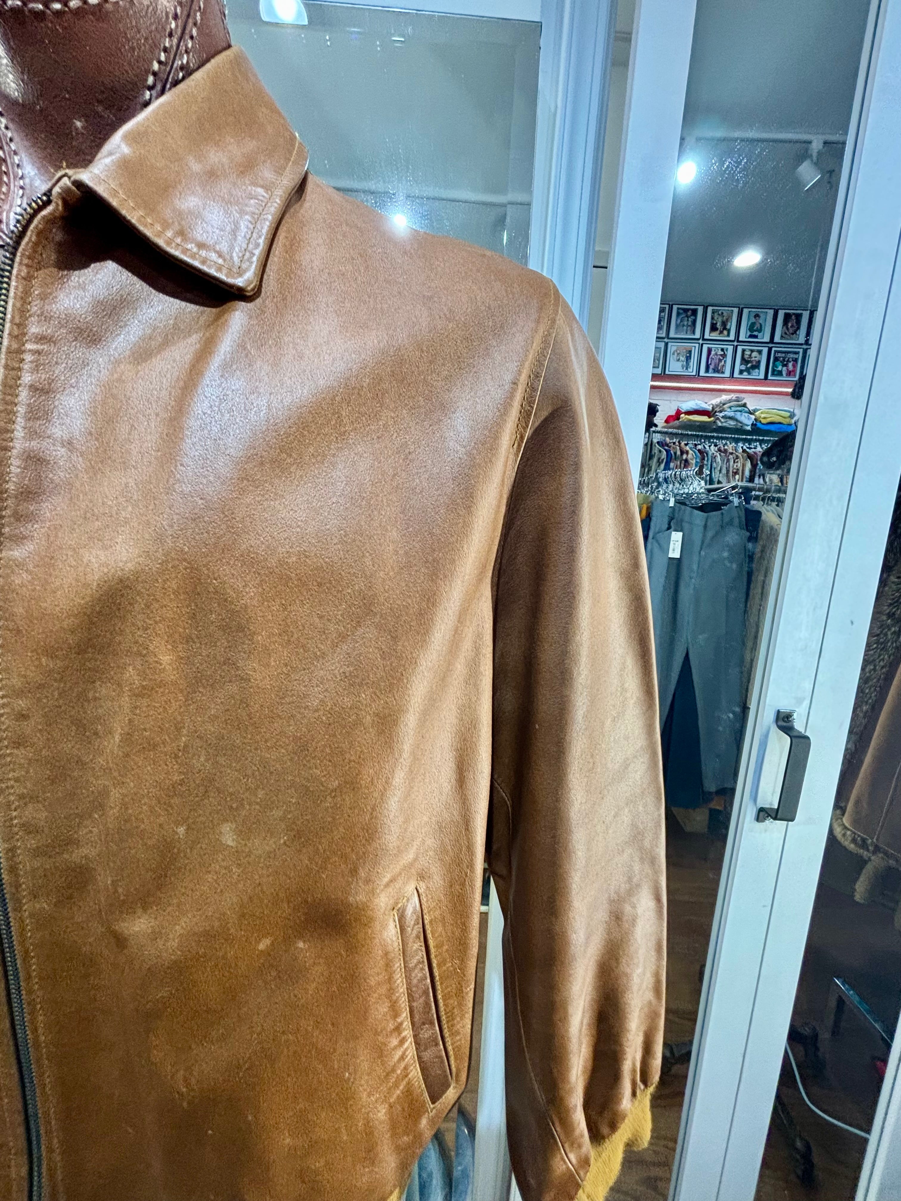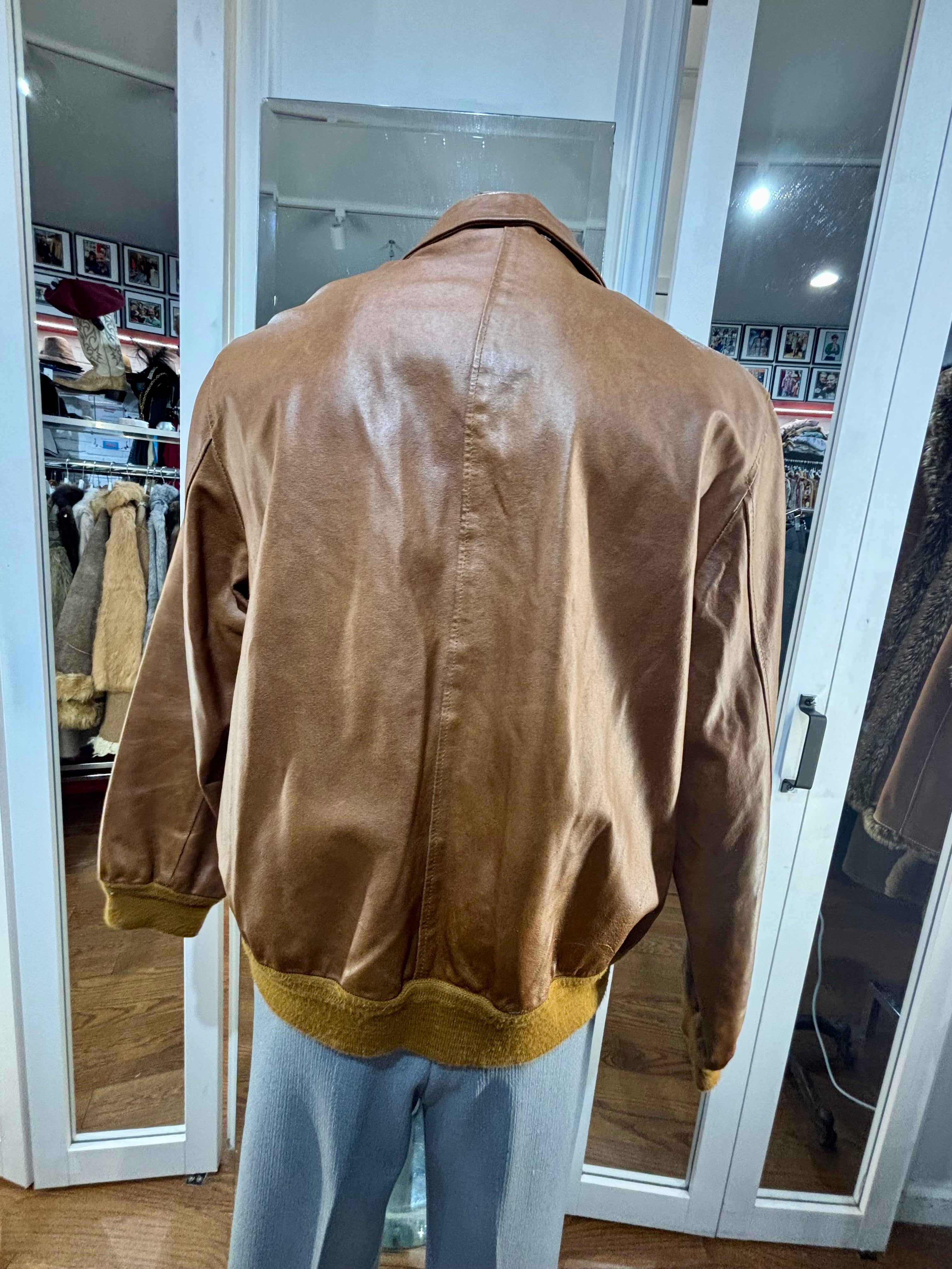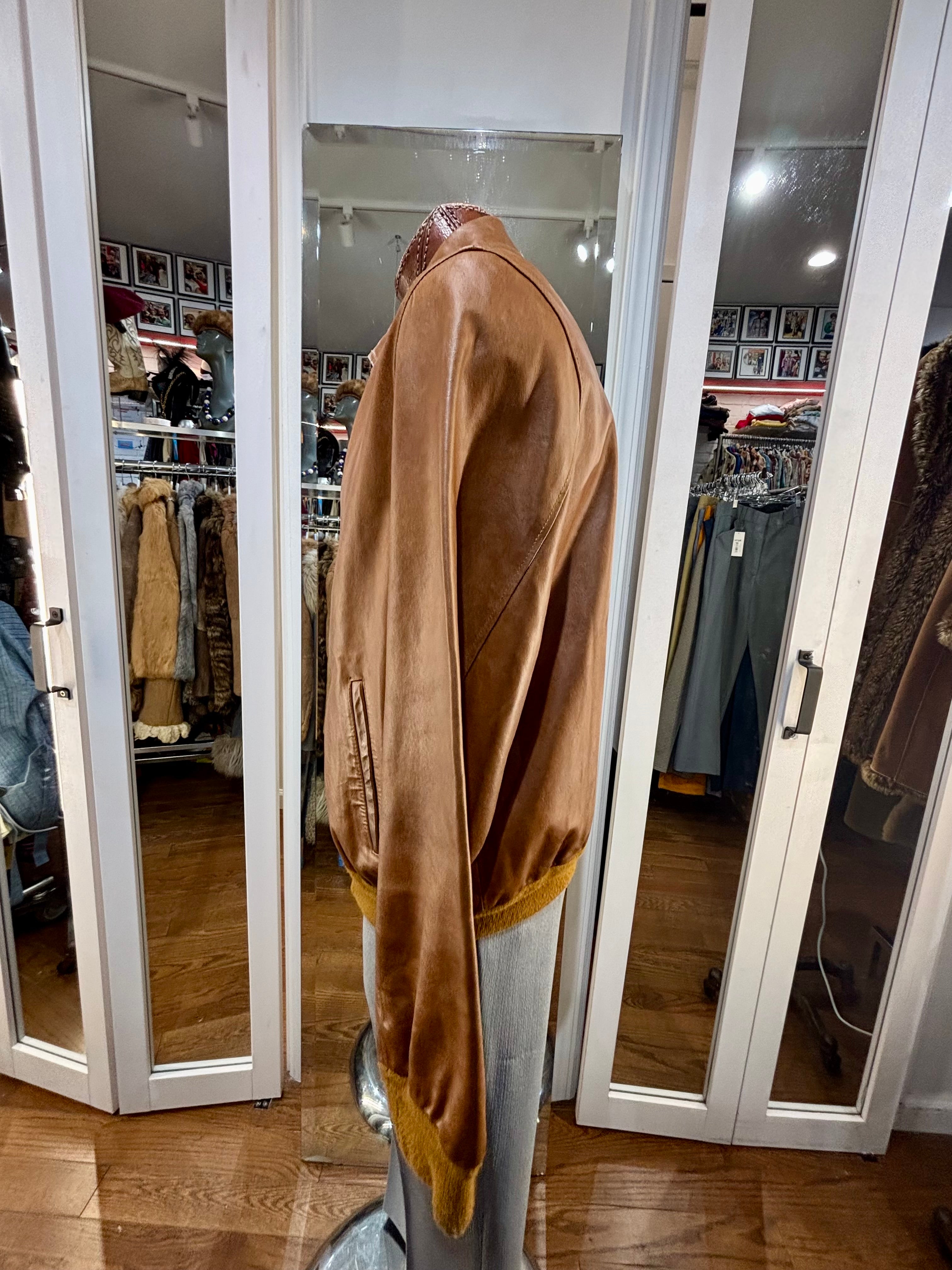90’s Caramel Brown Bomber Jacket By Green Leaves Sportswear