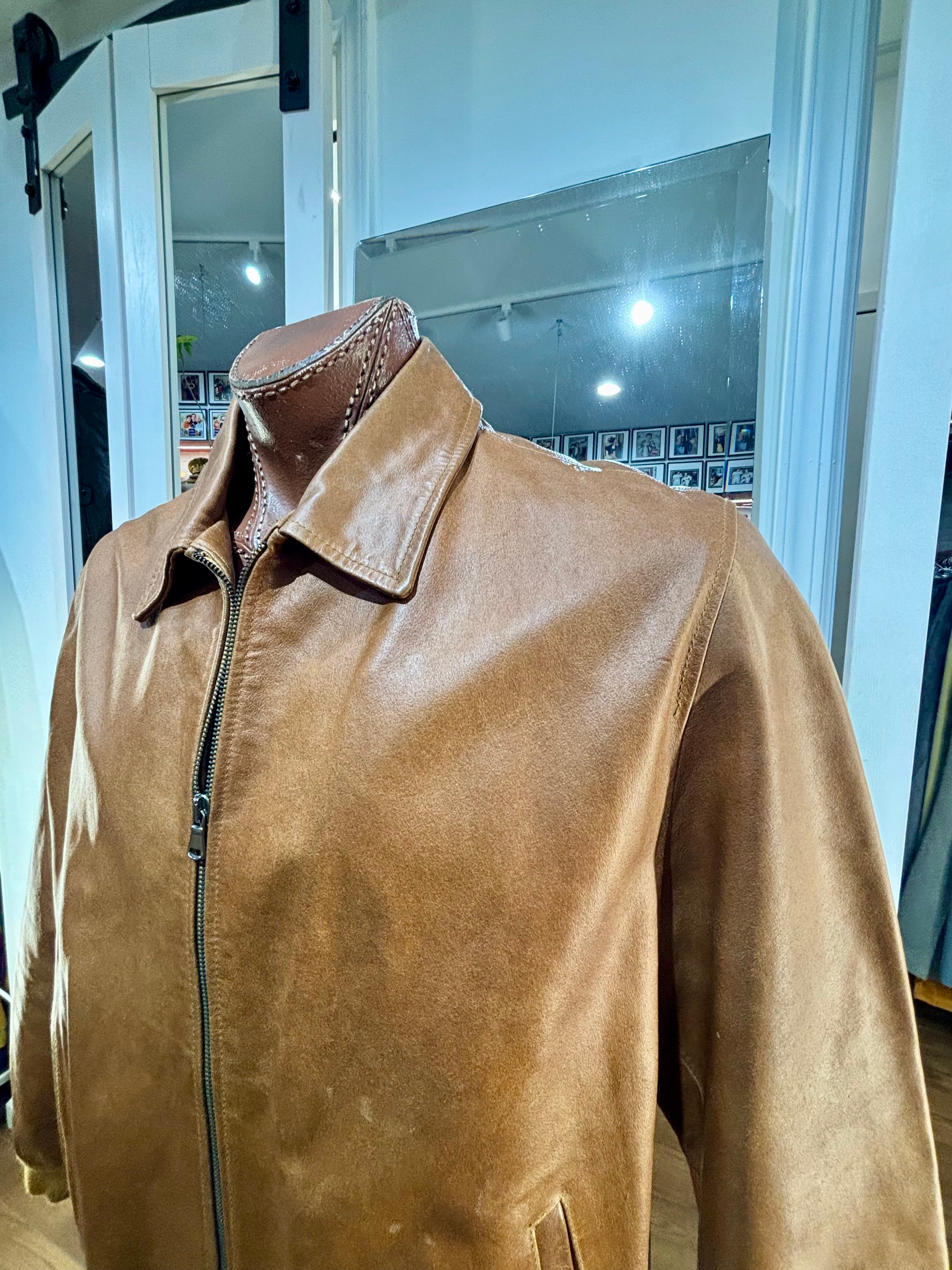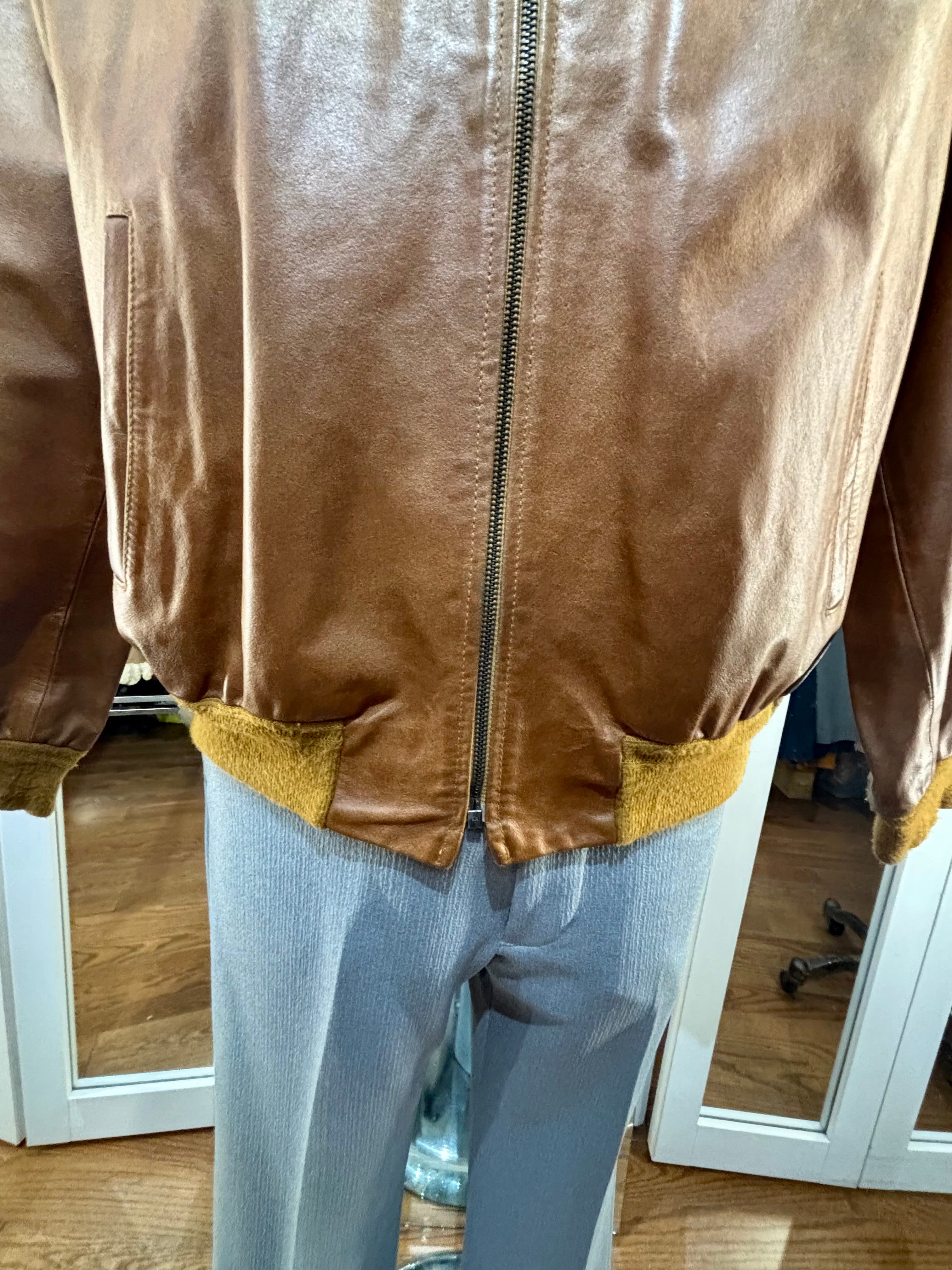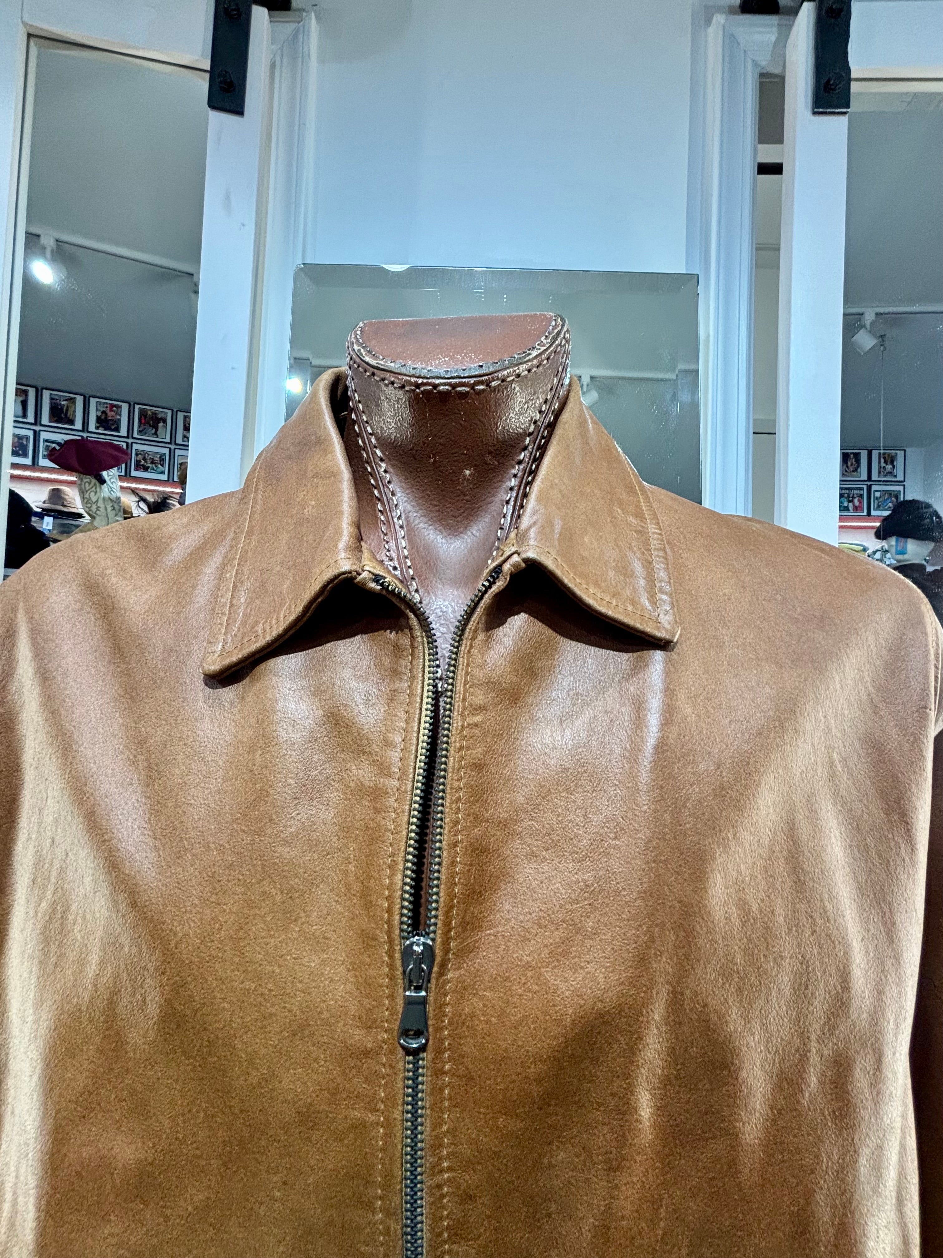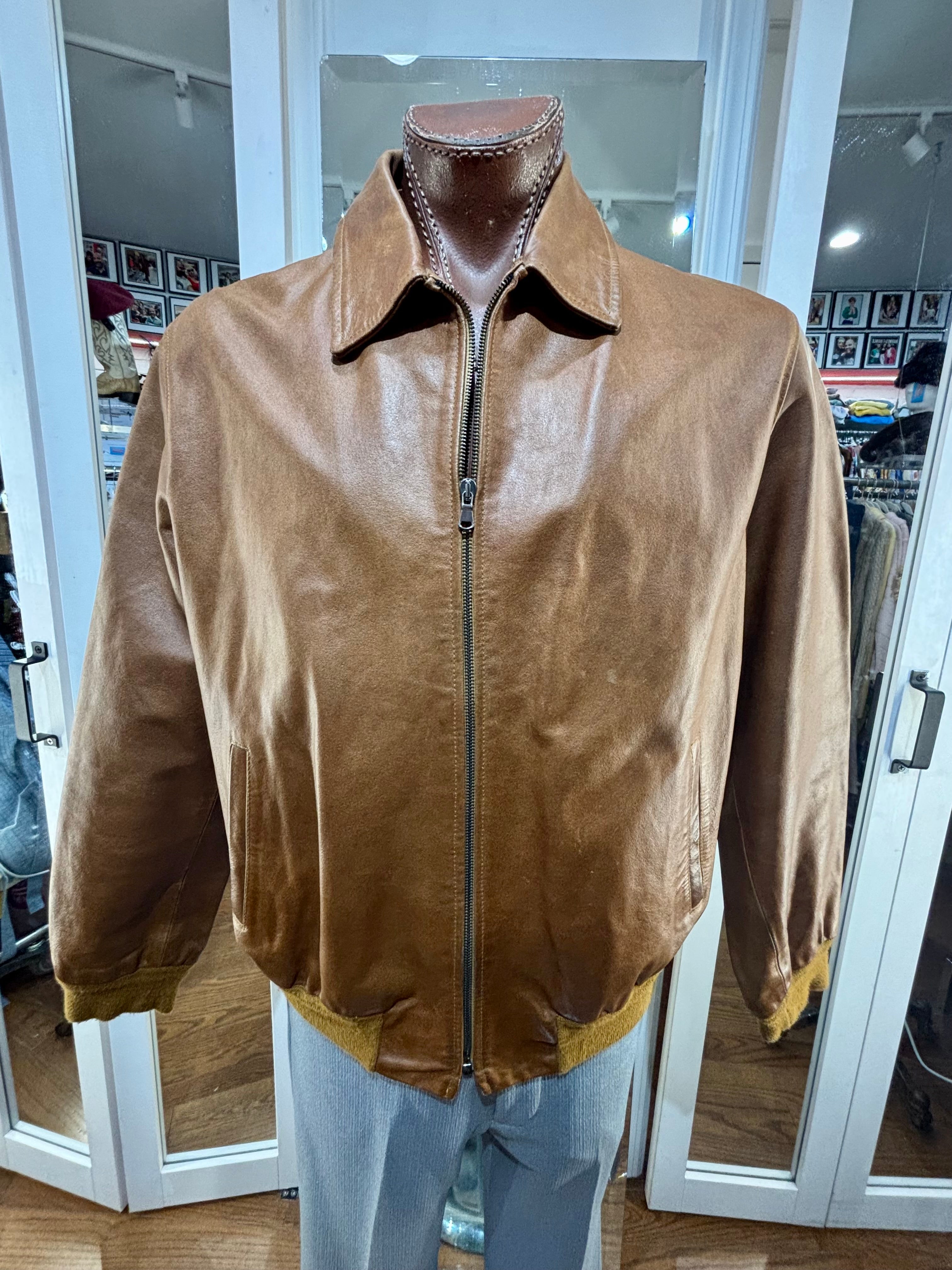 90’s Caramel Brown Bomber Jacket By Green Leaves Sportswear