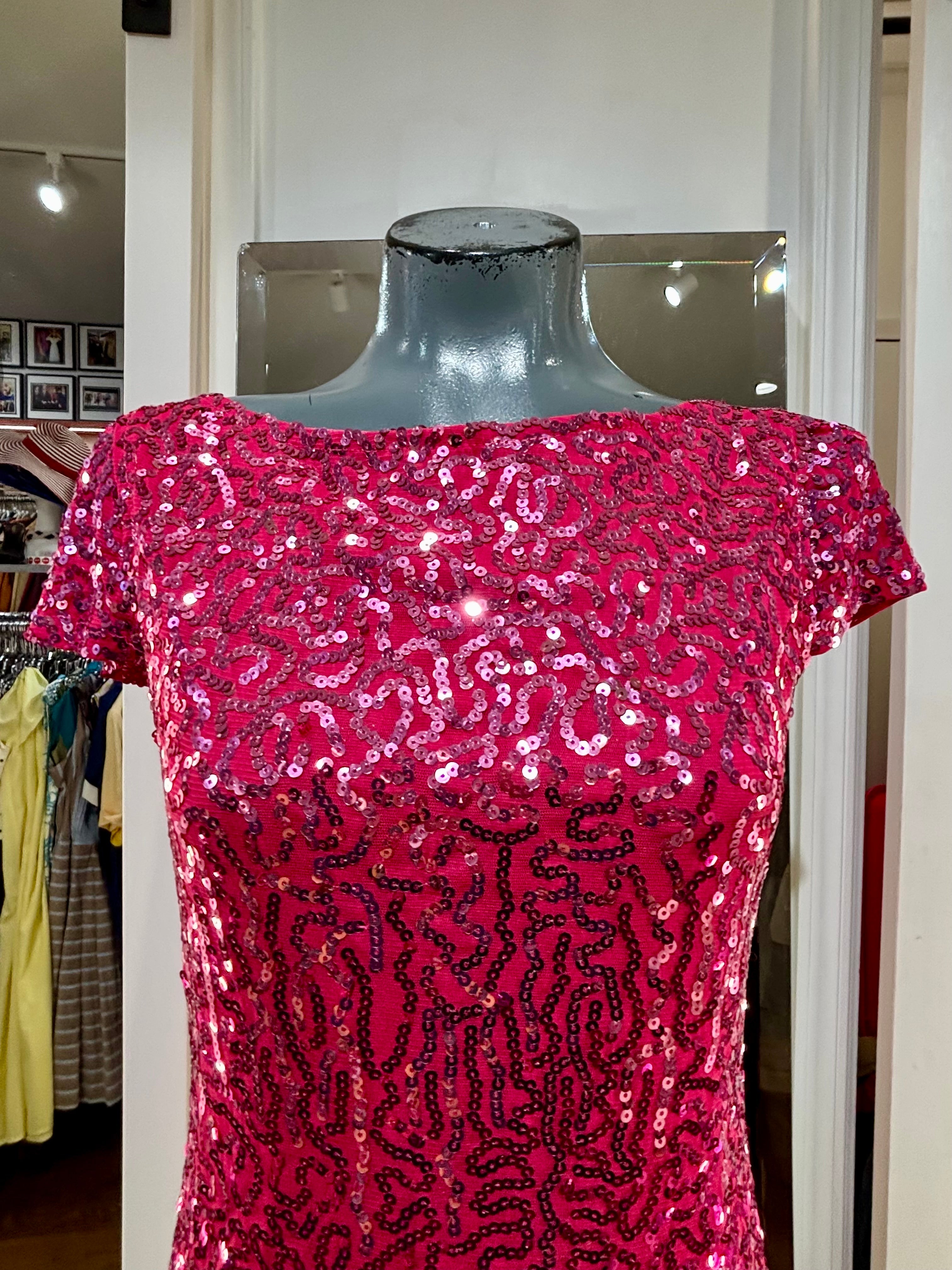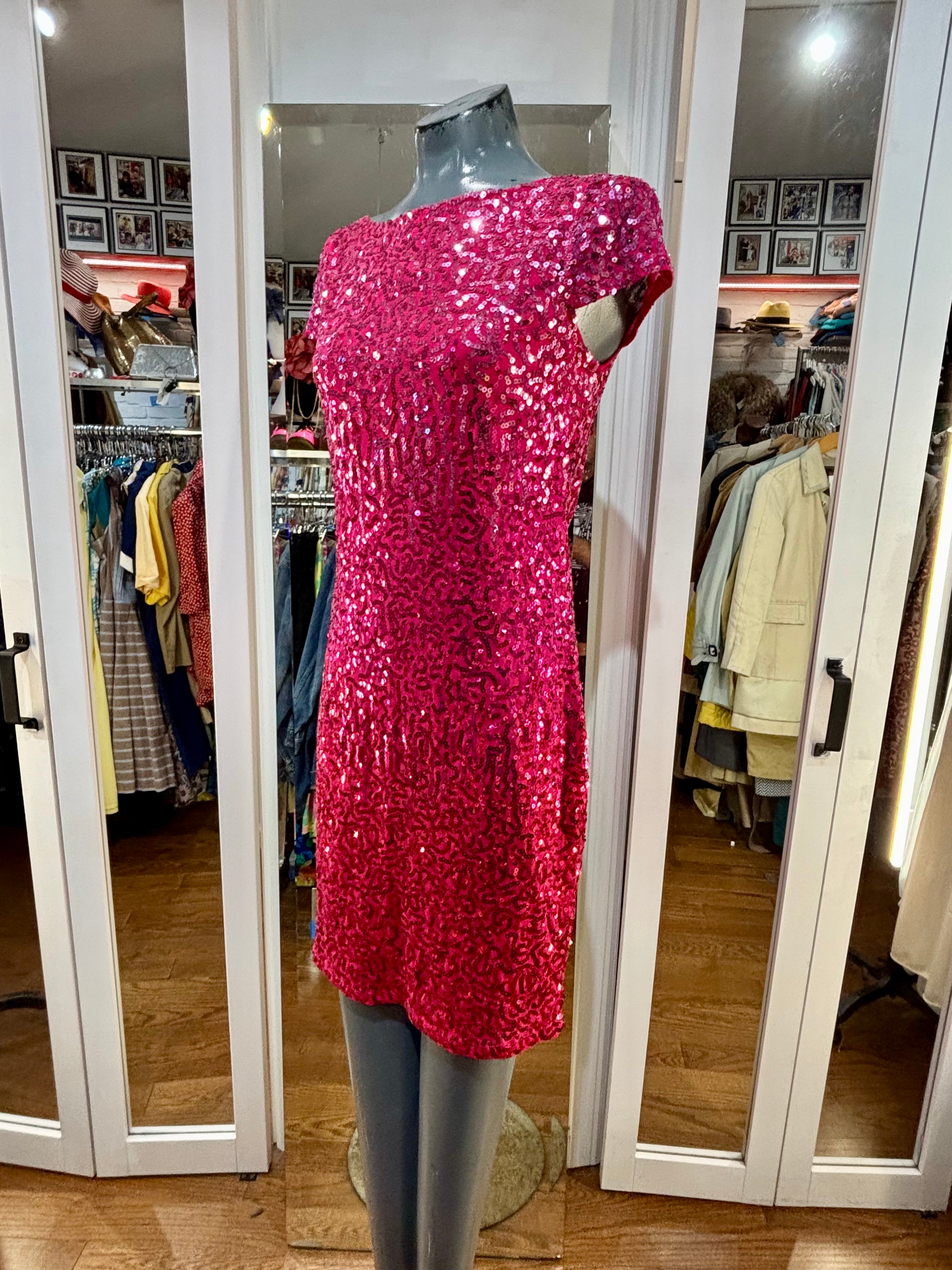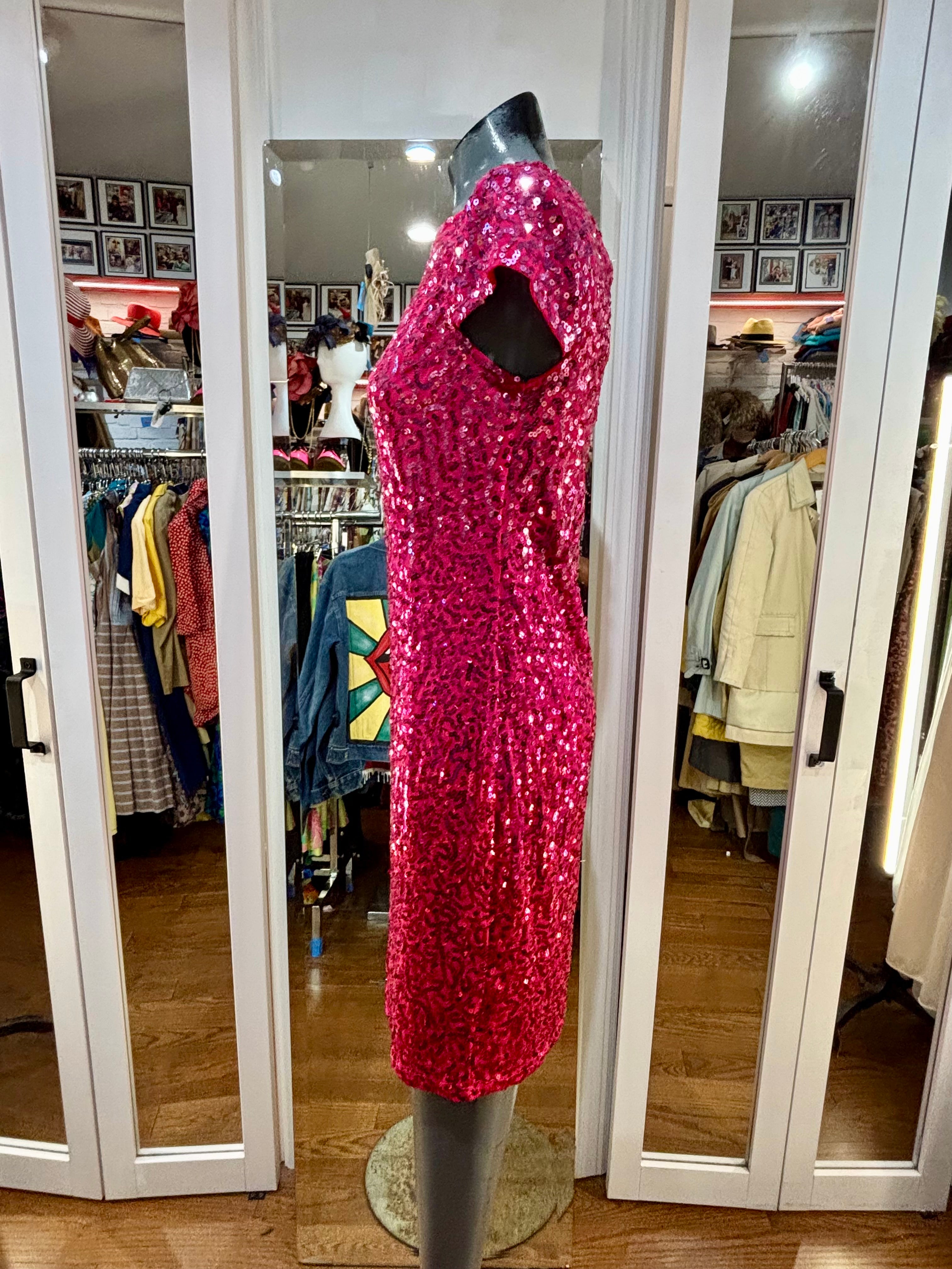 90’s Hot Pink Cap Sleeve Sequin Dress