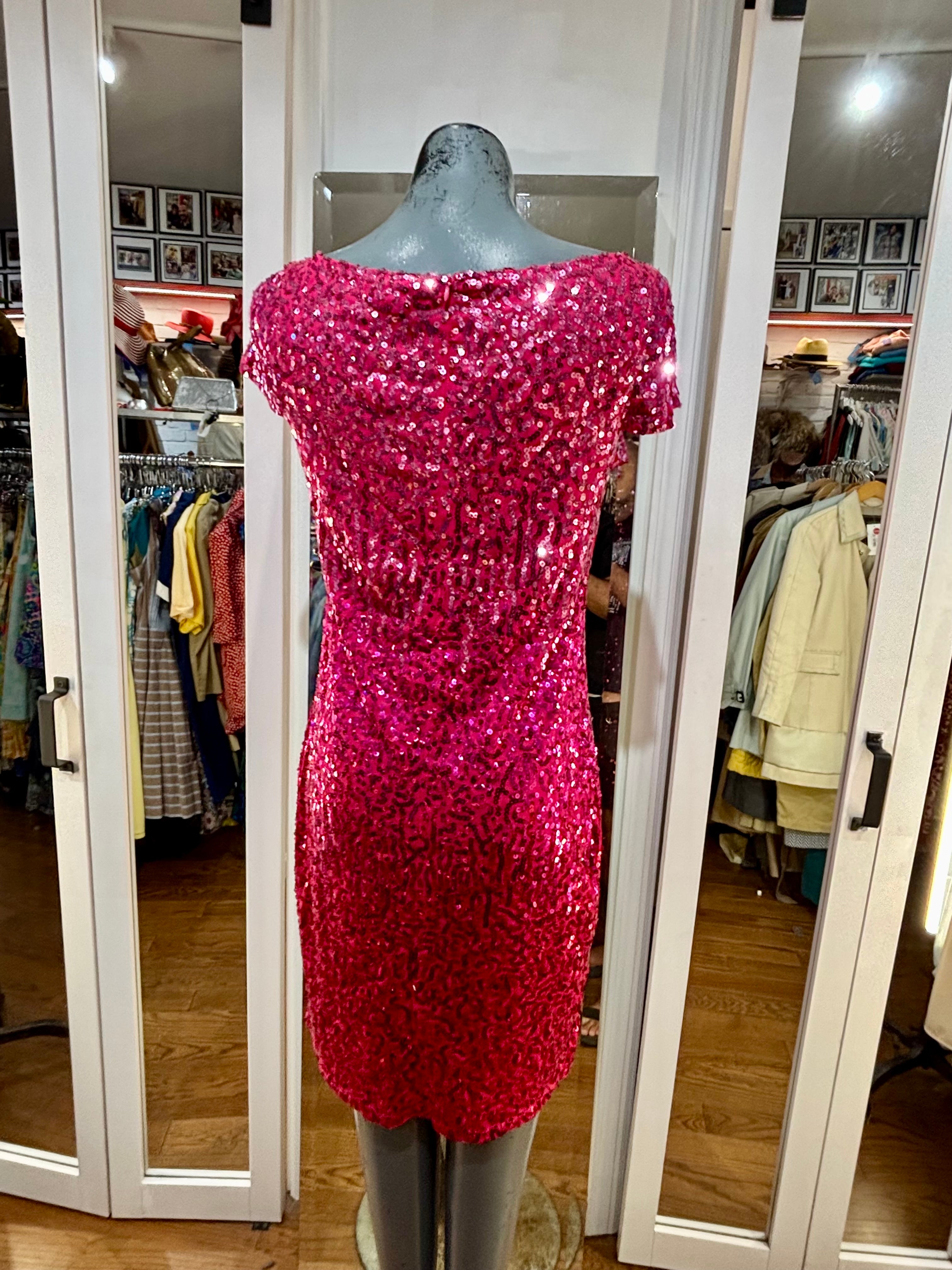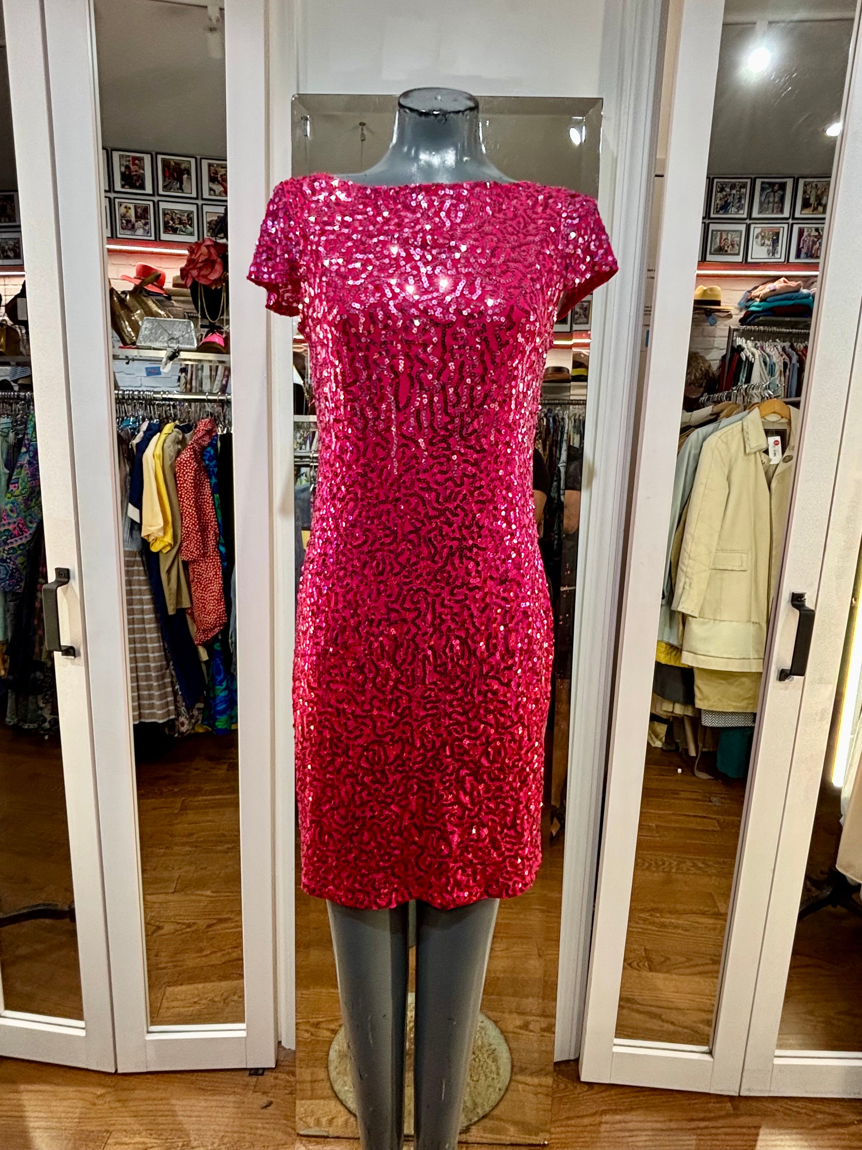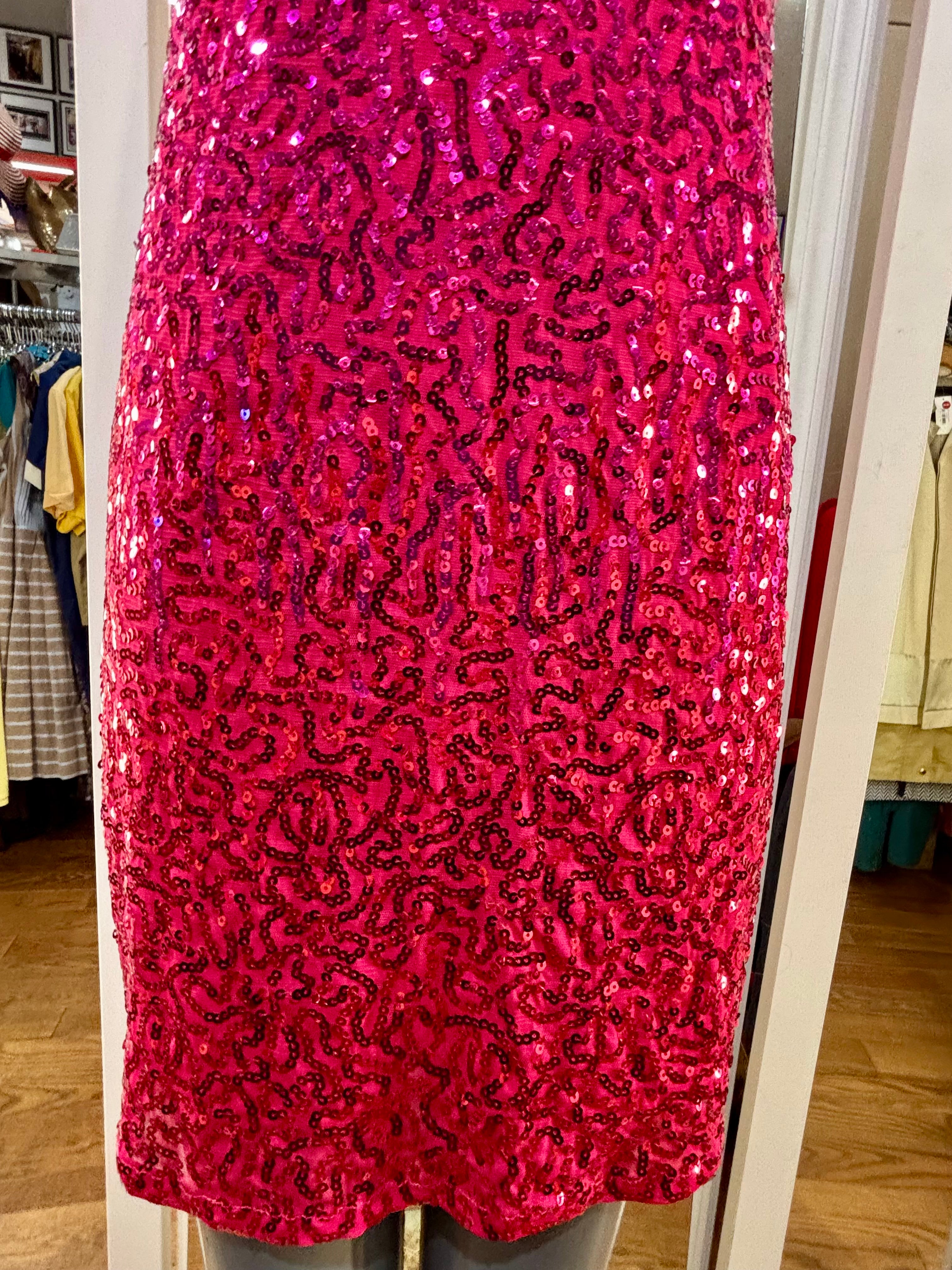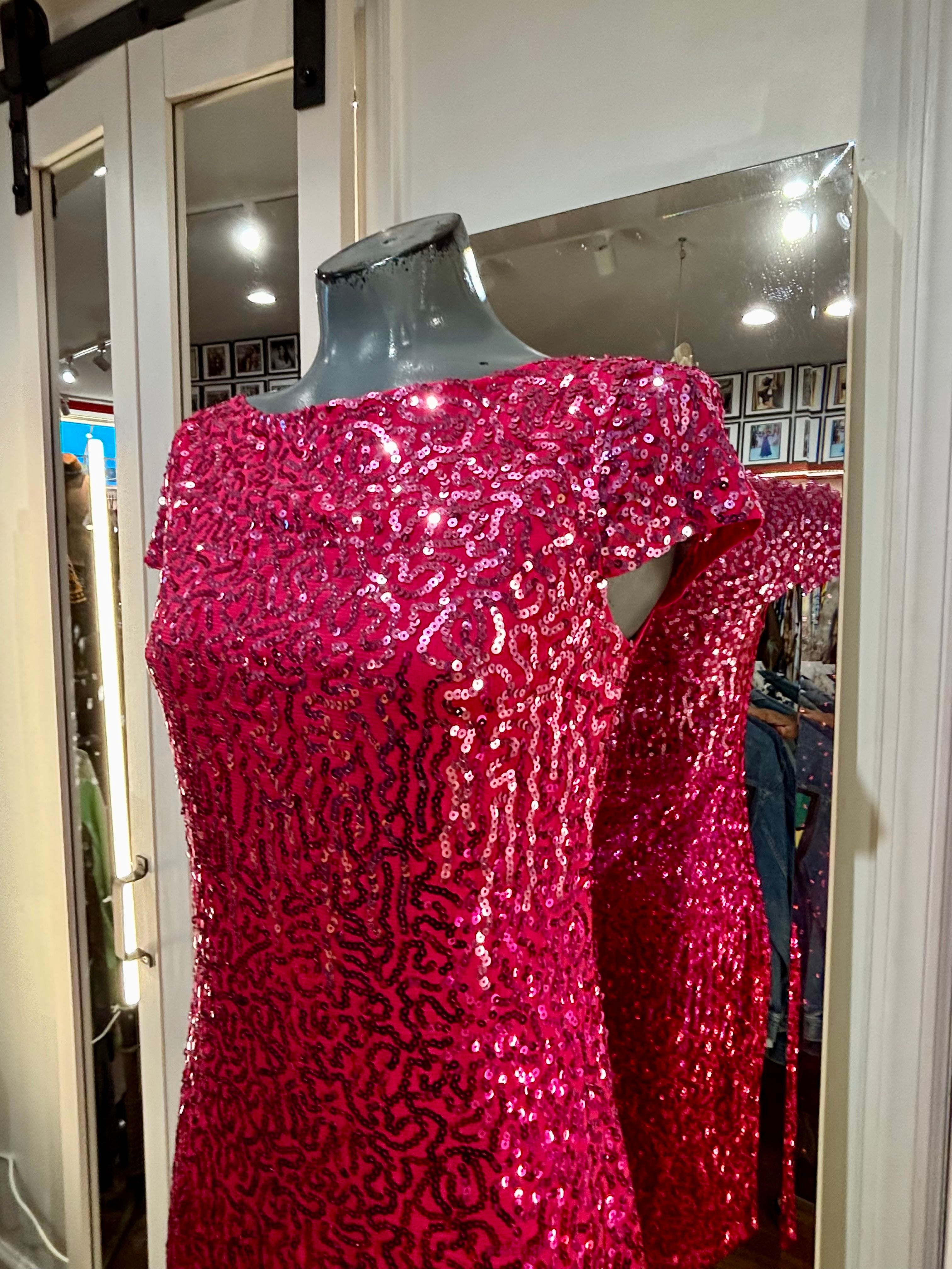 90’s Hot Pink Cap Sleeve Sequin Dress