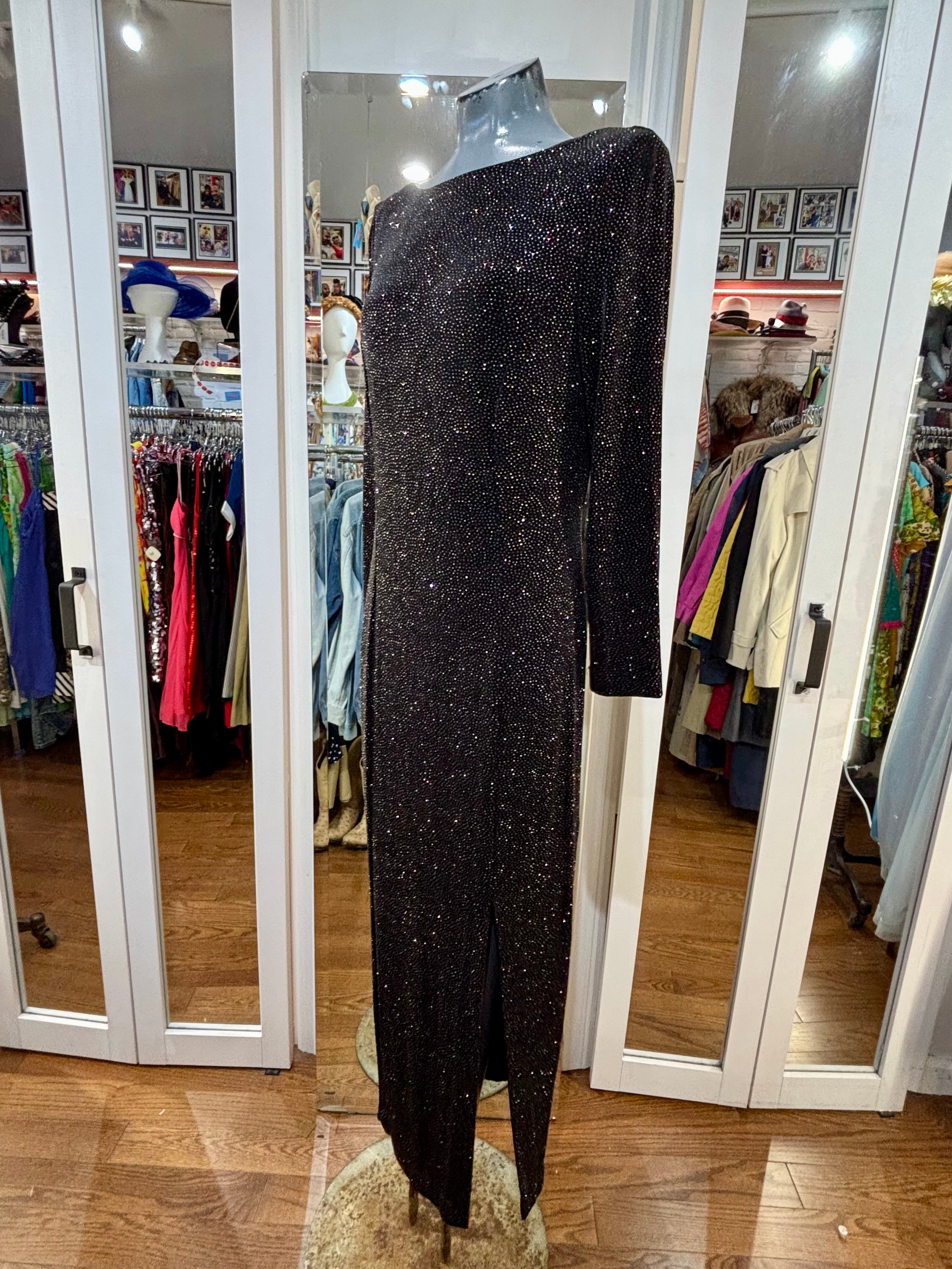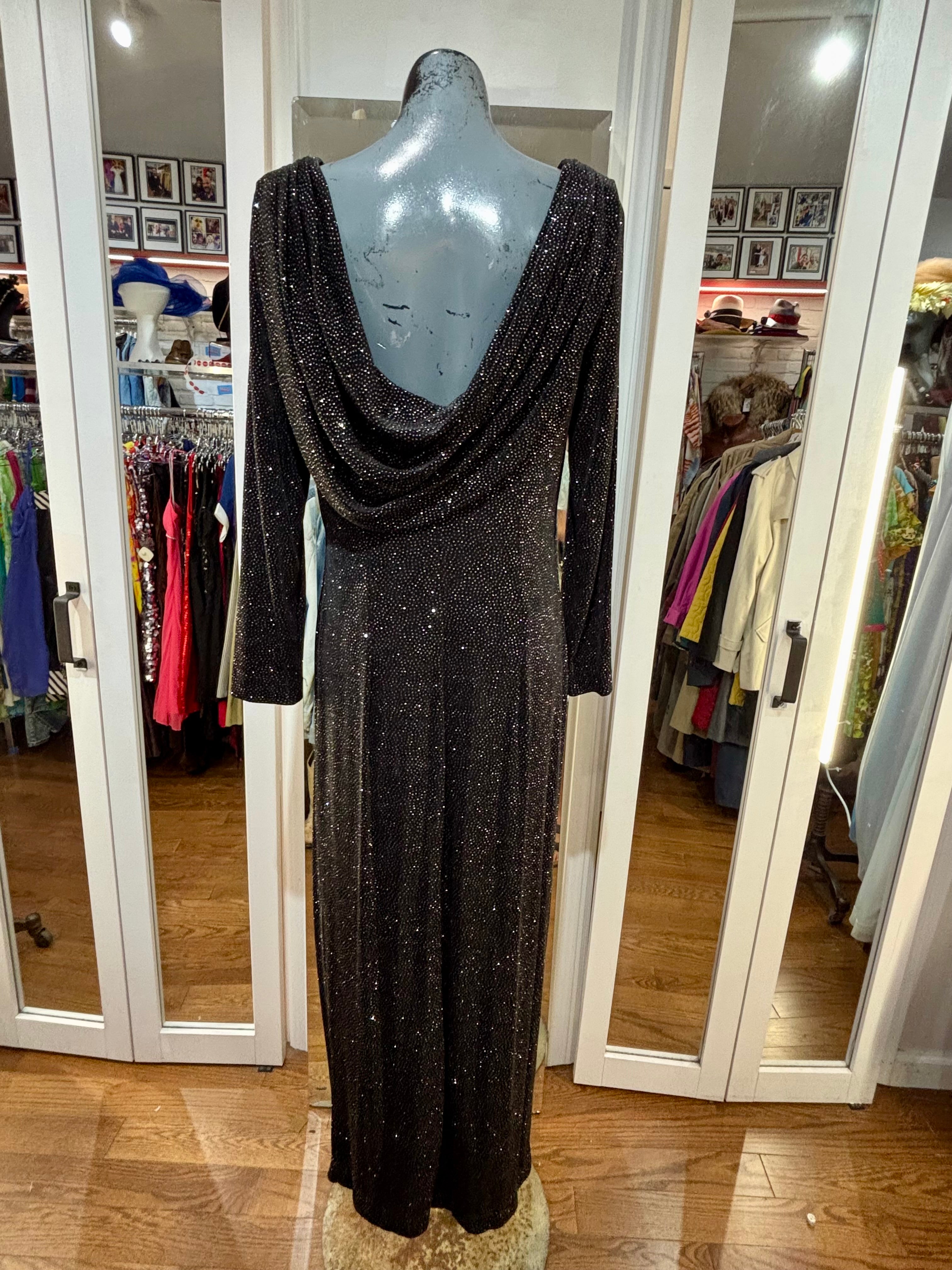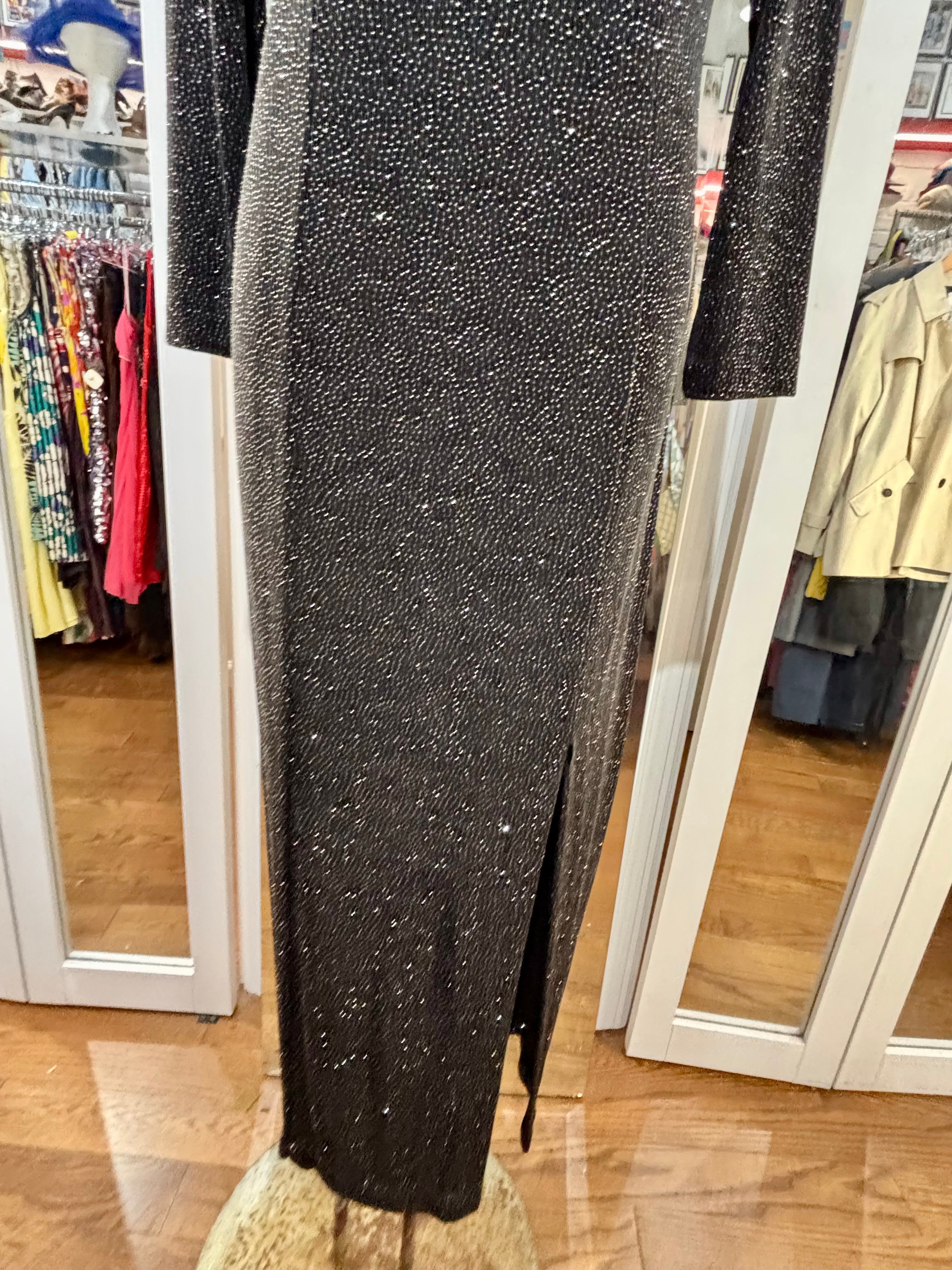 90’s Black And Silver Lurex Maxi Party Dress By Jessica Howard