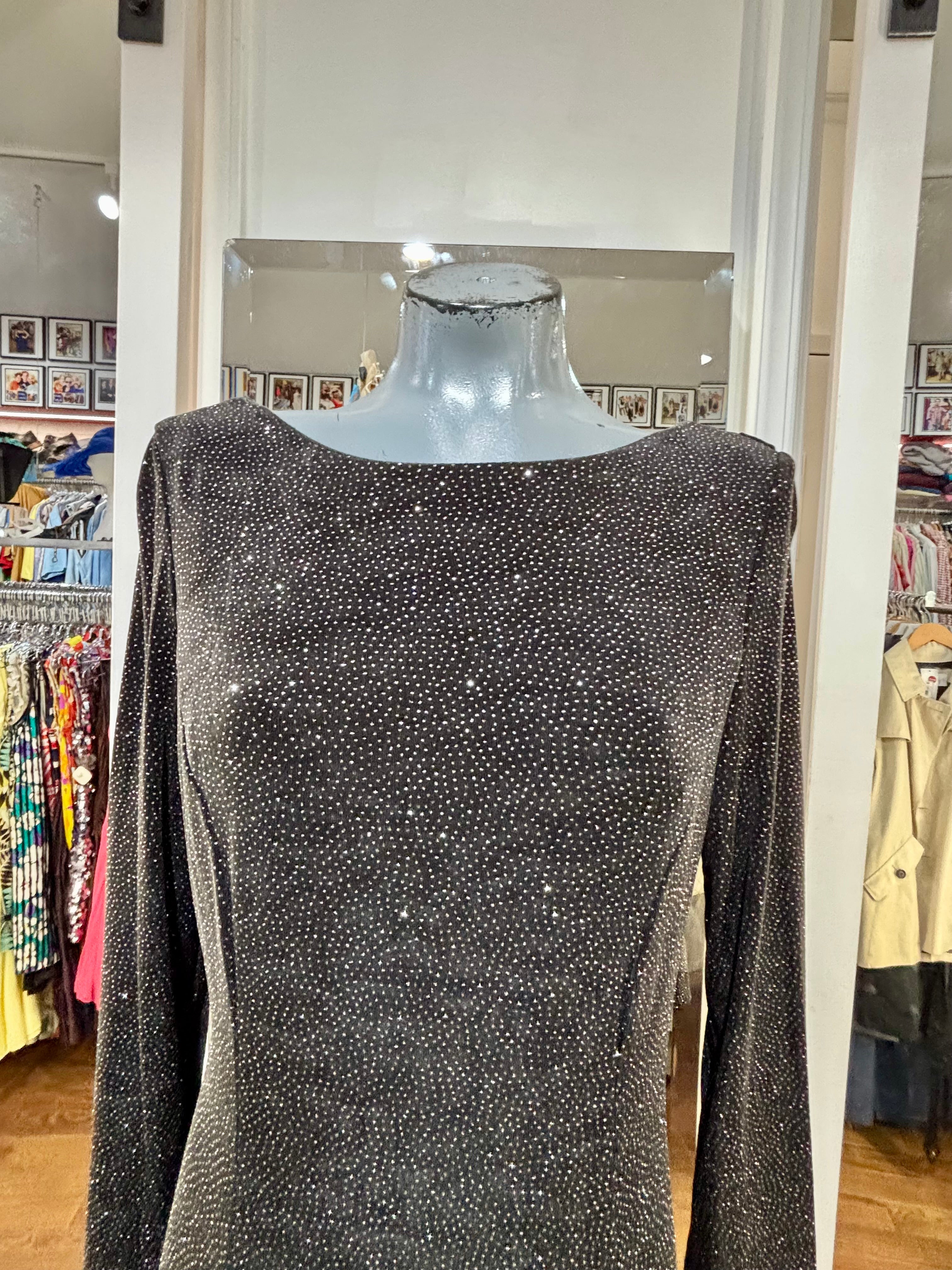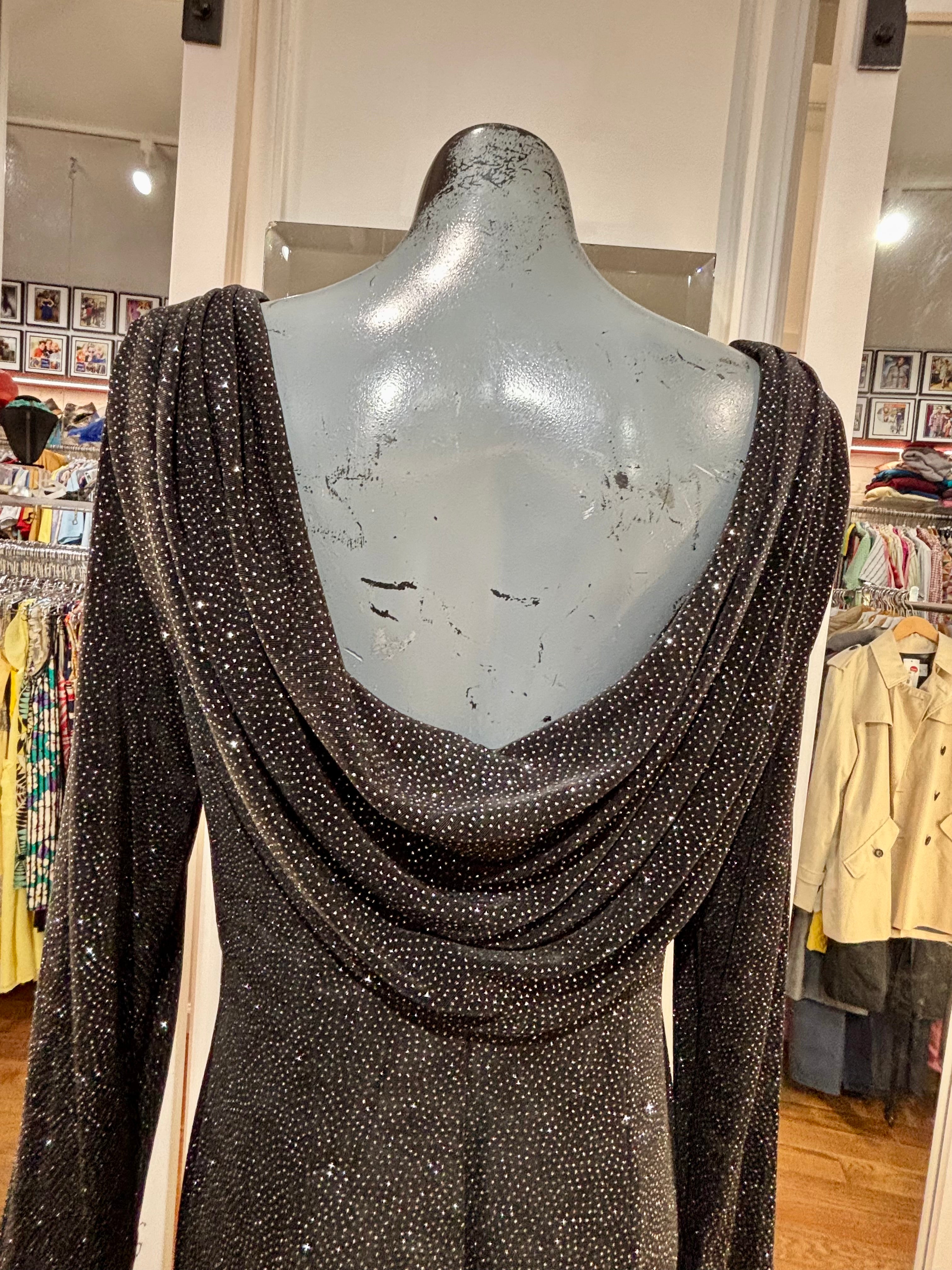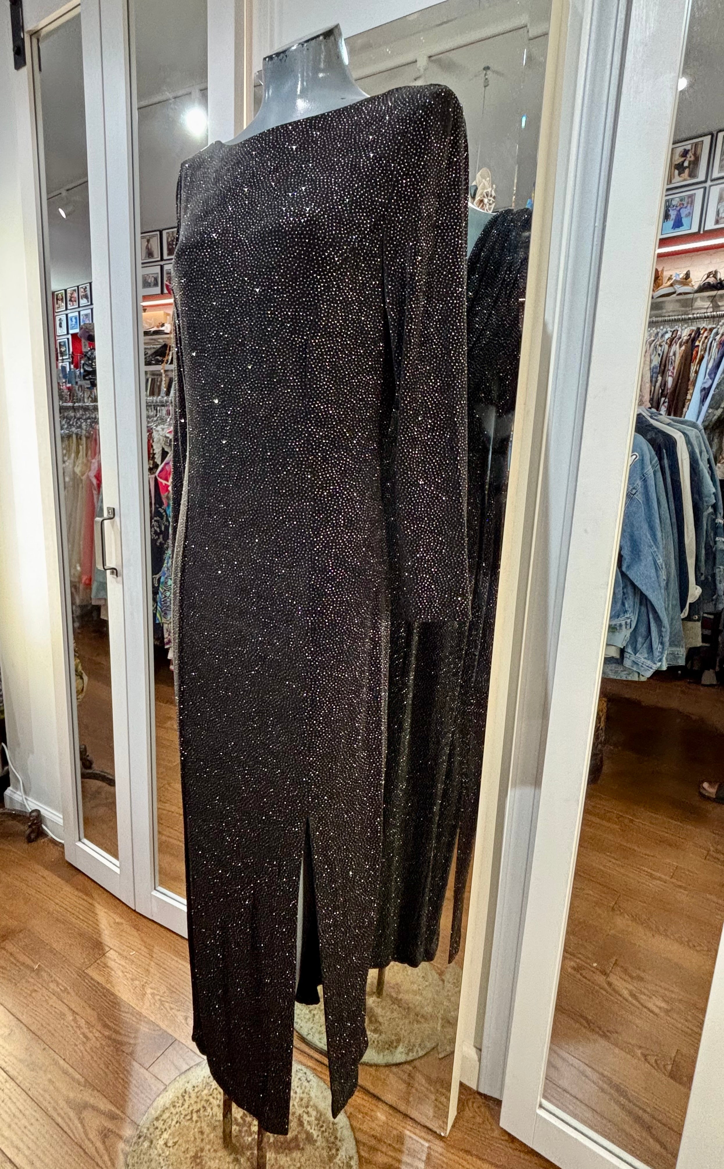 90’s Black And Silver Lurex Maxi Party Dress By Jessica Howard