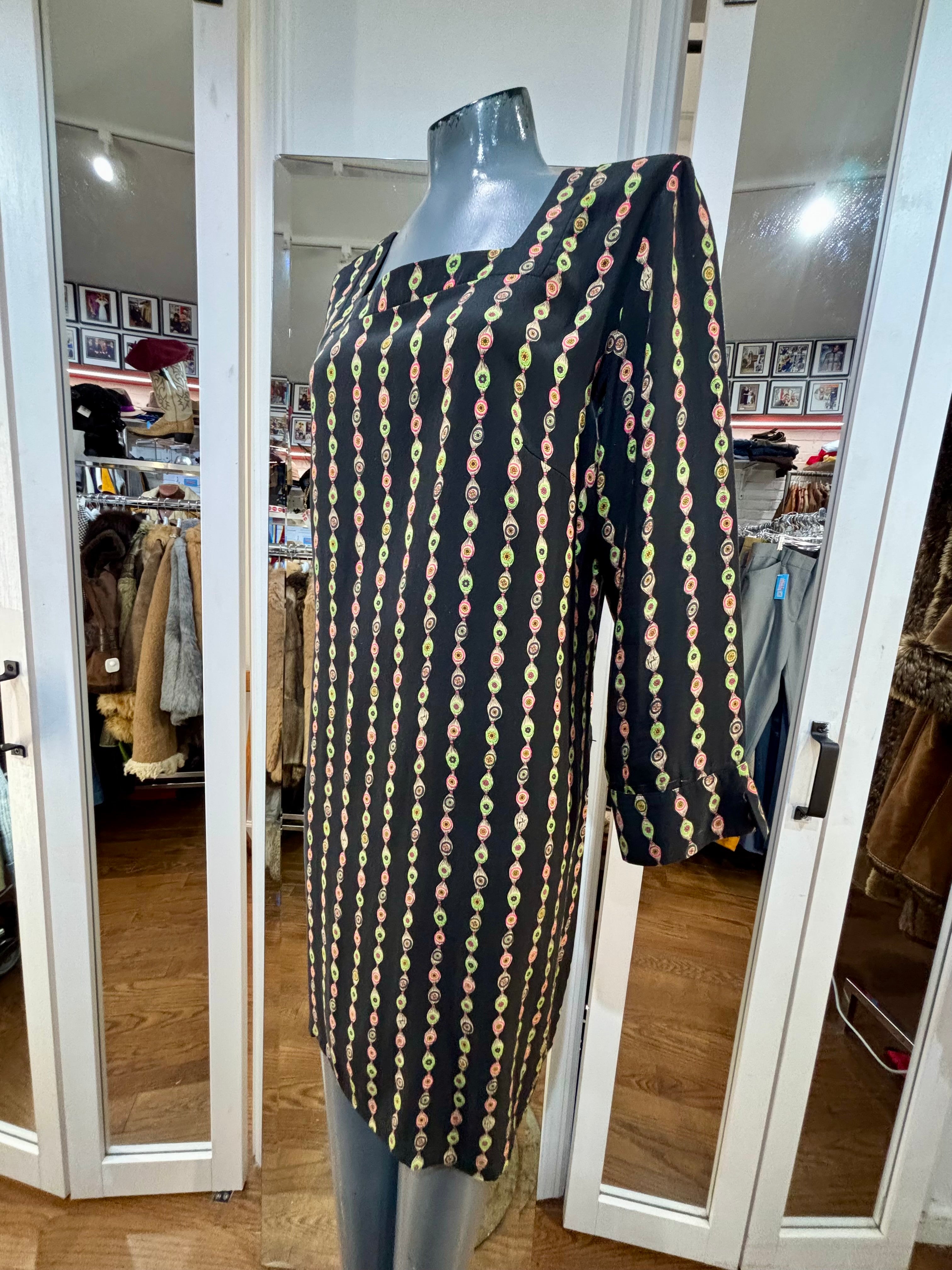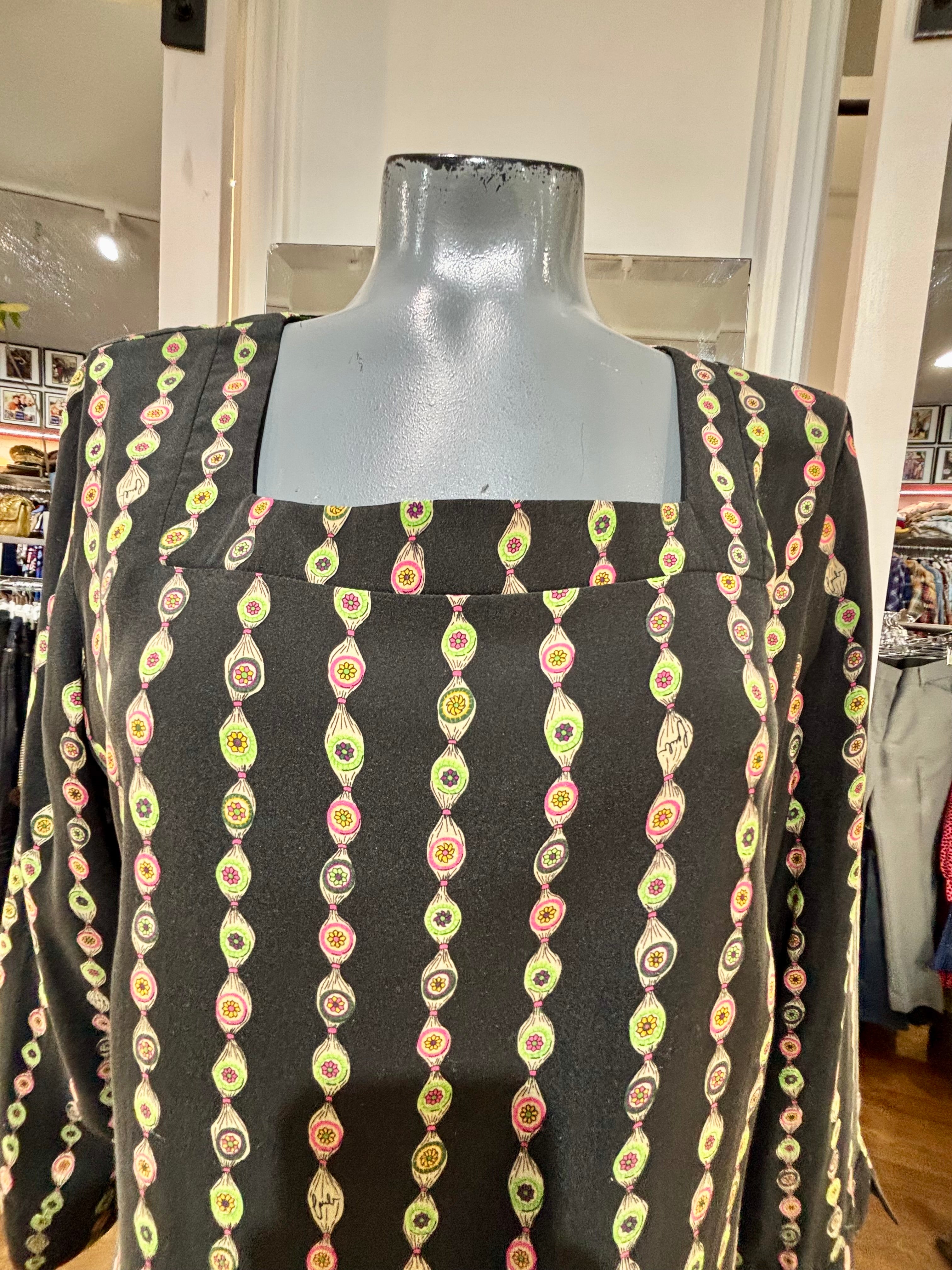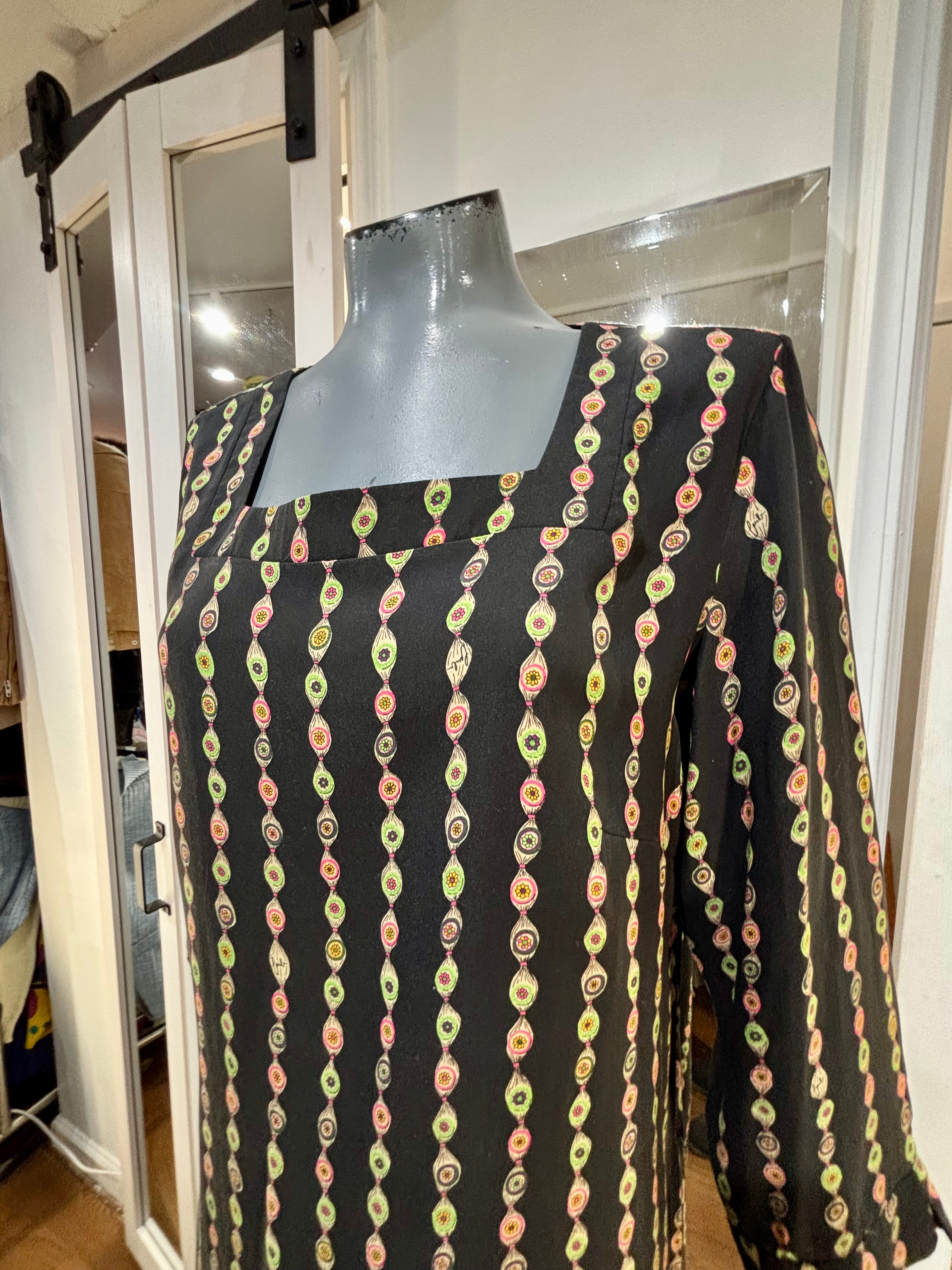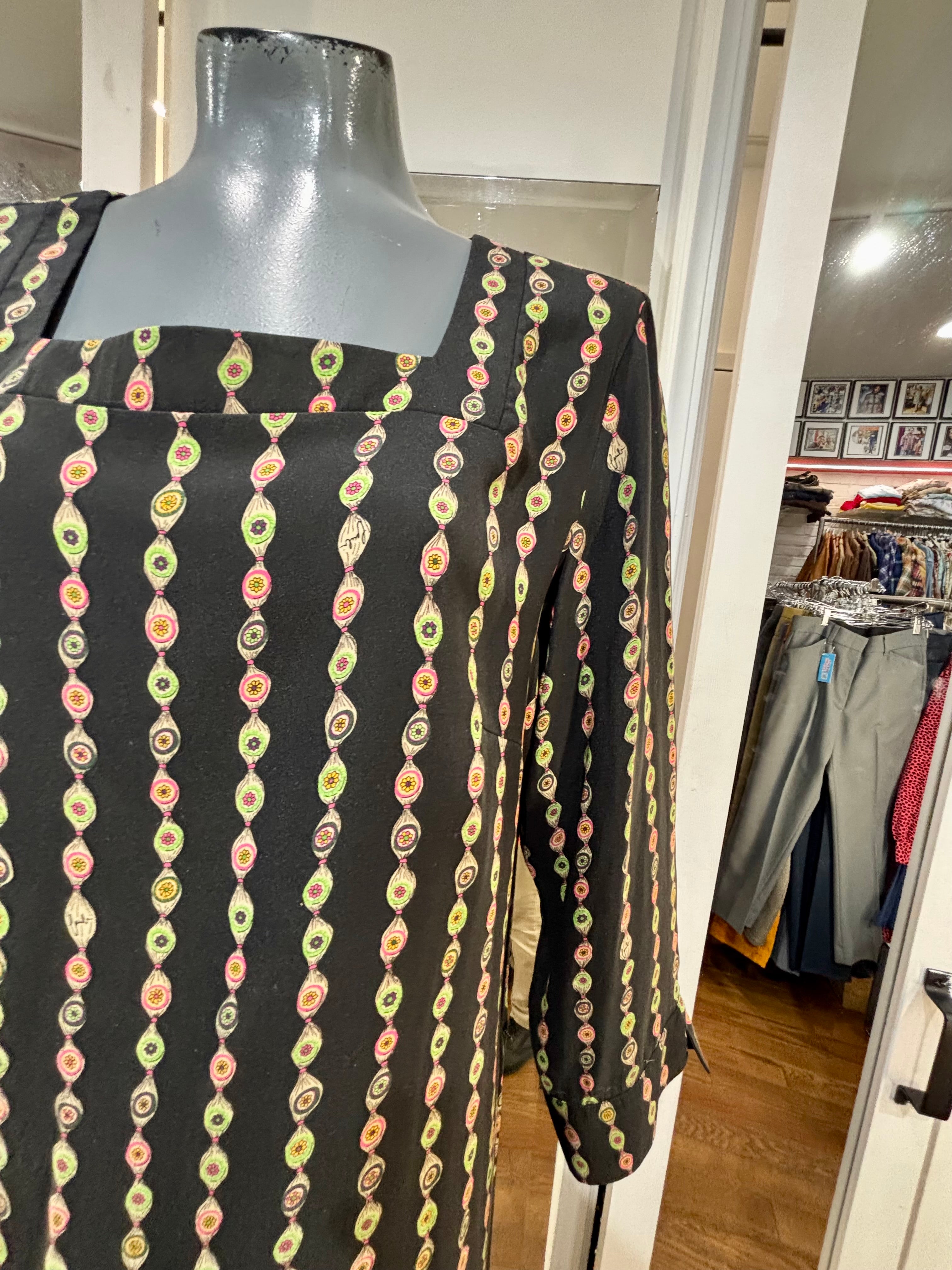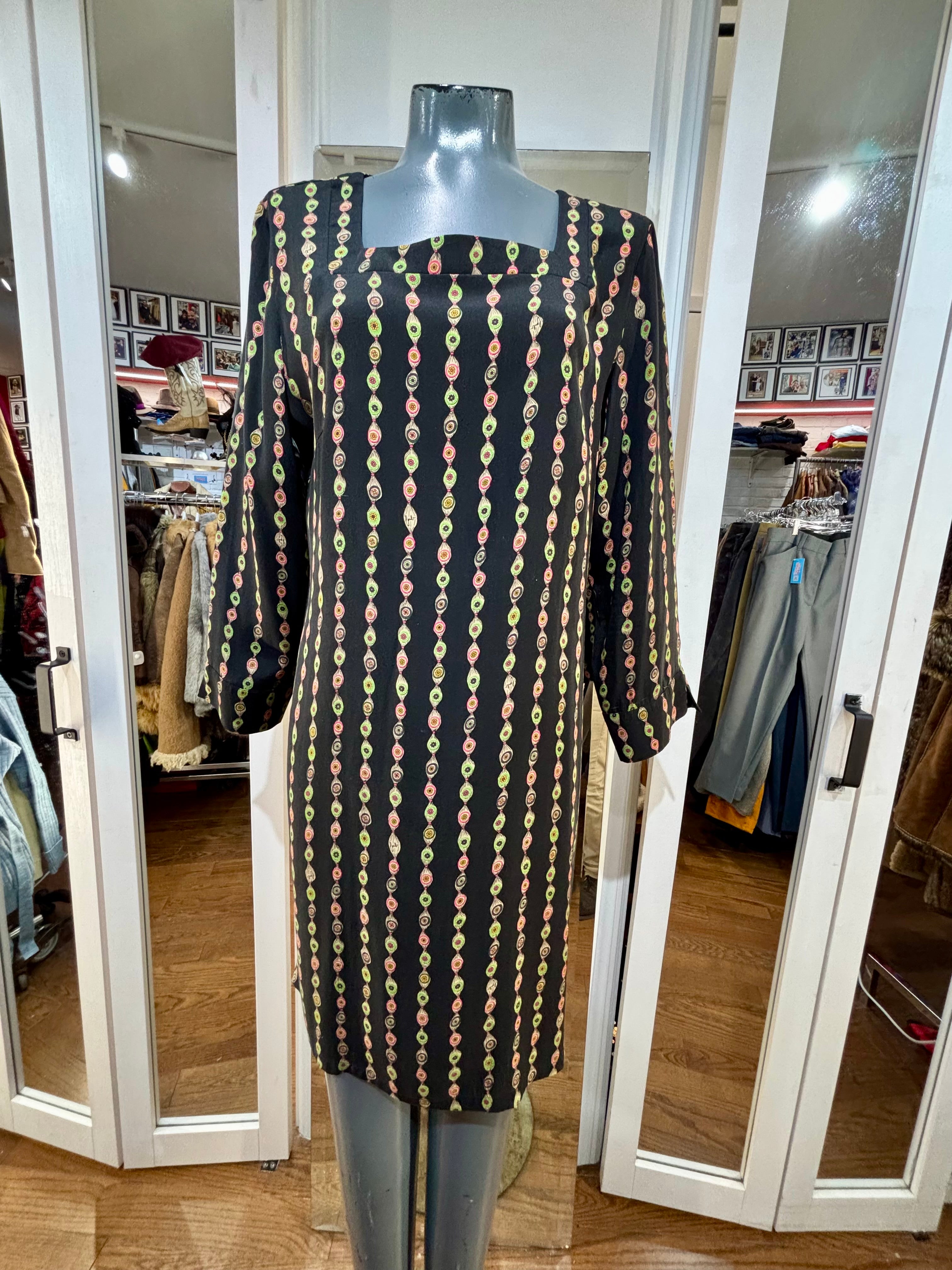 90’s Black Multicolor Long Sleeve Dress Dress By Bini Como
