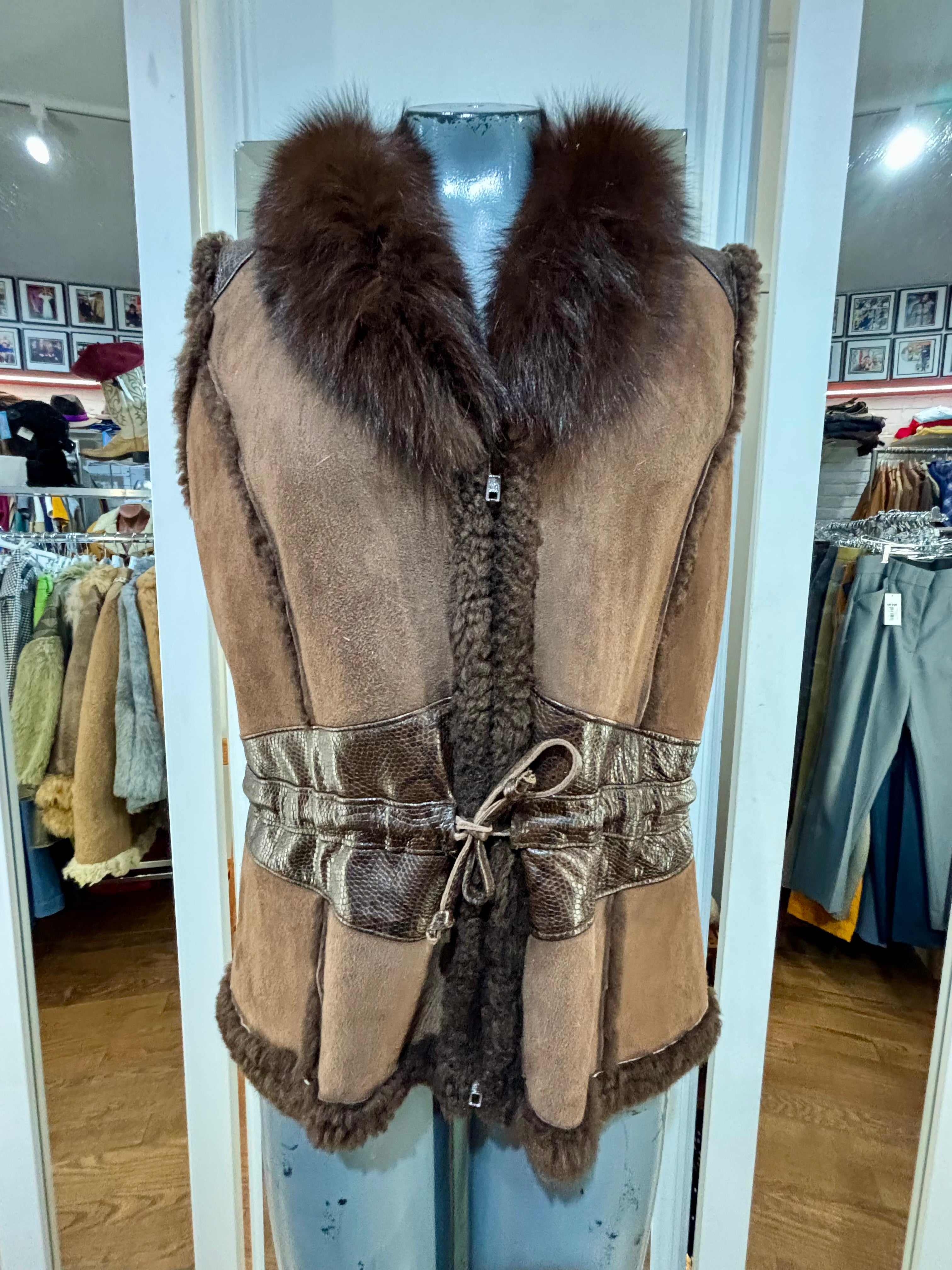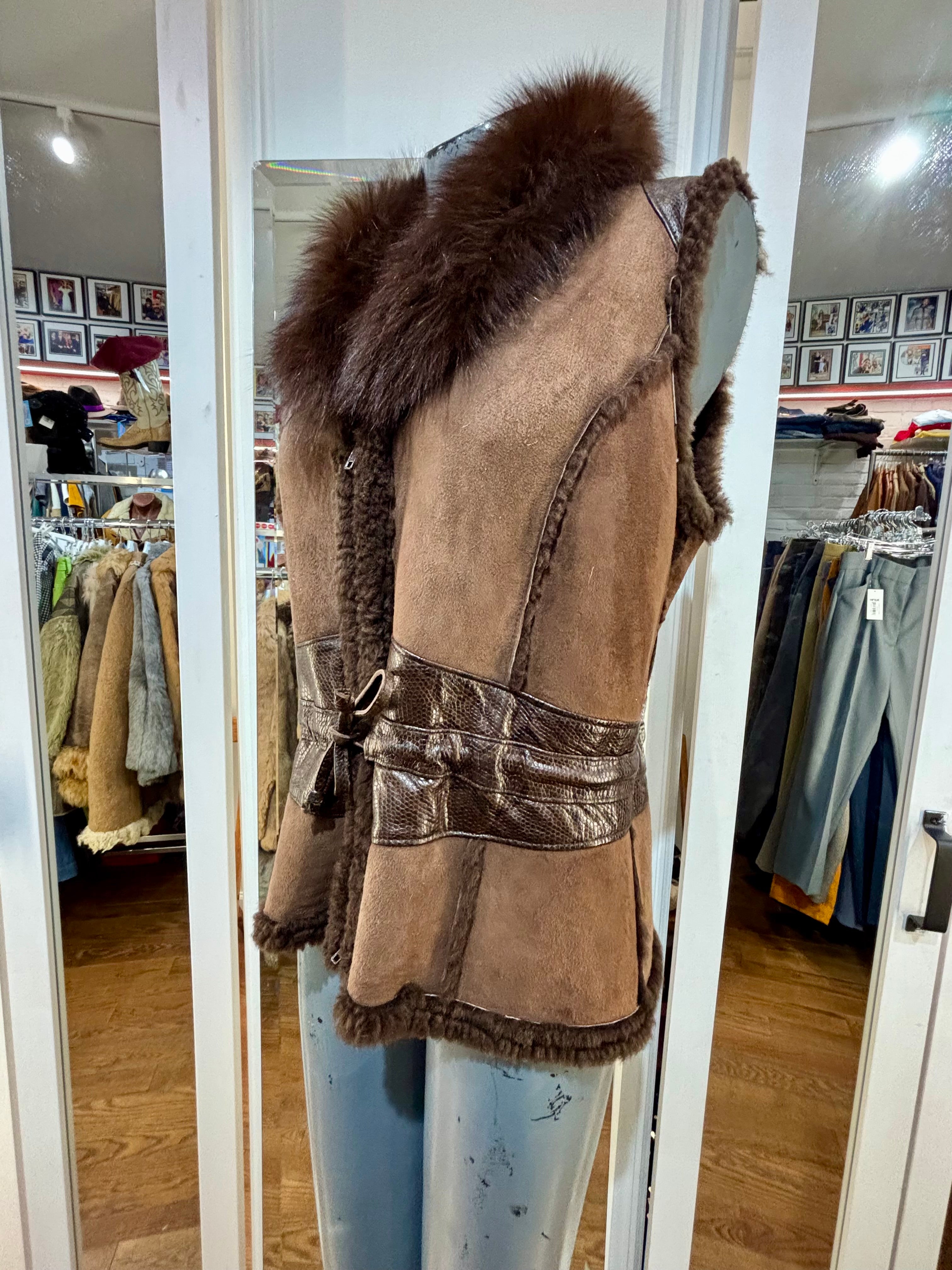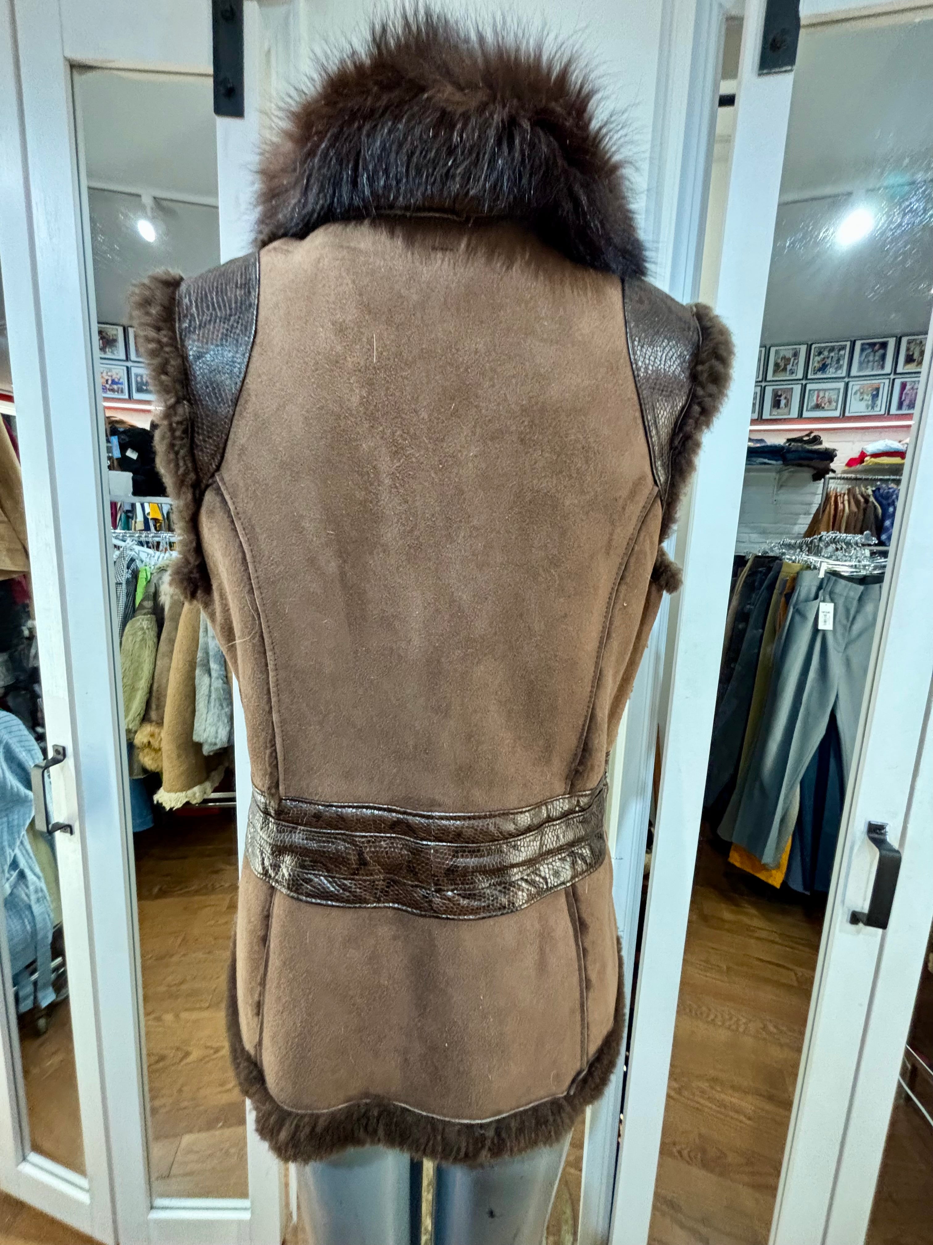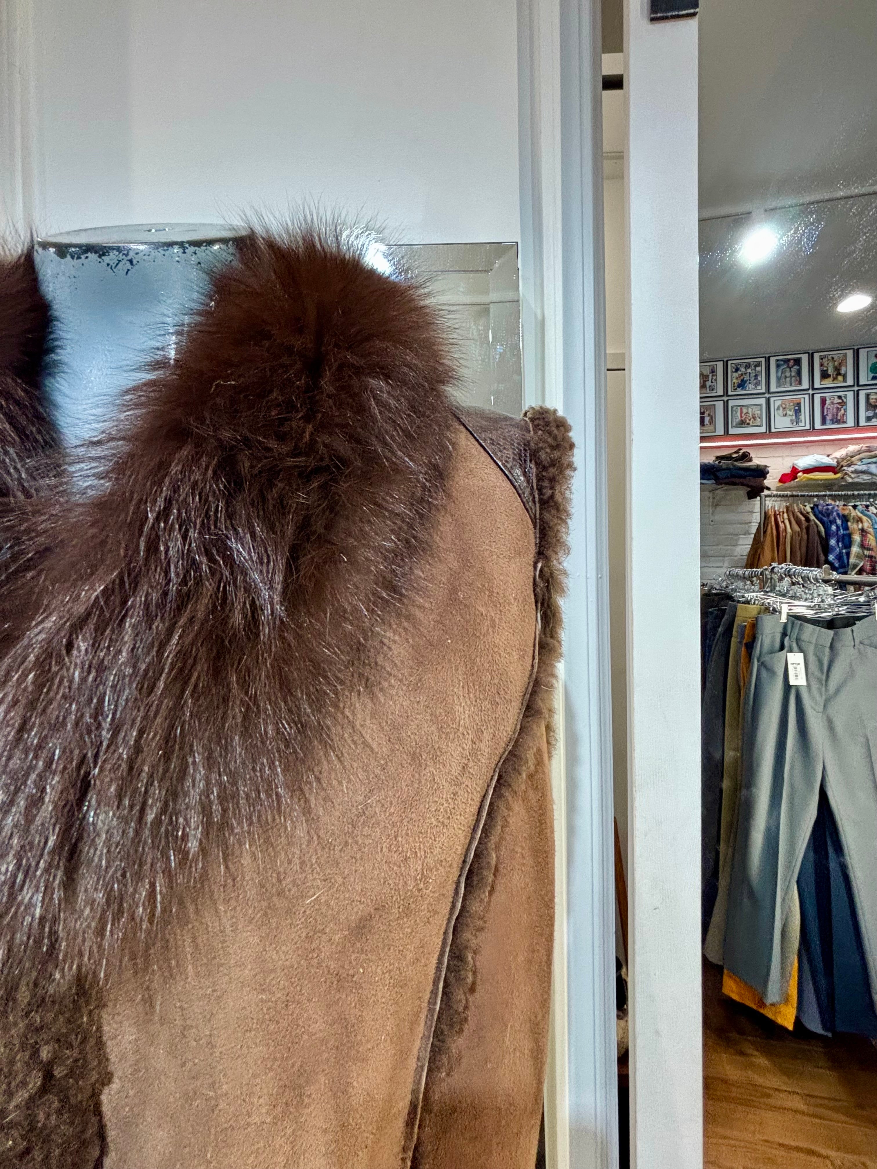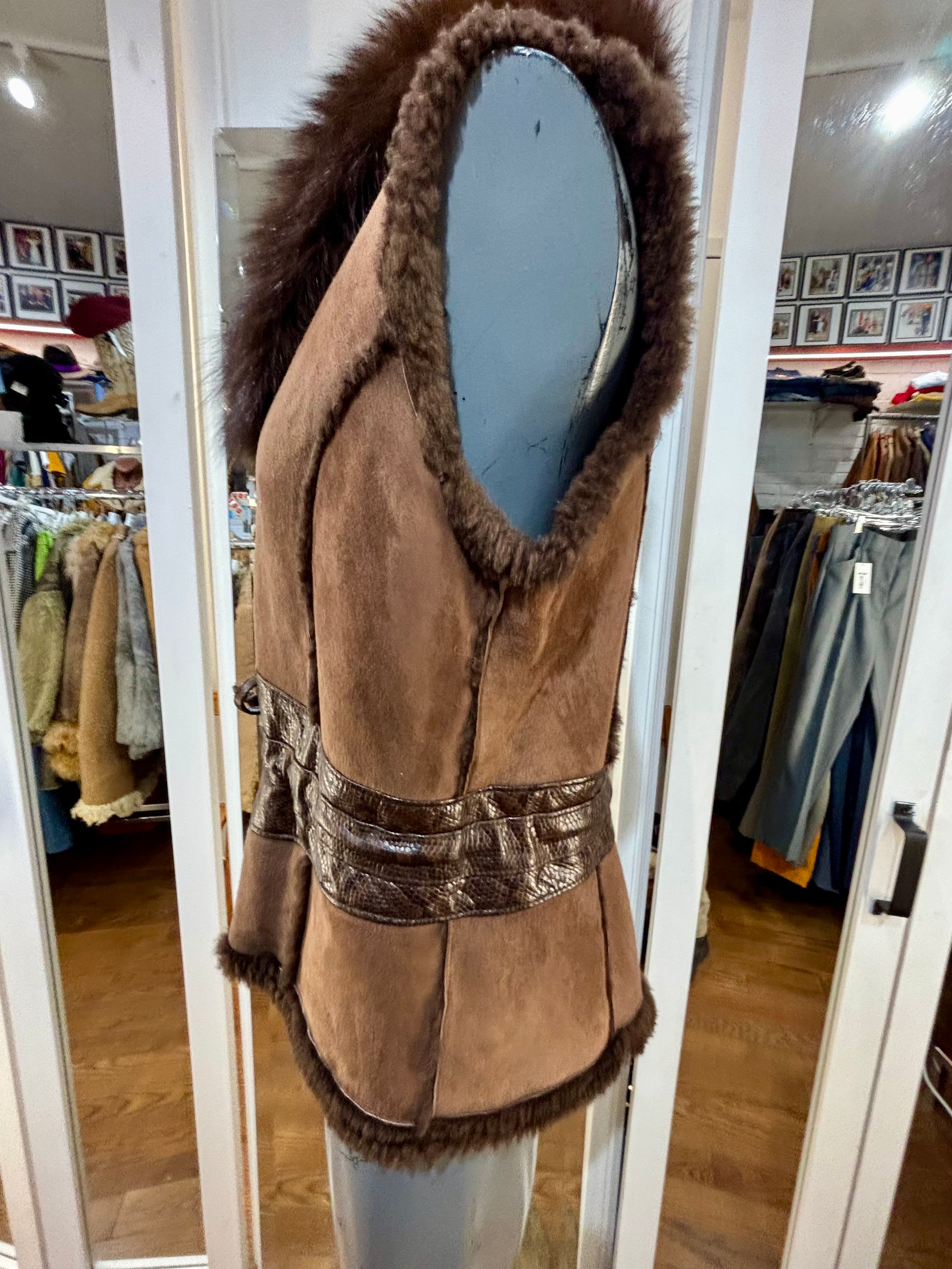 90’s Dark Brown Suede & Fur Collar Vest