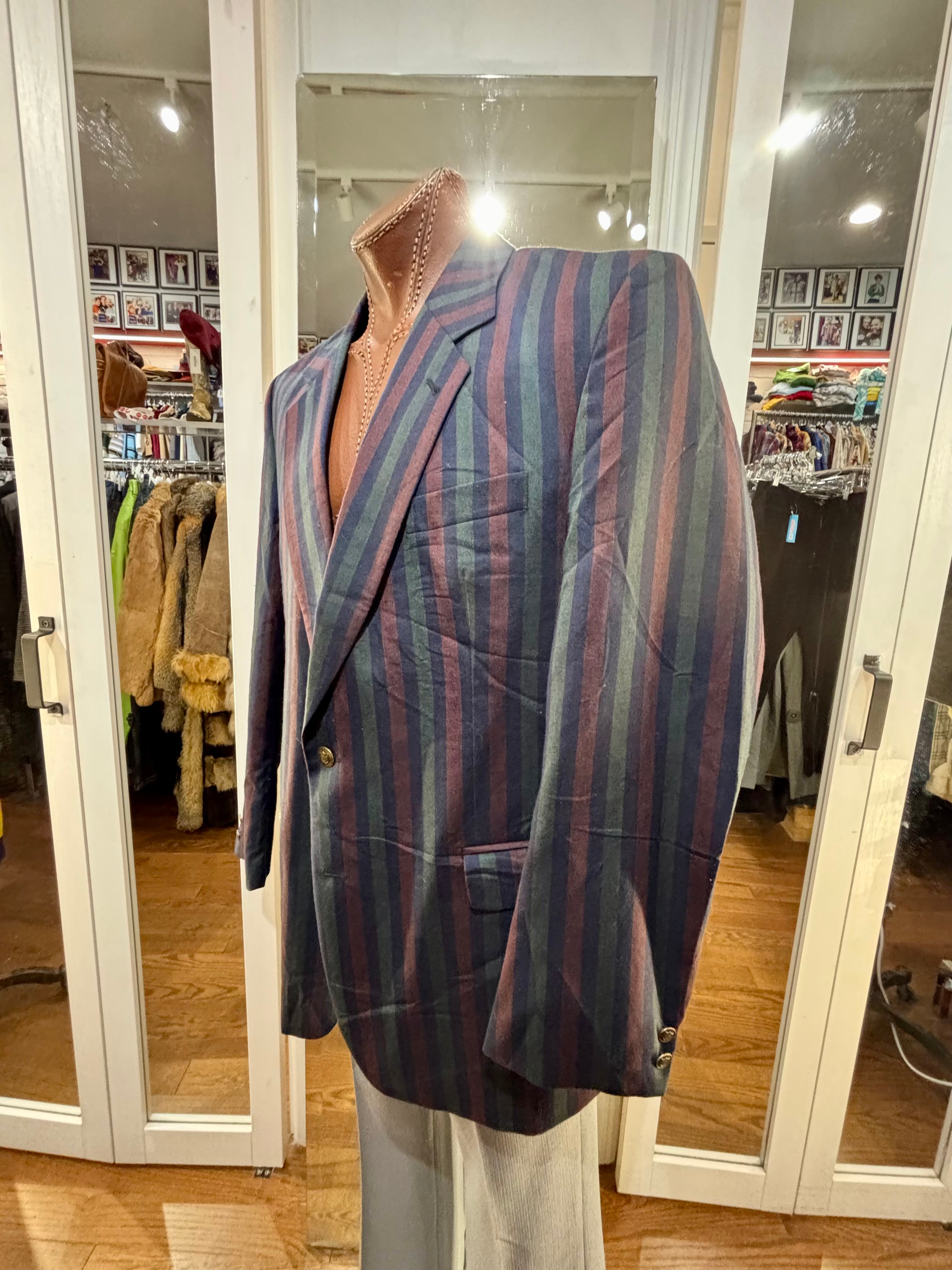 60’s Dark Navy Mulicolor Vertical Stripes Blazer By Periscope