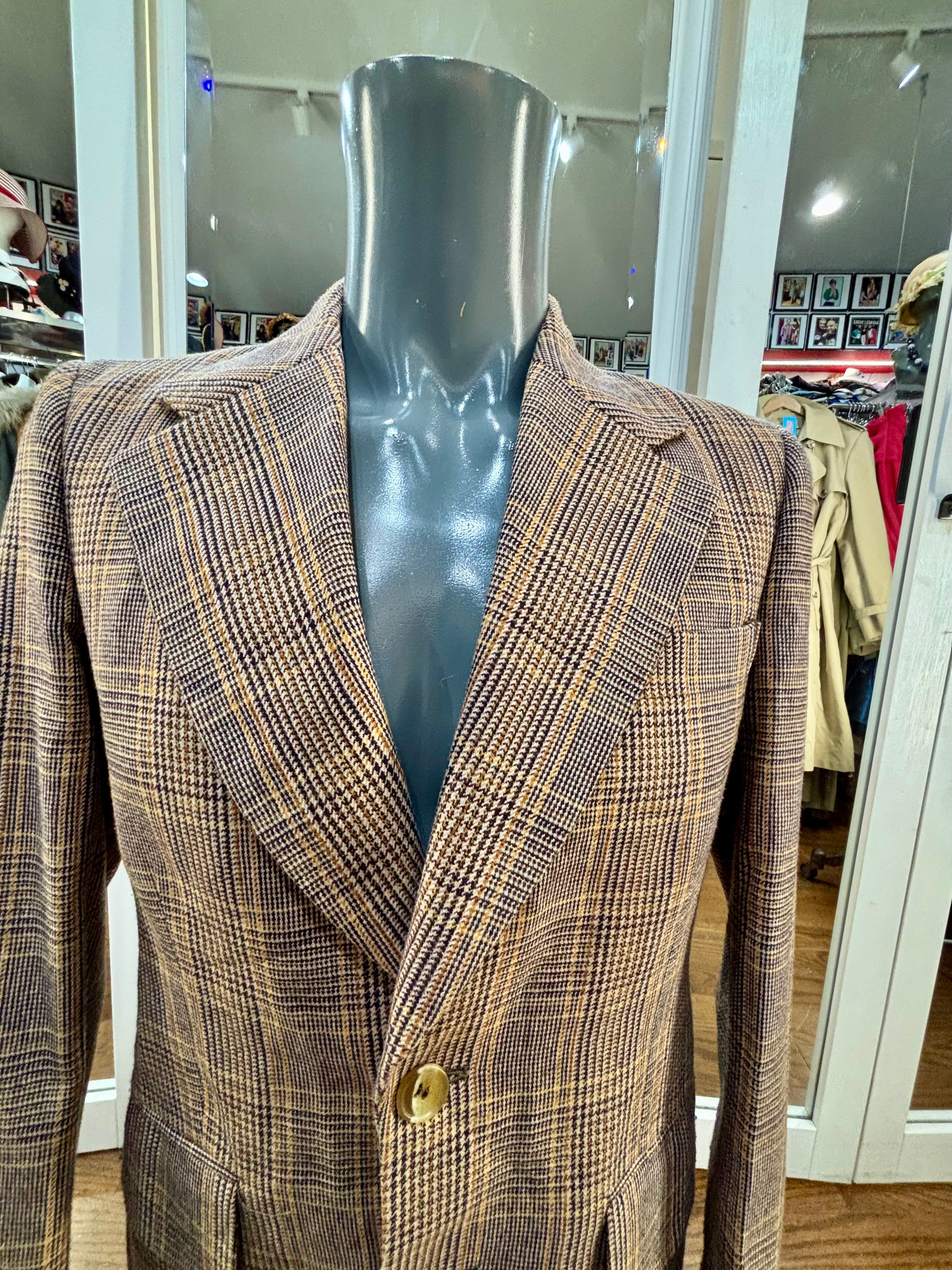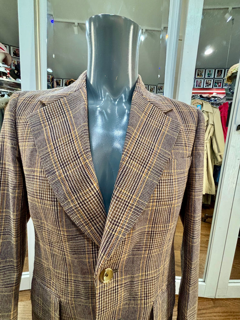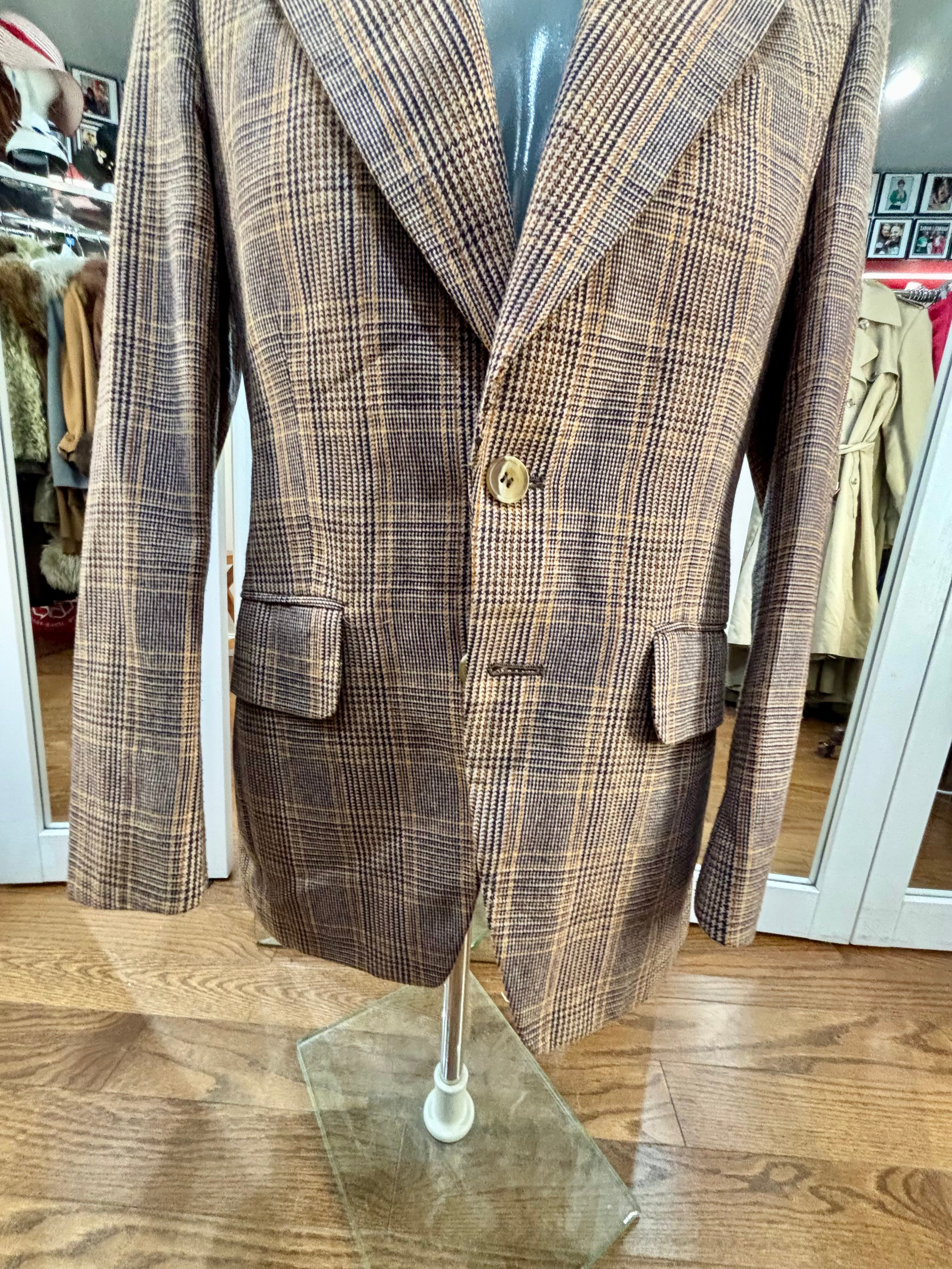 70’s Brown And Navy Houndstooth Blazer By A Hardy Amies Design