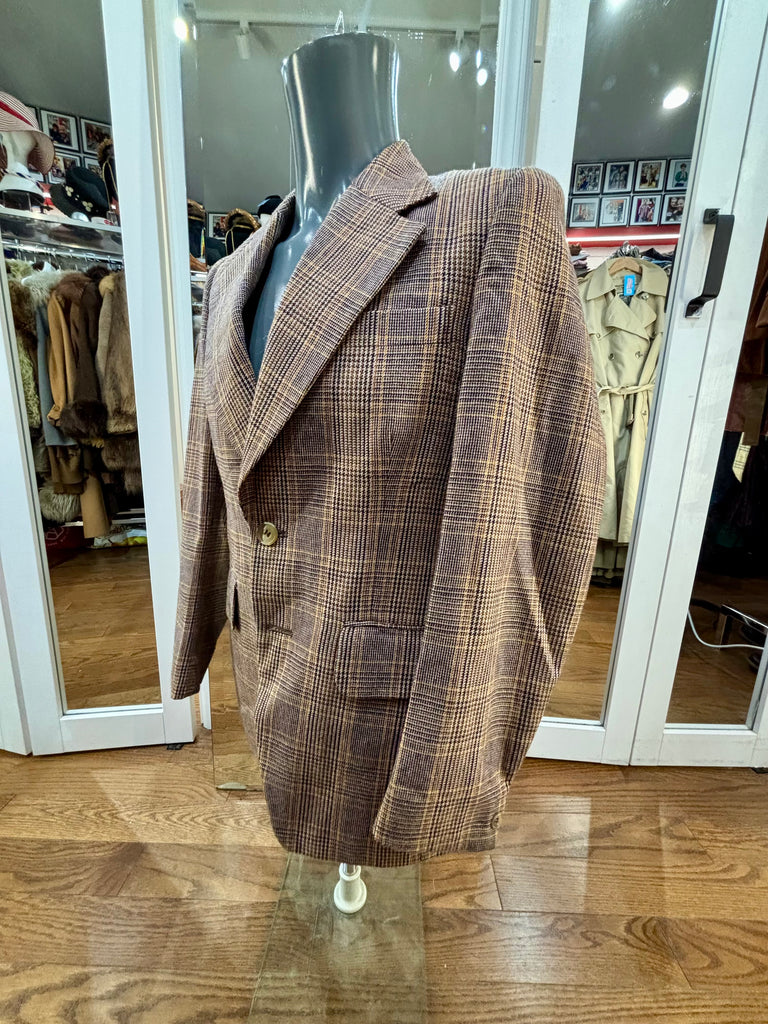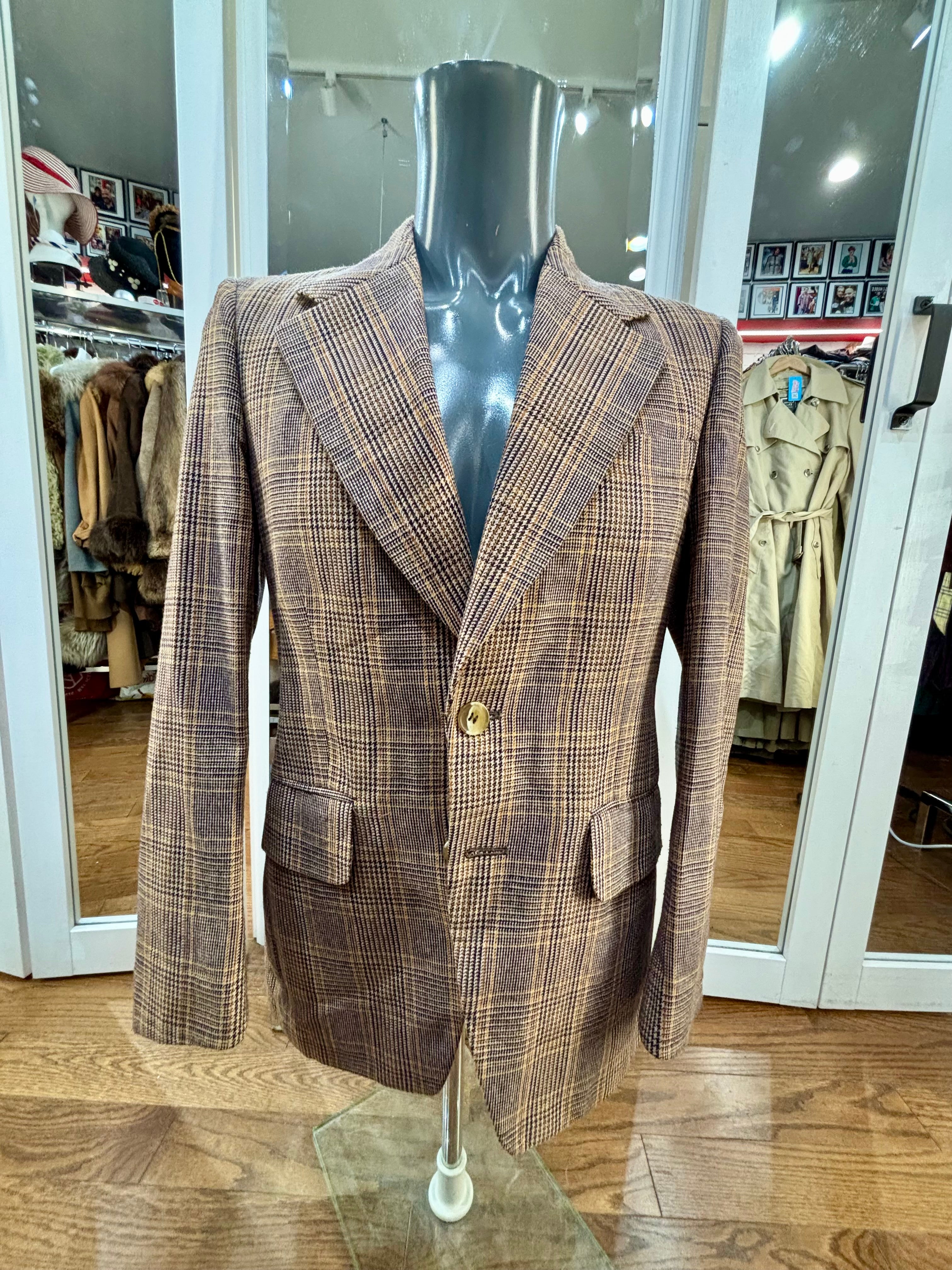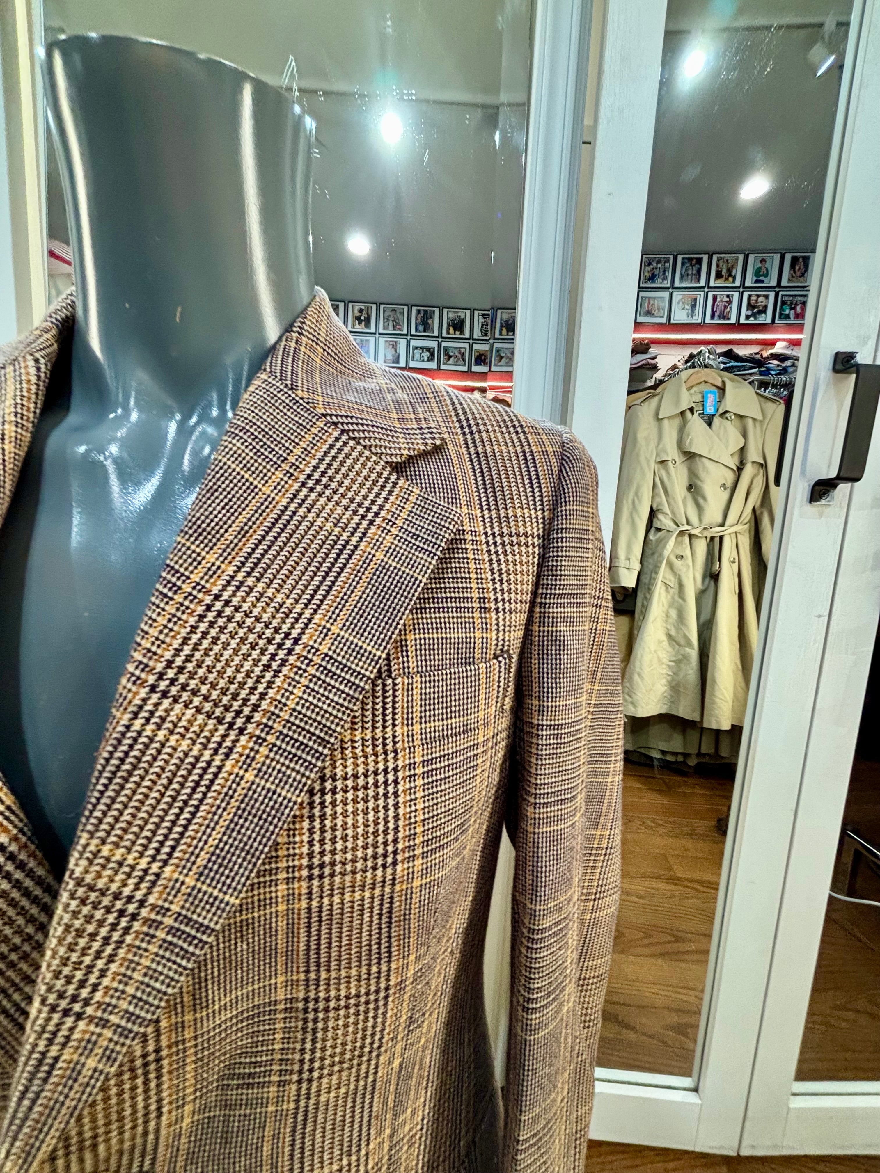 70’s Brown And Navy Houndstooth Blazer By A Hardy Amies Design