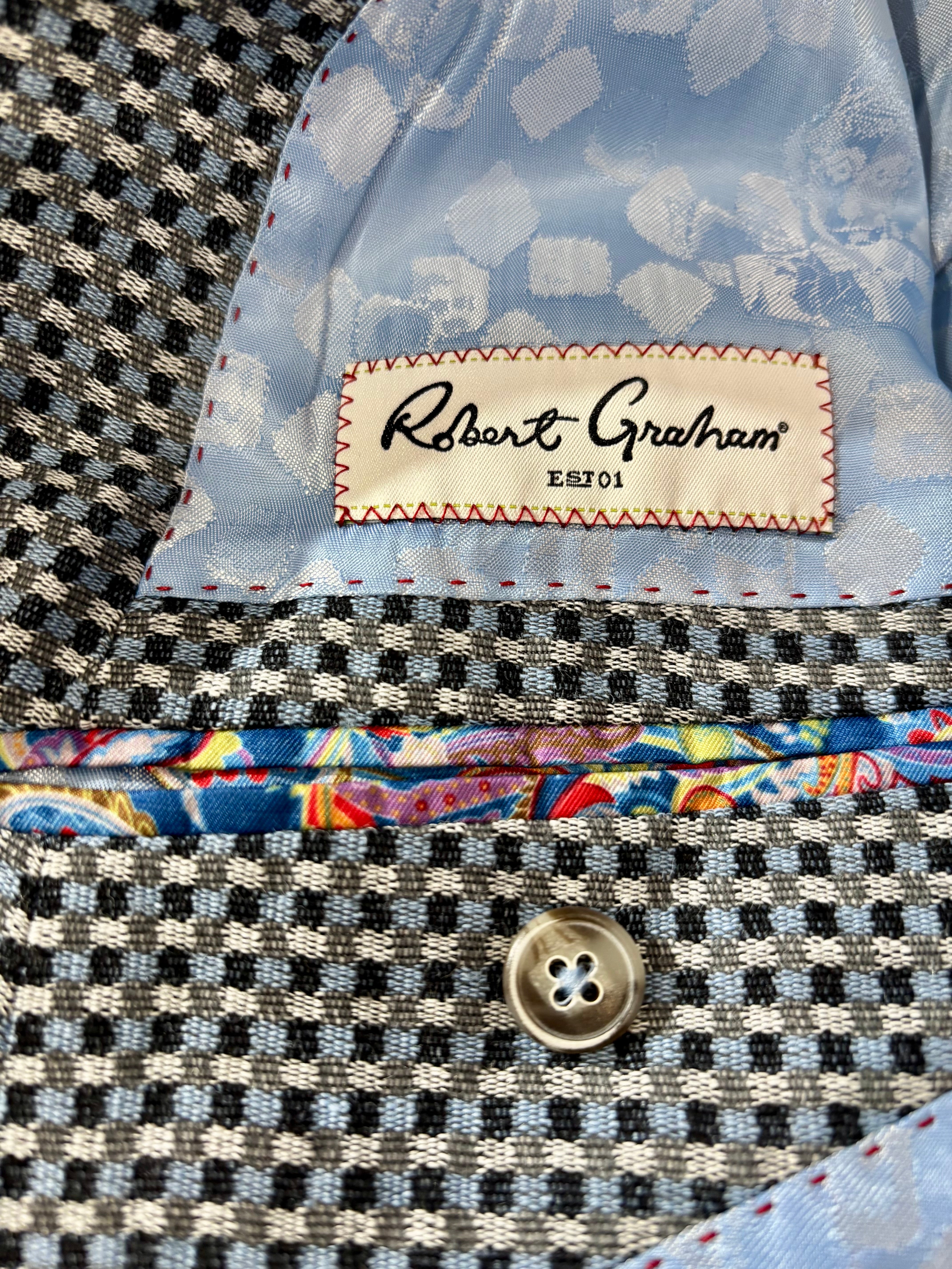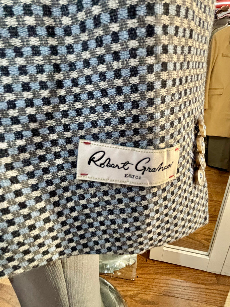 90’s Blue Multicolor Texture Print Blazer By Robert Graham