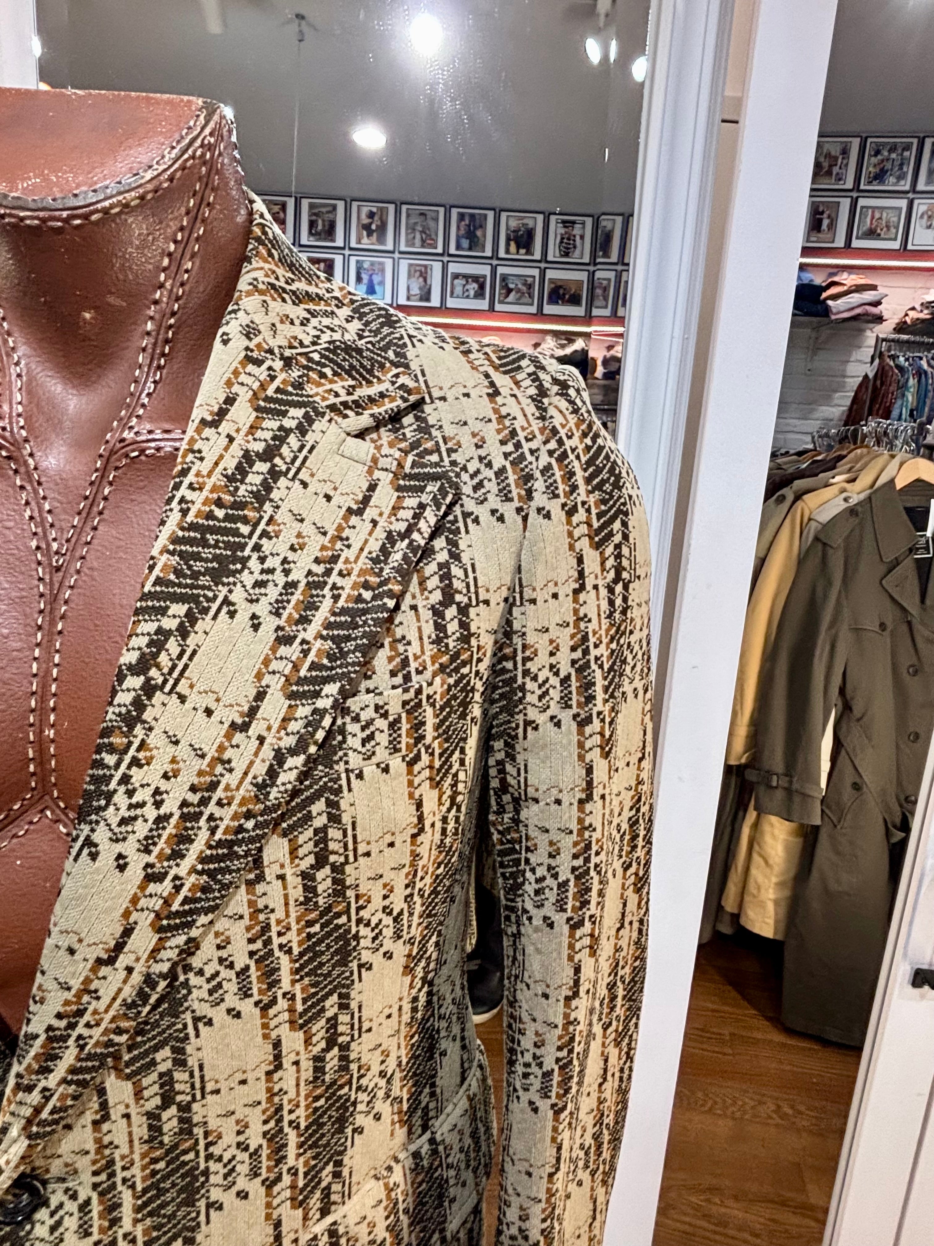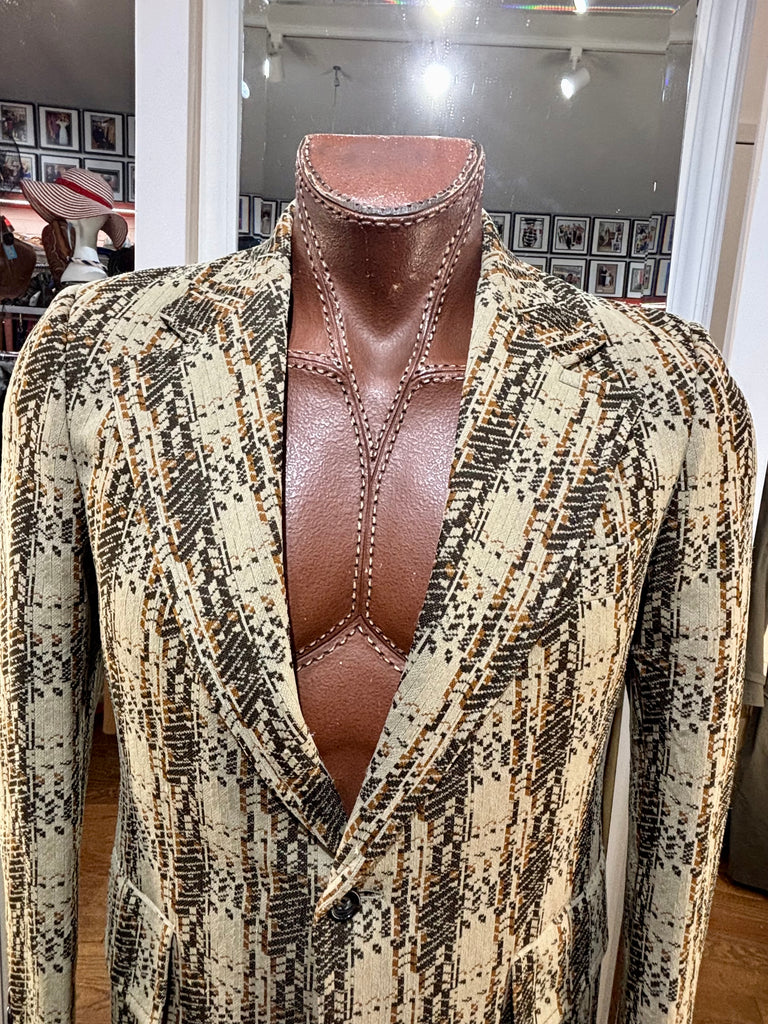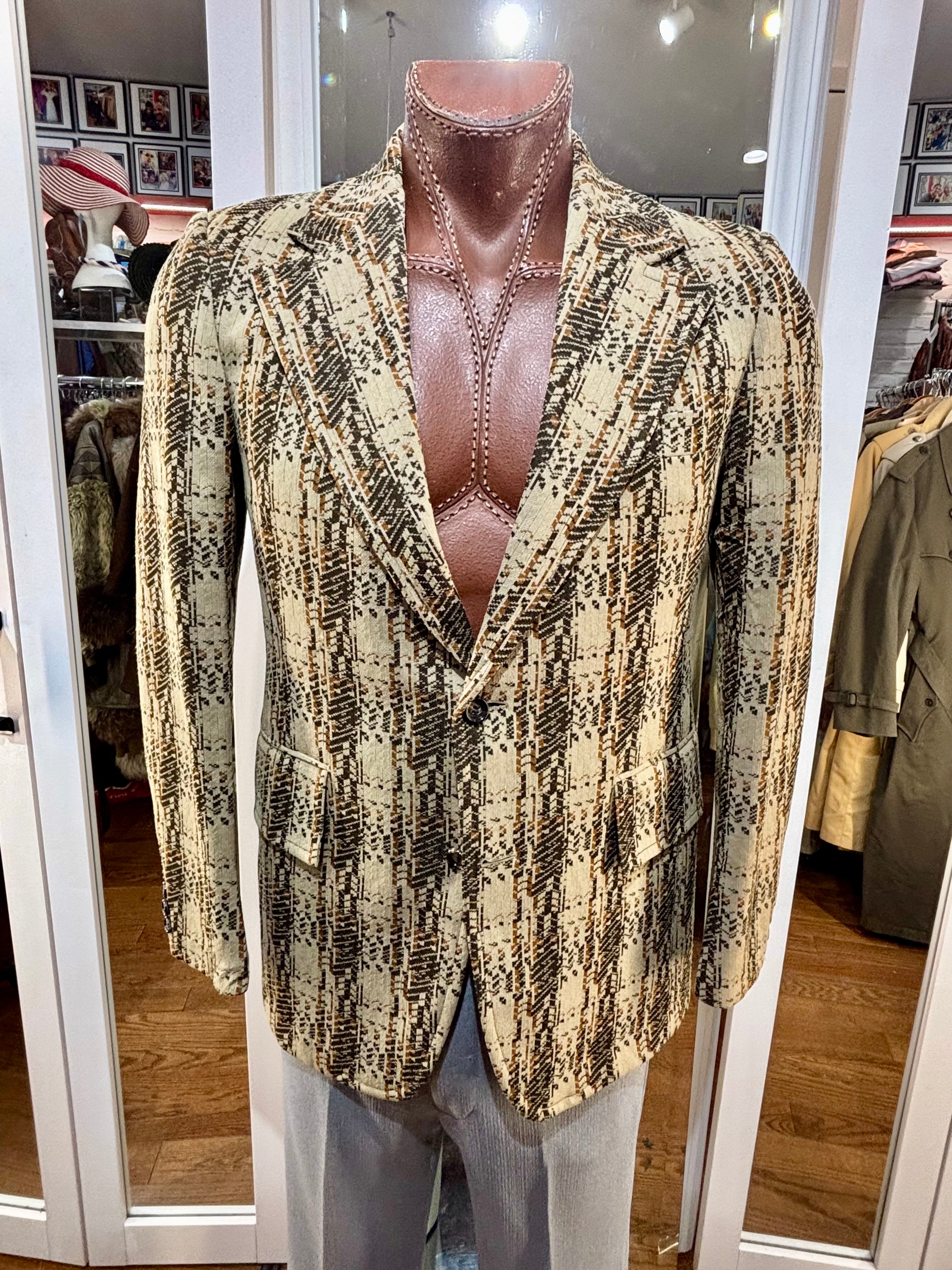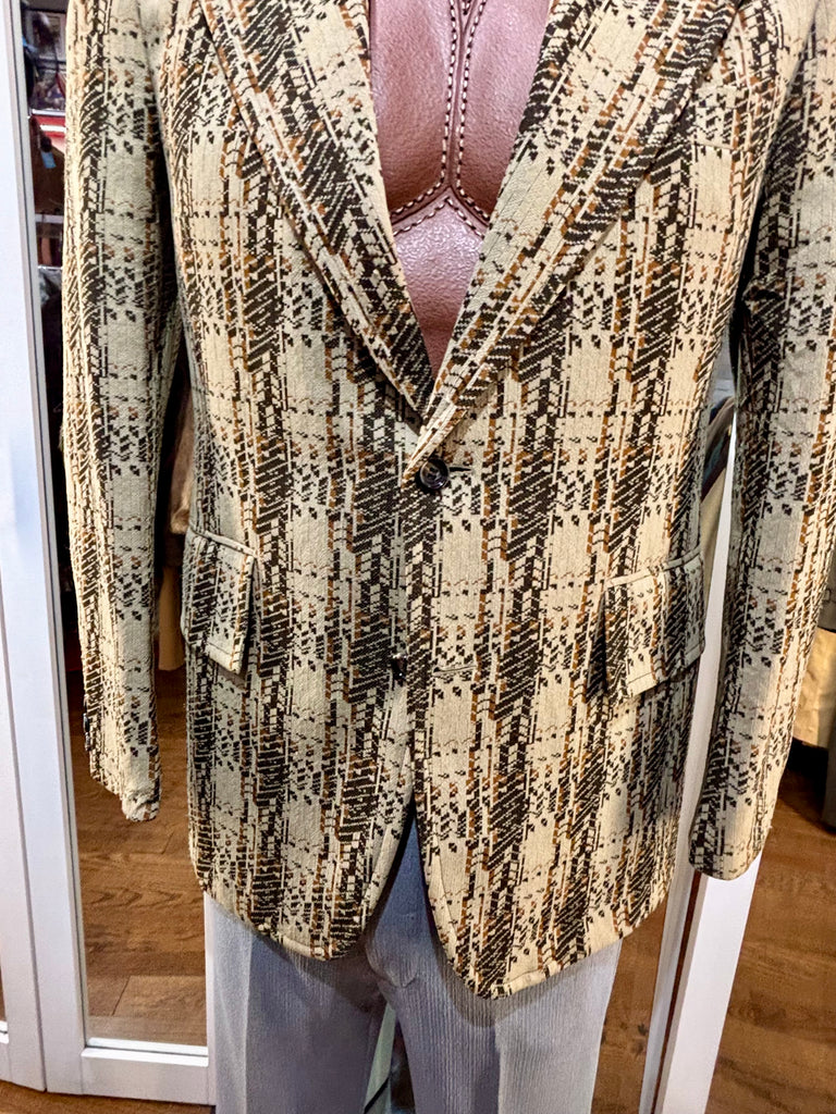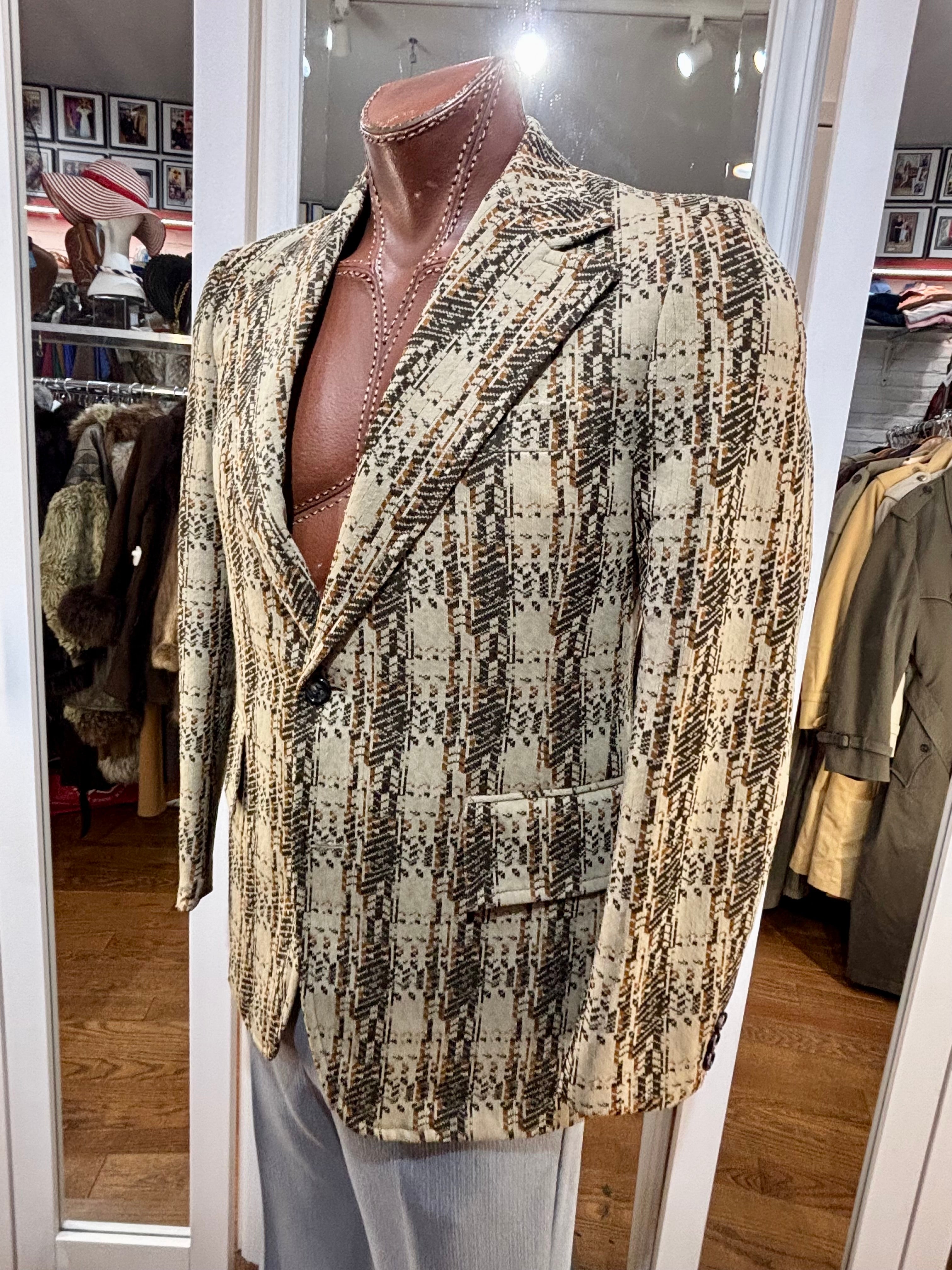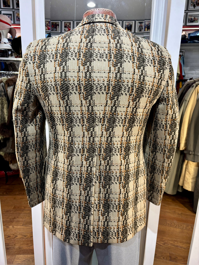70’s Beige & Brown Tartan Blazer By Double Knit