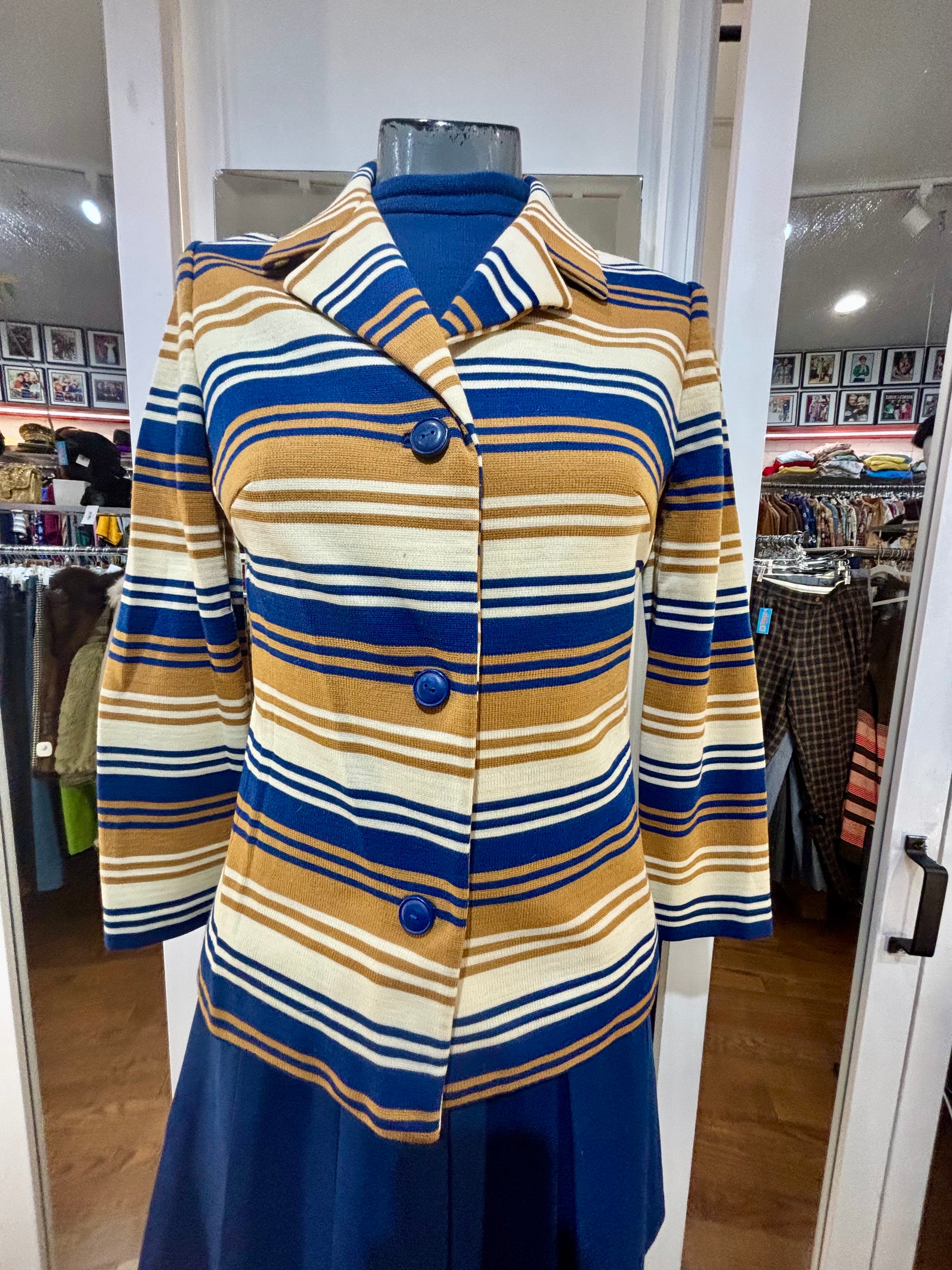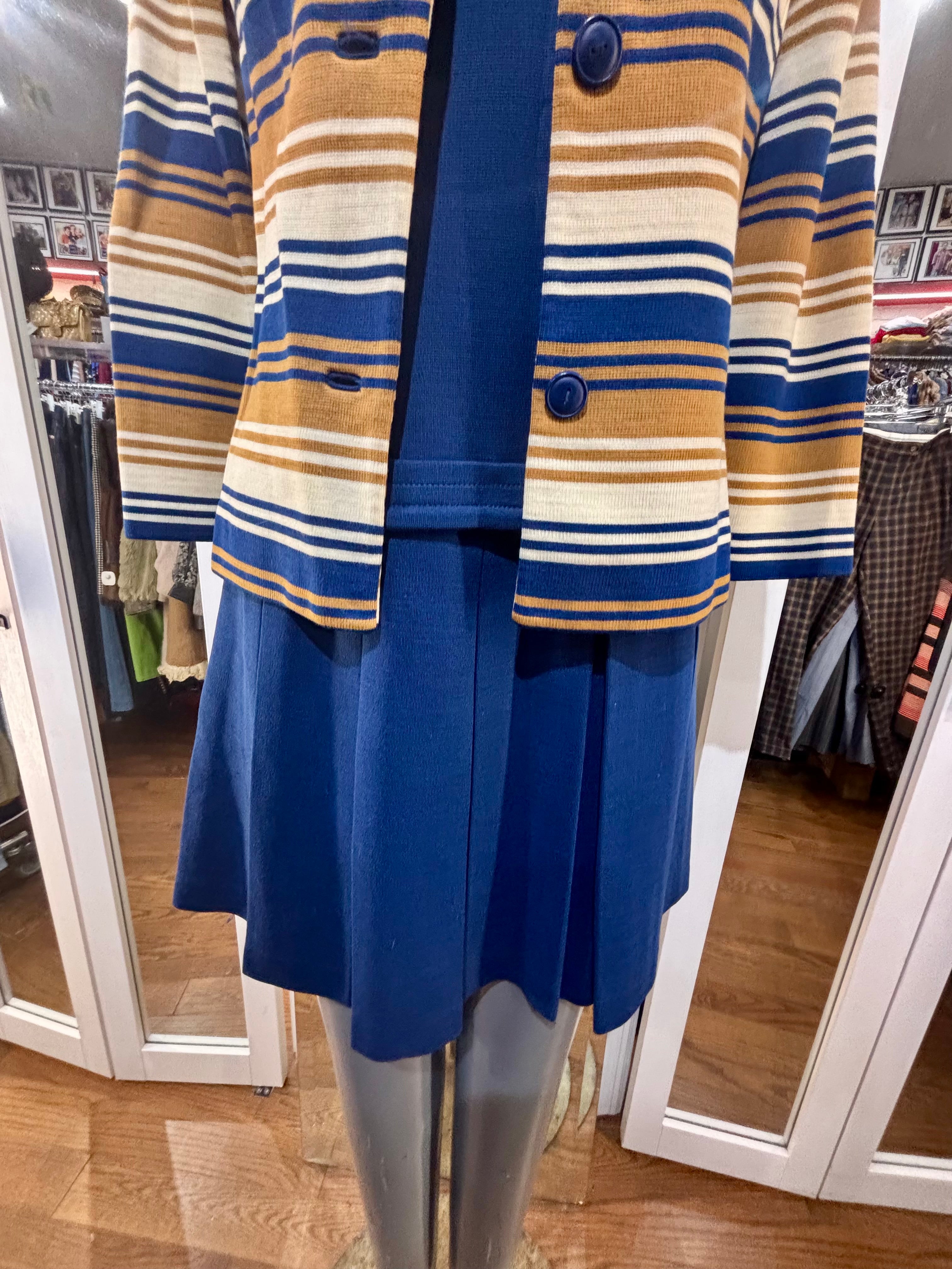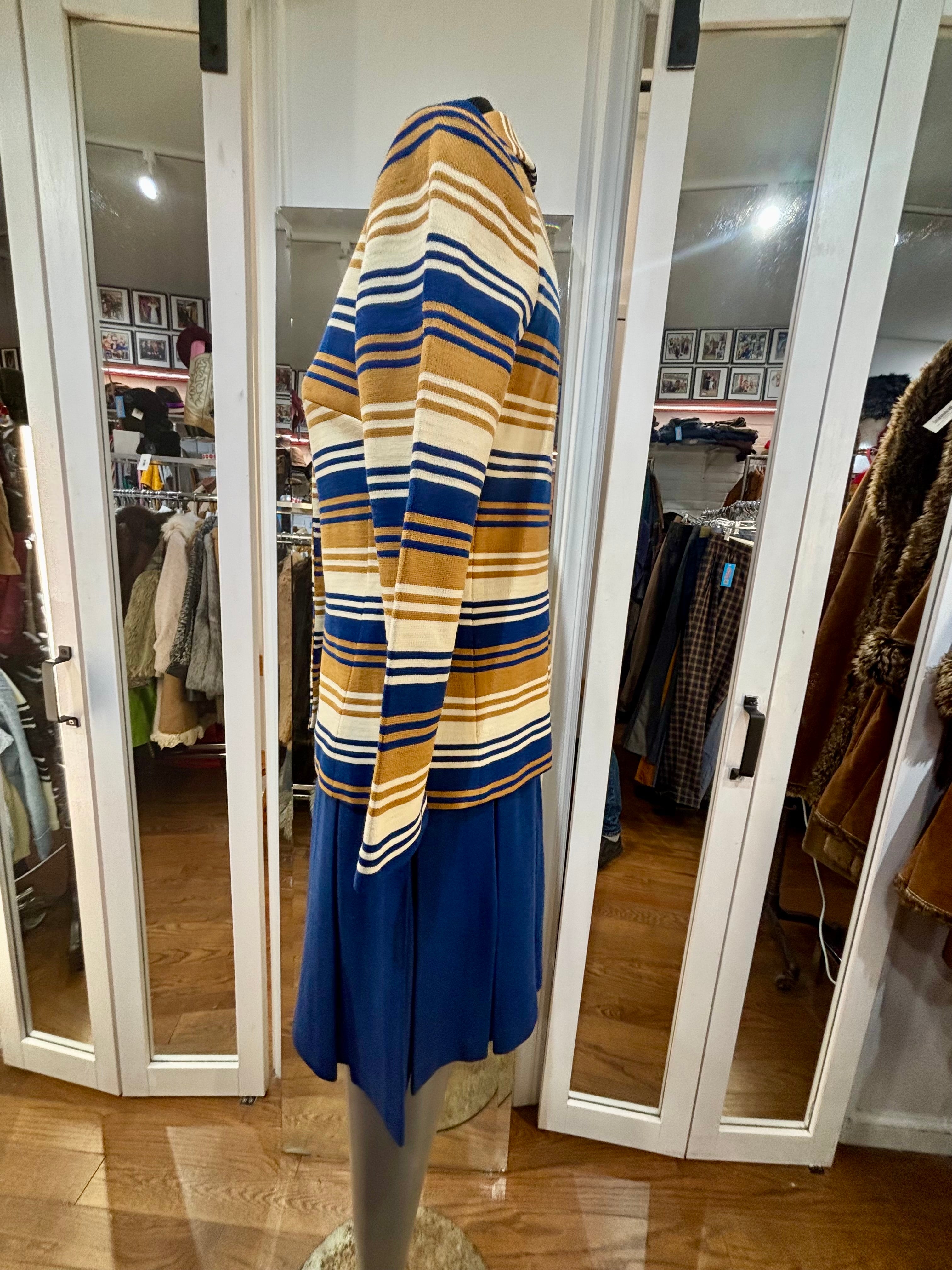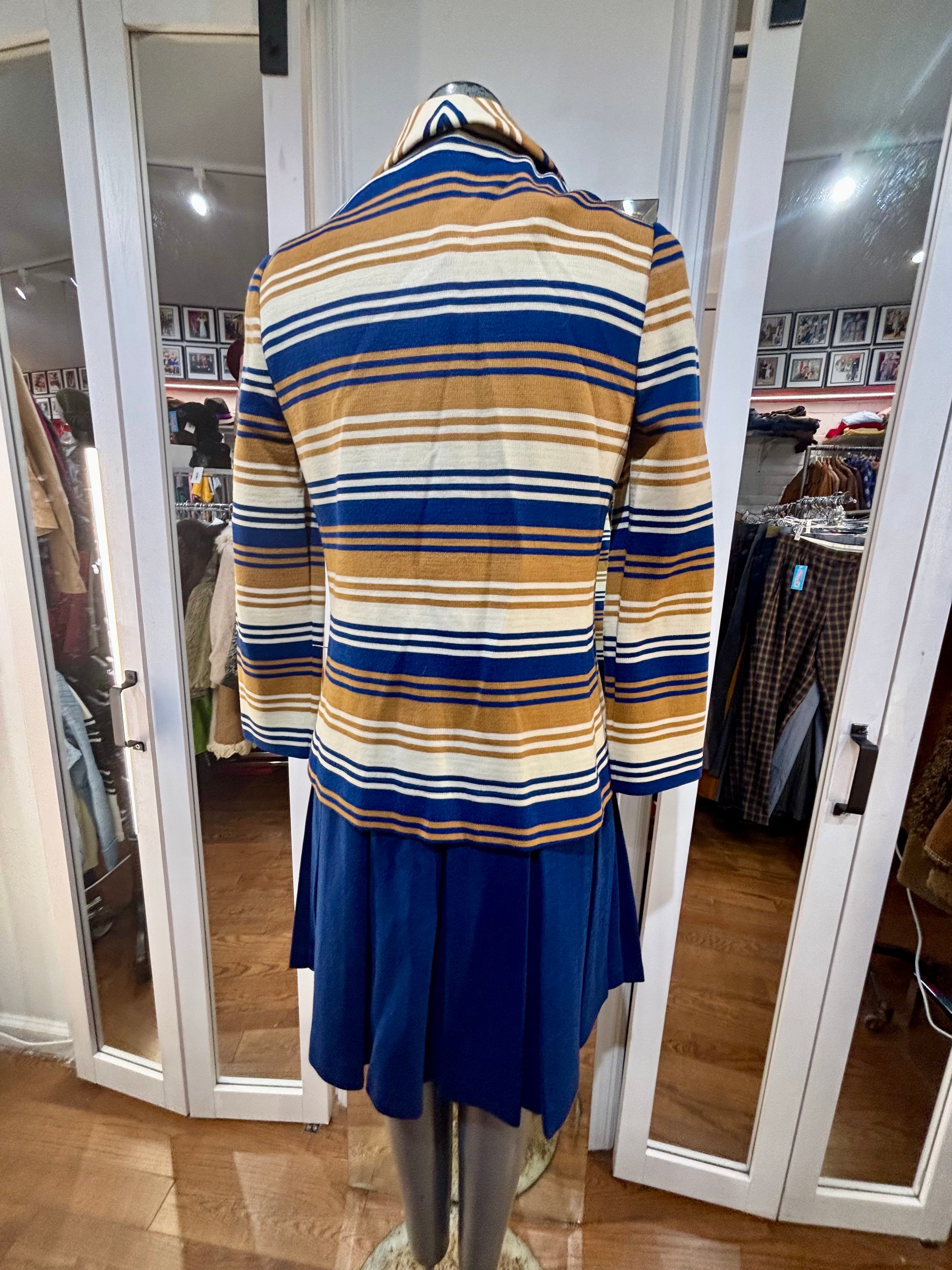 60’s Navy And Multicolor Stripe Jacket And Dress Set By Butte Knit