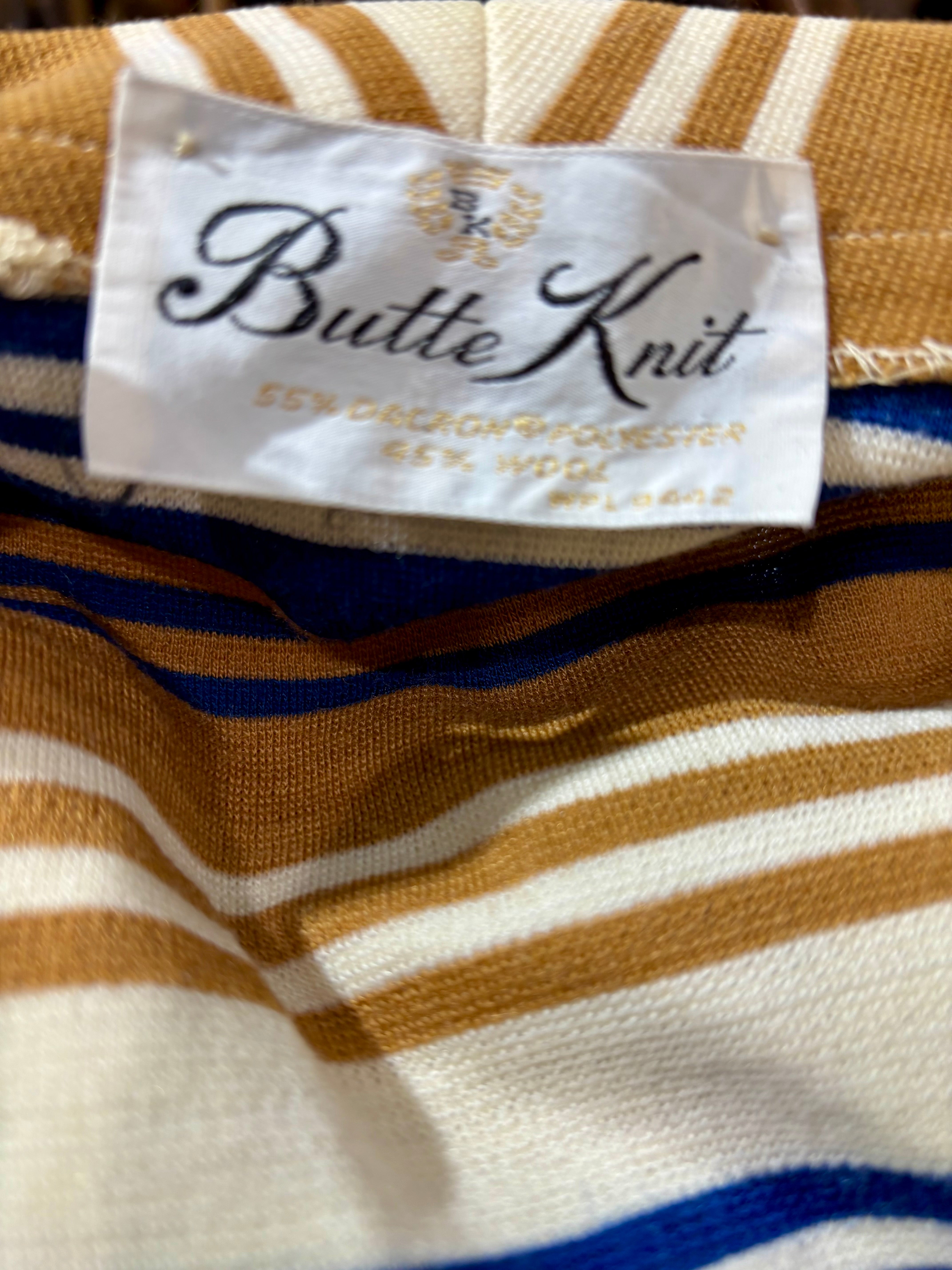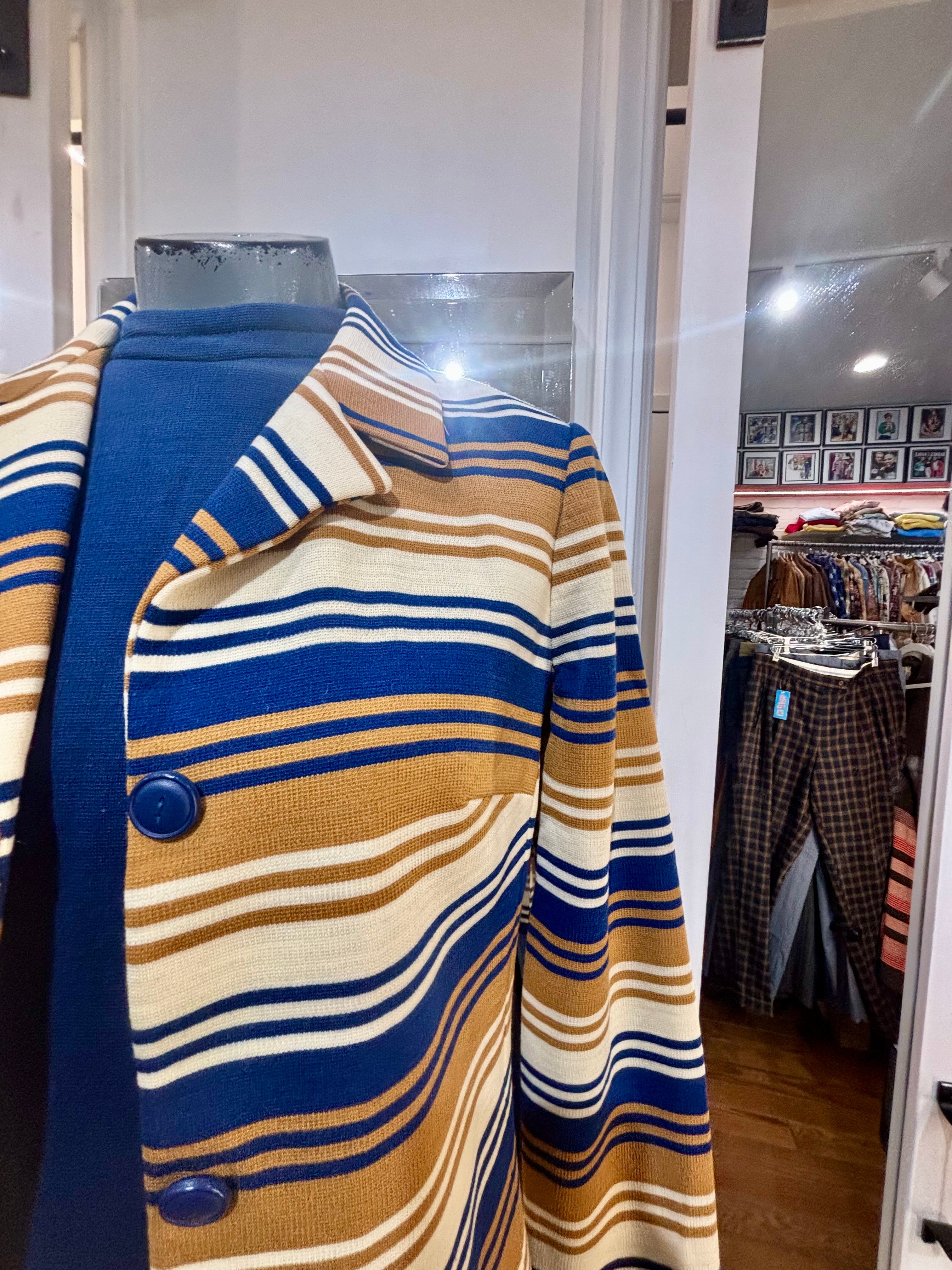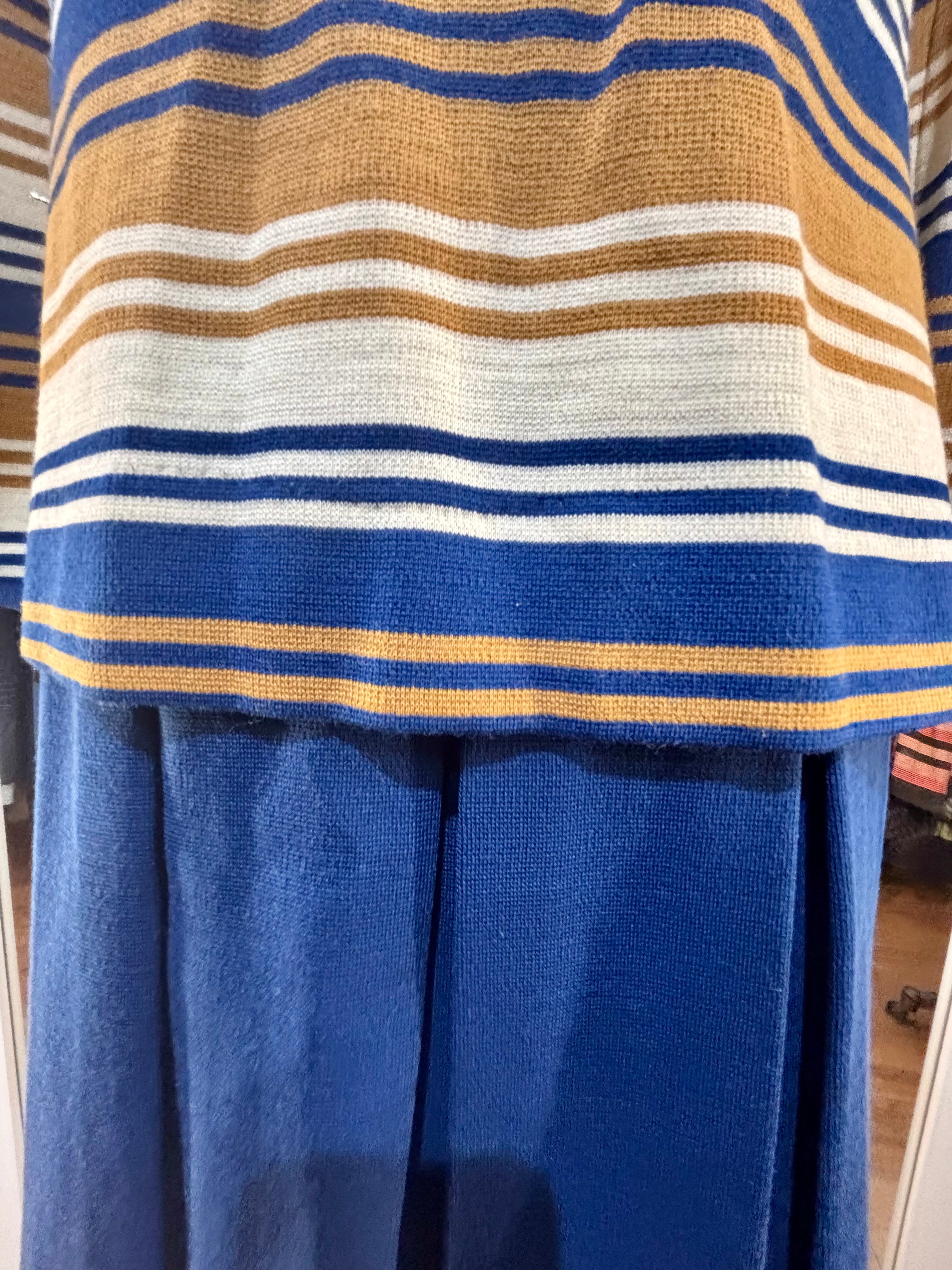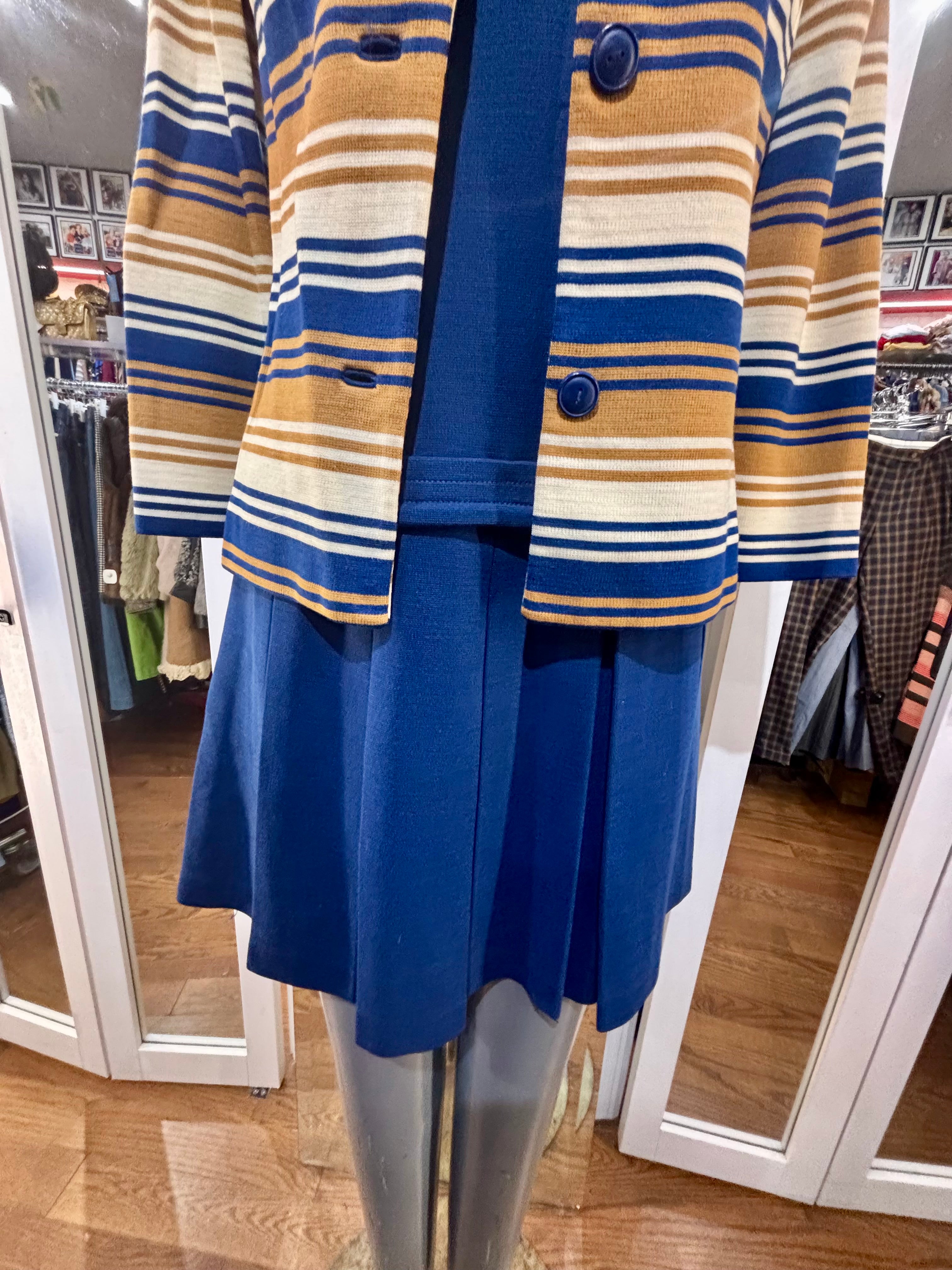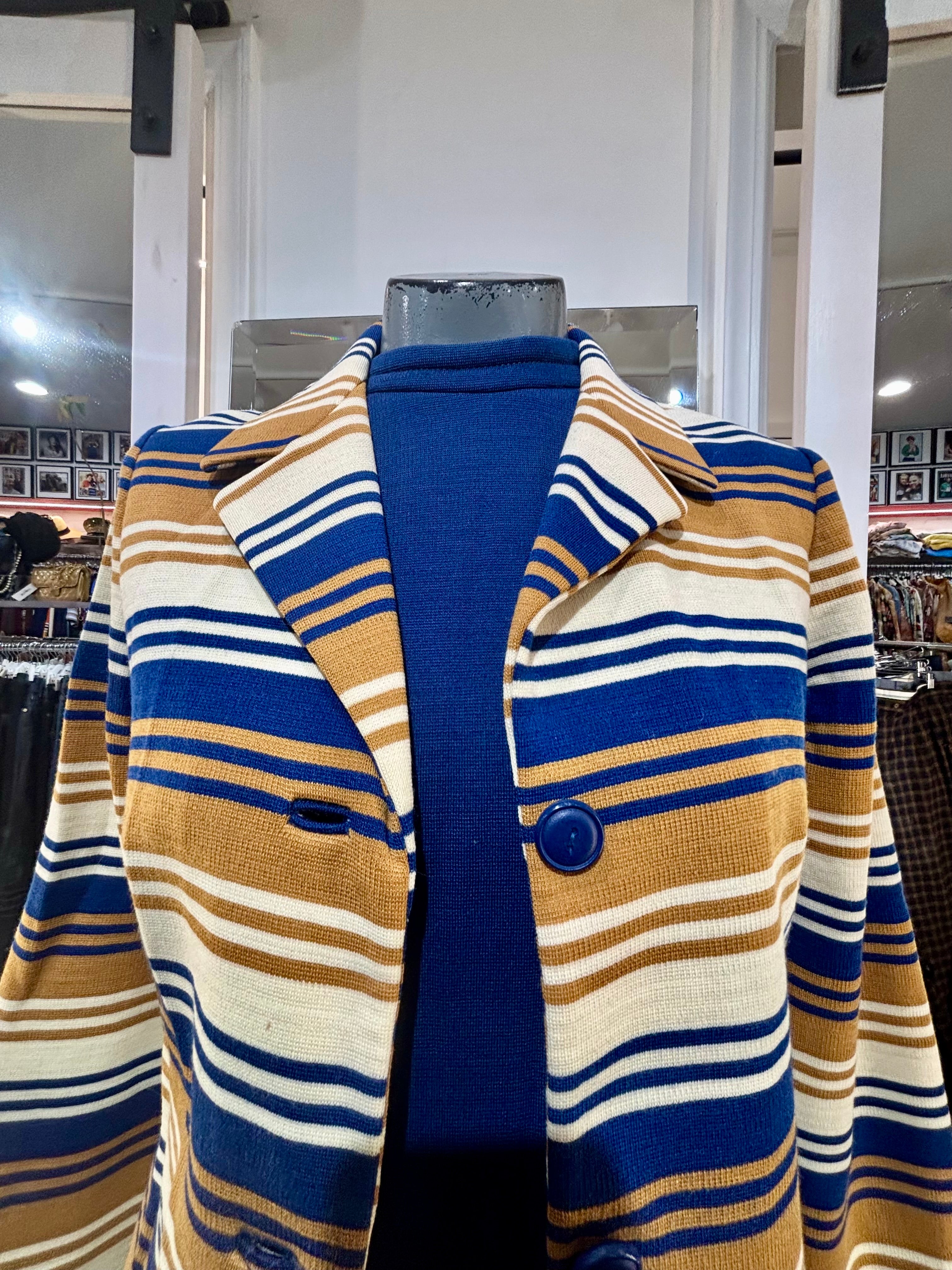 60’s Navy And Multicolor Stripe Jacket And Dress Set By Butte Knit