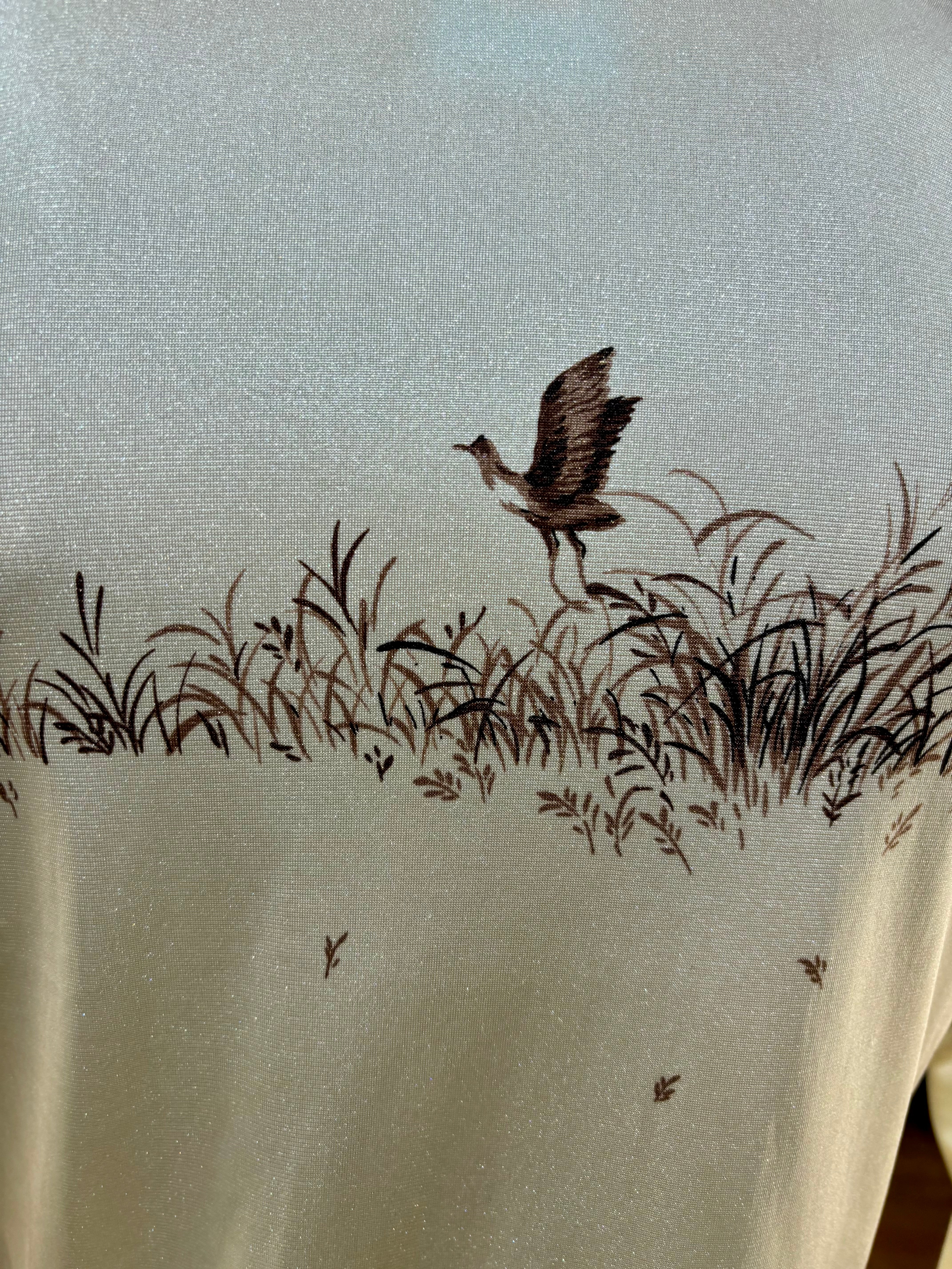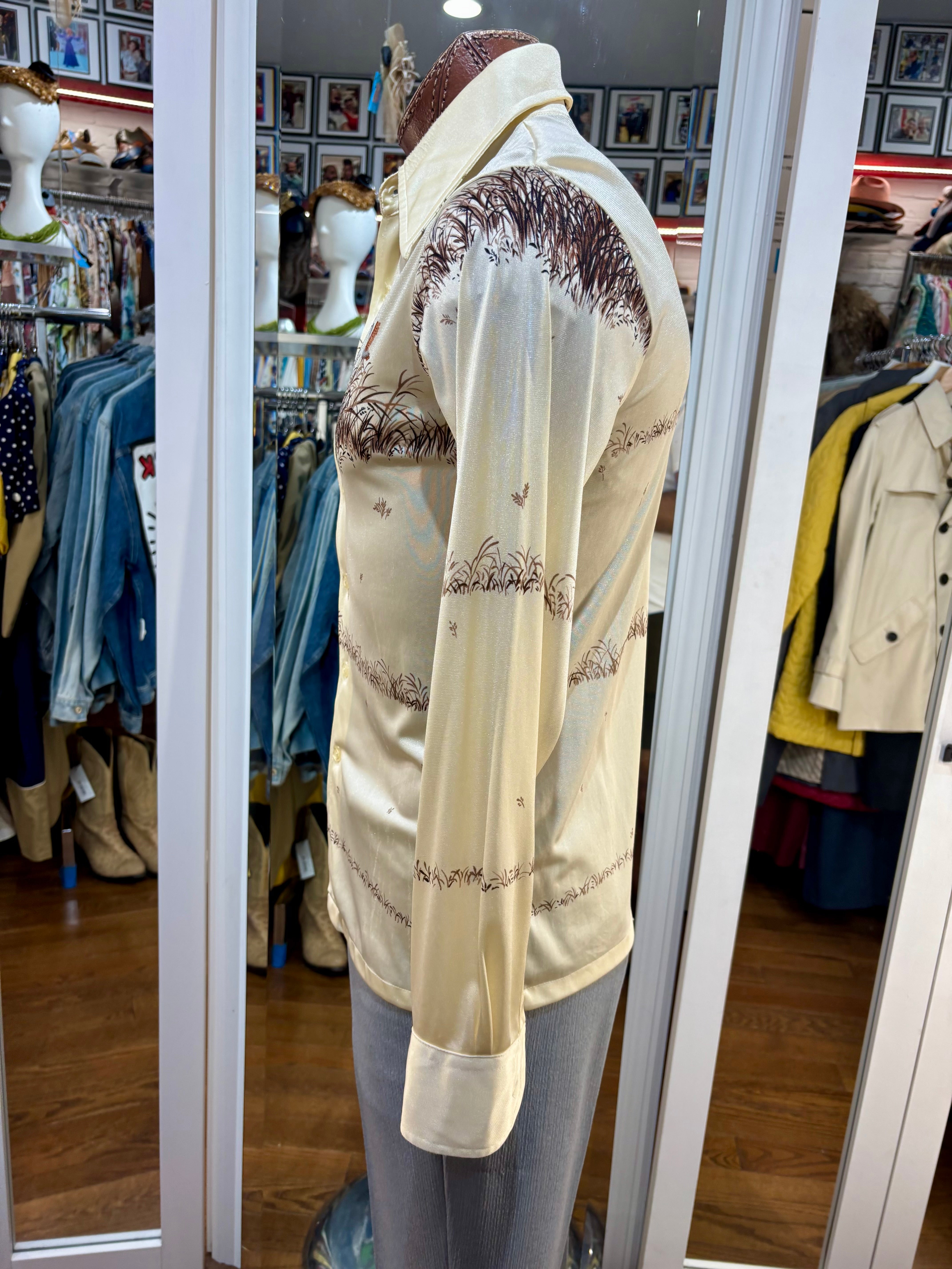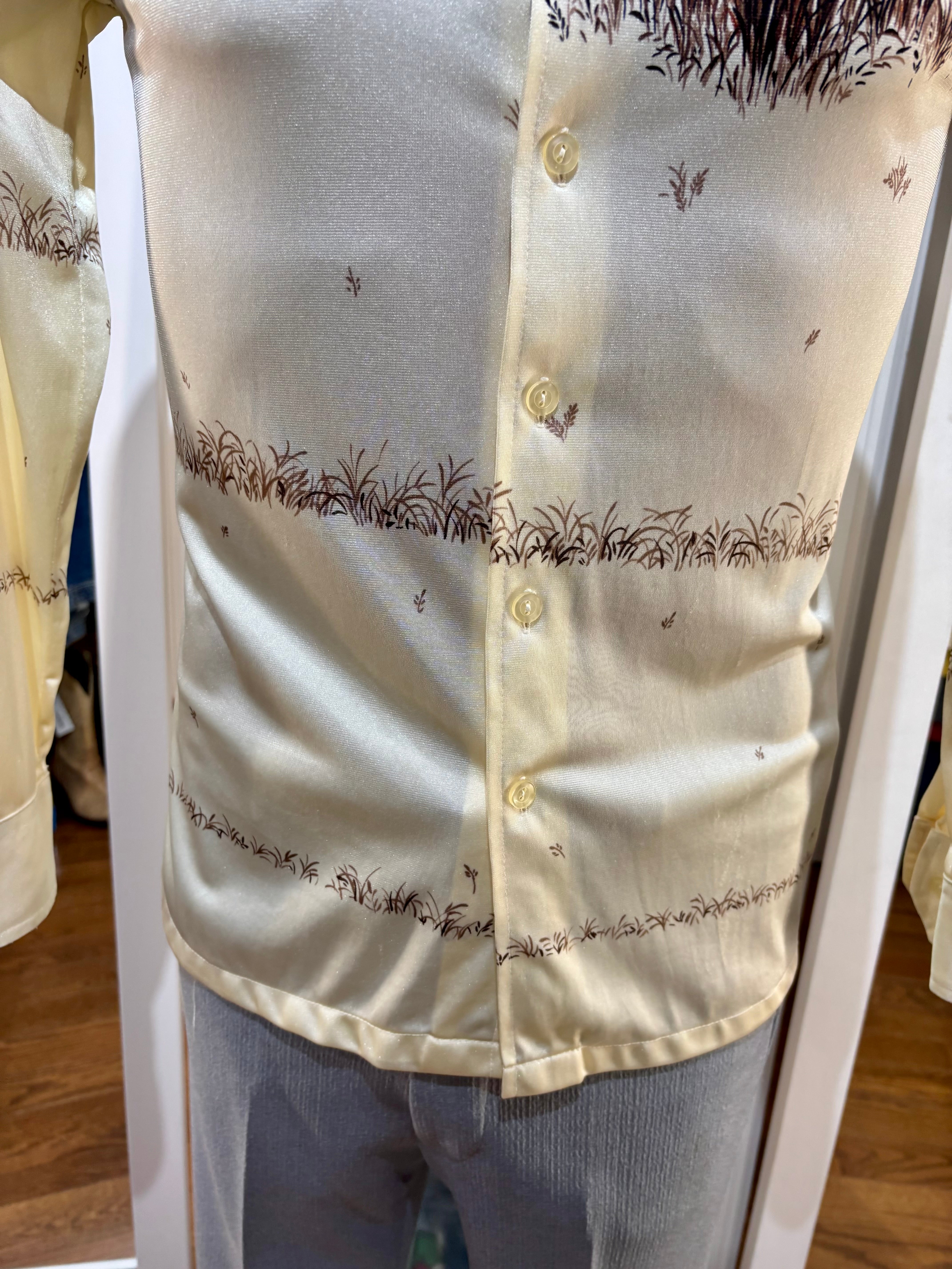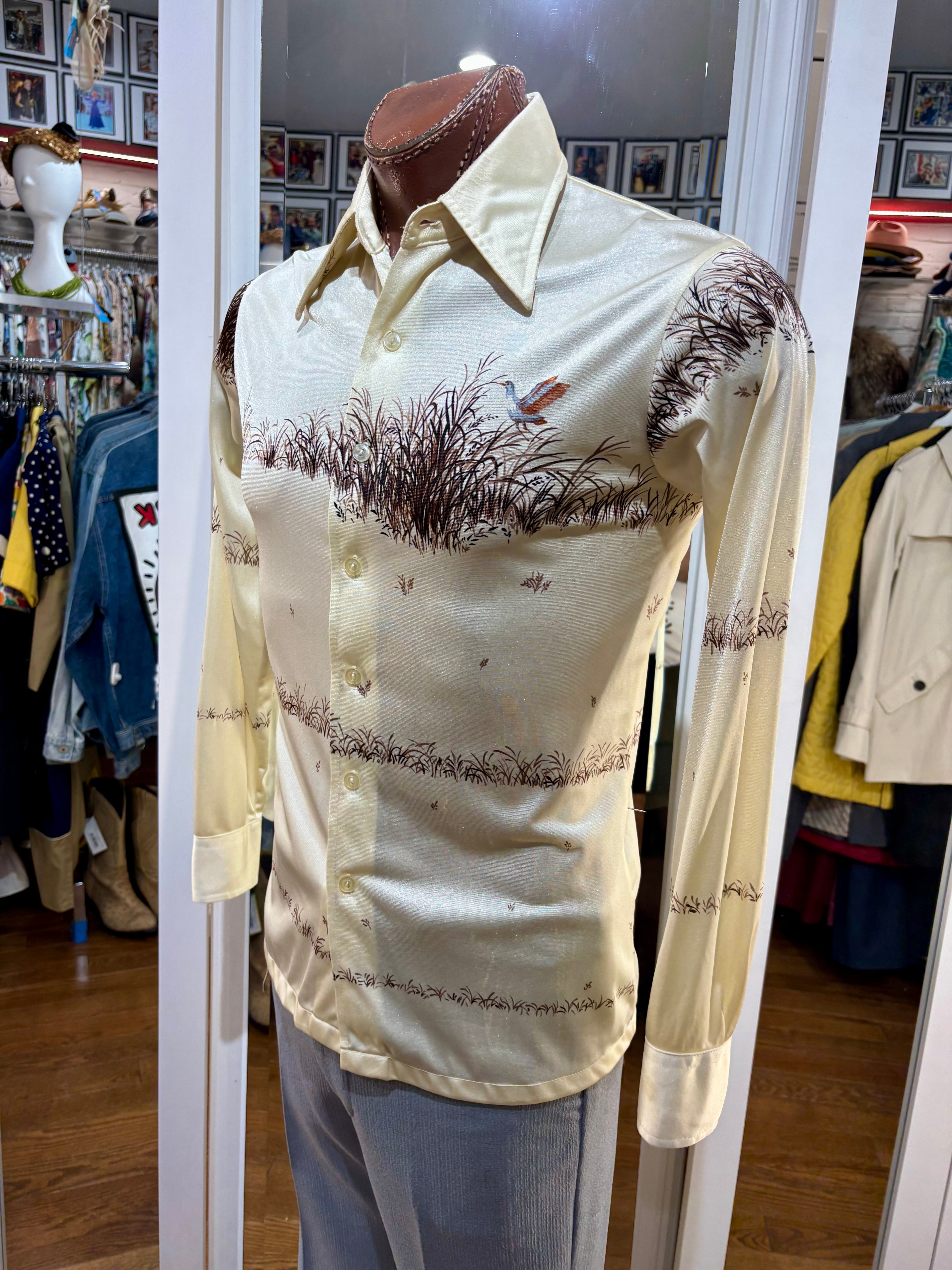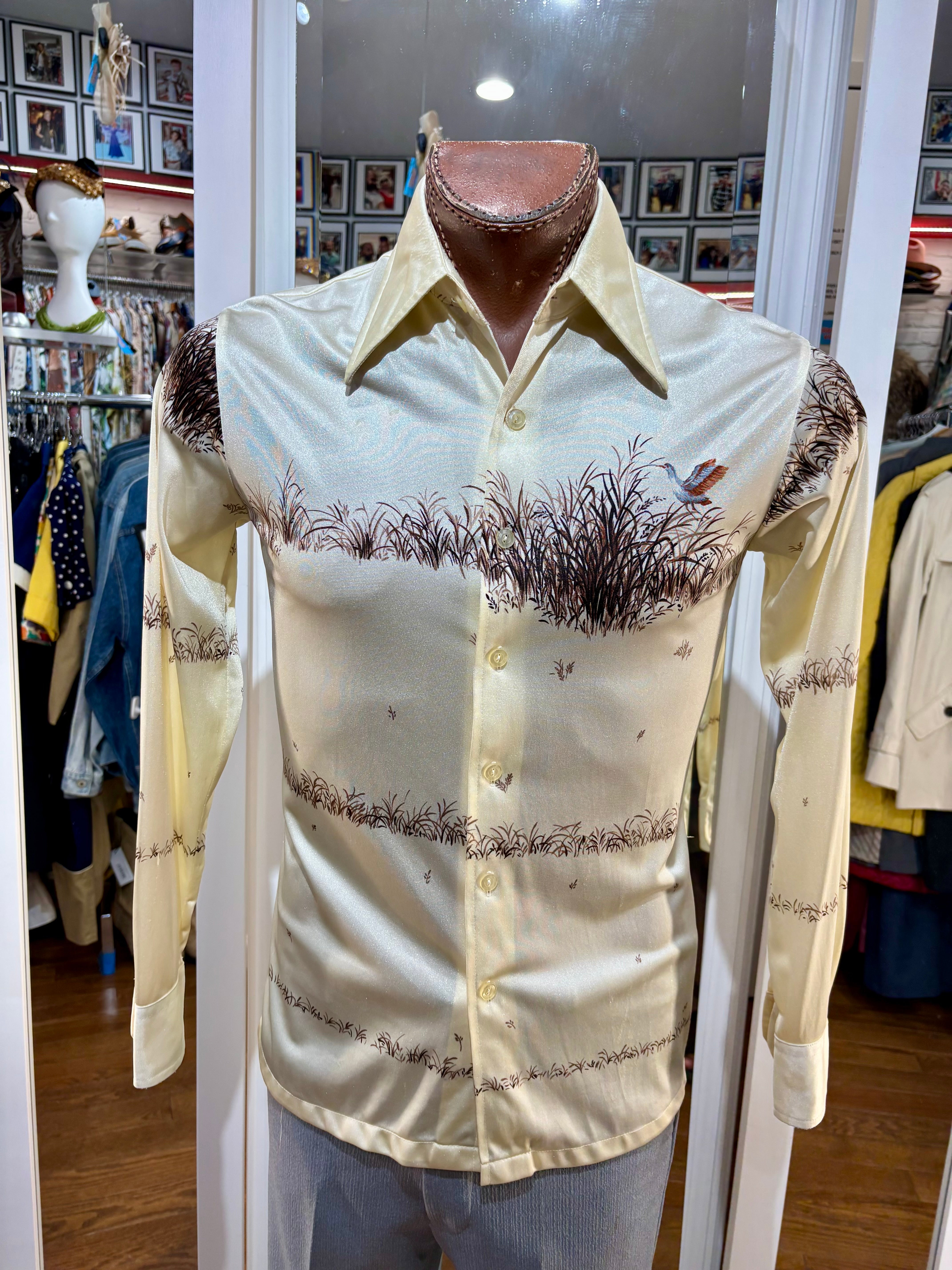 70’s Off White And Brown Duck Scenery Print Disco Shirt By Chemise Et Cie