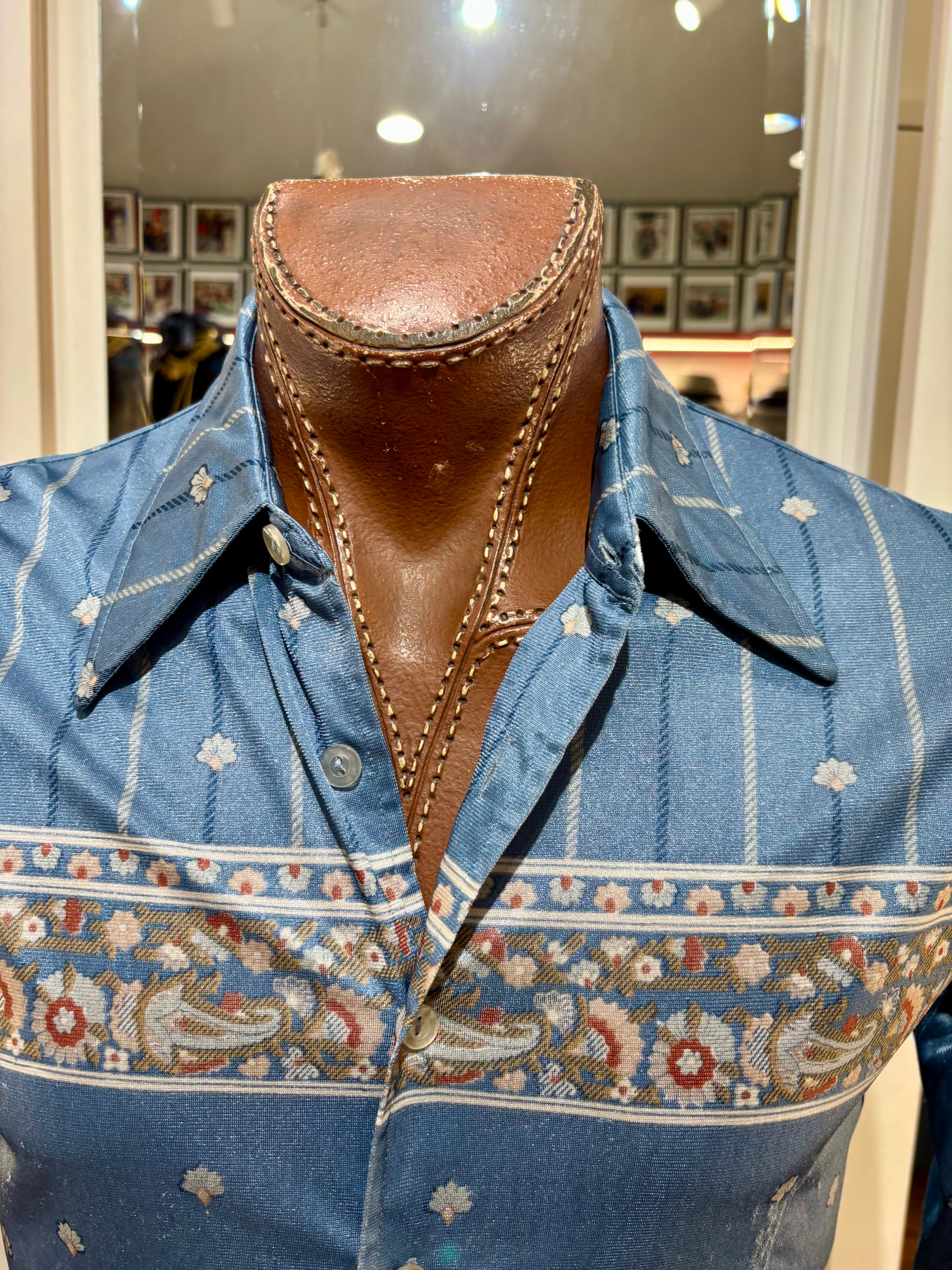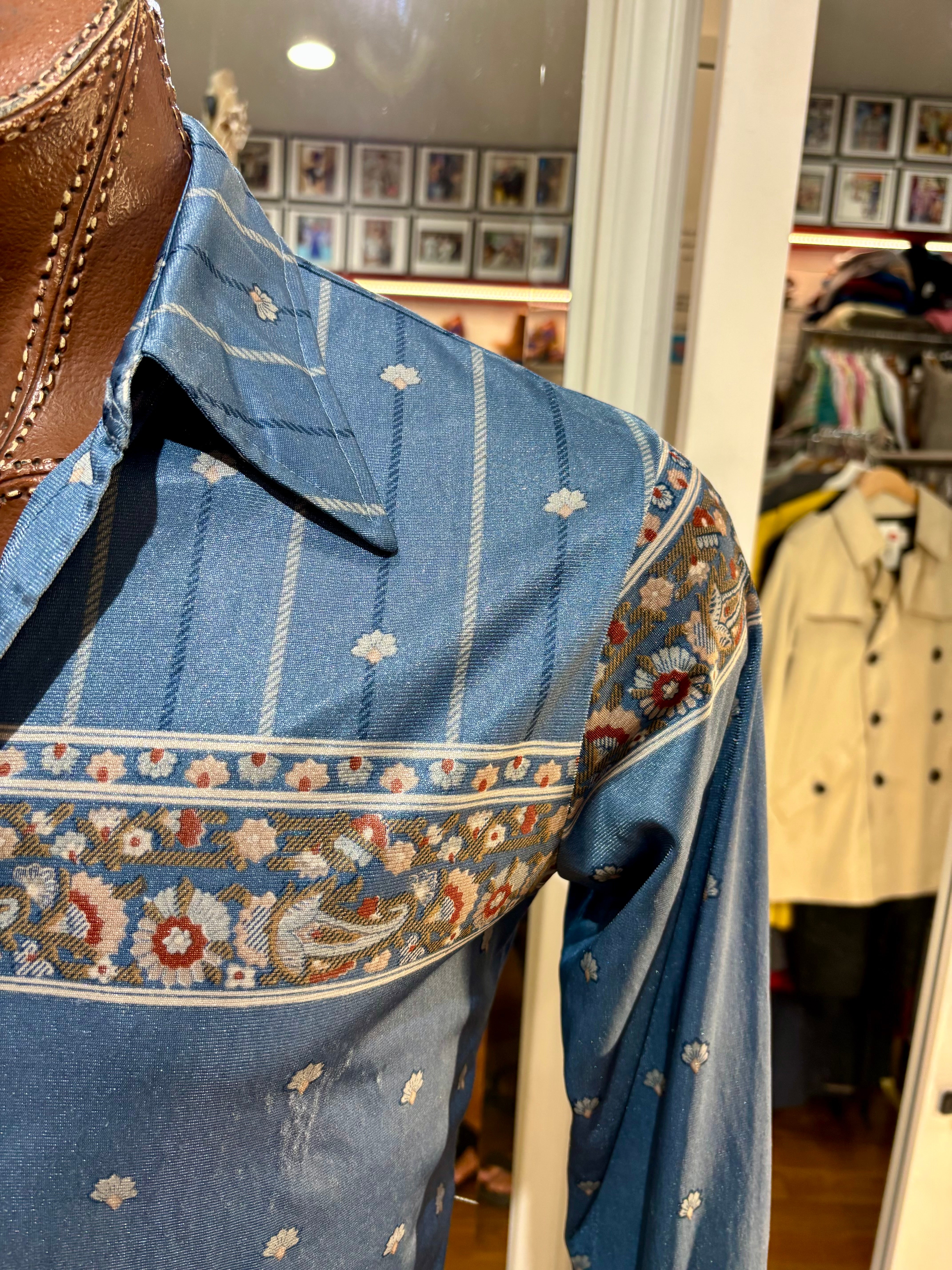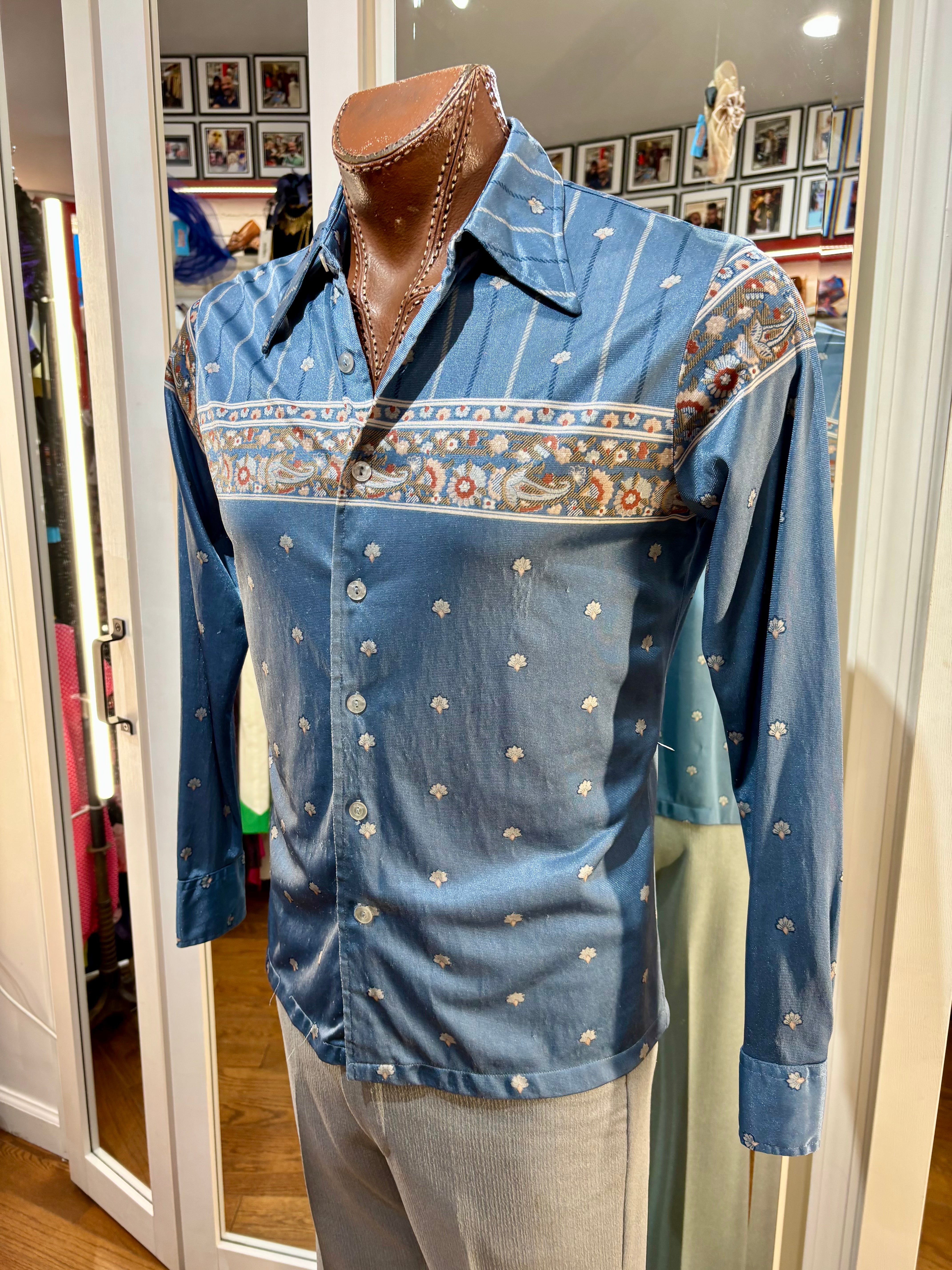 70’s Blue And Brown Parley & Flowers Print Disco Shirt By Chemise Et Cie