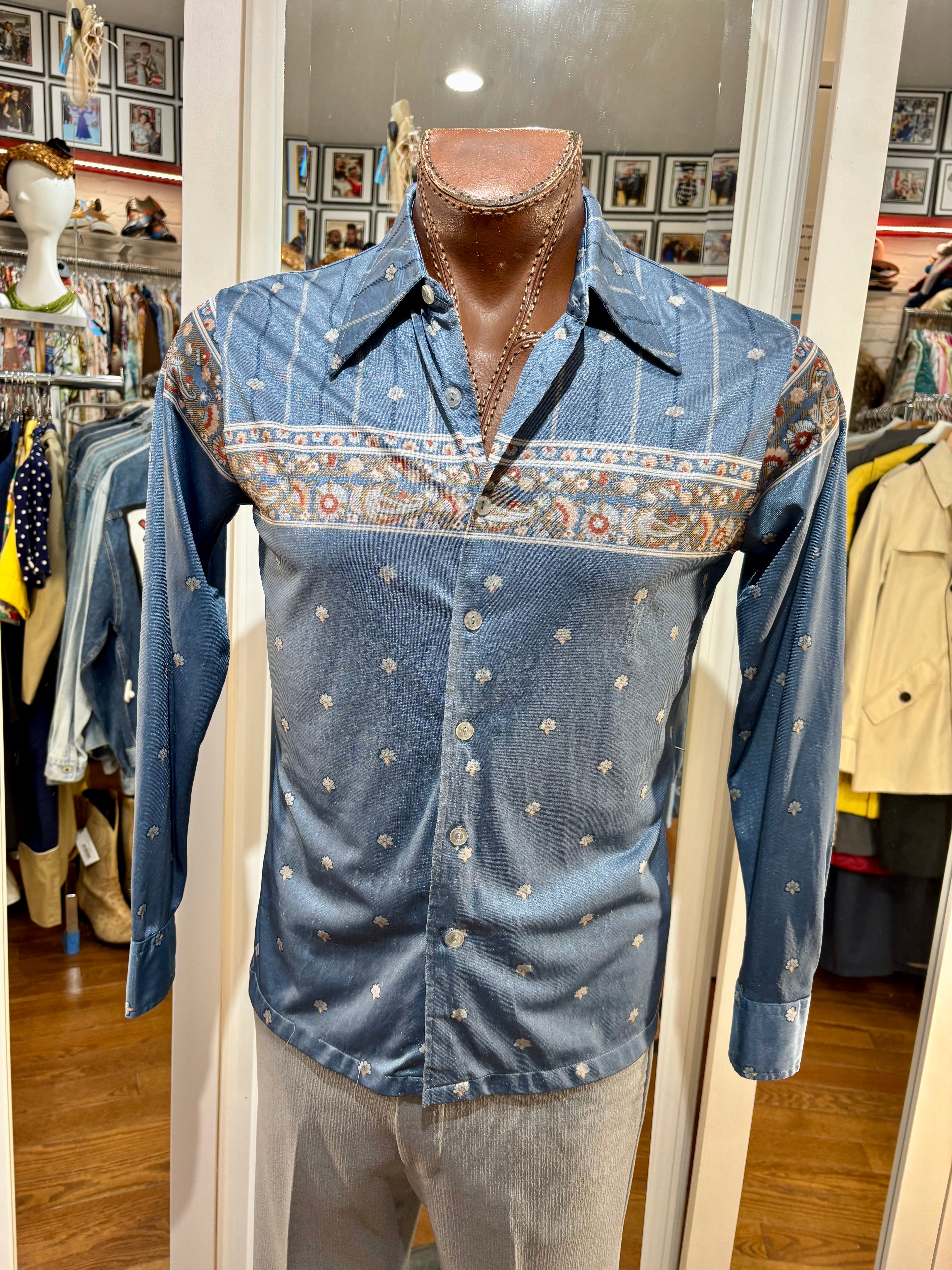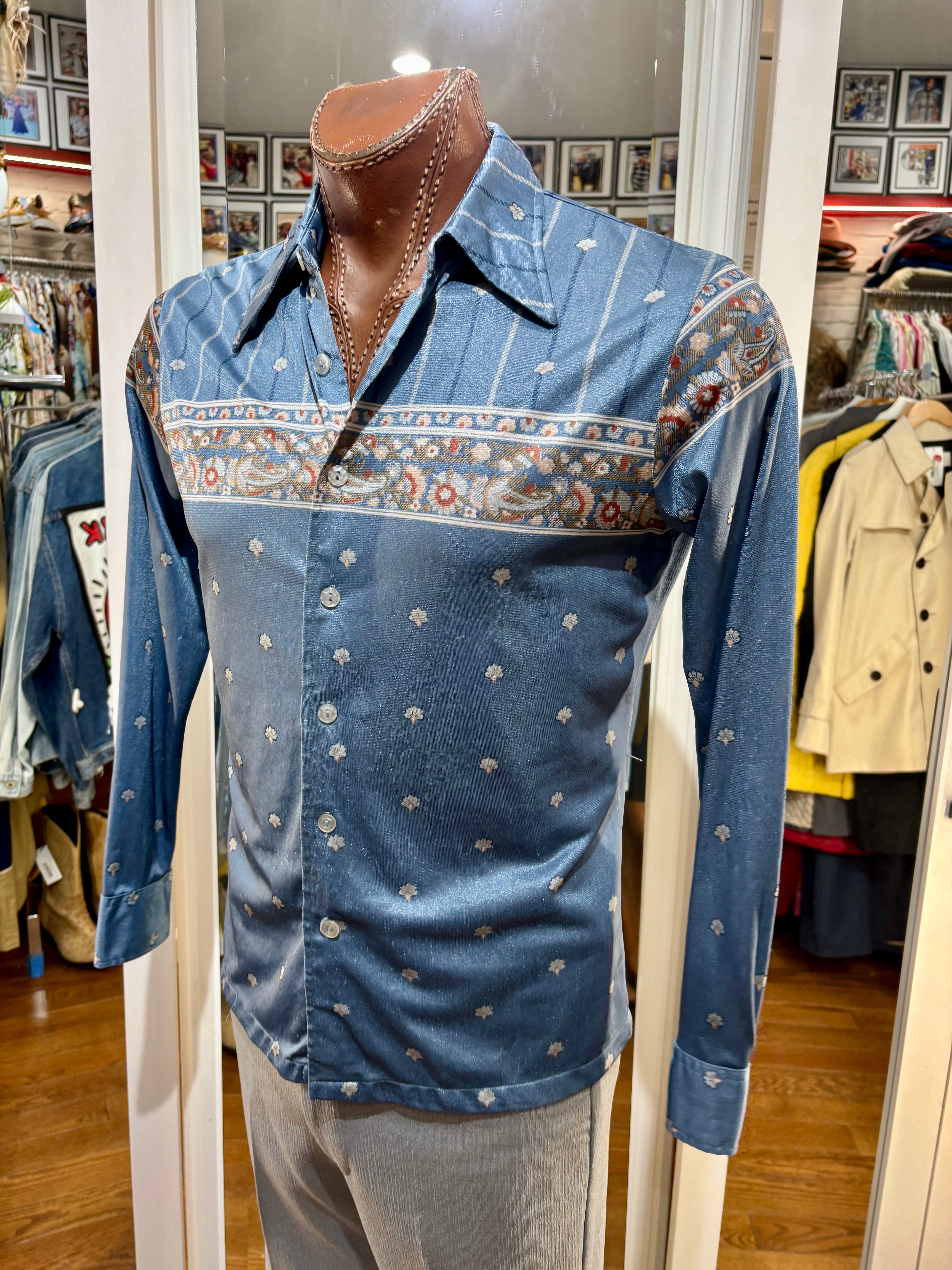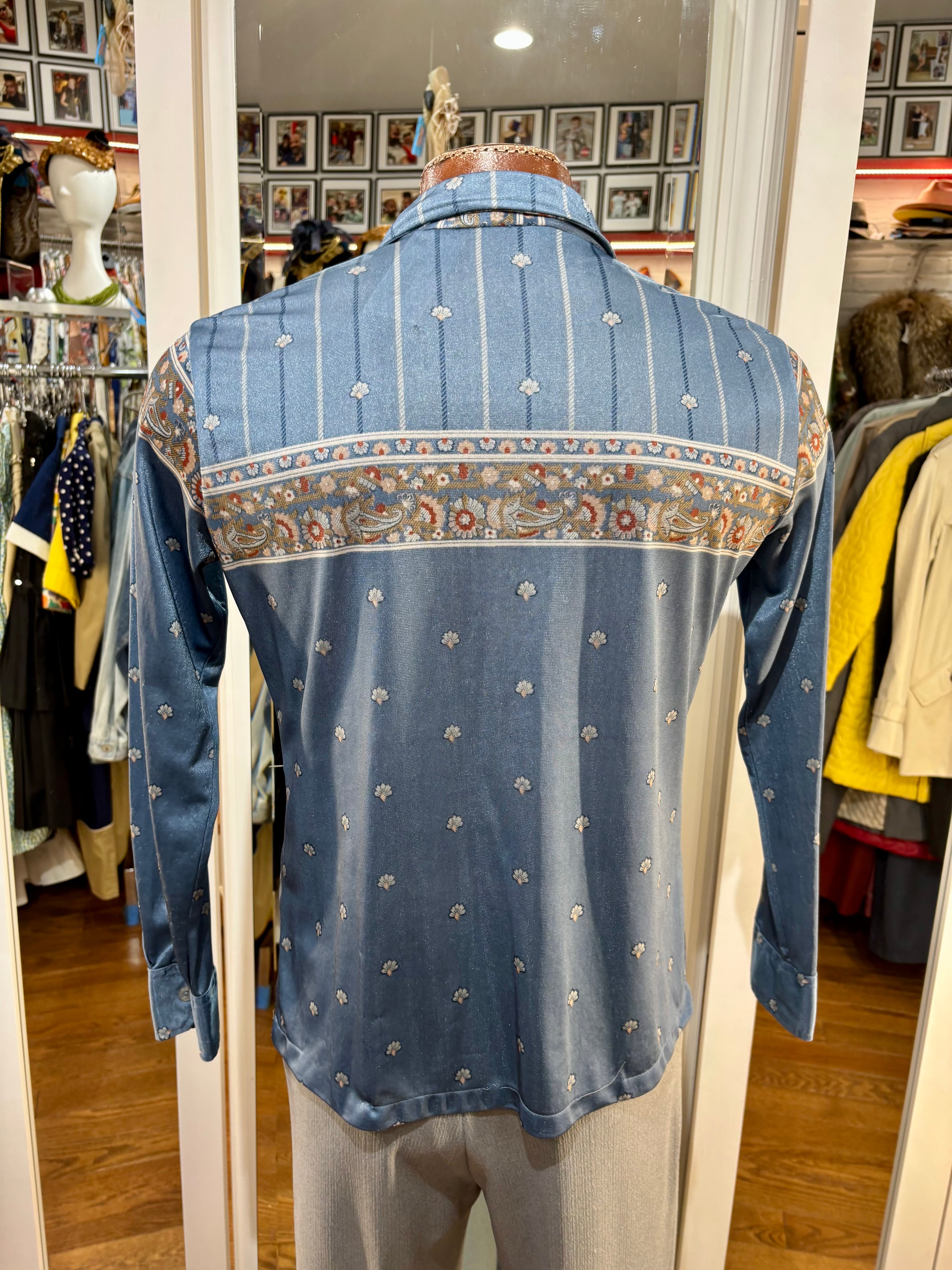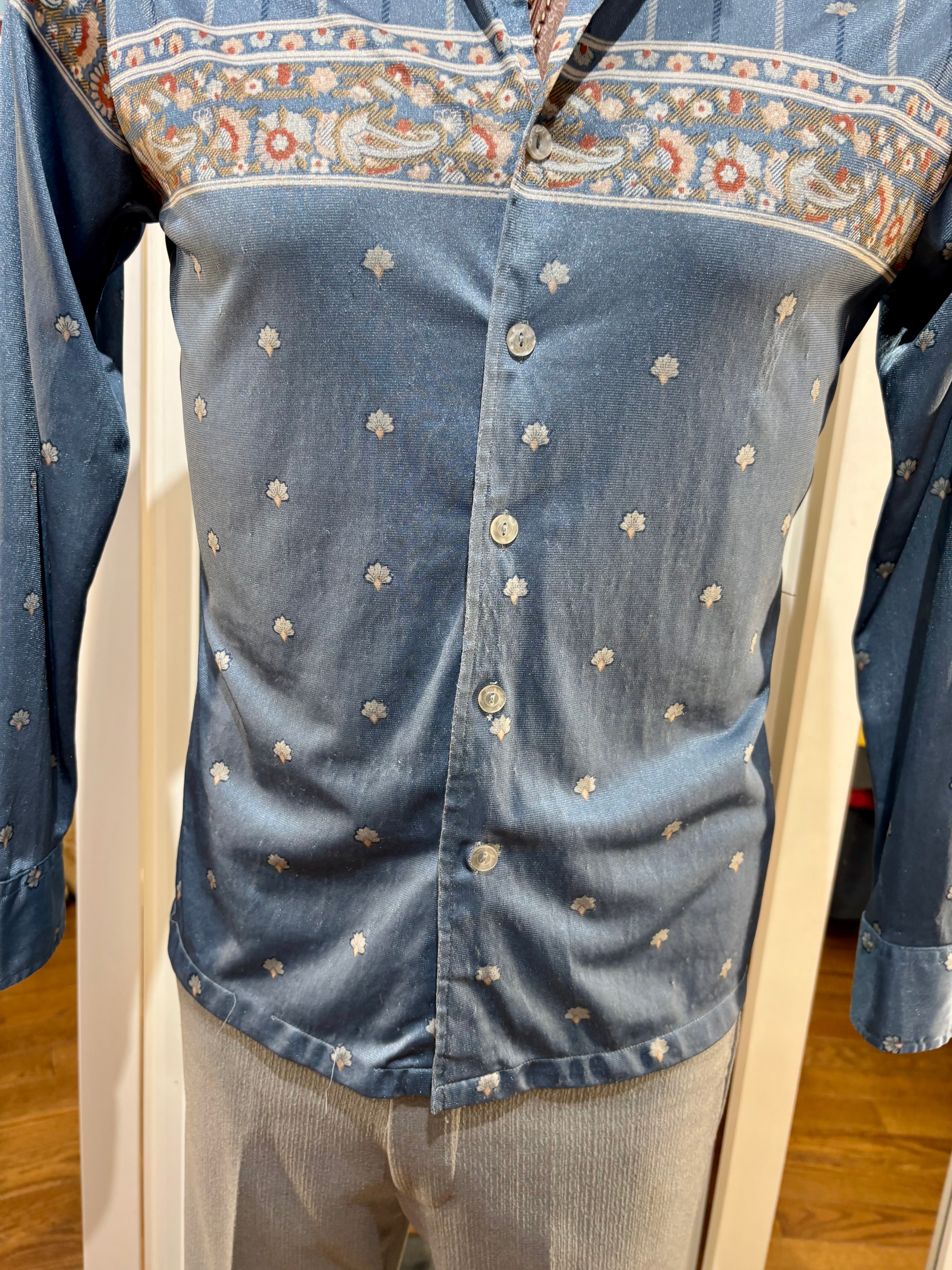70’s Blue And Brown Parley & Flowers Print Disco Shirt By Chemise Et Cie