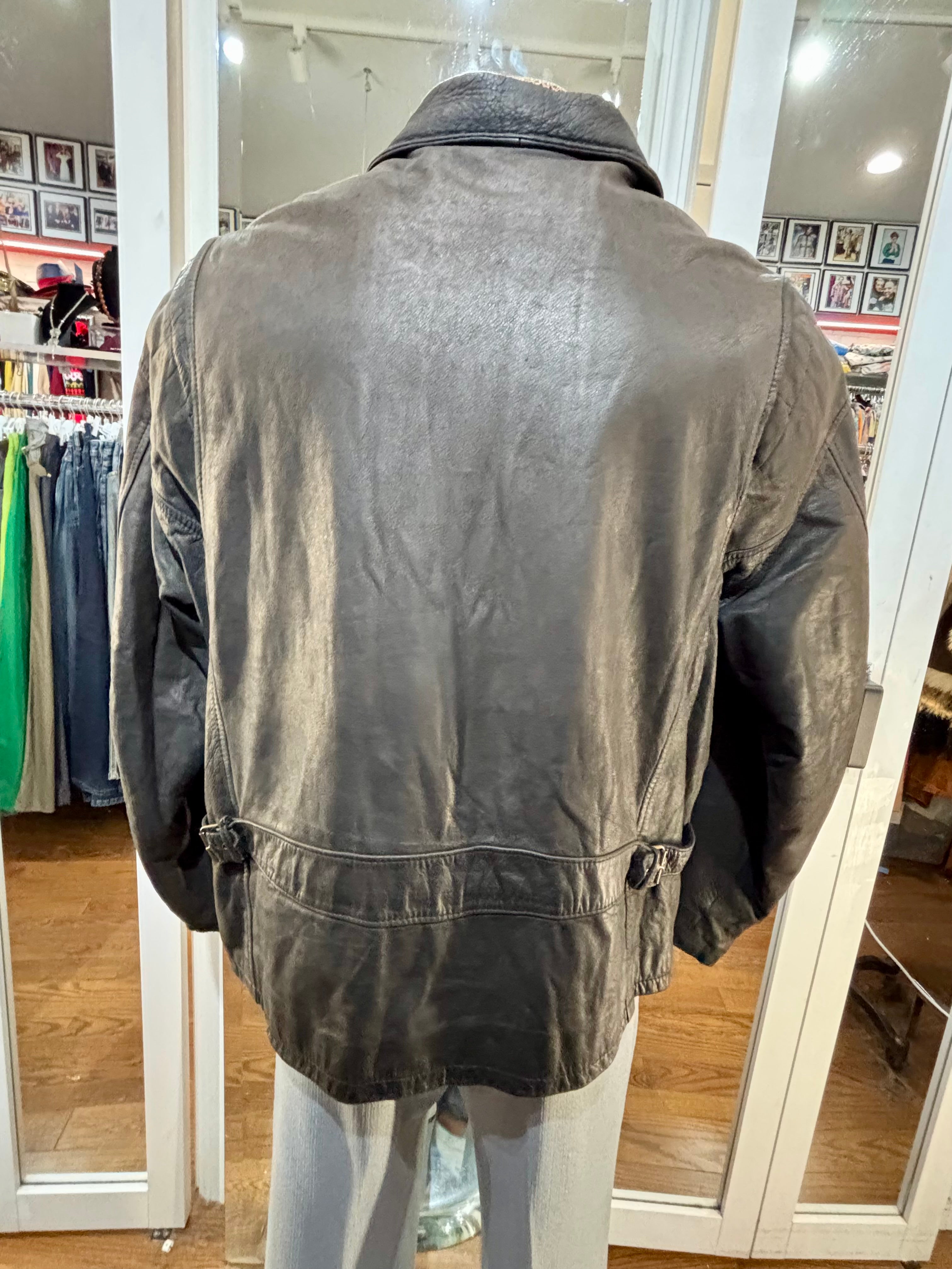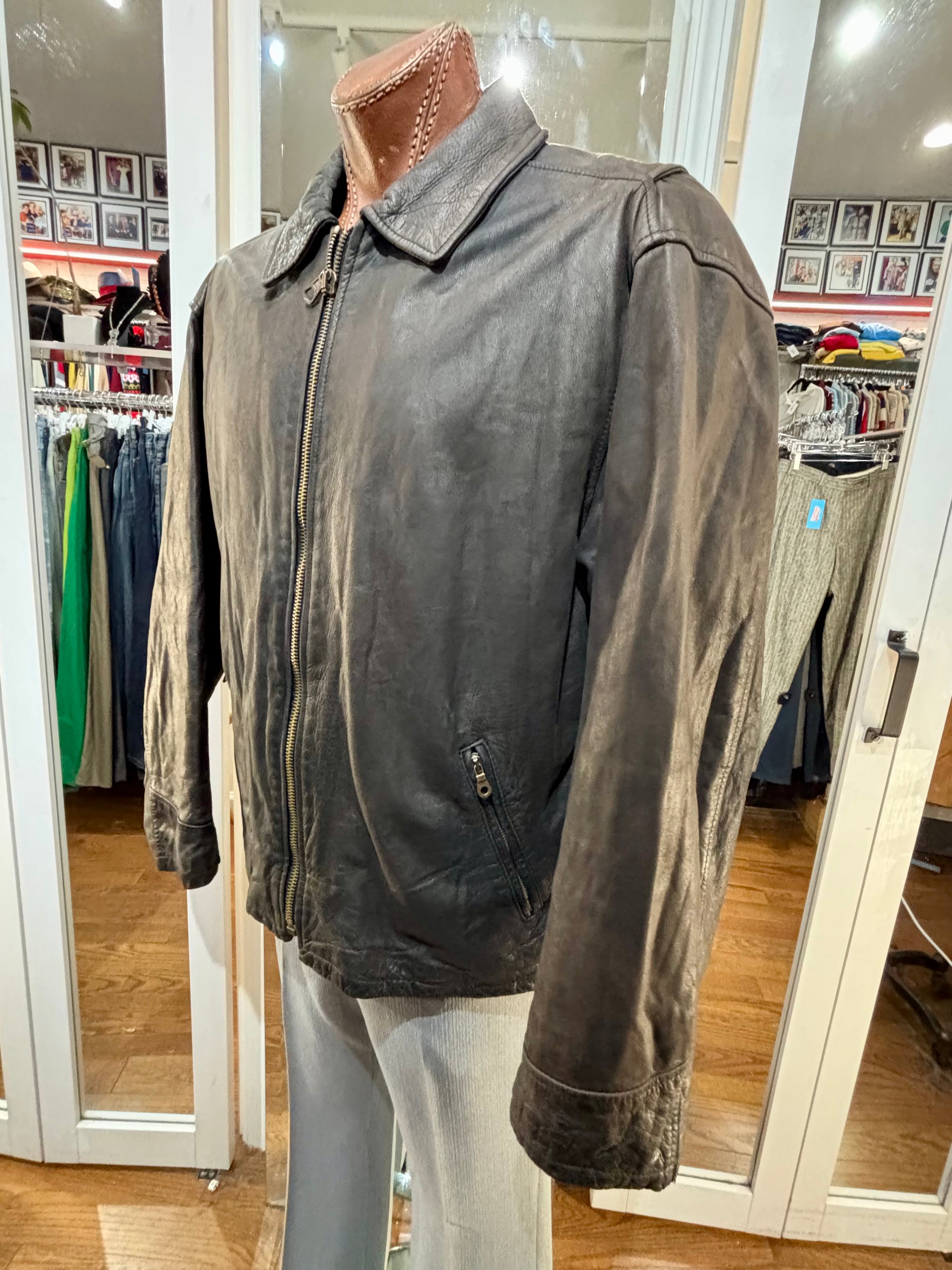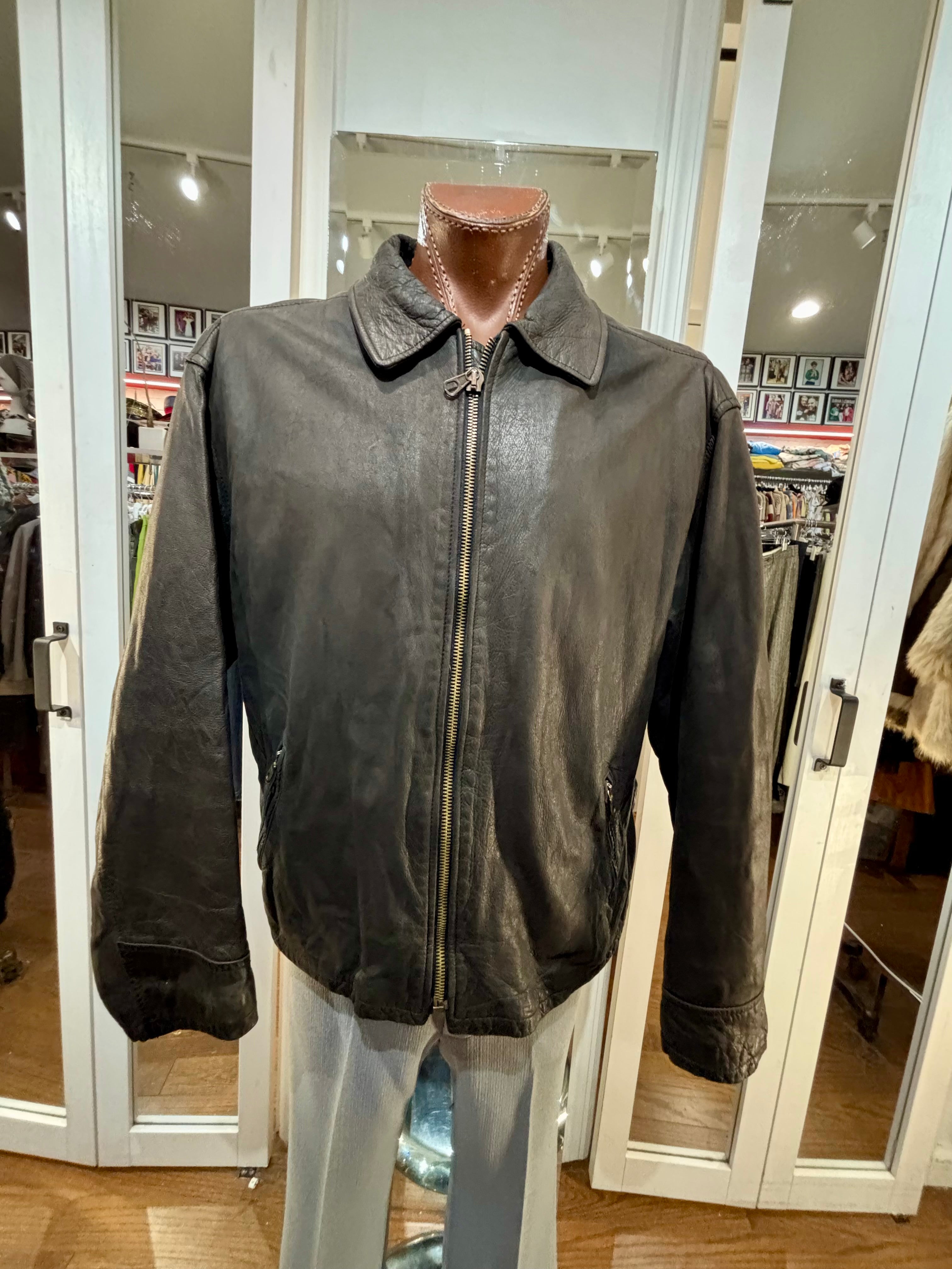 90’s Black Zip Short Leather Jacket By Republica Della Pelle