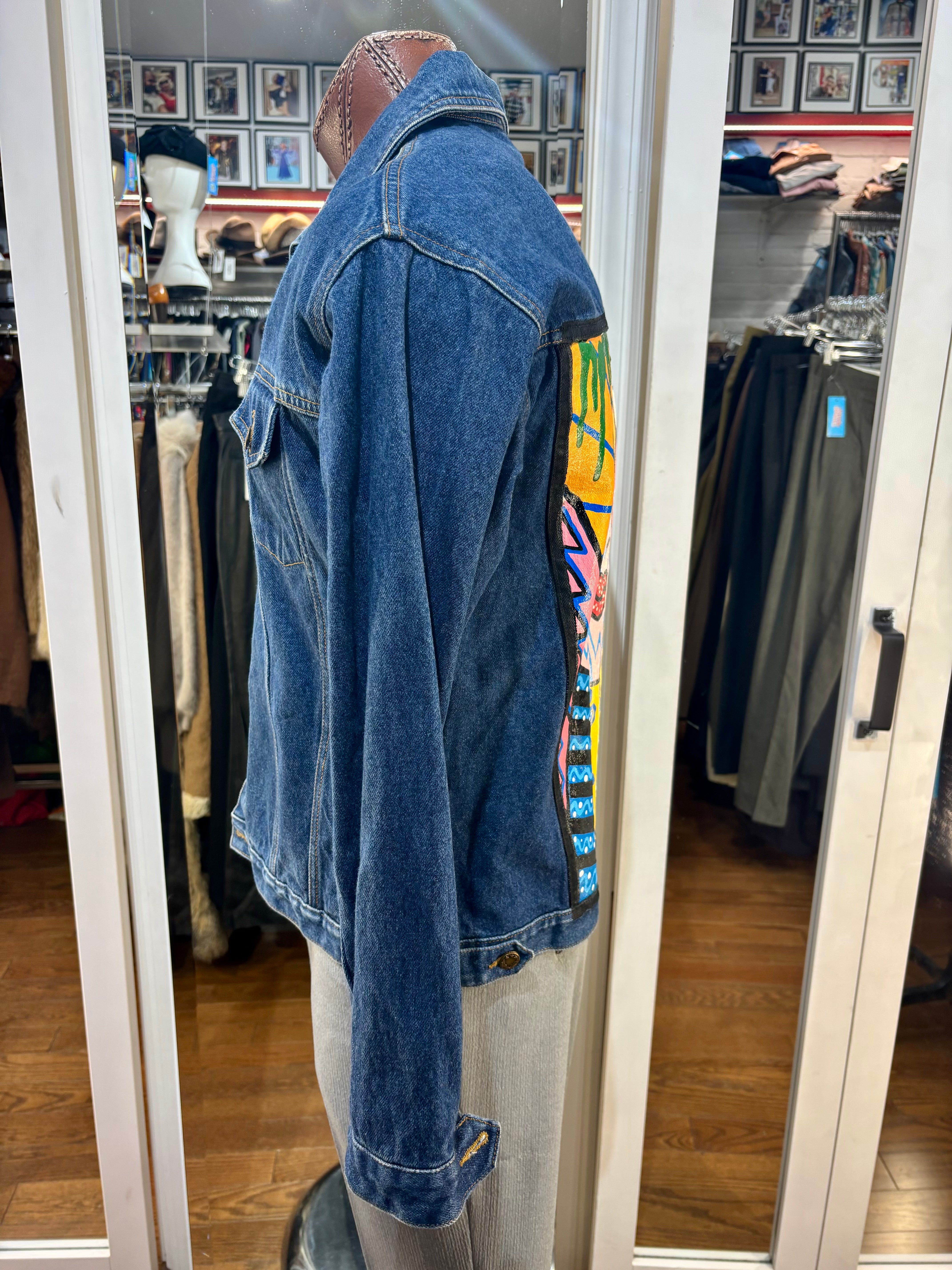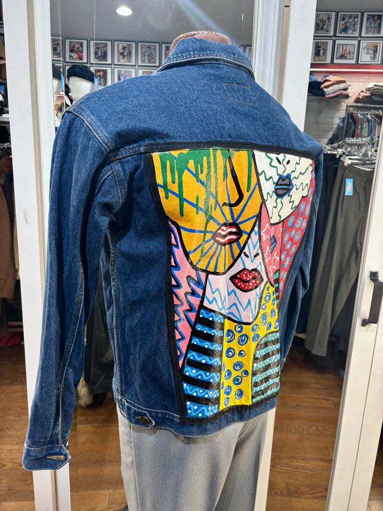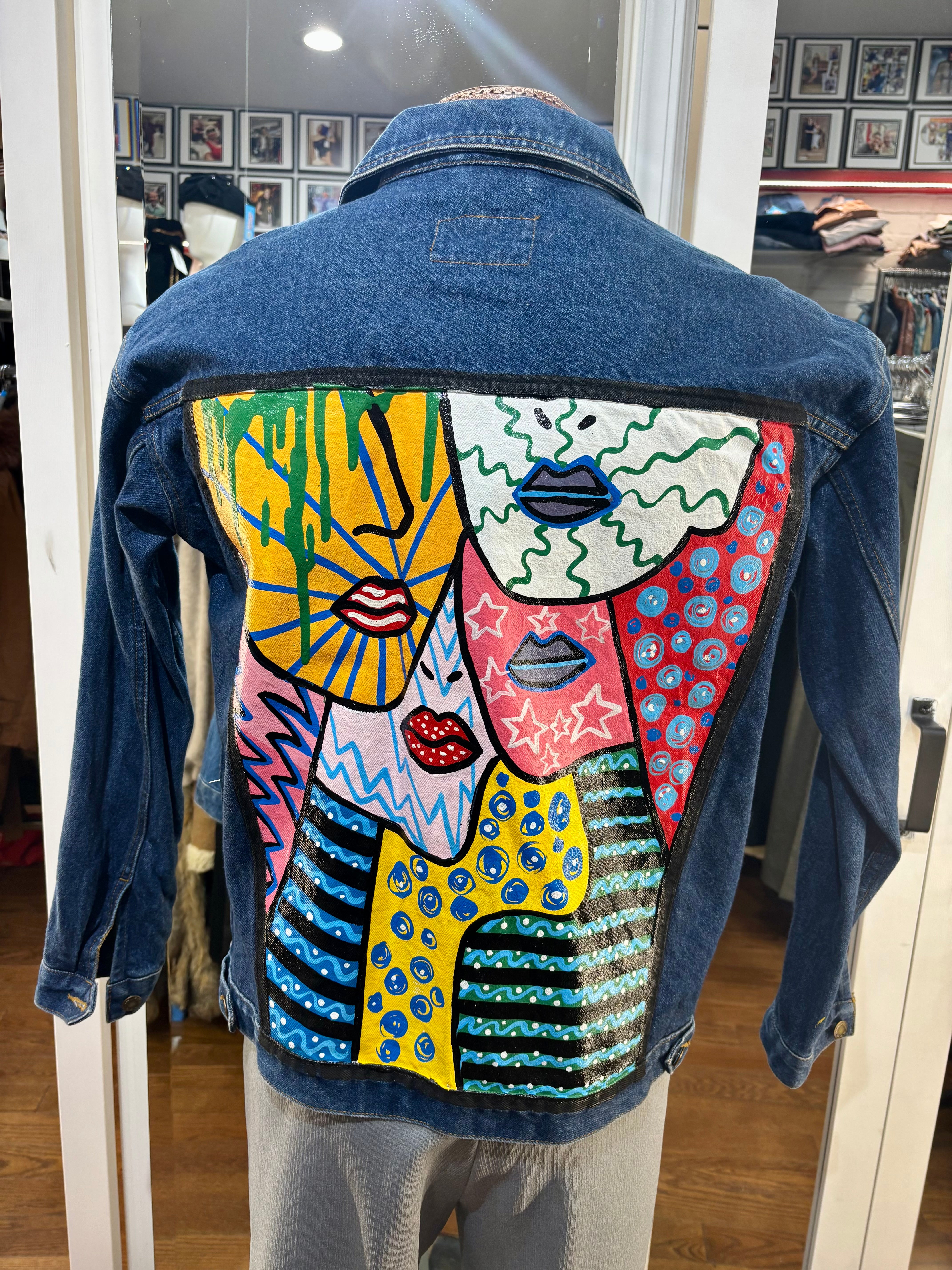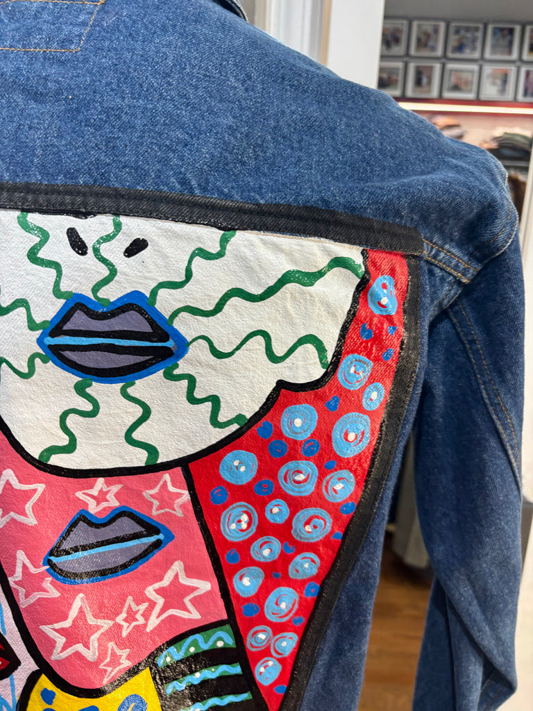 00’s Blue Custom Italian Hand Painted Denim Jacket inspired By Rock N Roll People