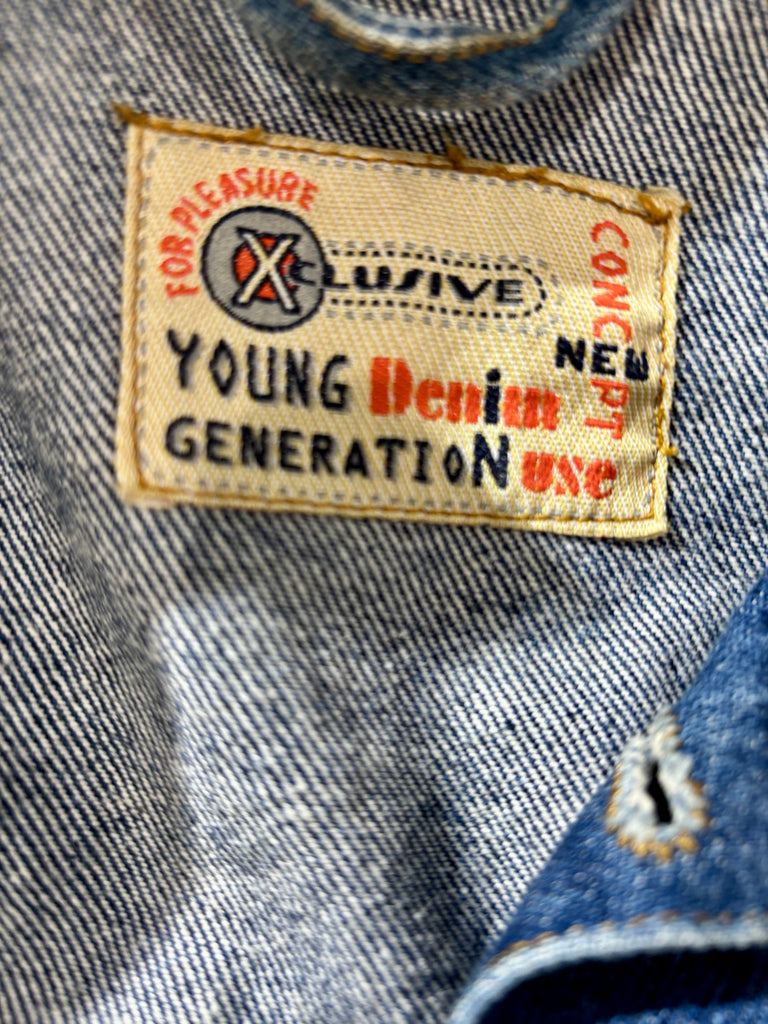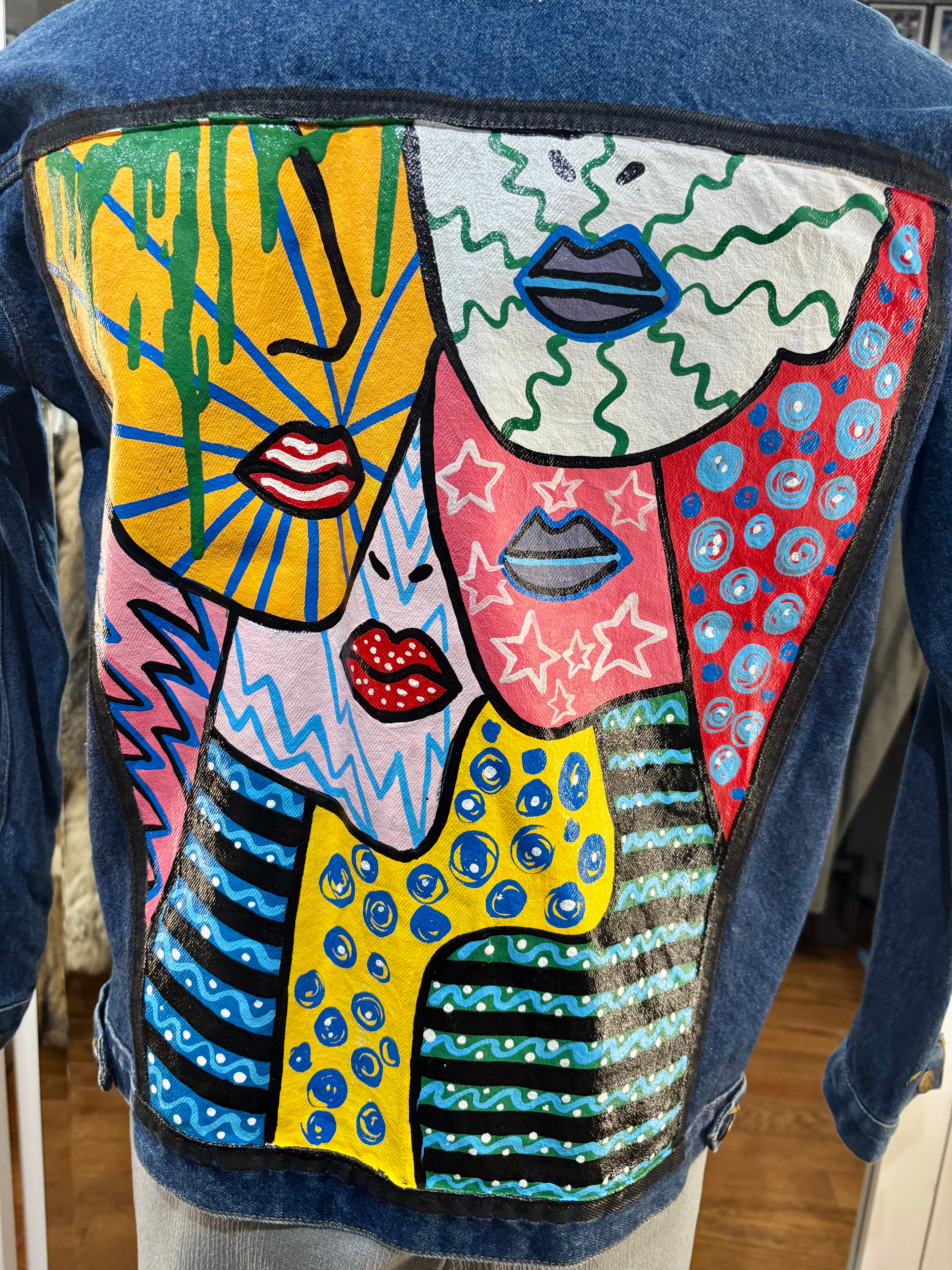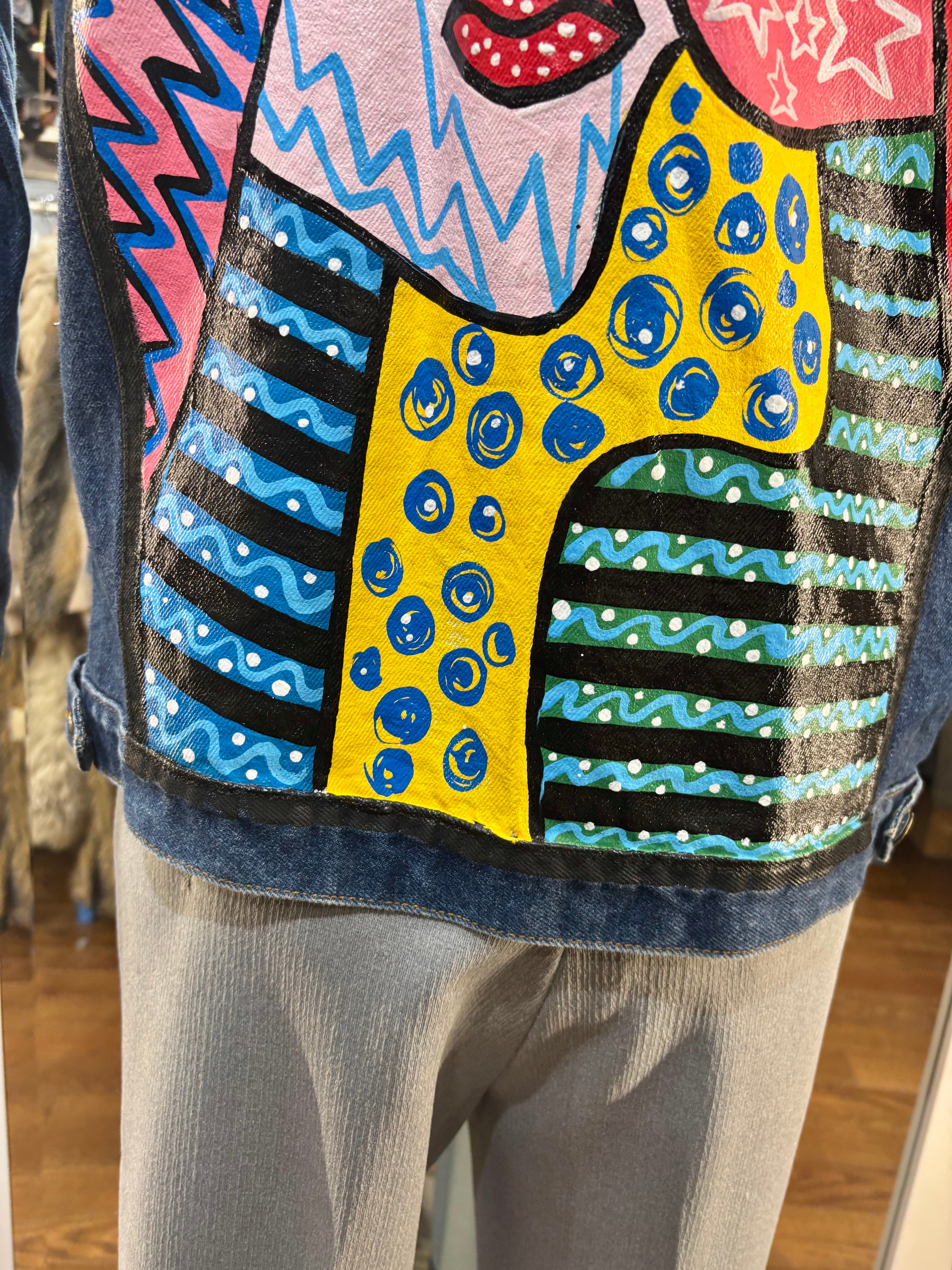00’s Blue Custom Italian Hand Painted Denim Jacket inspired By Rock N Roll People