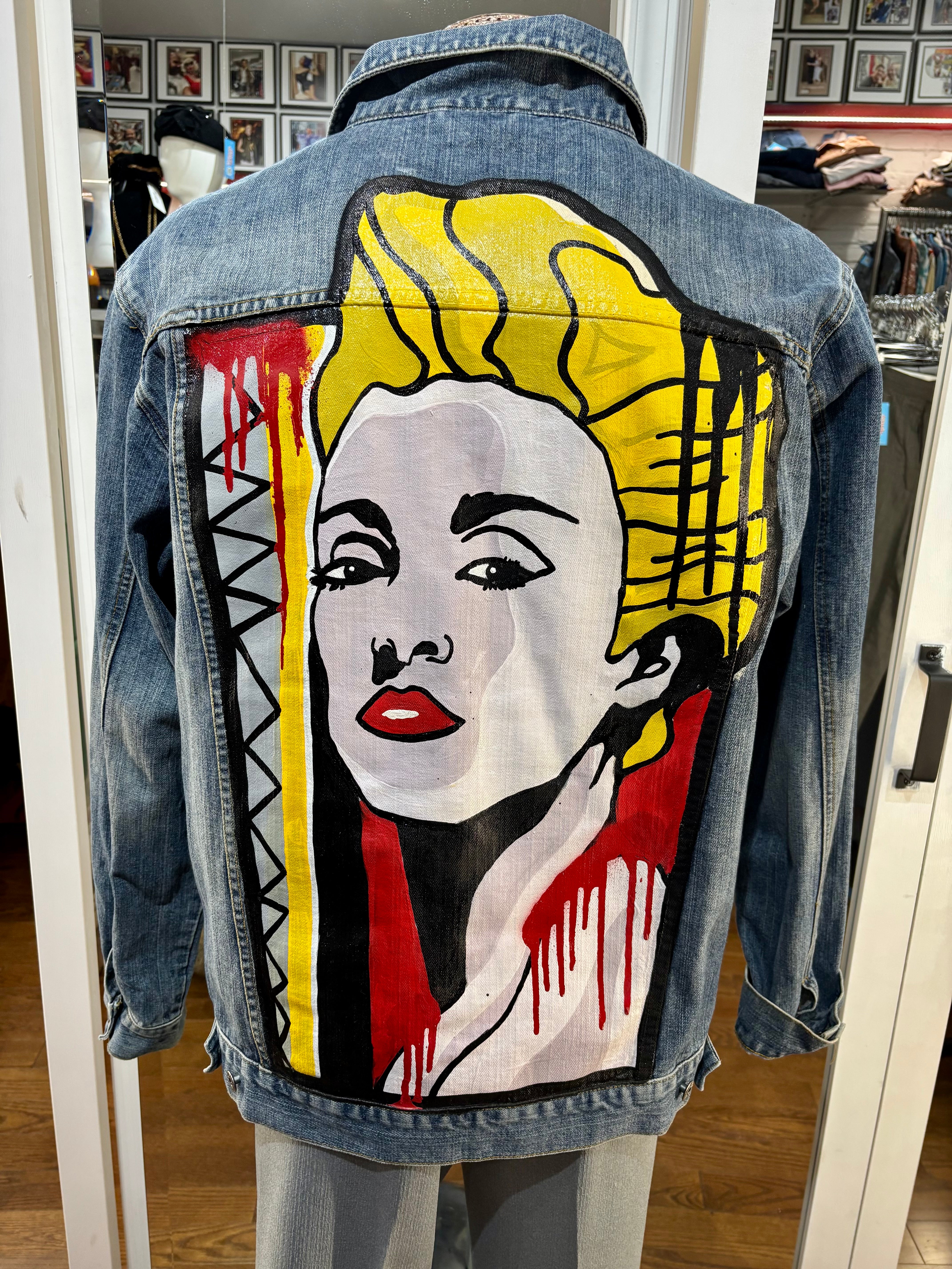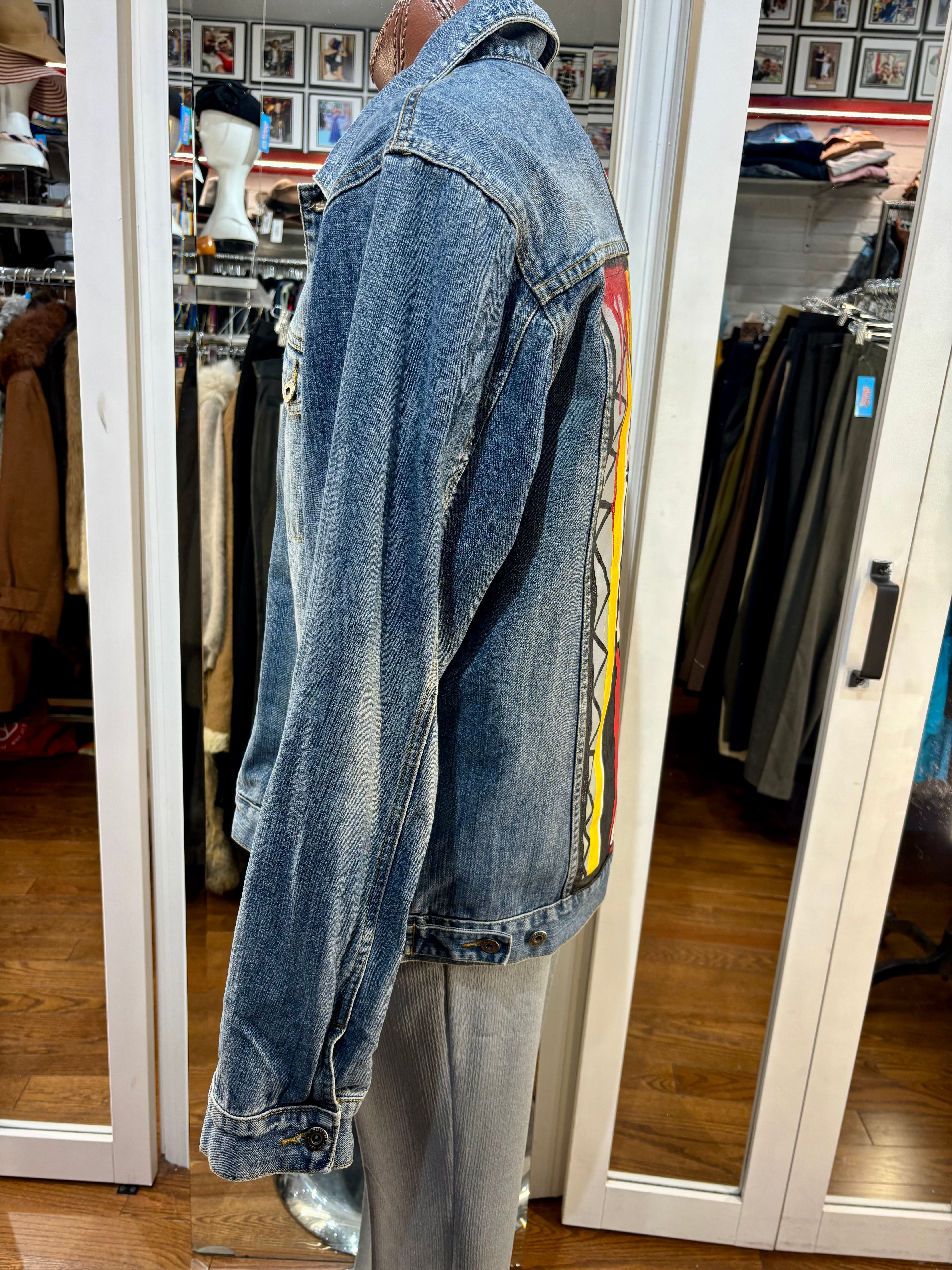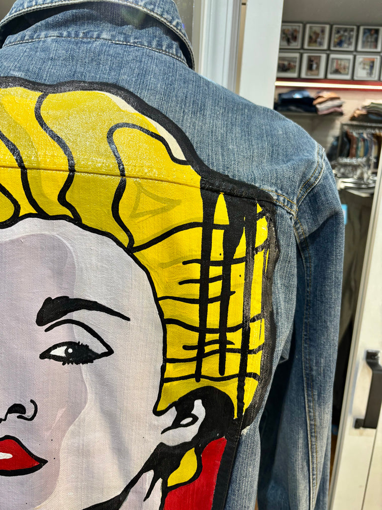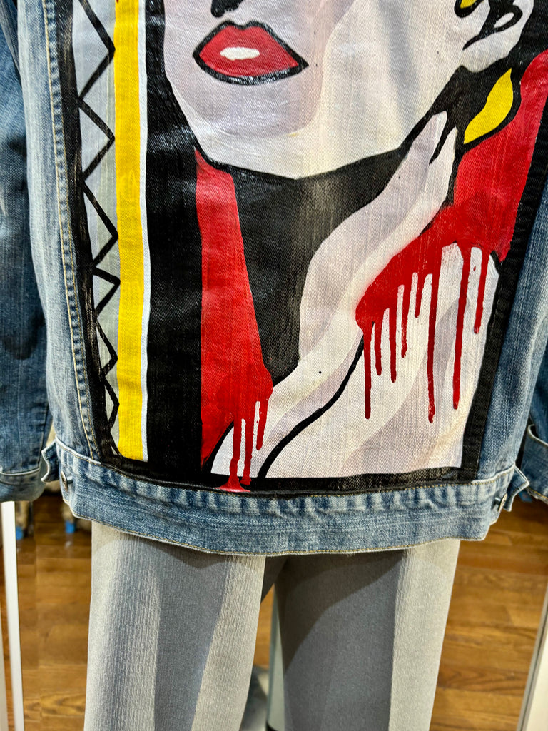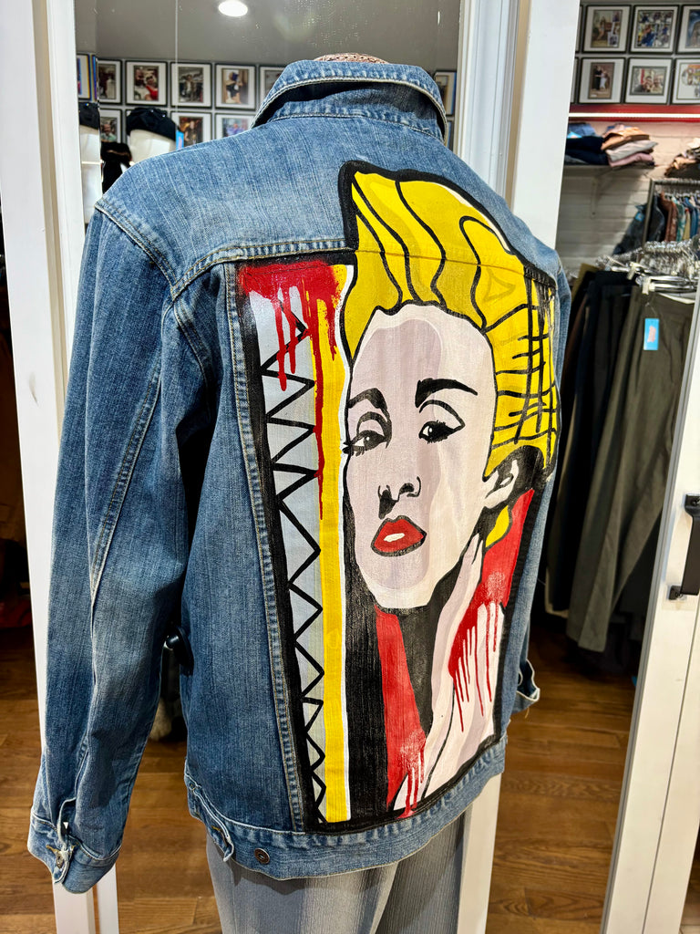 00’s Blue Custom Italian Hand Painted Denim Jacket inspired By Madonna
