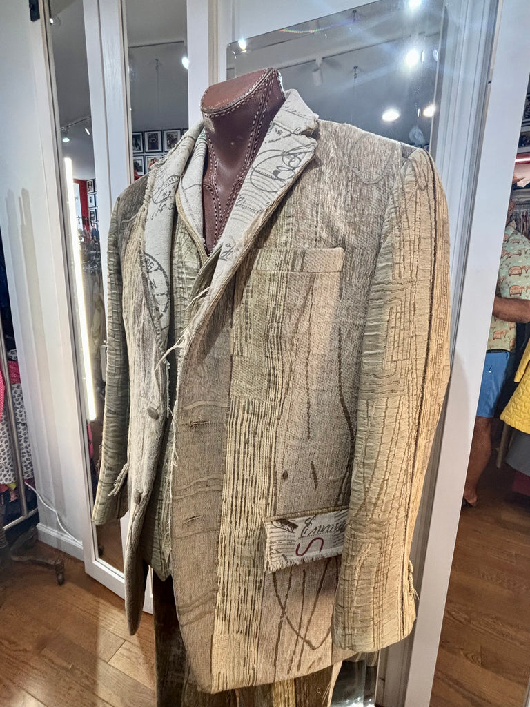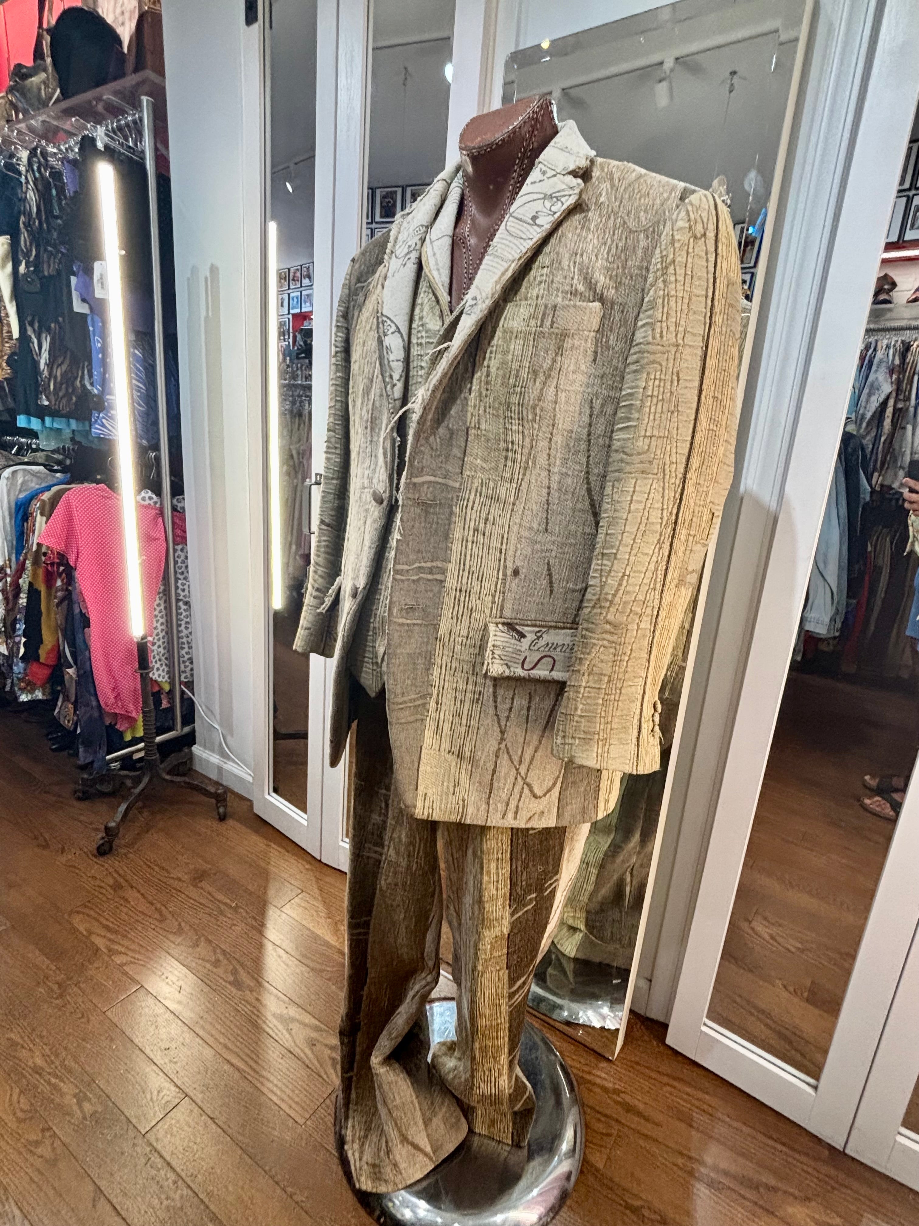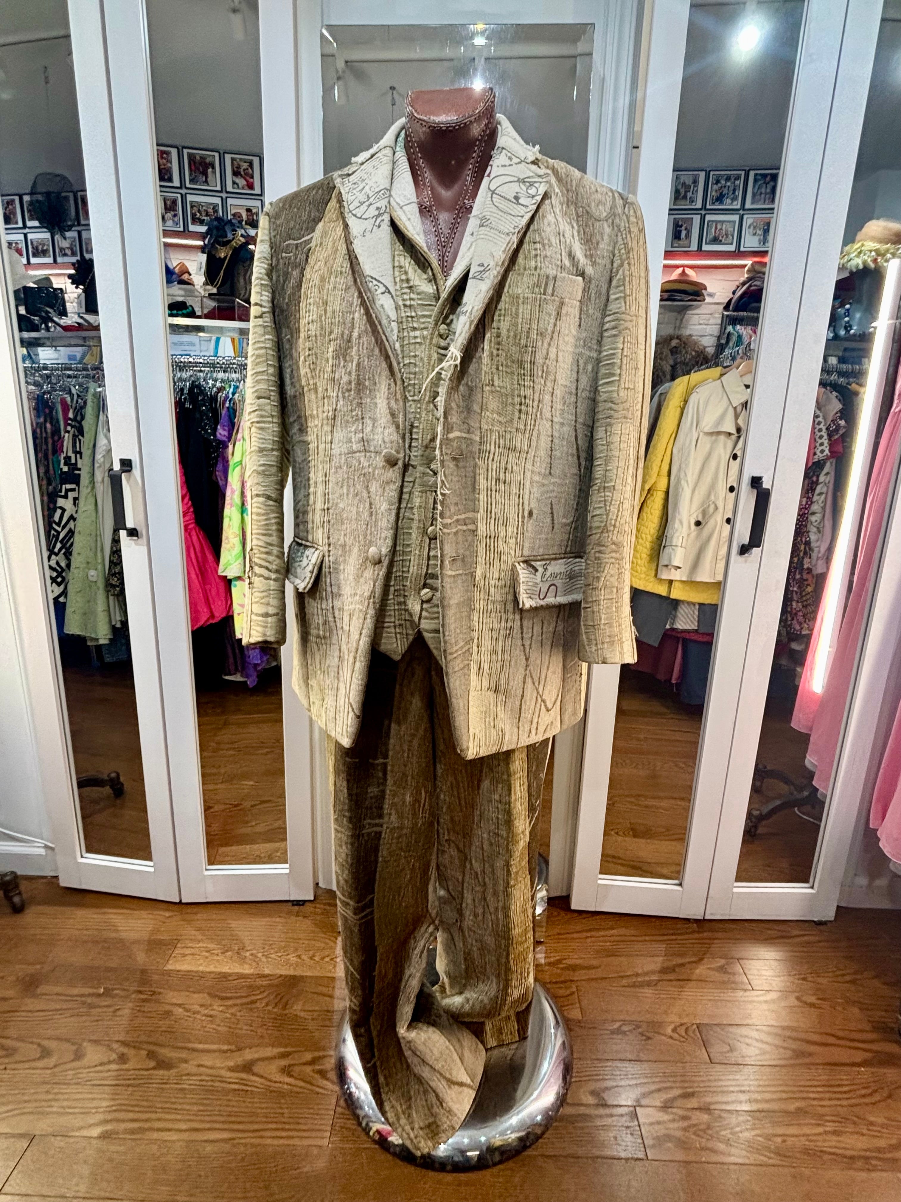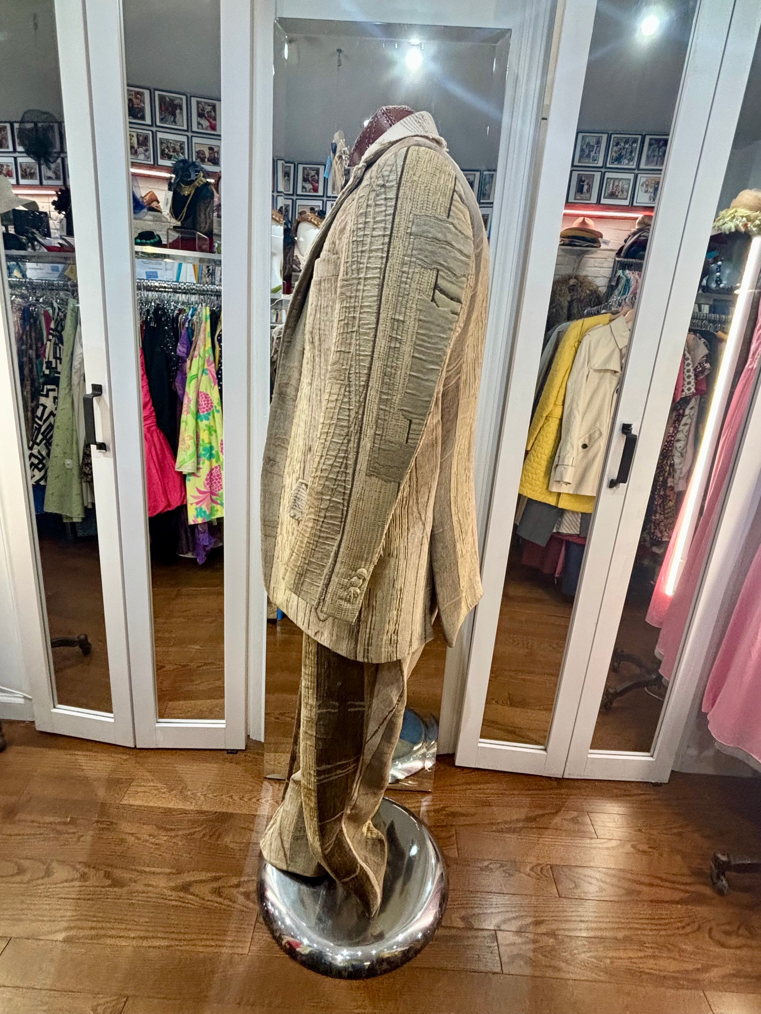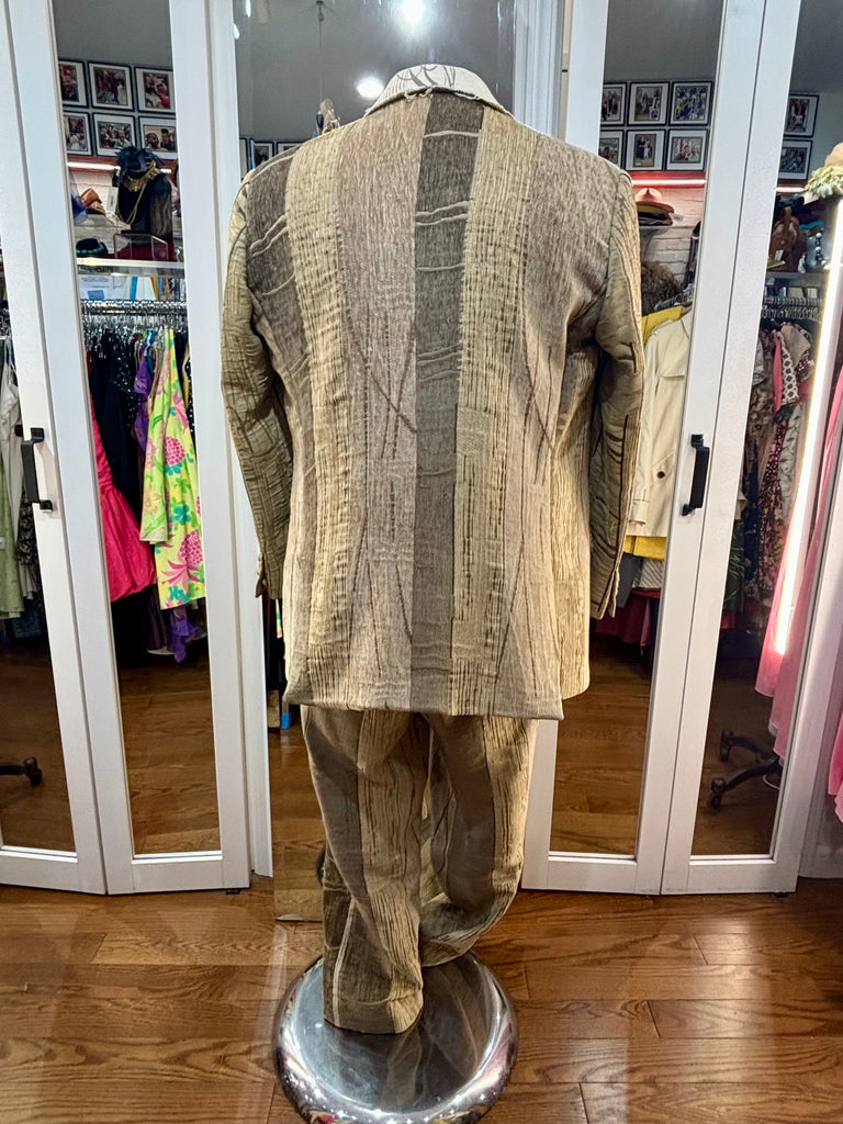 00’s Custom Collection Brown Stripe 3 Piece Suit Set By Pablo Van Dijk