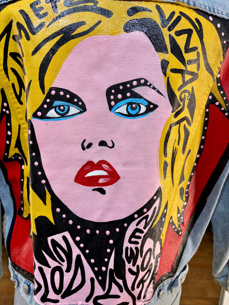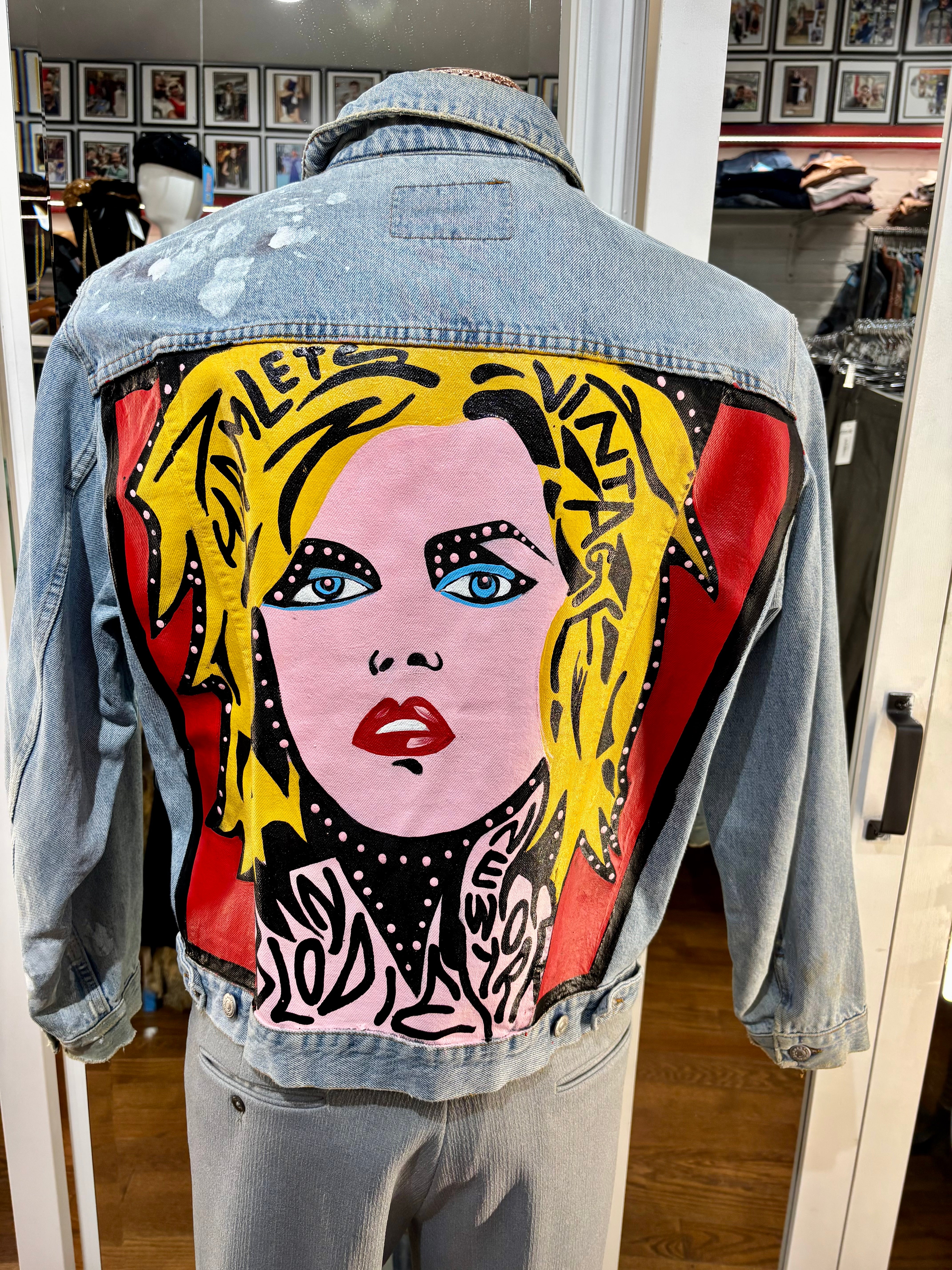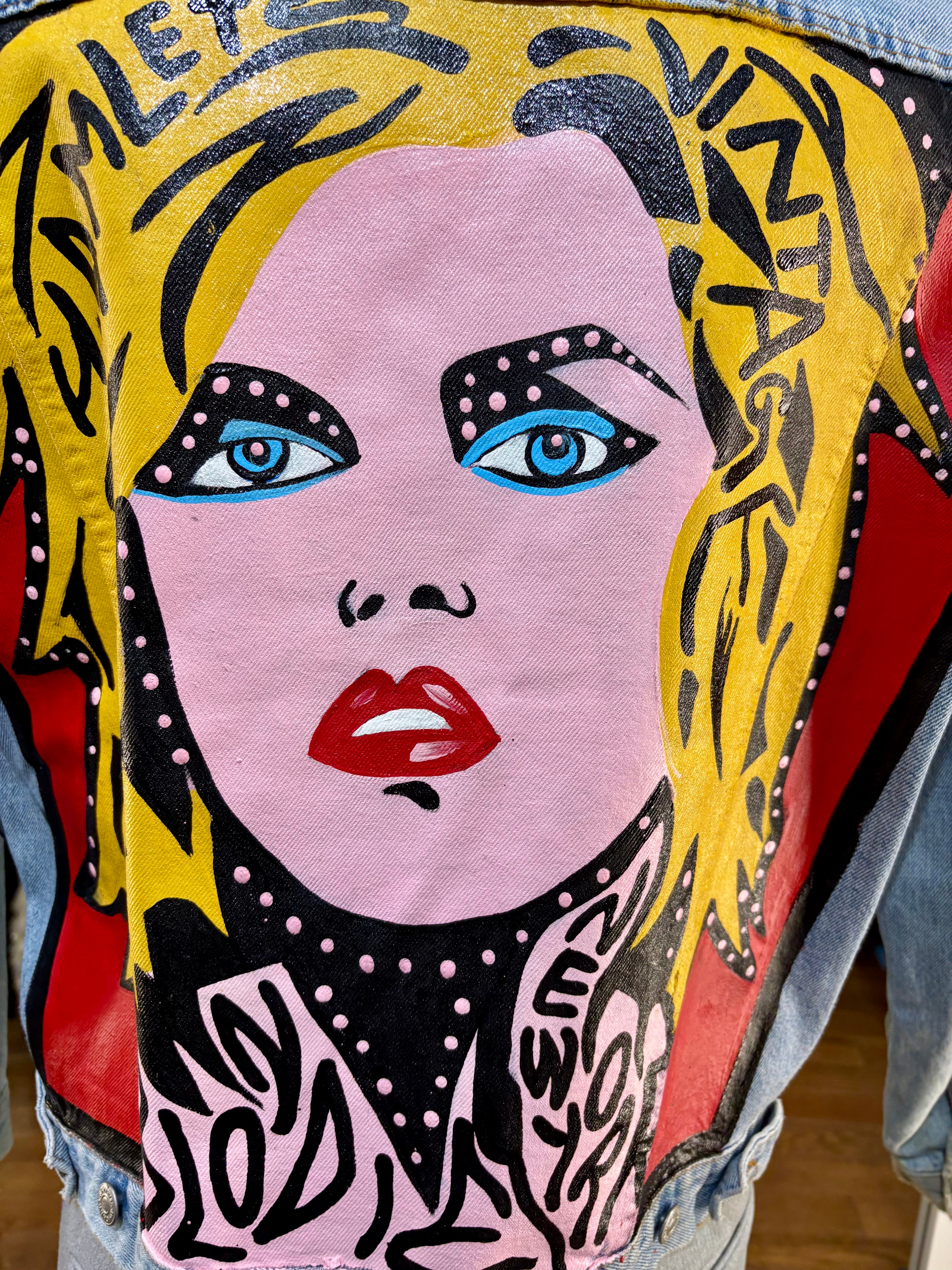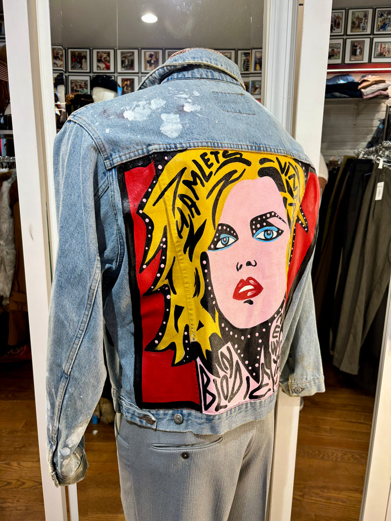 00’s Light Blue Custom Italian Hand Painted Denim Jacket inspired By Blondie