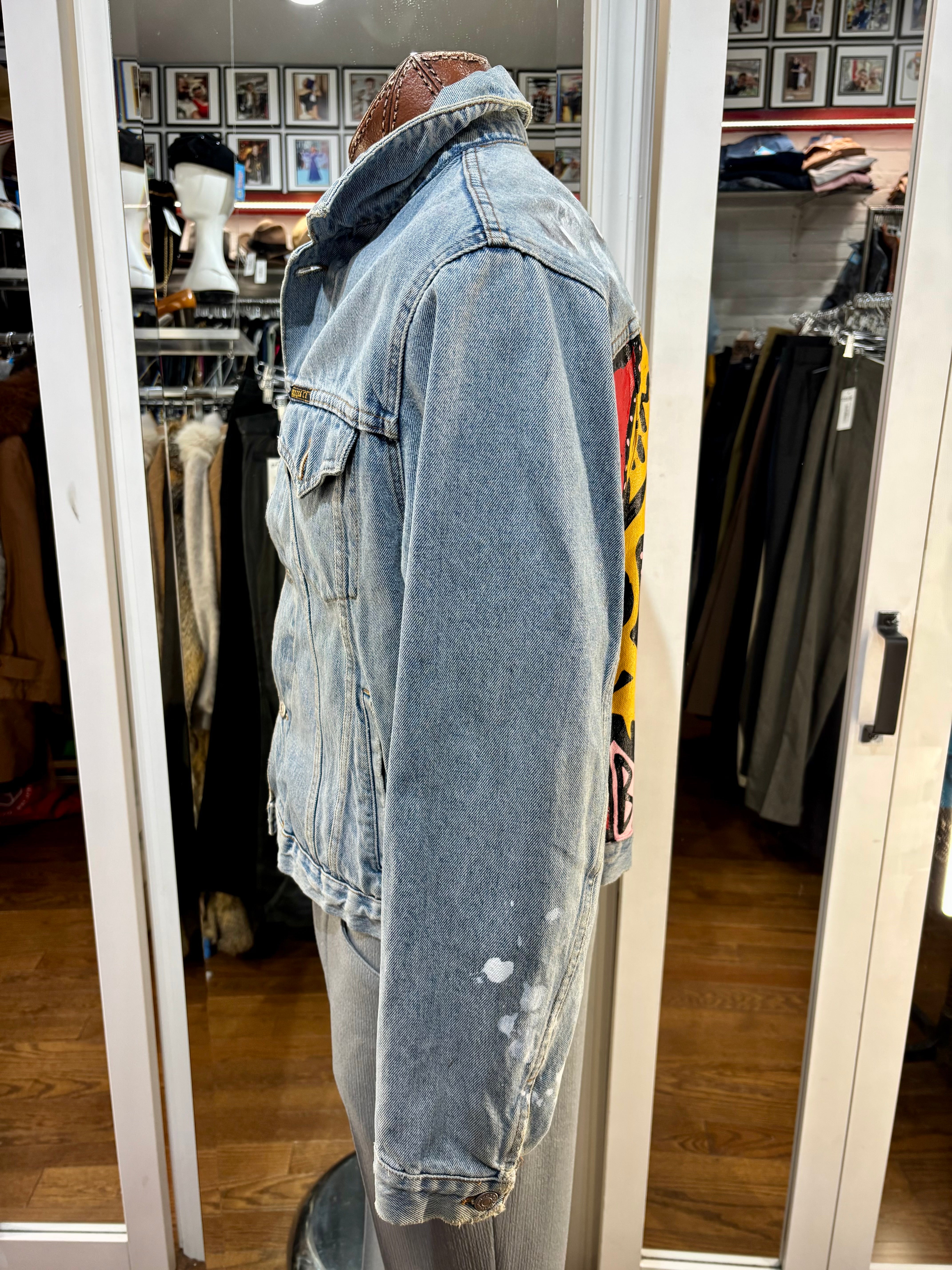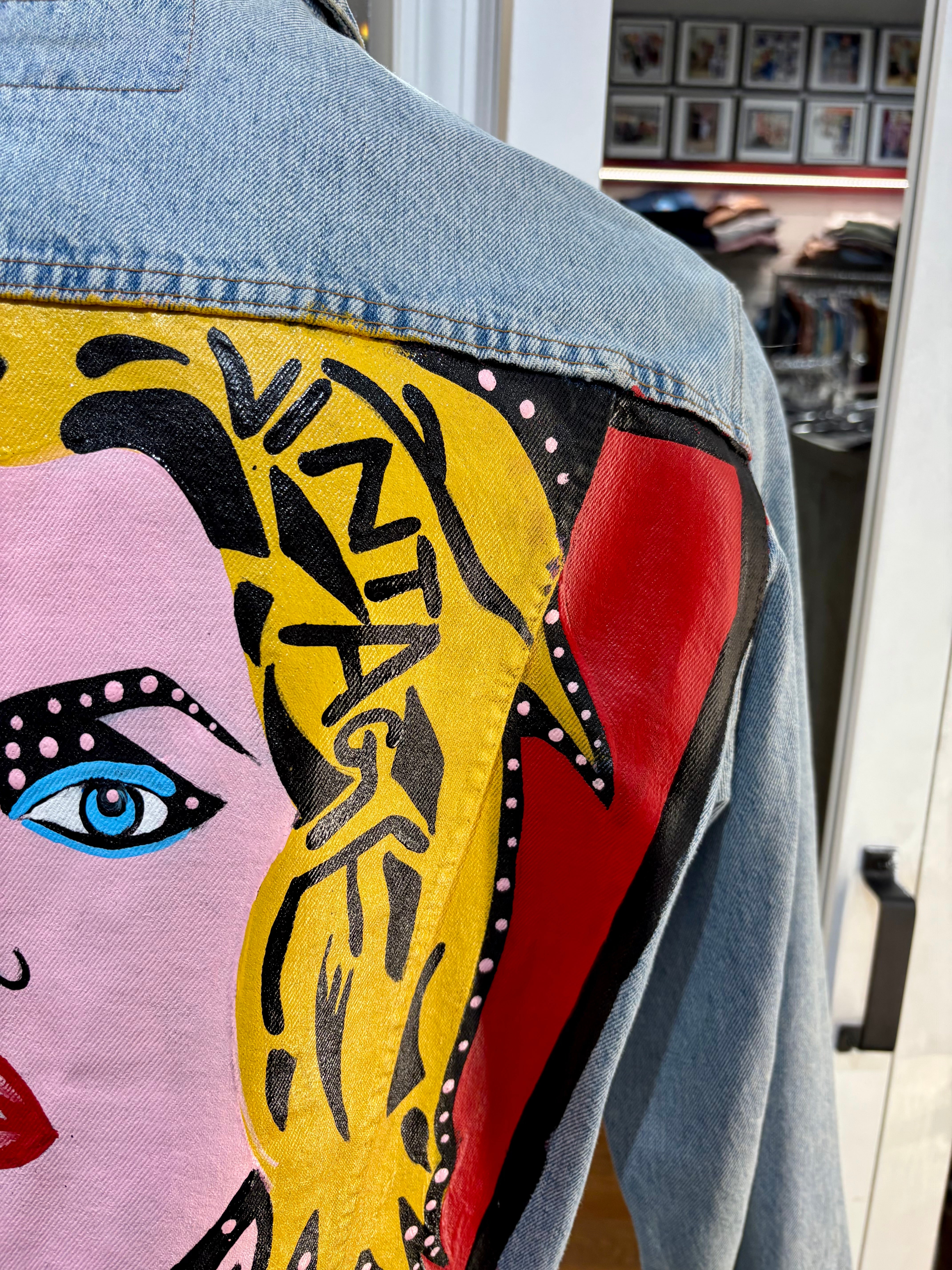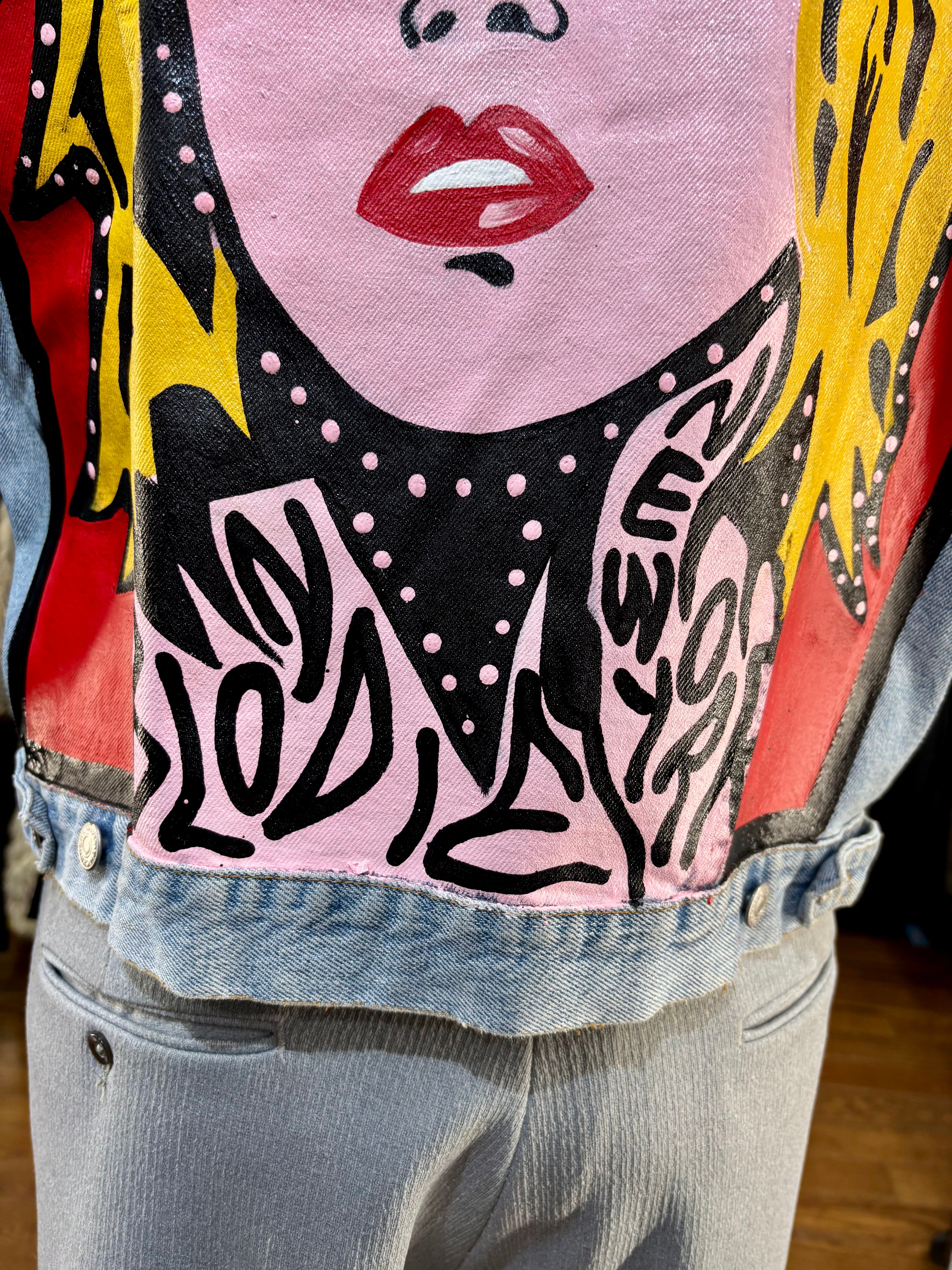 00’s Light Blue Custom Italian Hand Painted Denim Jacket inspired By Blondie